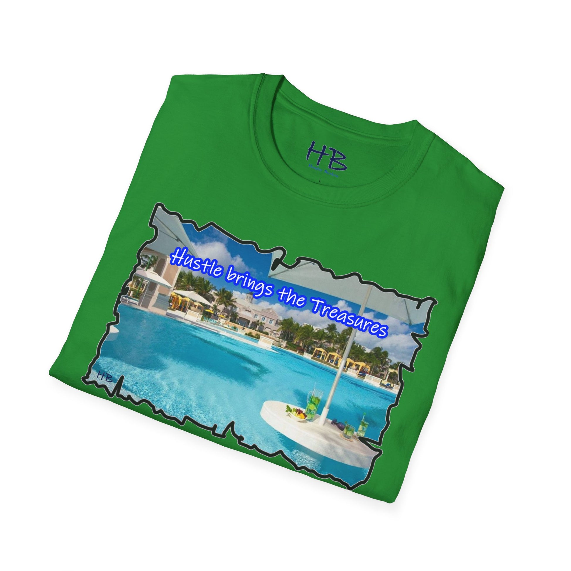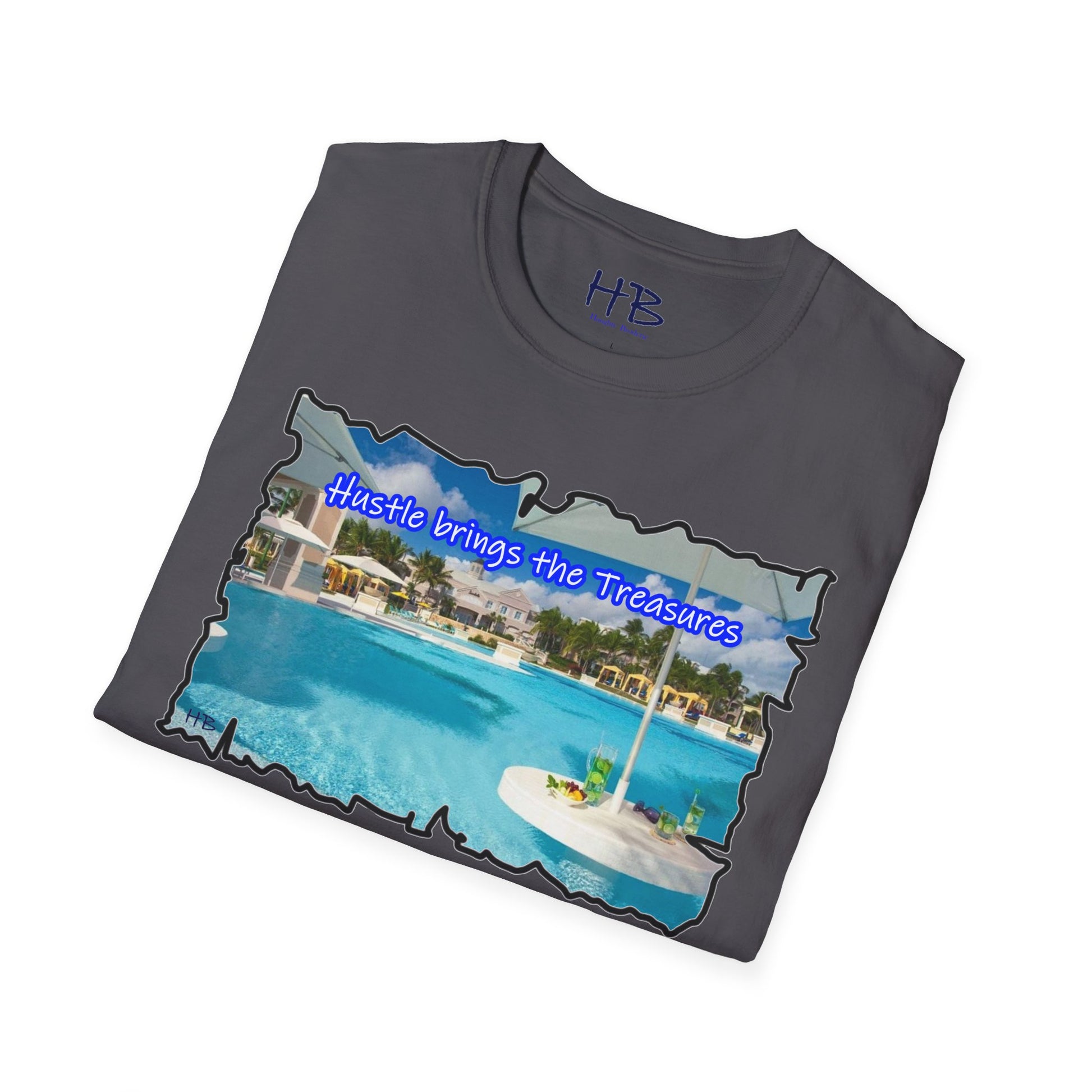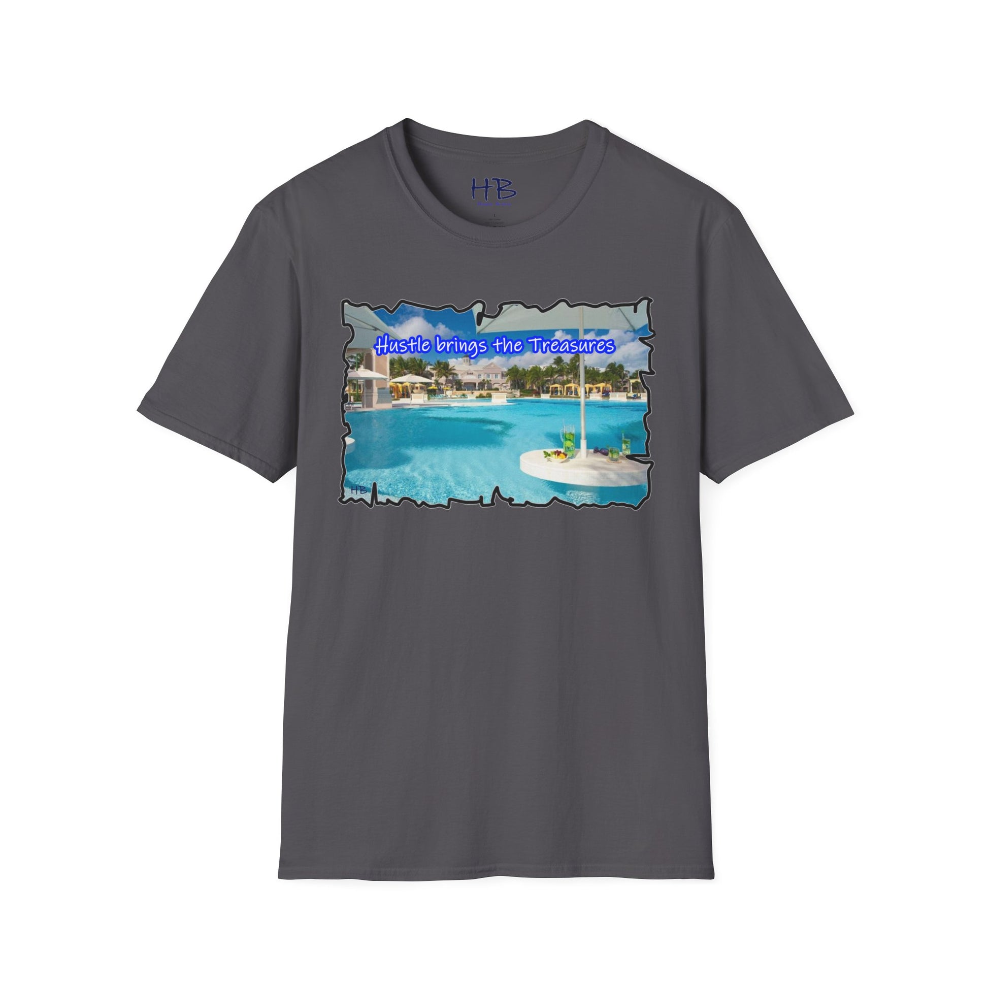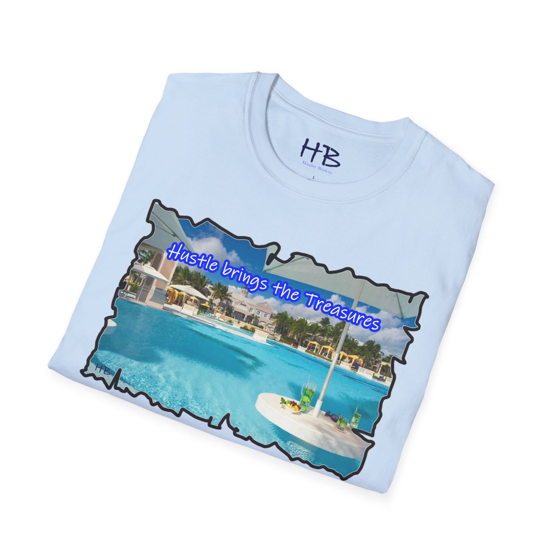Embark on a sartorial journey with our exclusive "Hustle brings the Treasures" masterpiece, a wearable ode to the relentless pursuit of idyllic paradises. Crafted with the finesse of a bespoke tapestry, this shirt encapsulates the allure of a highly coveted tourist haven—a resplendent resort pool surrounded by opulence and unrivaled amenities.