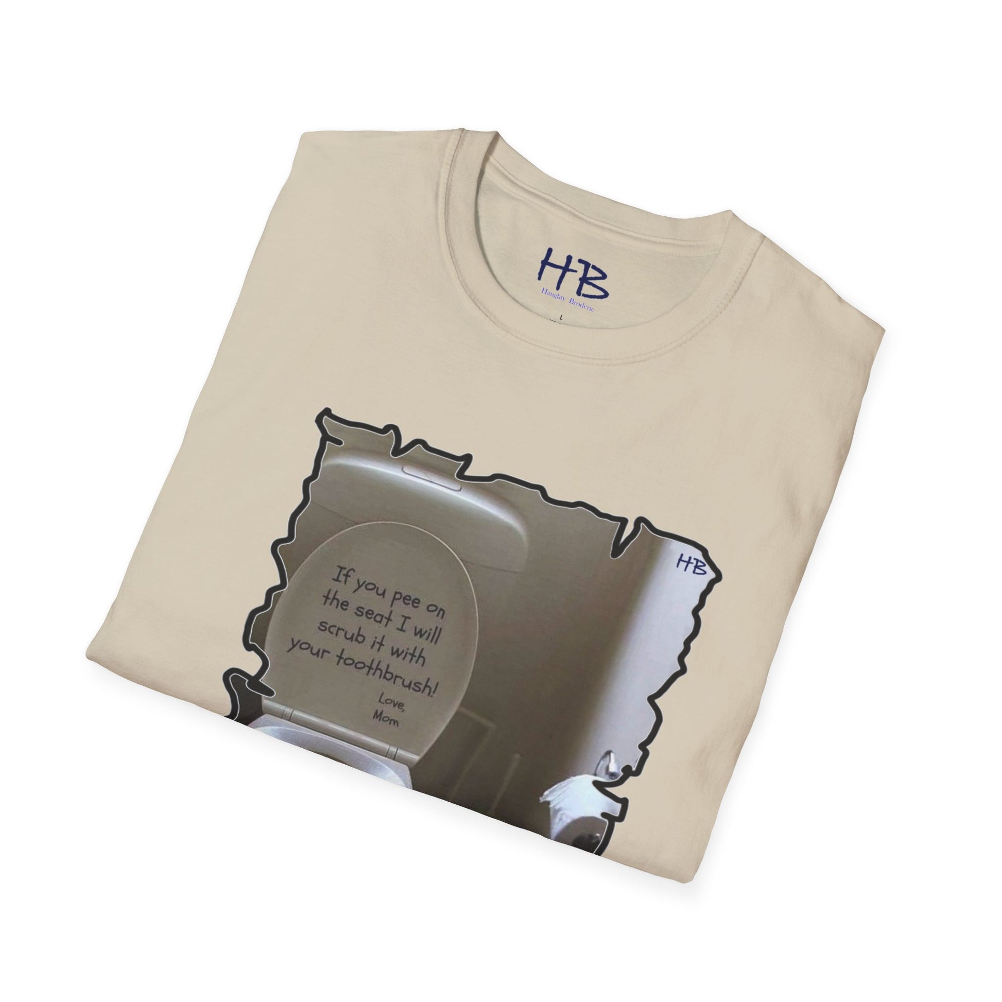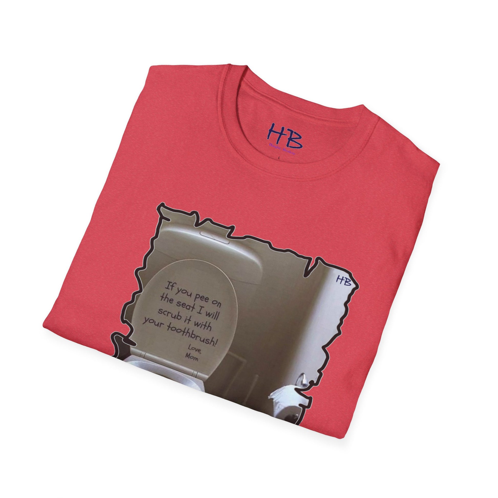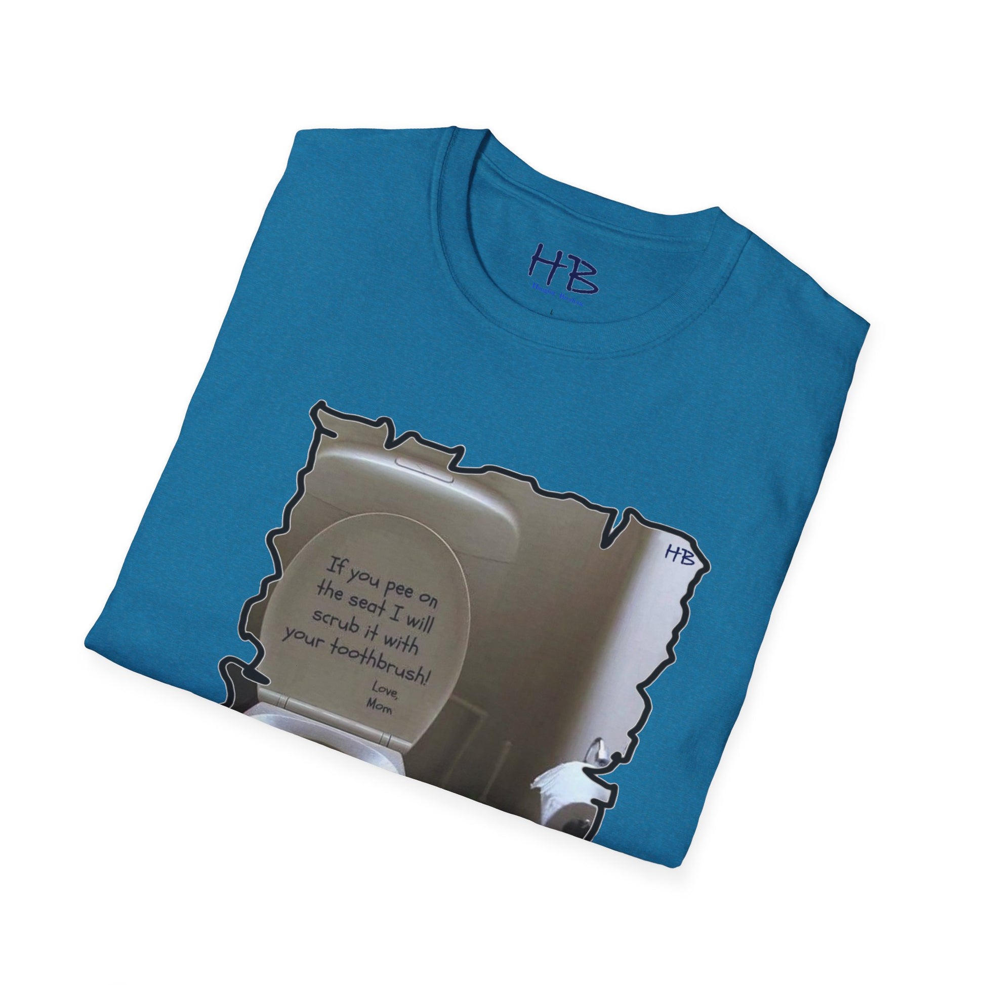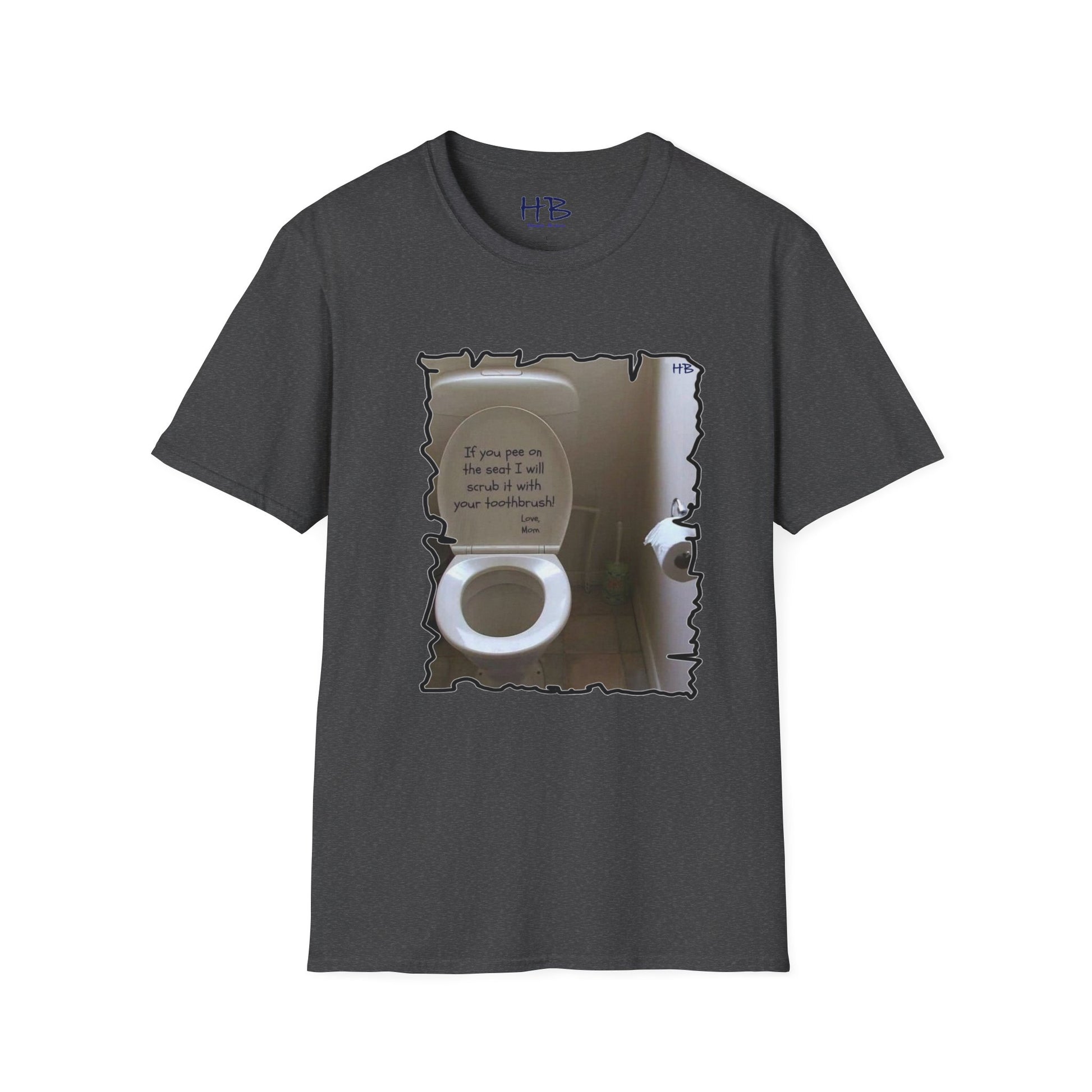 Introducing our latest tee shirt that's sure to catch your attention! This unique design features a porcelain throne (toilet) with its cover lifted up, along with a humorous message inscribed in bold dark ink. This hilarious tee shirt is perfect for those who appreciate a good laugh and enjoy a bit of sarcasm in their everyday wear. The witty phrase displayed on the shirt is certain to be a hit among those who can relate to the frustration of finding the toilet seat in an unpleasant state. The message reads "If you happen to leave a mess on the seat, be warned that your toothbrush is the next thing to meet!" This playful tee shirt is made of high-quality fabric and is available in a range of sizes to fit all body types. Whether you're looking for a conversation starter or simply want to express your sense of humor, this tee shirt is the perfect addition to your wardrobe. Order yours today and get ready to turn heads with your witty sense of style!