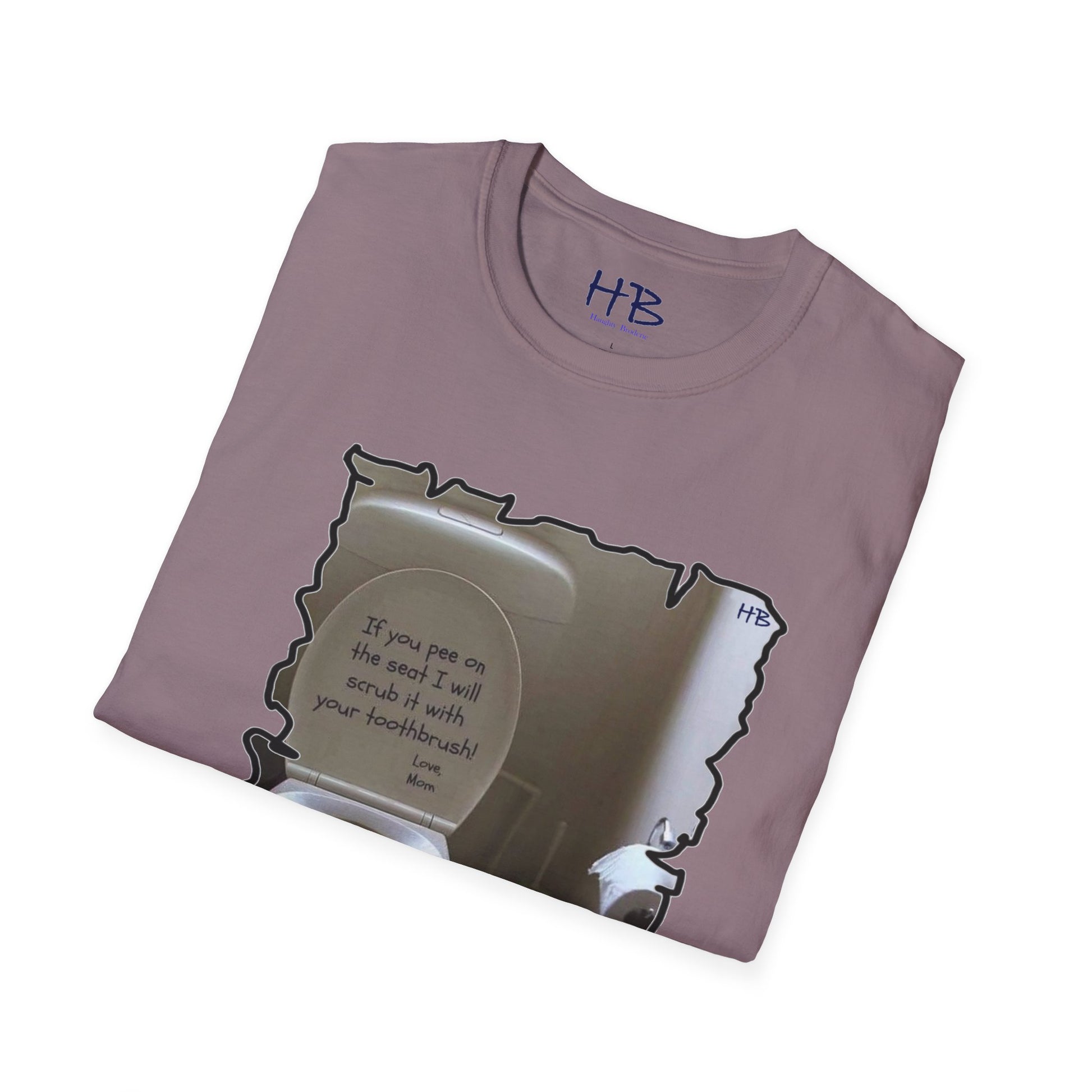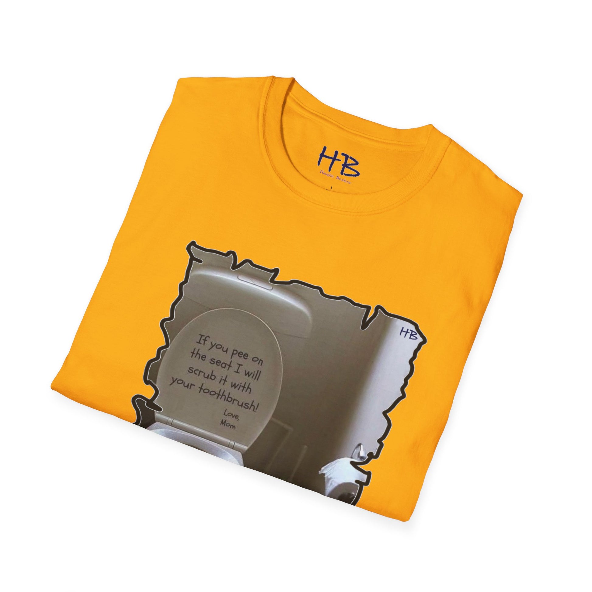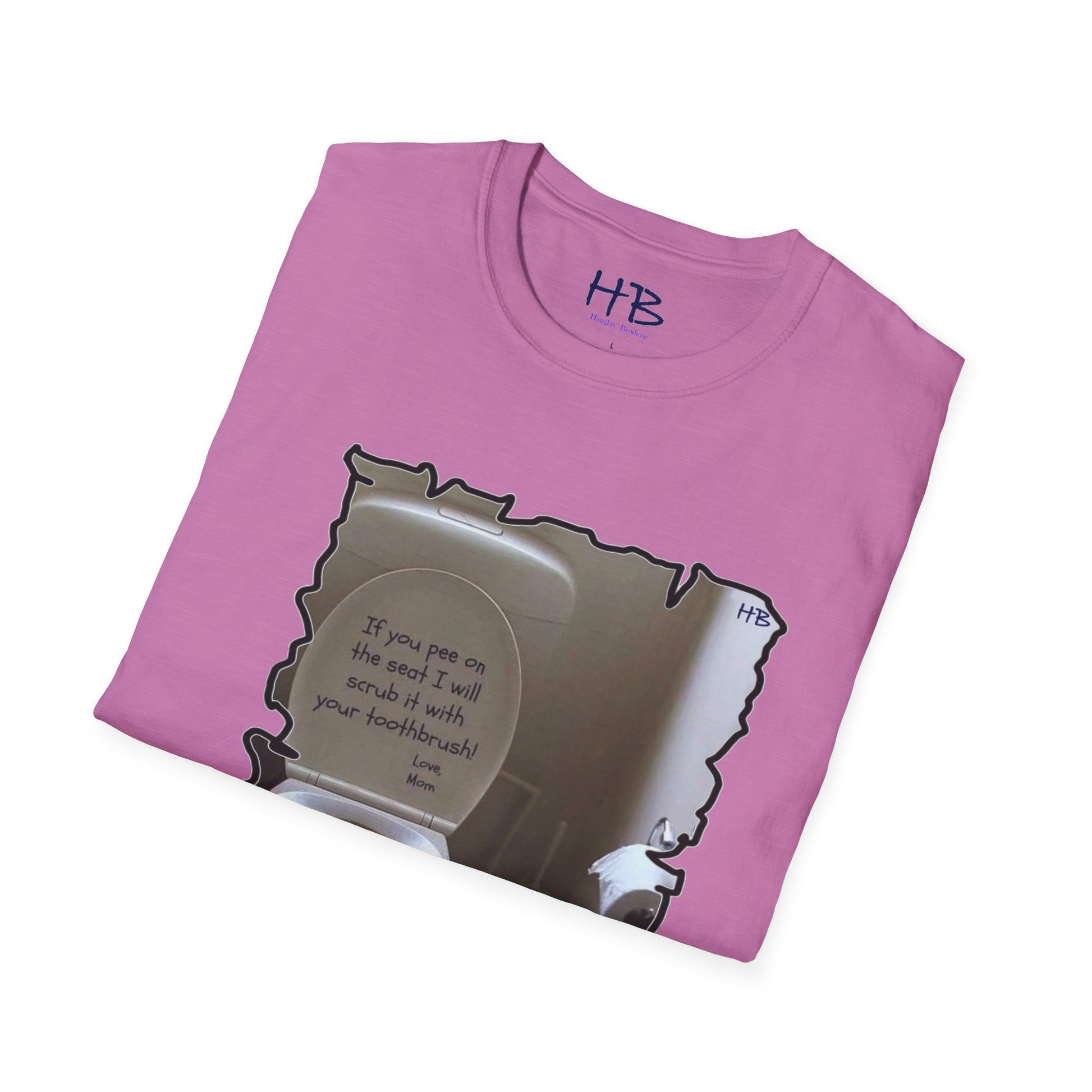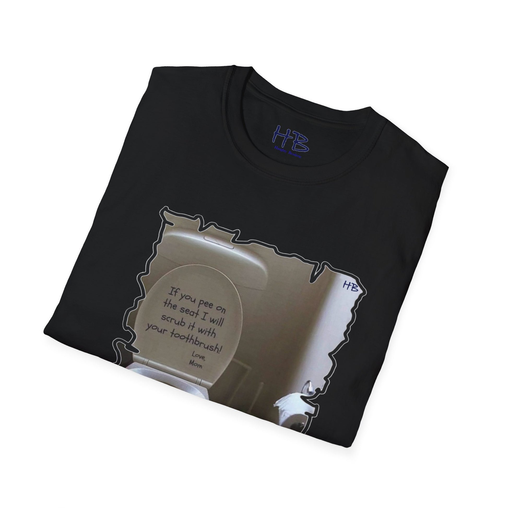 Introducing our latest tee shirt that's sure to catch your attention! This unique design features a porcelain throne (toilet) with its cover lifted up, along with a humorous message inscribed in bold dark ink. This hilarious tee shirt is perfect for those who appreciate a good laugh and enjoy a bit of sarcasm in their everyday wear. The witty phrase displayed on the shirt is certain to be a hit among those who can relate to the frustration of finding the toilet seat in an unpleasant state. The message reads "If you happen to leave a mess on the seat, be warned that your toothbrush is the next thing to meet!" This playful tee shirt is made of high-quality fabric and is available in a range of sizes to fit all body types. Whether you're looking for a conversation starter or simply want to express your sense of humor, this tee shirt is the perfect addition to your wardrobe. Order yours today and get ready to turn heads with your witty sense of style!