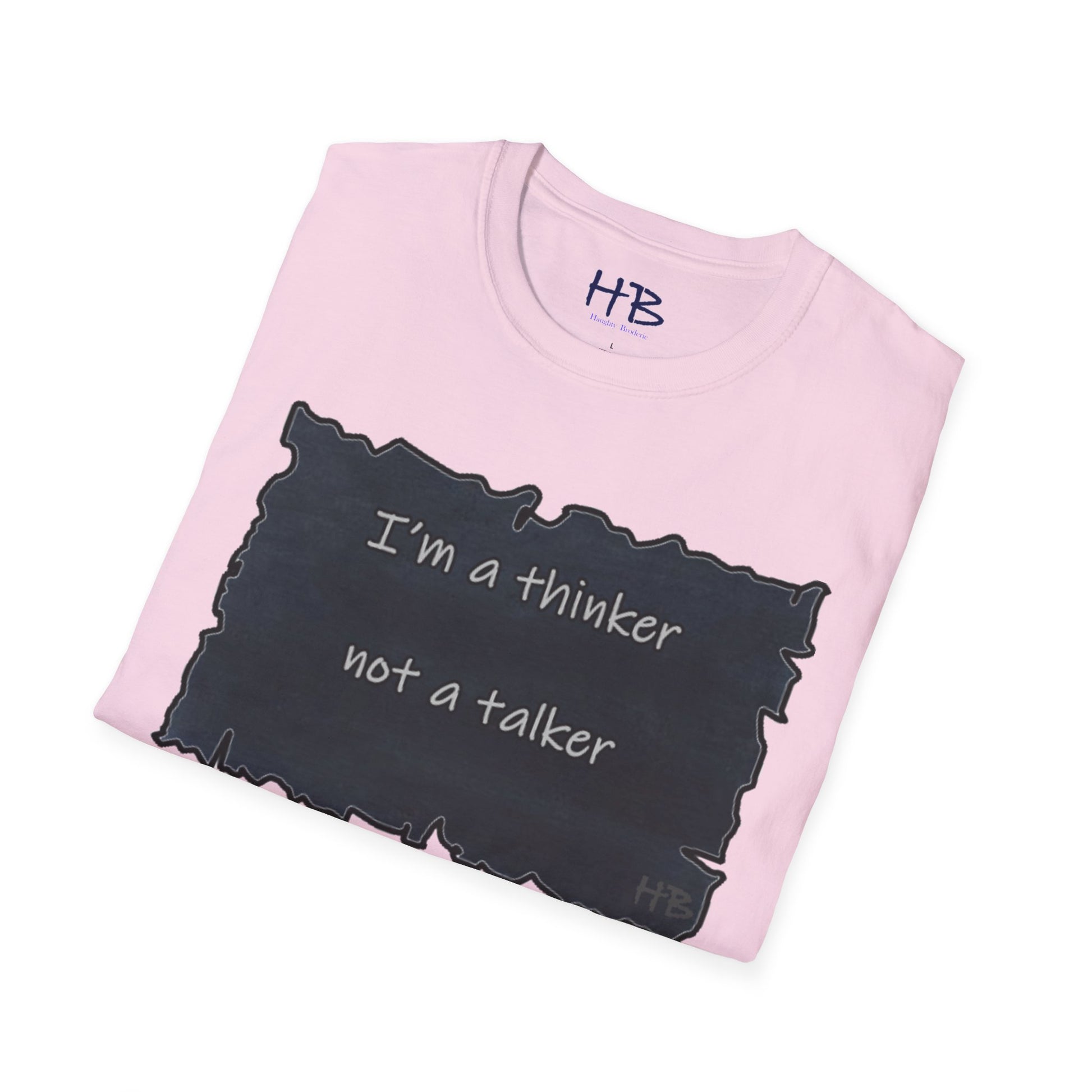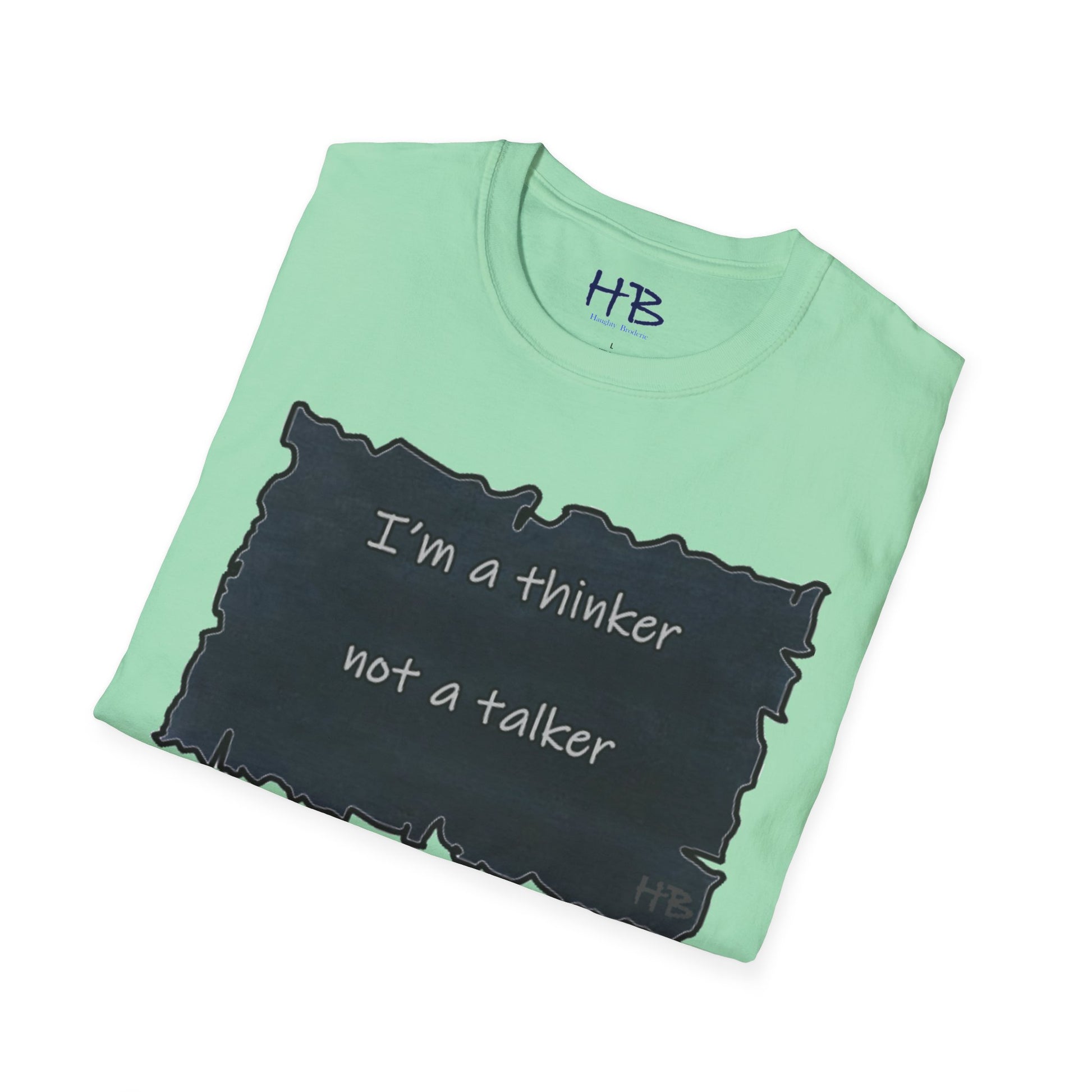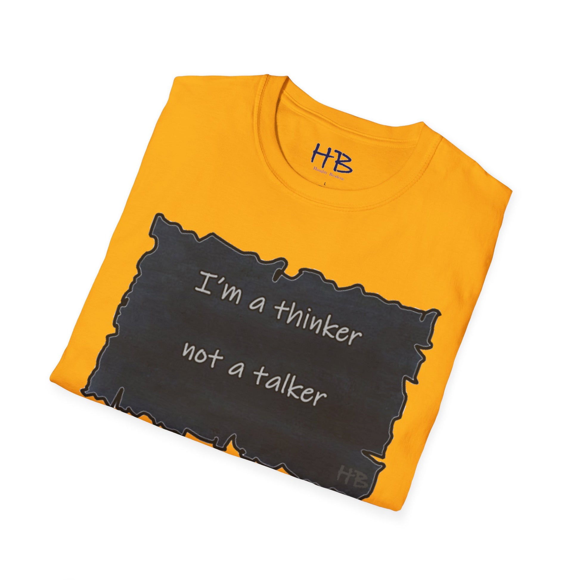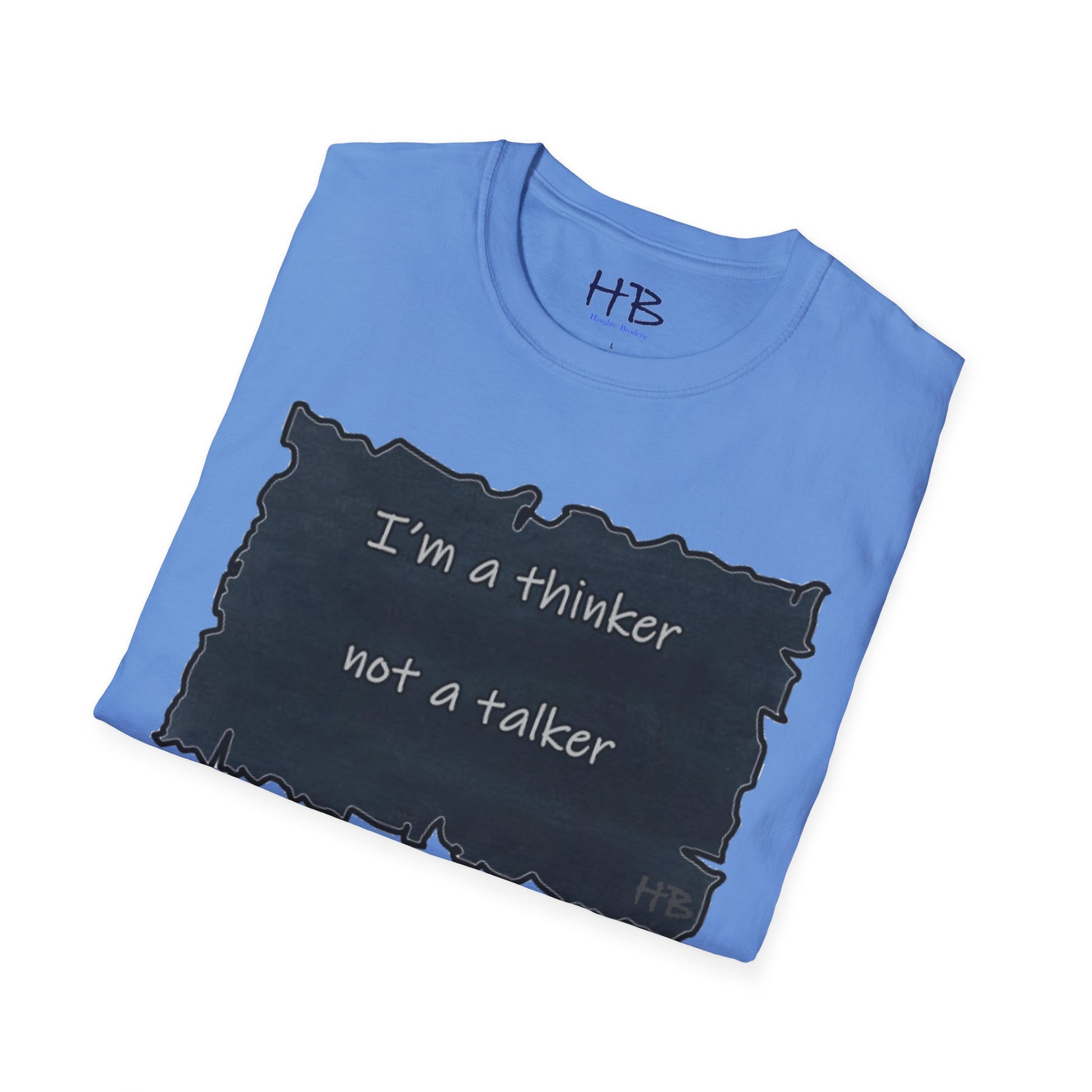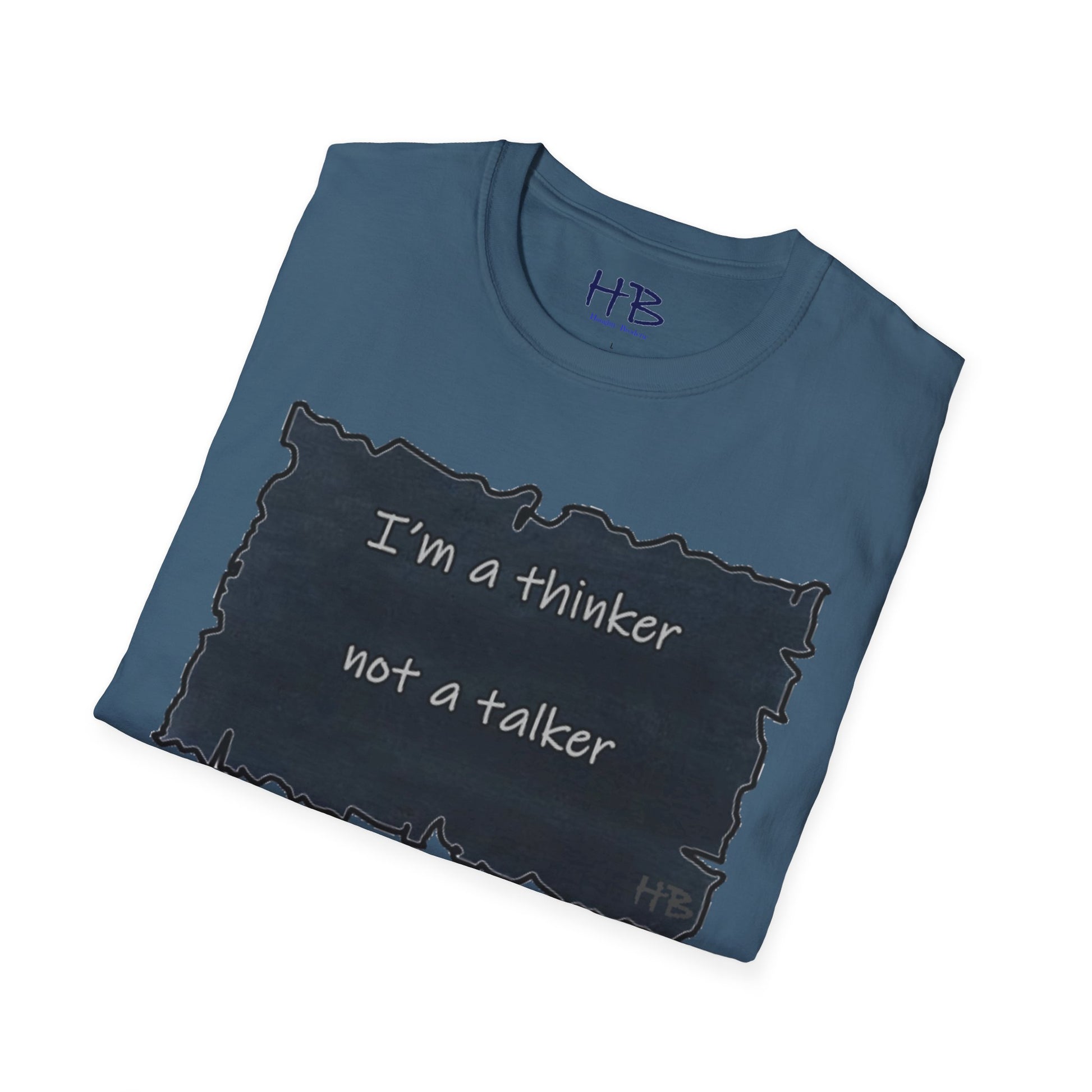 Whether you're an introverted philosopher or just someone who likes to take their time to consider things before speaking, this tee is a great way to express yourself and connect with others who share your values. So why wait? Get your "Thinker, Not Talker" tee today and start showing off your unique perspective on the world! With its comfortable fit and powerful message, this tee is sure to become a favorite in your wardrobe.