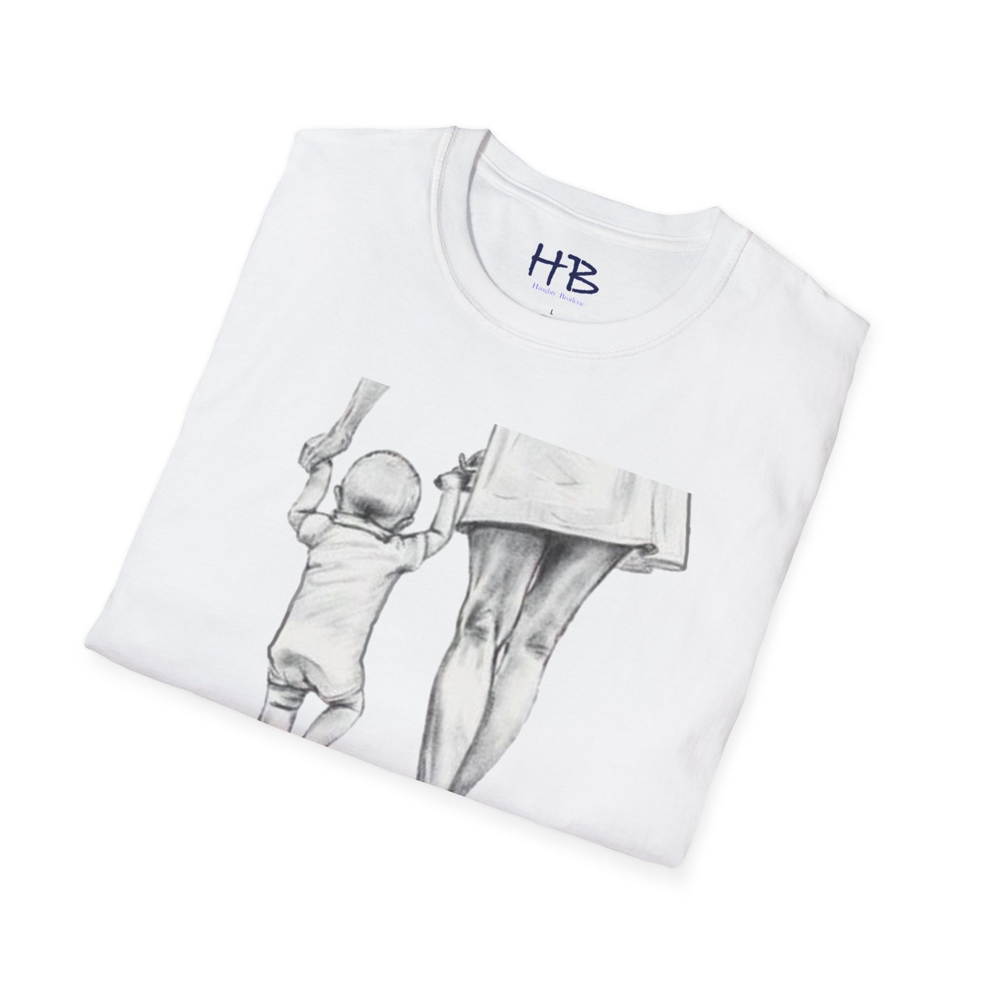 Introducing our newest addition to our collection of tees, this shirt features a captivating pencil drawing of a little toddler taking his first steps with the helping hand of his loving mother. The image portrays the beautiful bond between a mother and her child, showcasing the importance of nurturing and guidance in a child's early years.