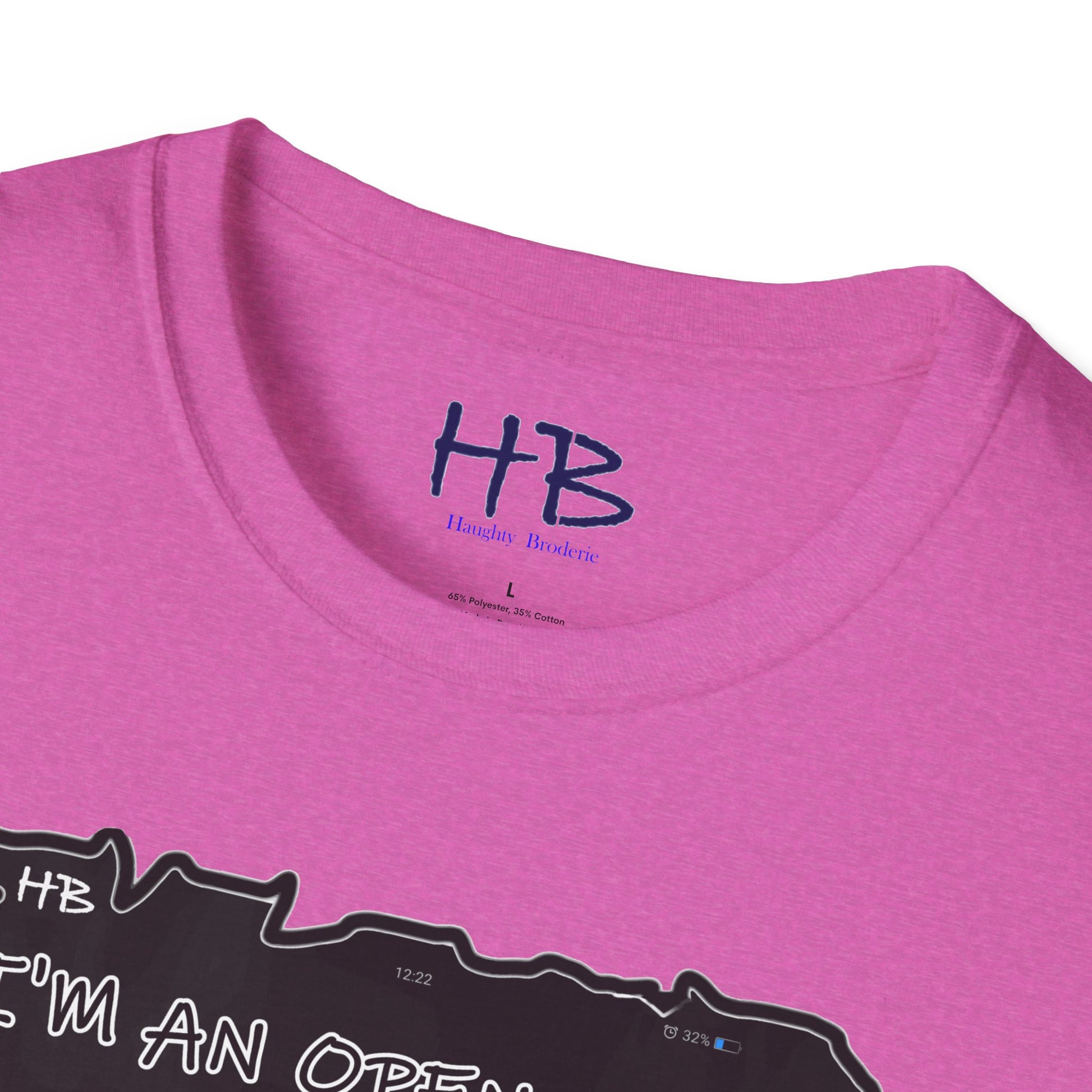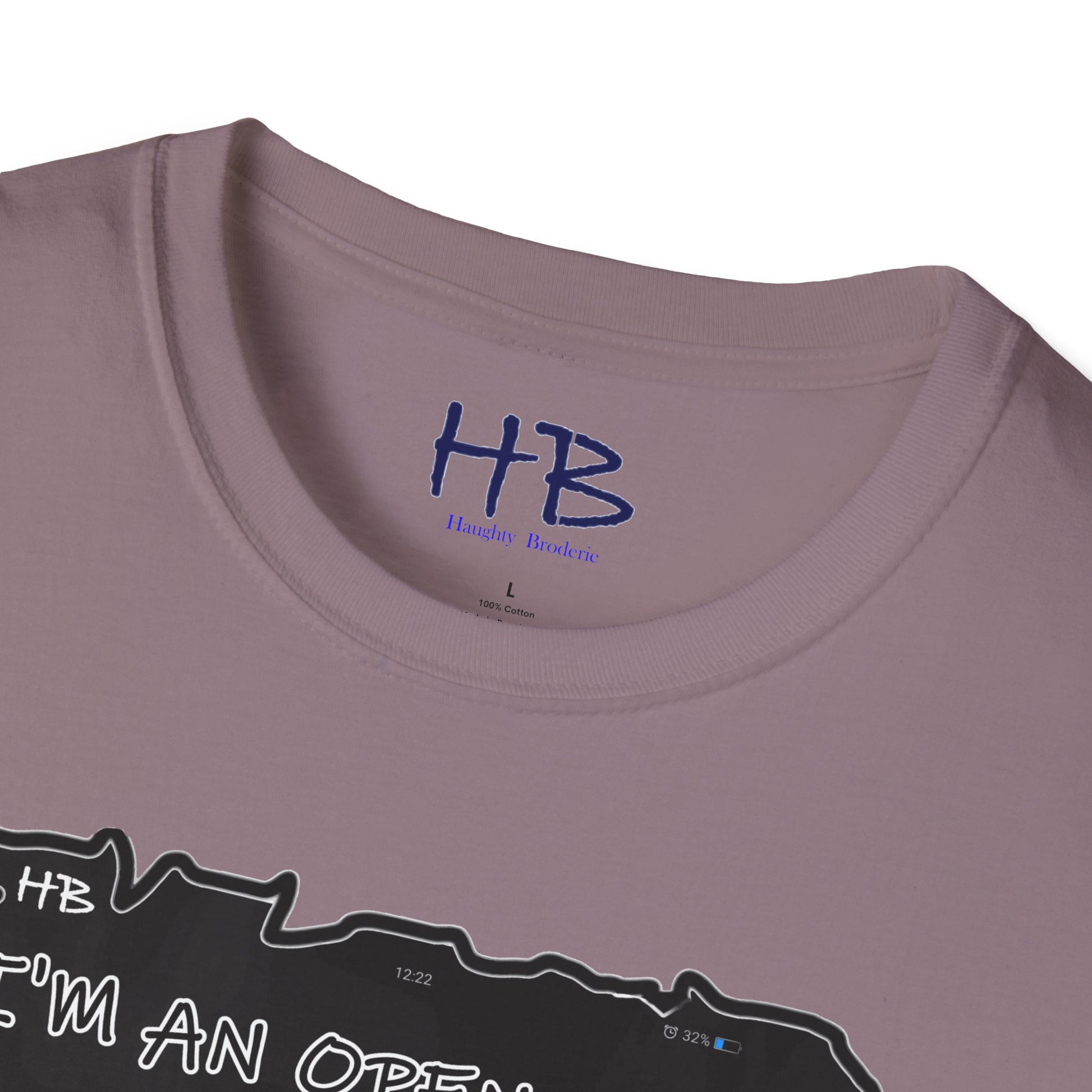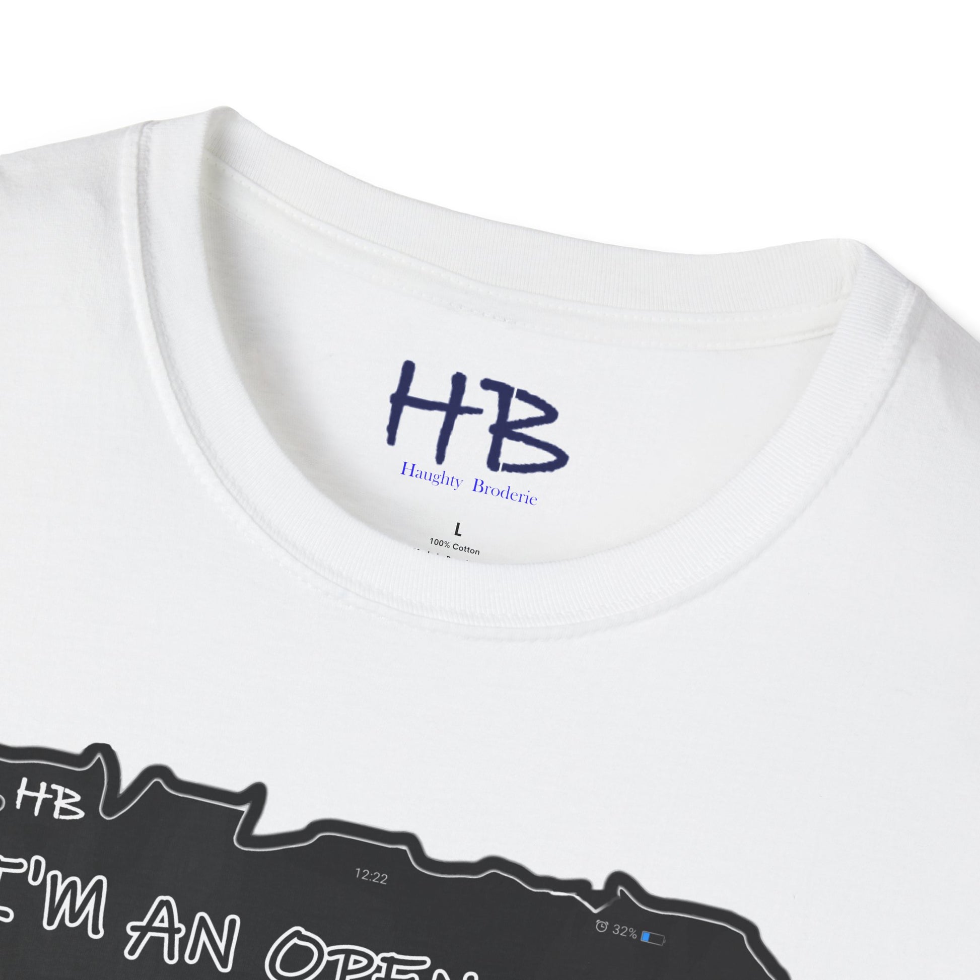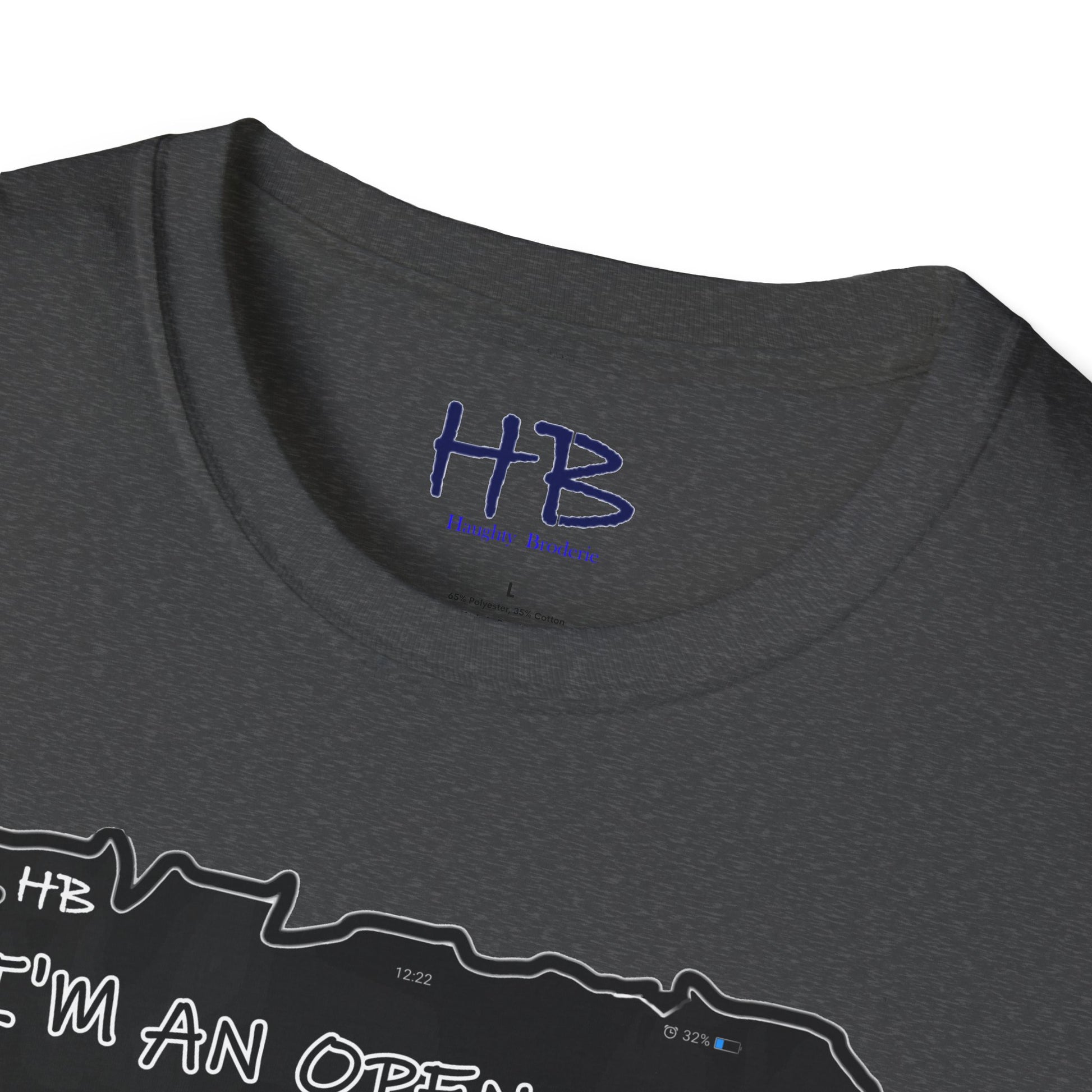 The text boldly declares, "I'M AN OPEN BOOK, CODE-WISE," weaving an intricate narrative that transcends the digital realm into the real world. This isn't just a shirt; it's a symbol of transparency, a visual key unlocking the wearer's affable nature. The passcode, though safeguarding the device, paradoxically signals an open invitation to connect with ease.