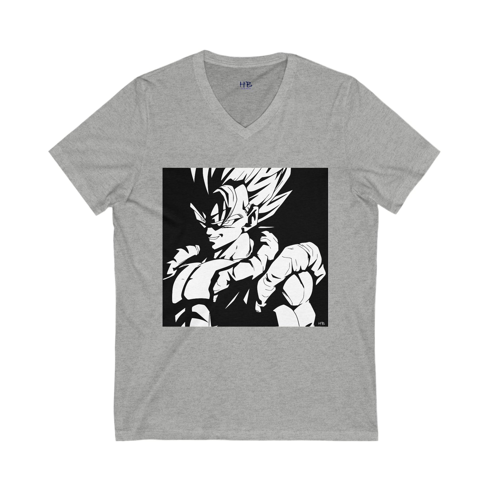Japanese Superhero anime in black and white (Unisex Jersey Short Sleeve V-neck - Comfortable Everyday Wear)