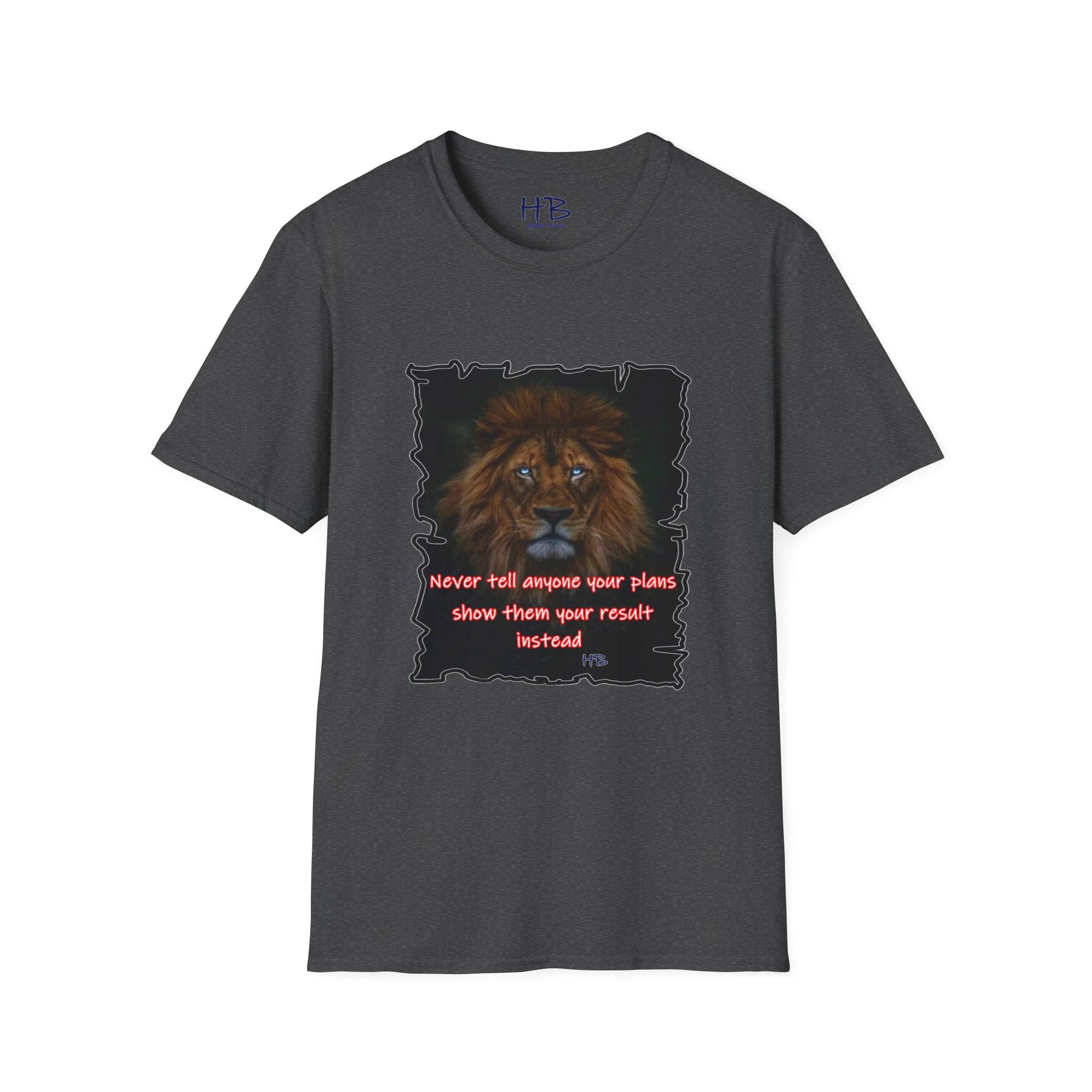 In a world where actions speak louder than empty promises, this tee shirt serves as a reminder that success is best showcased through results, not proclamations. It inspires not only the wearer but also those who have the privilege to share space with the person proudly sporting this lion-themed tee shirt. Join the ranks of those who understand the importance of letting your accomplishments roar, just like the King of the Jungle.