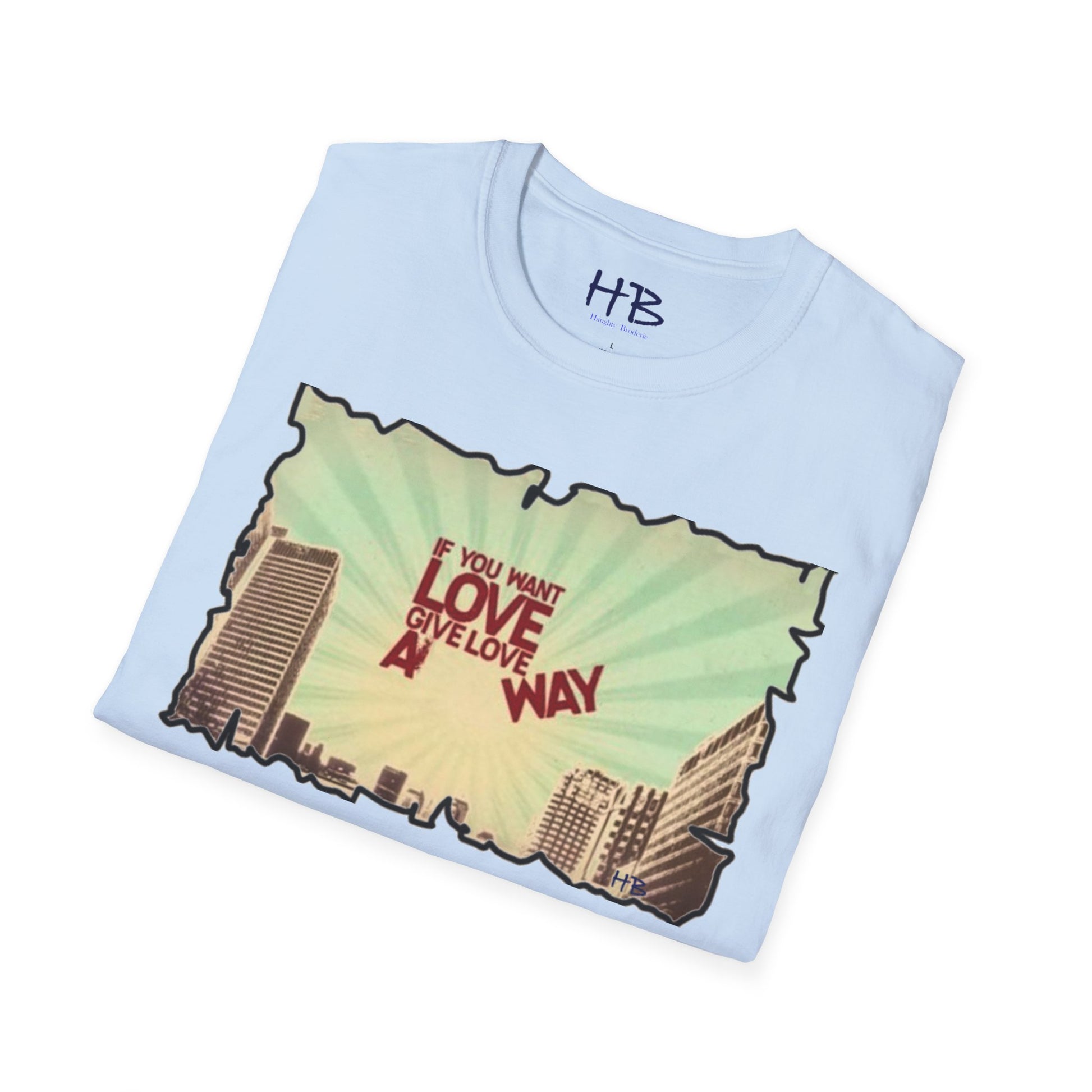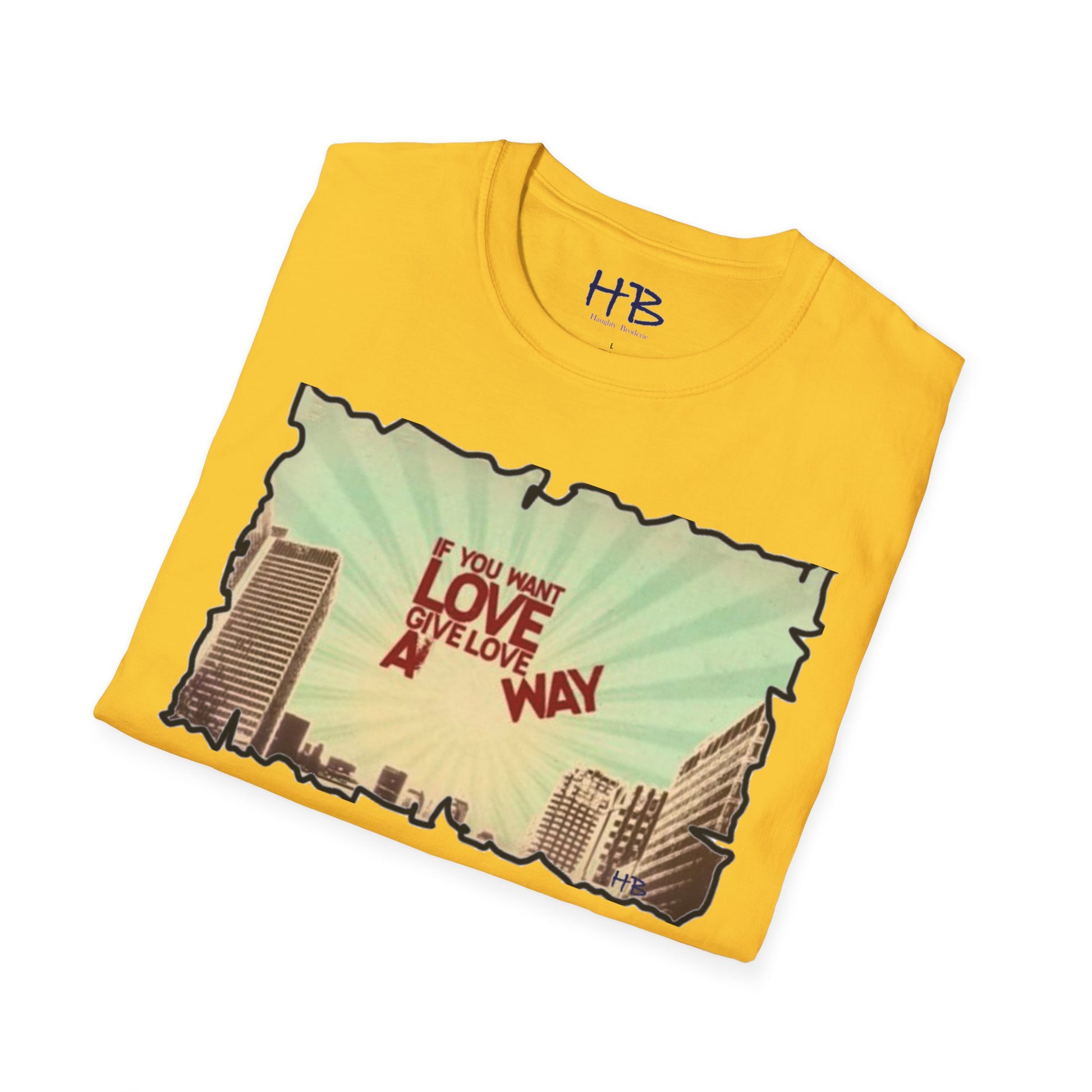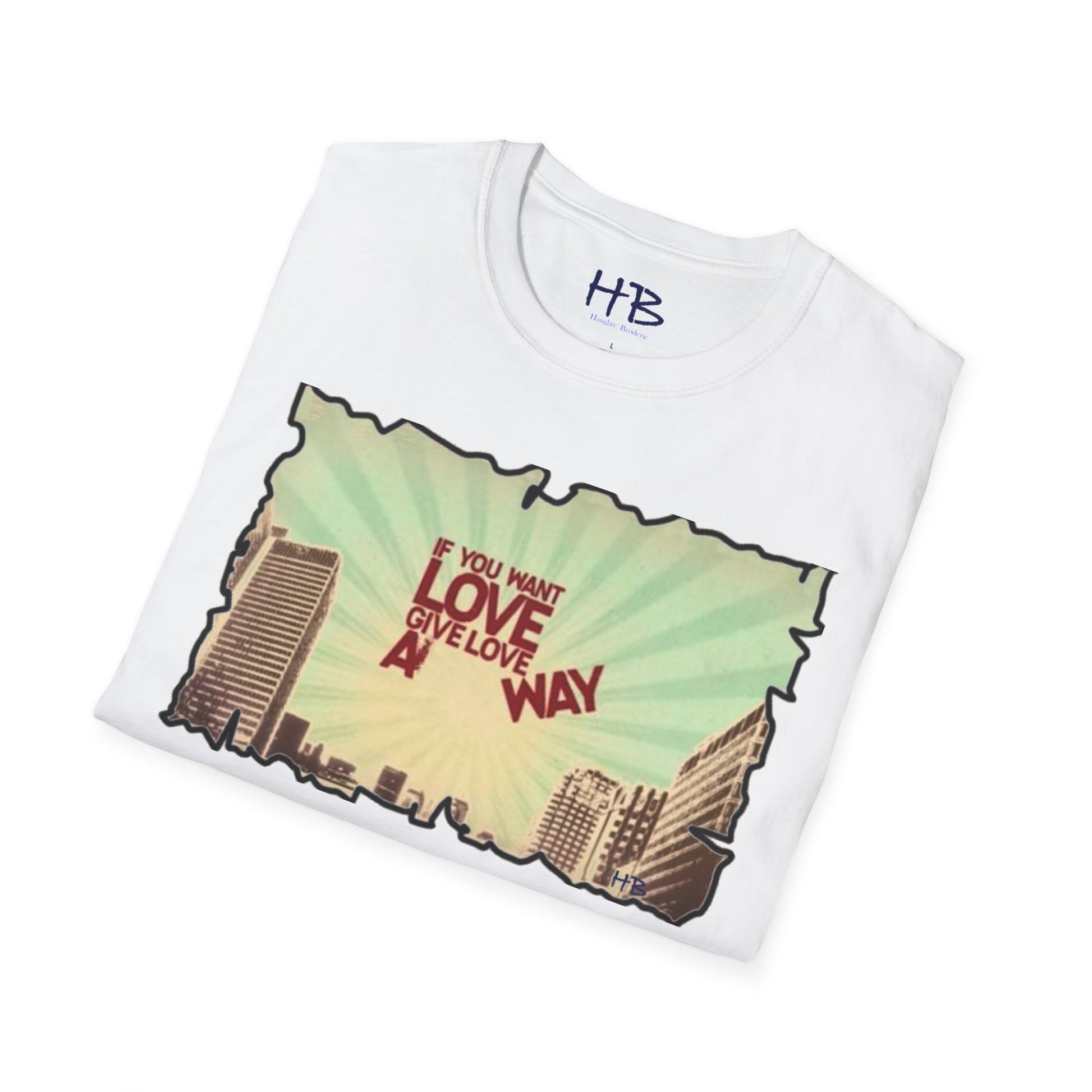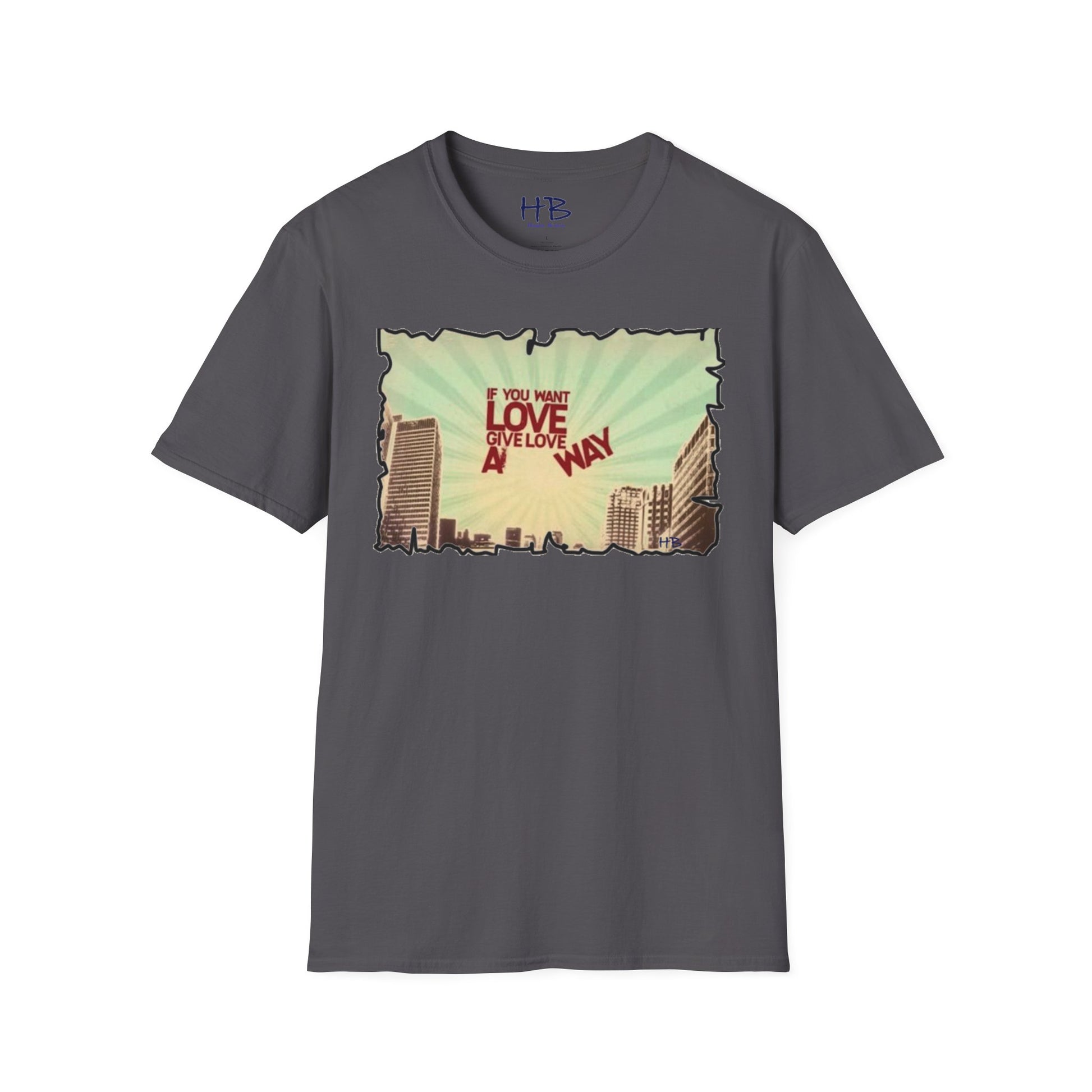 So, step into the love-giving revolution and wear our Love-Giving Cityscape Tee Shirt proudly. Become an advocate for love and change, and witness the positive impact you make in the lives of those around you. Let this tee be a powerful statement of your commitment to building a world fueled by love, and watch as hearts are touched, and connections are forged.