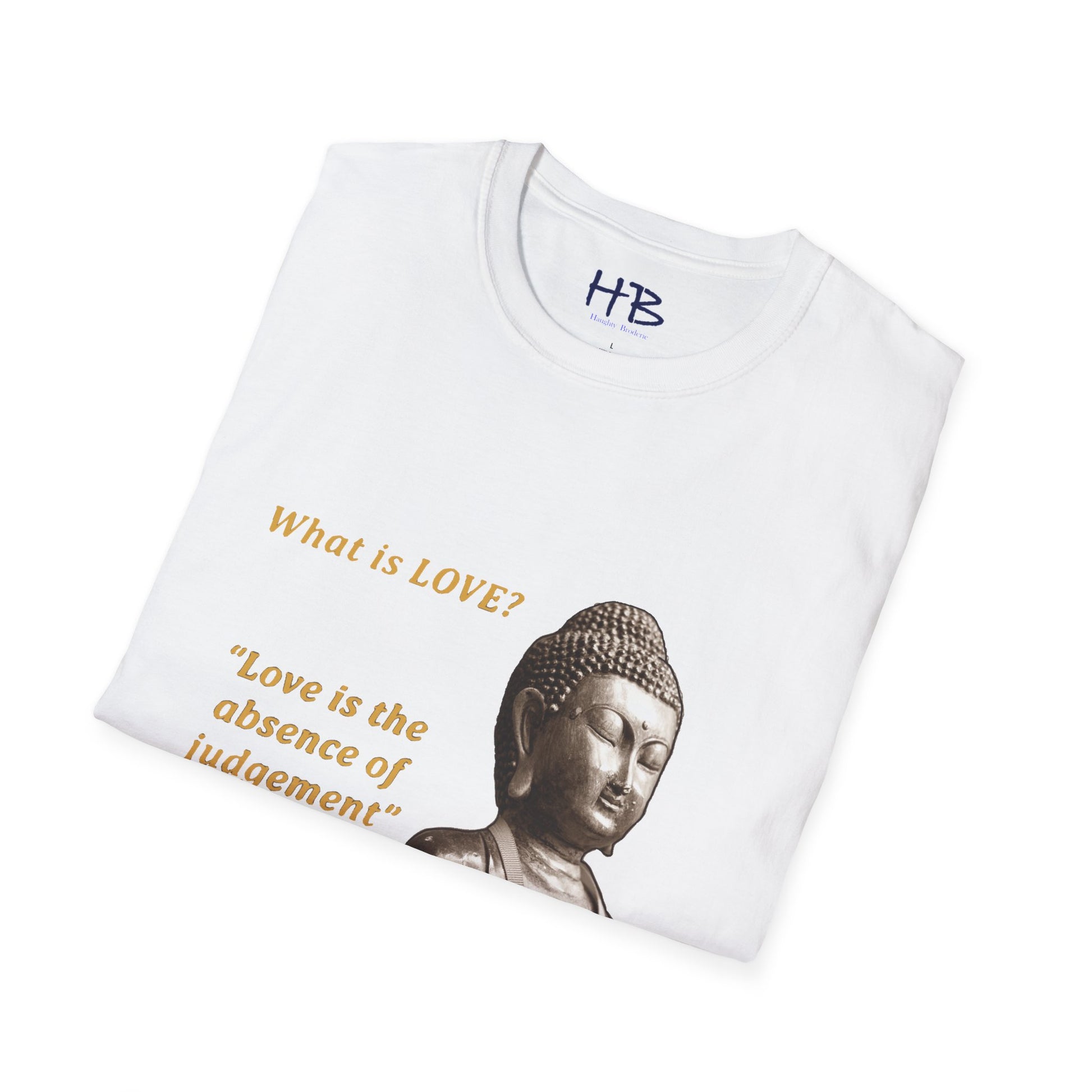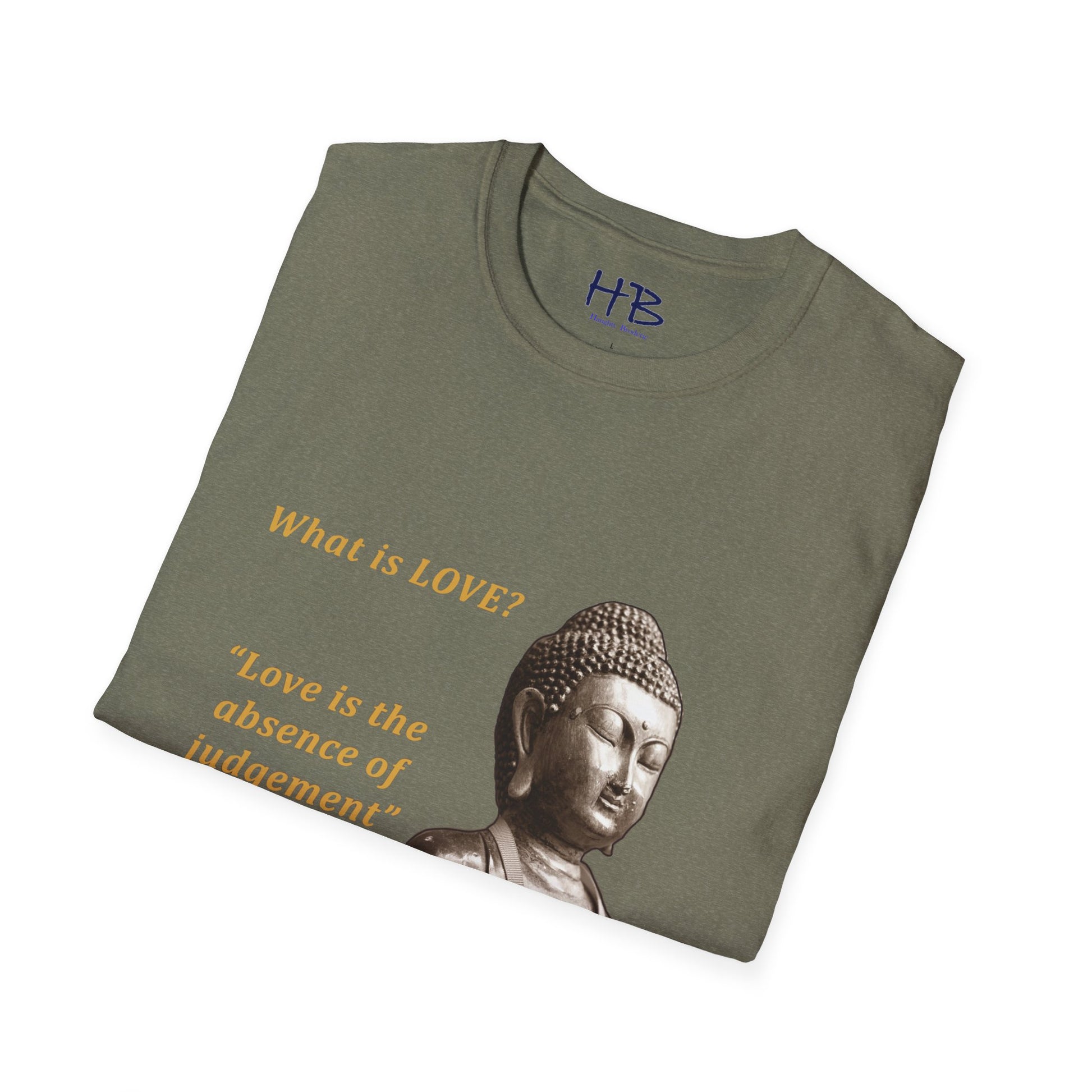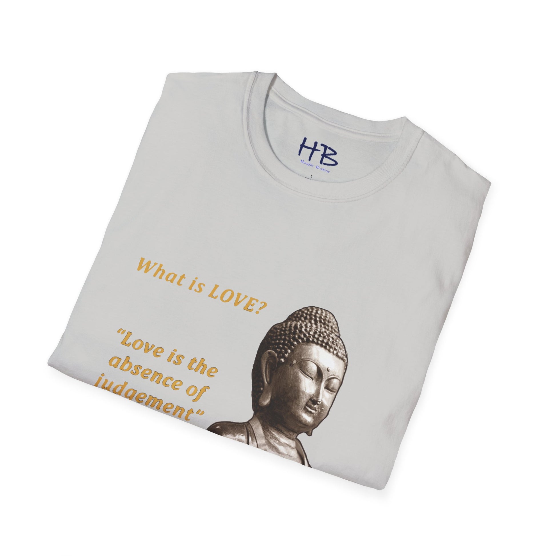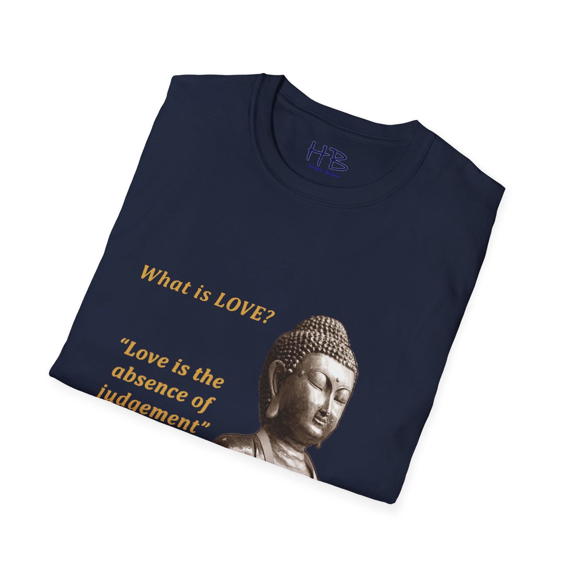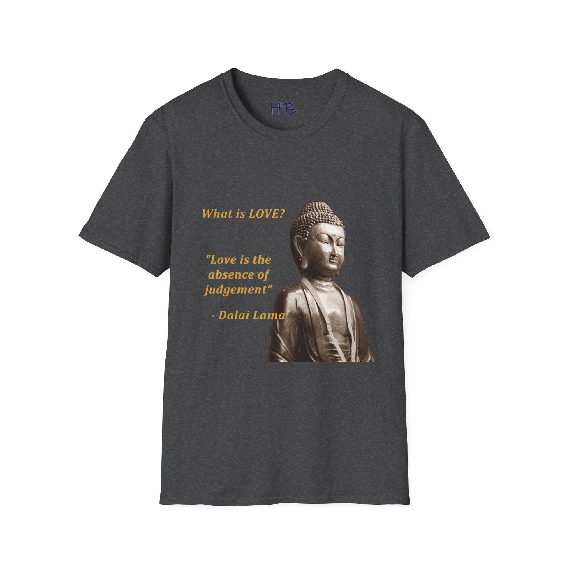 Introducing our newest tee shirt design - a tribute to the wisdom of the Dalai Lama. This tee shirt features an image of a stone Buddha with a powerful message that asks the age-old question, "What is Love?" The text accompanying the image reads, "Love is the absence of judgement," a profound statement that encourages us to approach others with an open heart and mind.