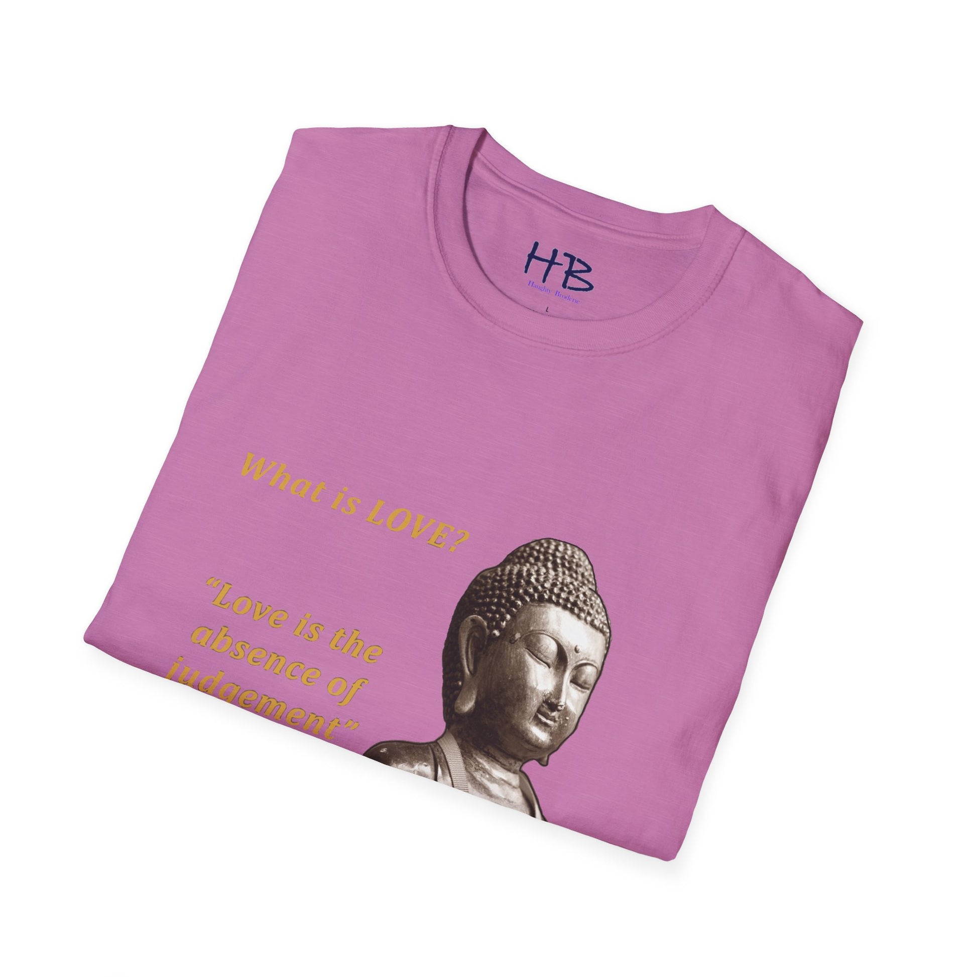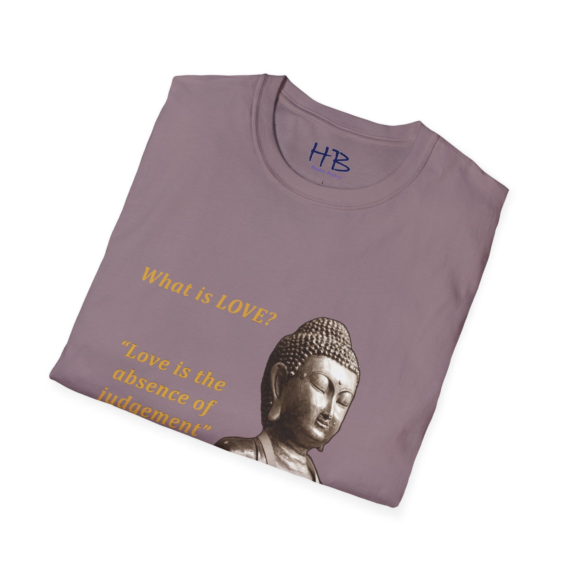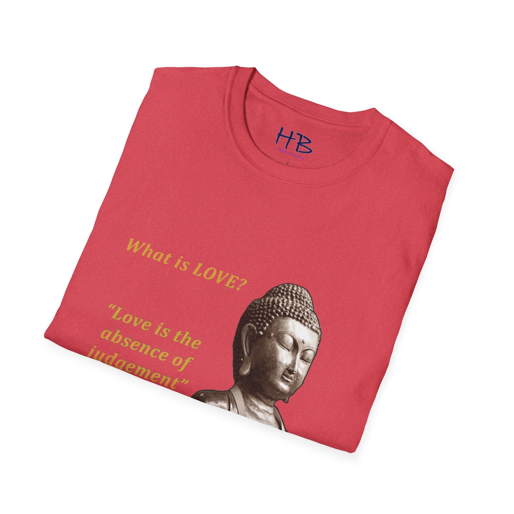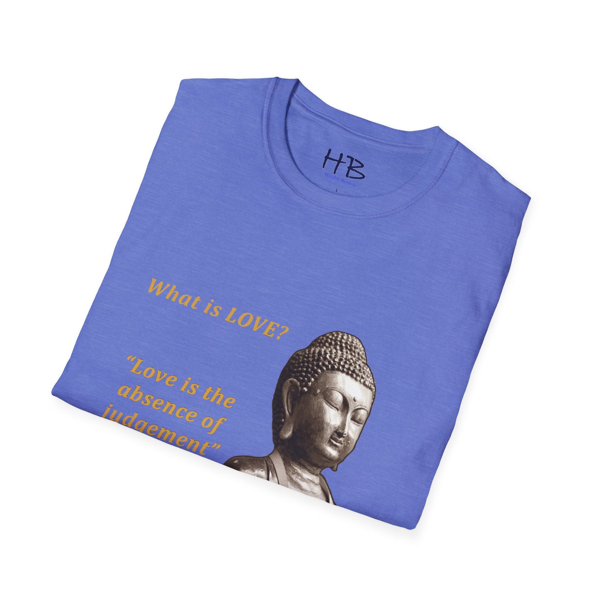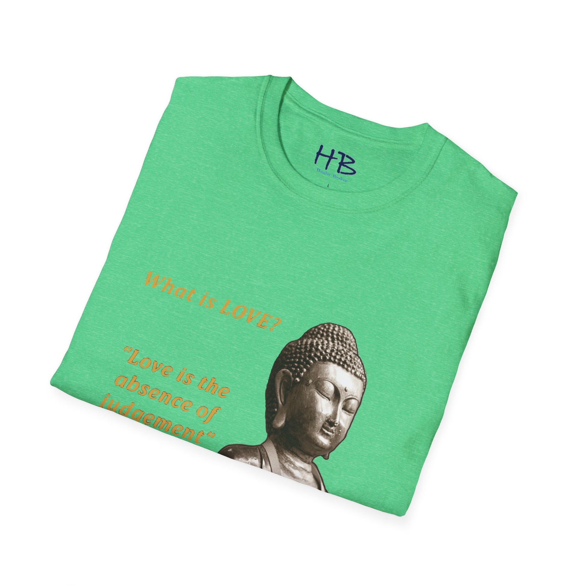 Introducing our newest tee shirt design - a tribute to the wisdom of the Dalai Lama. This tee shirt features an image of a stone Buddha with a powerful message that asks the age-old question, "What is Love?" The text accompanying the image reads, "Love is the absence of judgement," a profound statement that encourages us to approach others with an open heart and mind.