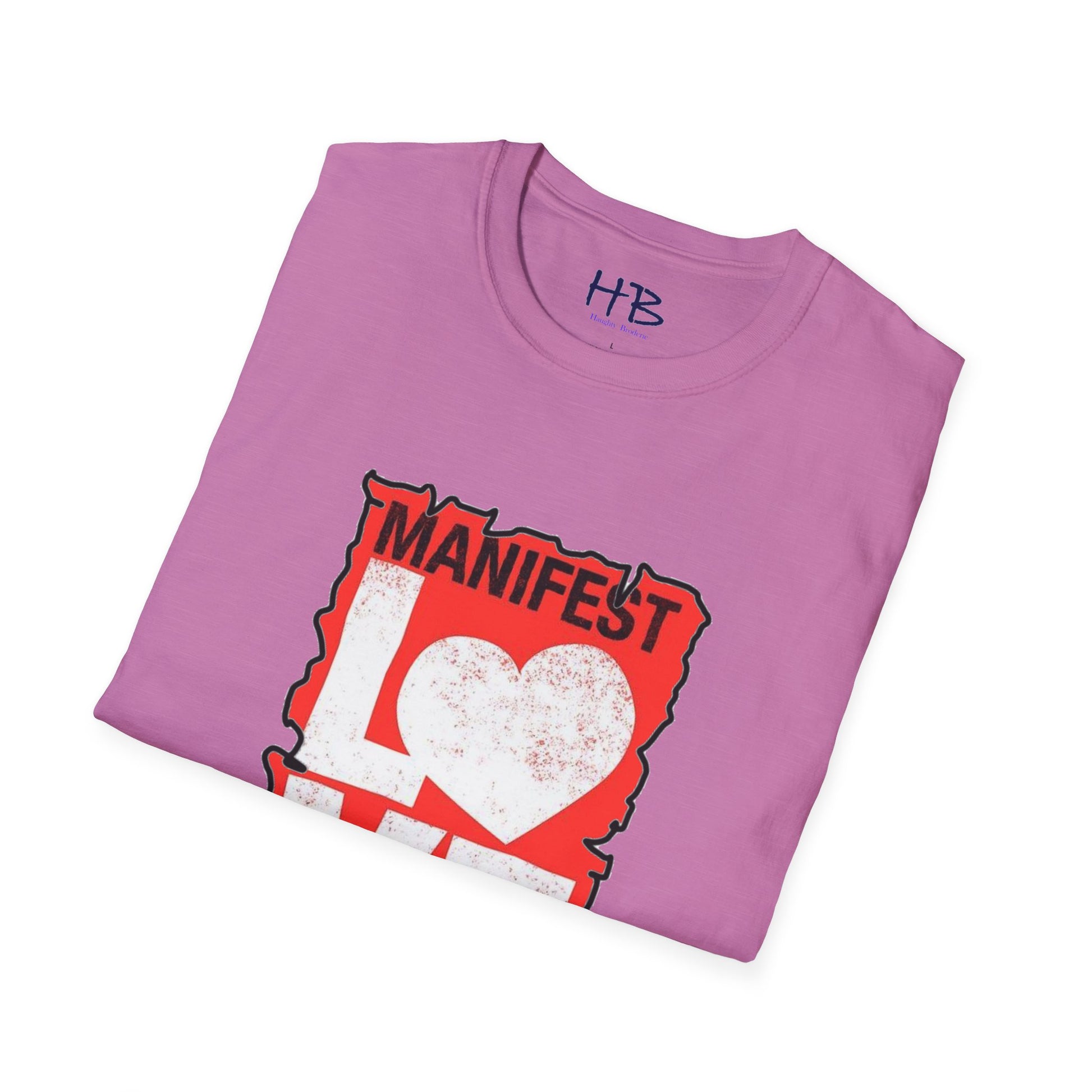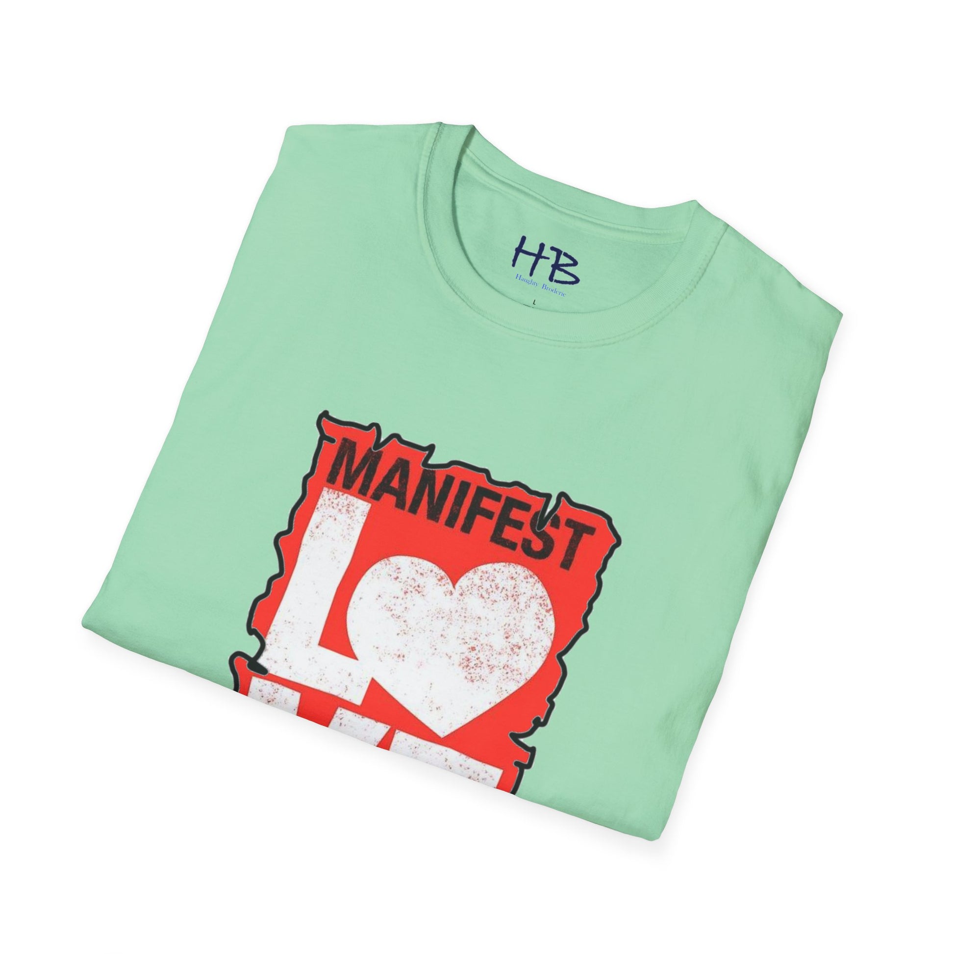 Introducing our remarkable tee shirt featuring a captivating design that will undoubtedly catch your attention. This extraordinary garment proudly showcases a powerful message that resonates deeply with our modern world. Emblazoned across the chest is the phrase "Manifest Love," where the letter "O" in "Love" takes the form of a beautifully crafted white heart, symbolizing affection, compassion, and unity.