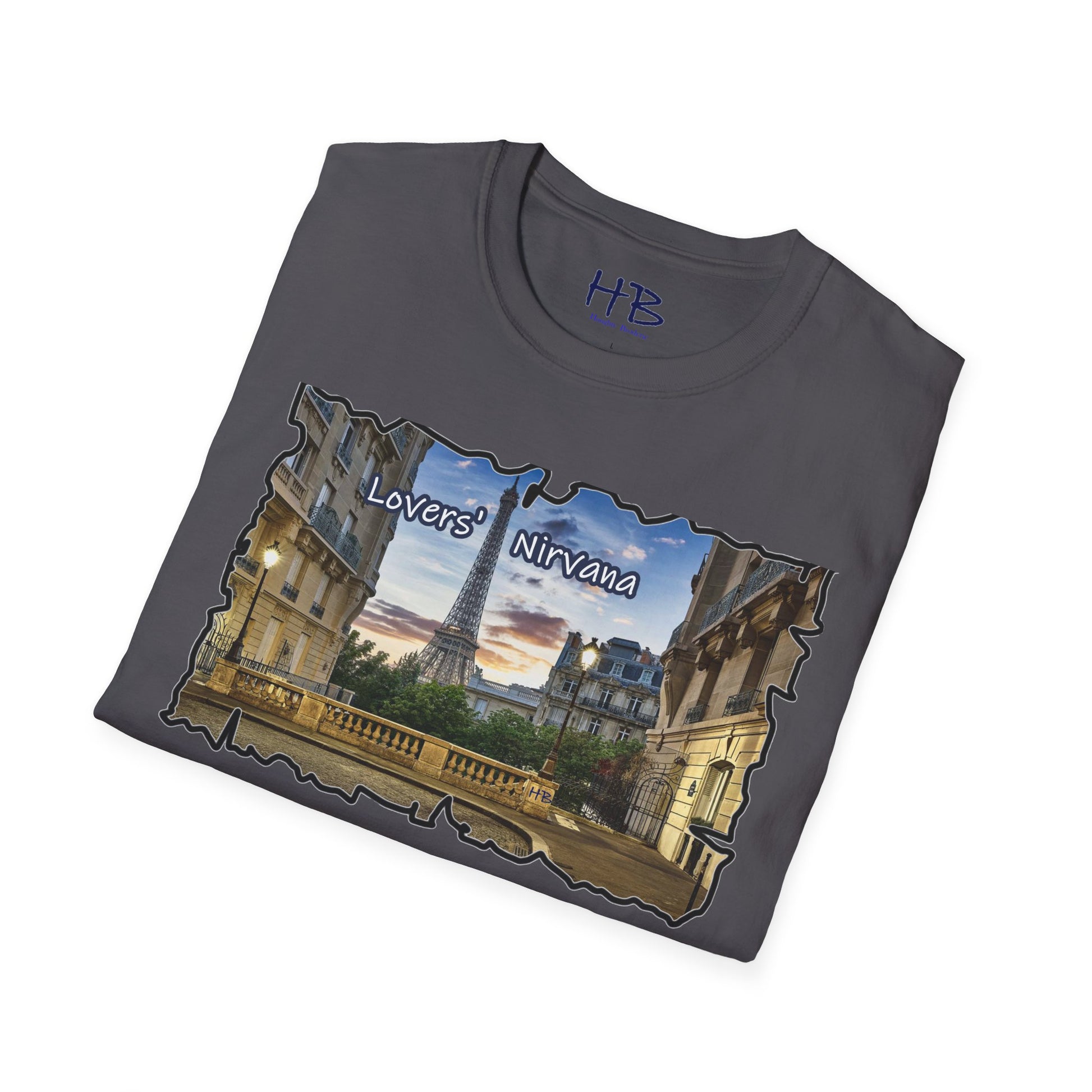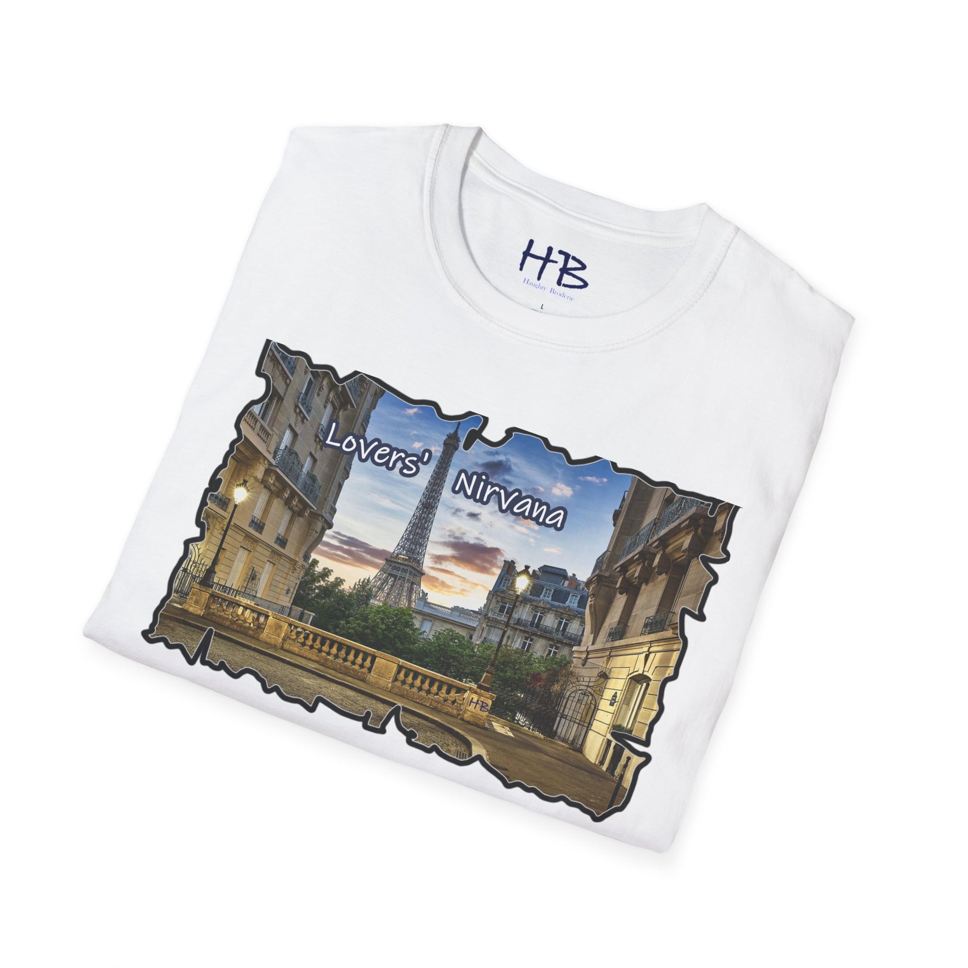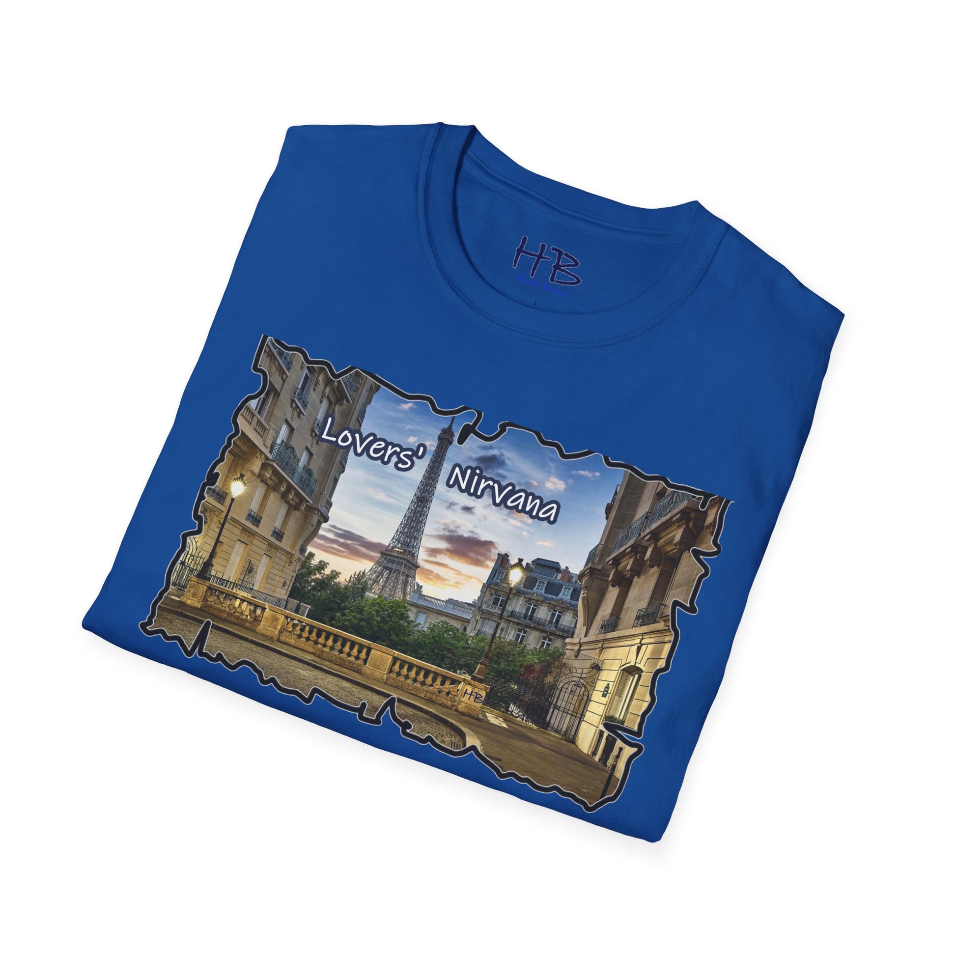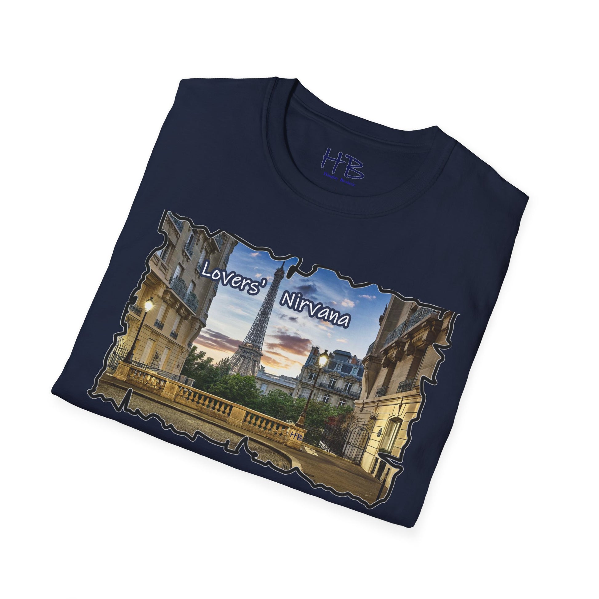 The artful convergence of the bustling terrace, the iconic landmark, and the caption "Lovers' Nirvana" is more than a mere design; it's an invitation to embrace the spirit of amour. As you don this piece, you become a living canvas, radiating the enchantment of a cherished moment against the backdrop of one of the world's most sought-after destinations.
