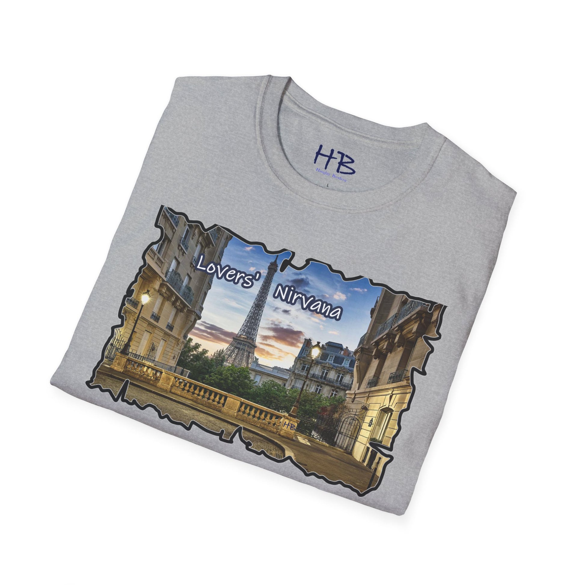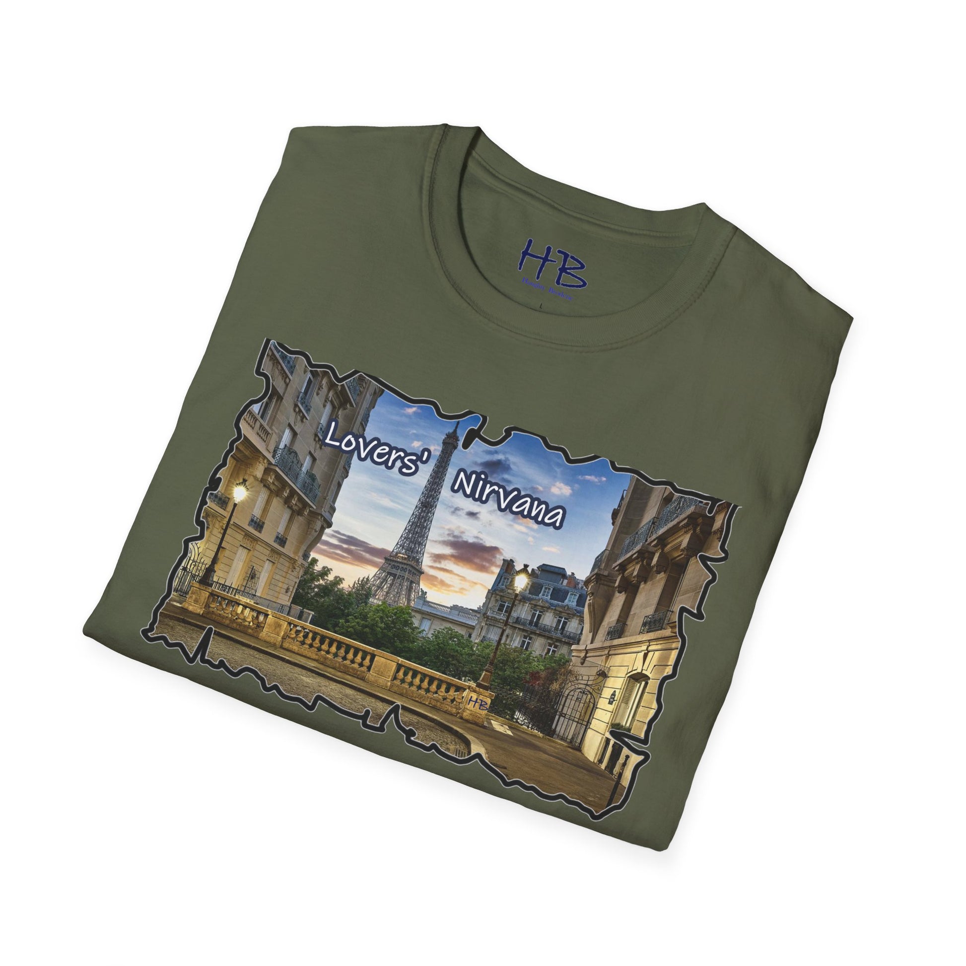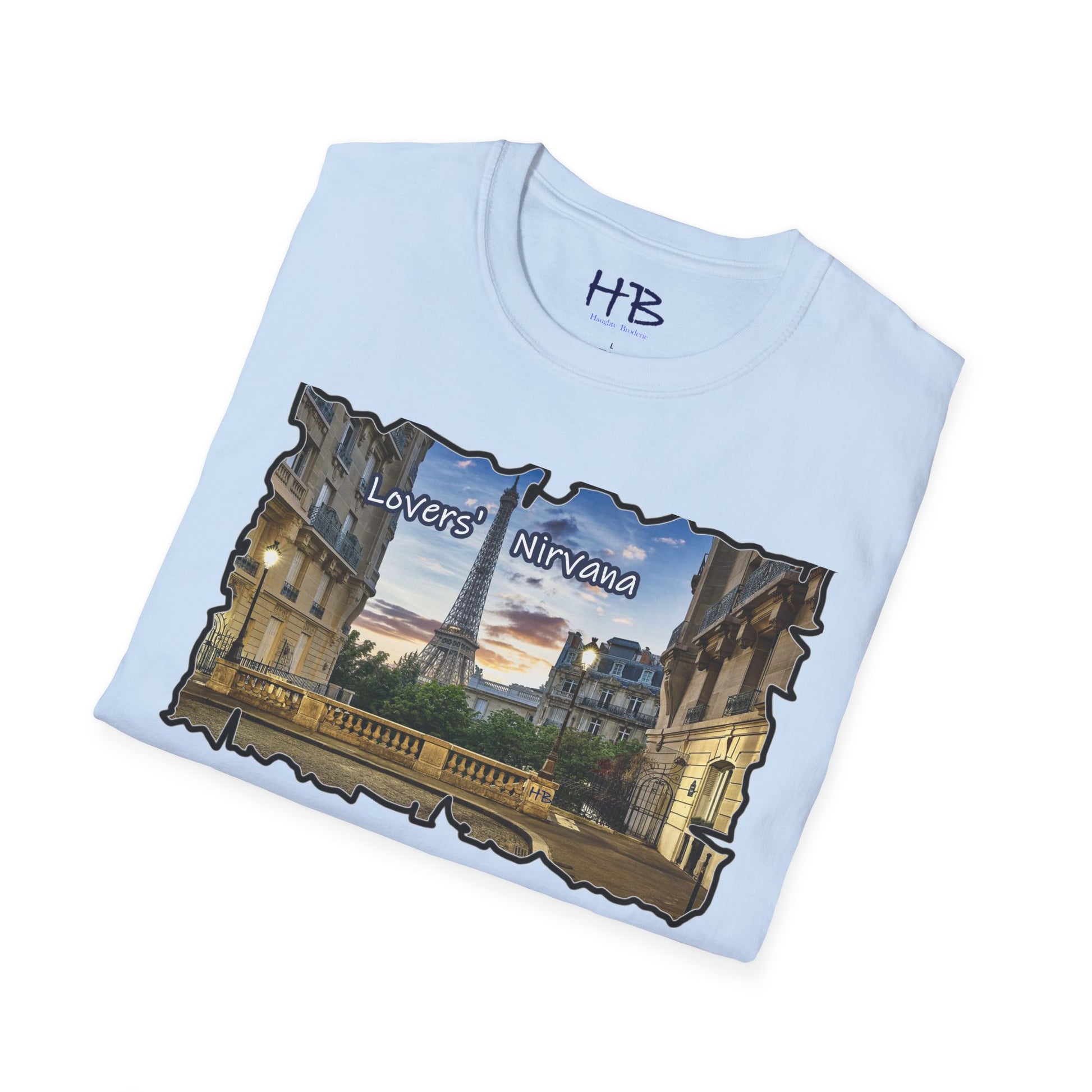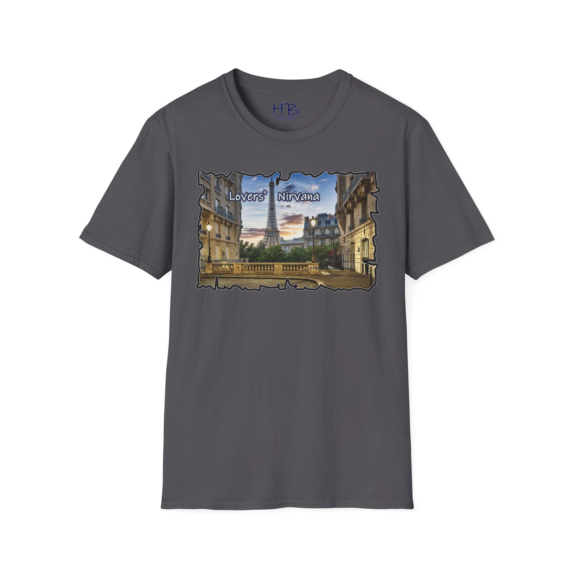 The artful convergence of the bustling terrace, the iconic landmark, and the caption "Lovers' Nirvana" is more than a mere design; it's an invitation to embrace the spirit of amour. As you don this piece, you become a living canvas, radiating the enchantment of a cherished moment against the backdrop of one of the world's most sought-after destinations.
