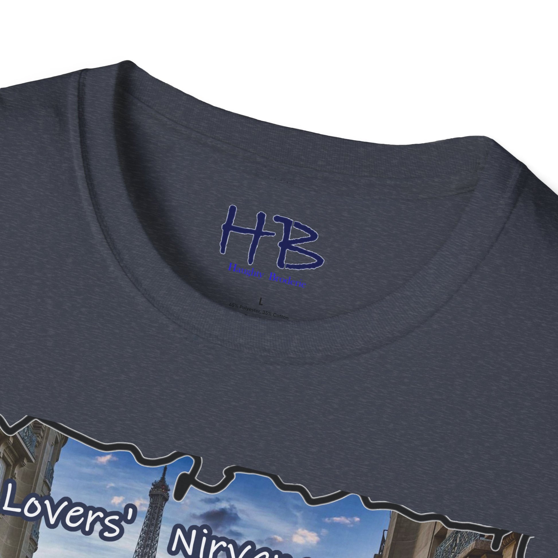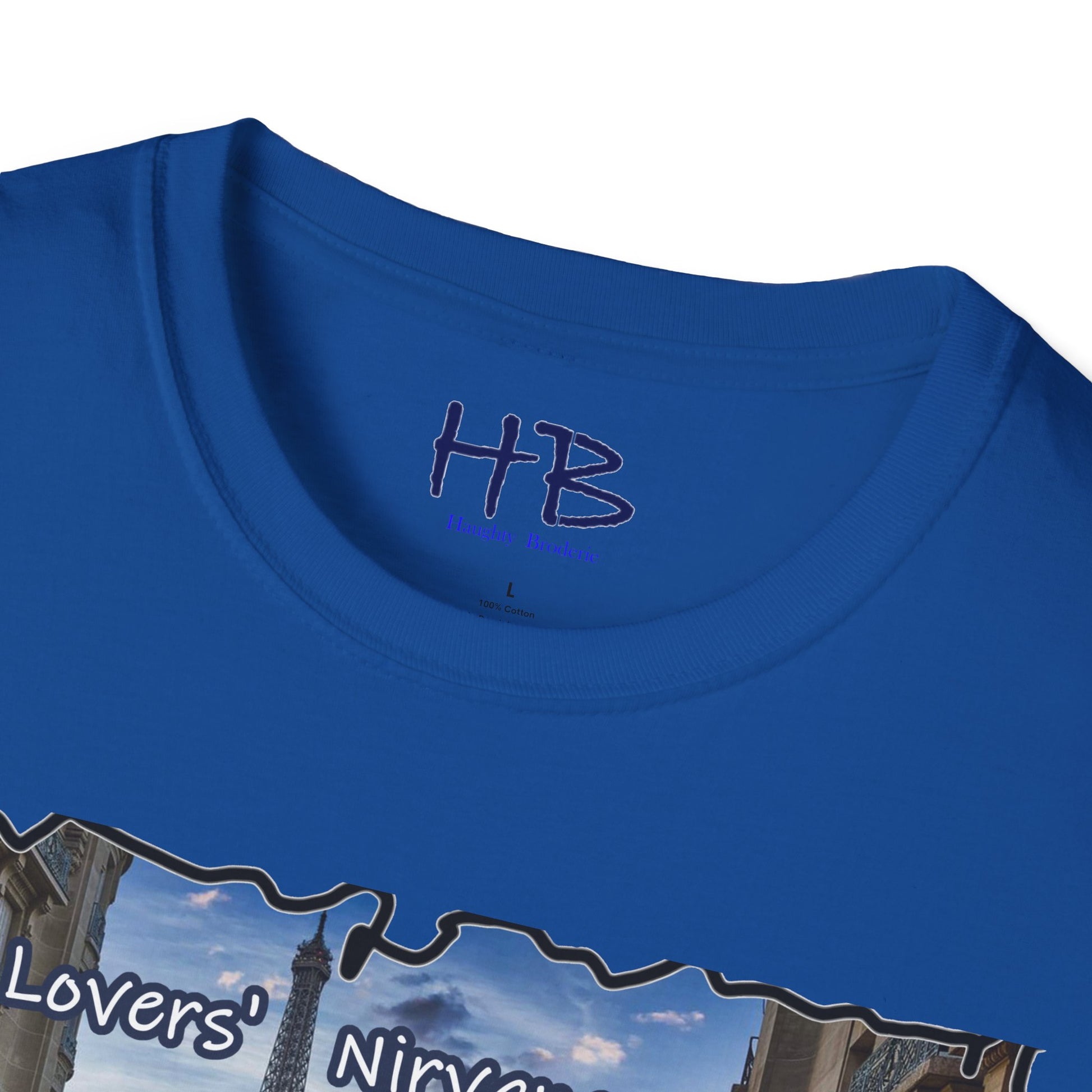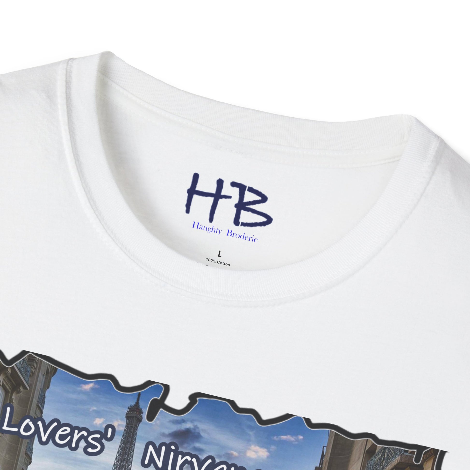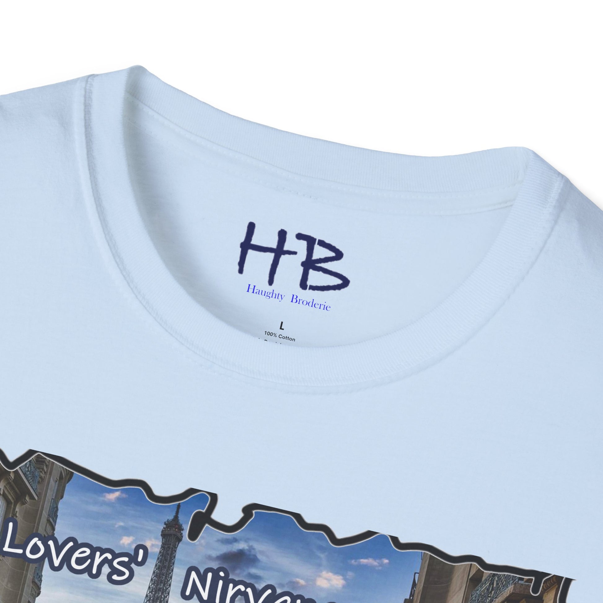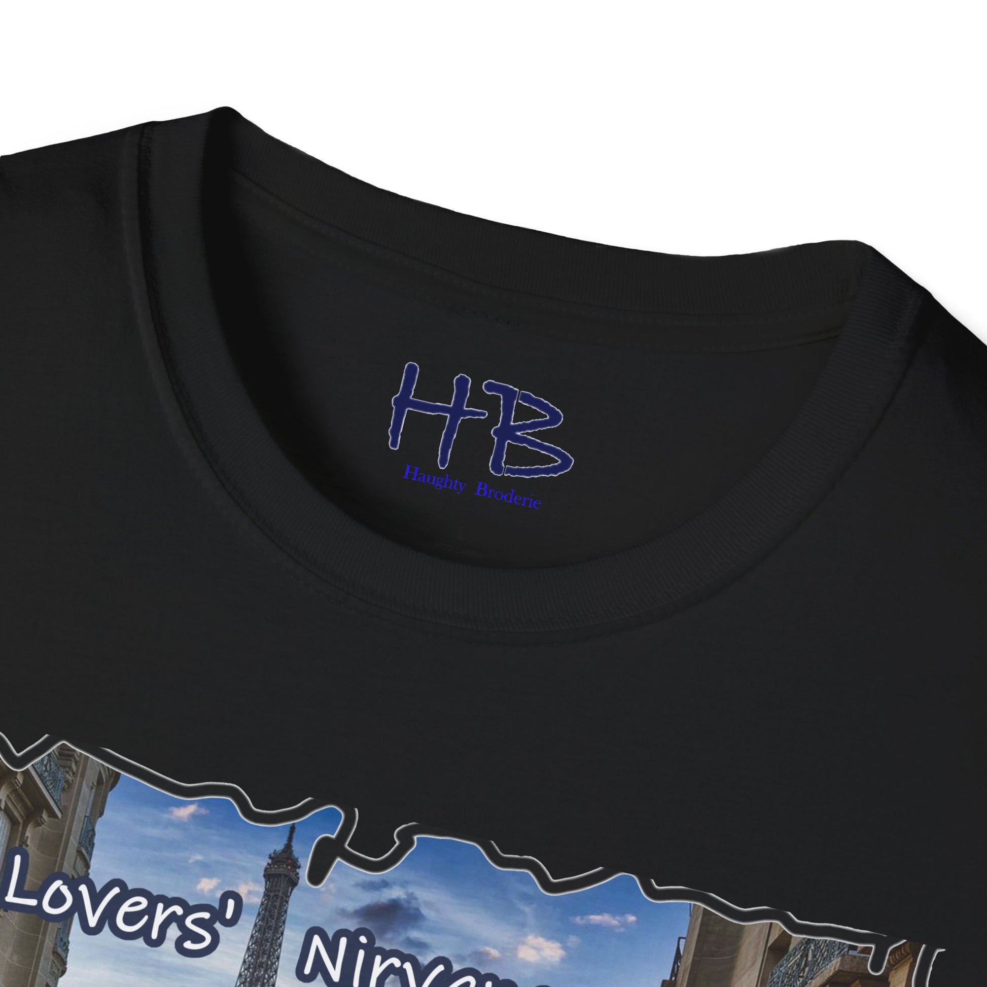 The artful convergence of the bustling terrace, the iconic landmark, and the caption "Lovers' Nirvana" is more than a mere design; it's an invitation to embrace the spirit of amour. As you don this piece, you become a living canvas, radiating the enchantment of a cherished moment against the backdrop of one of the world's most sought-after destinations.