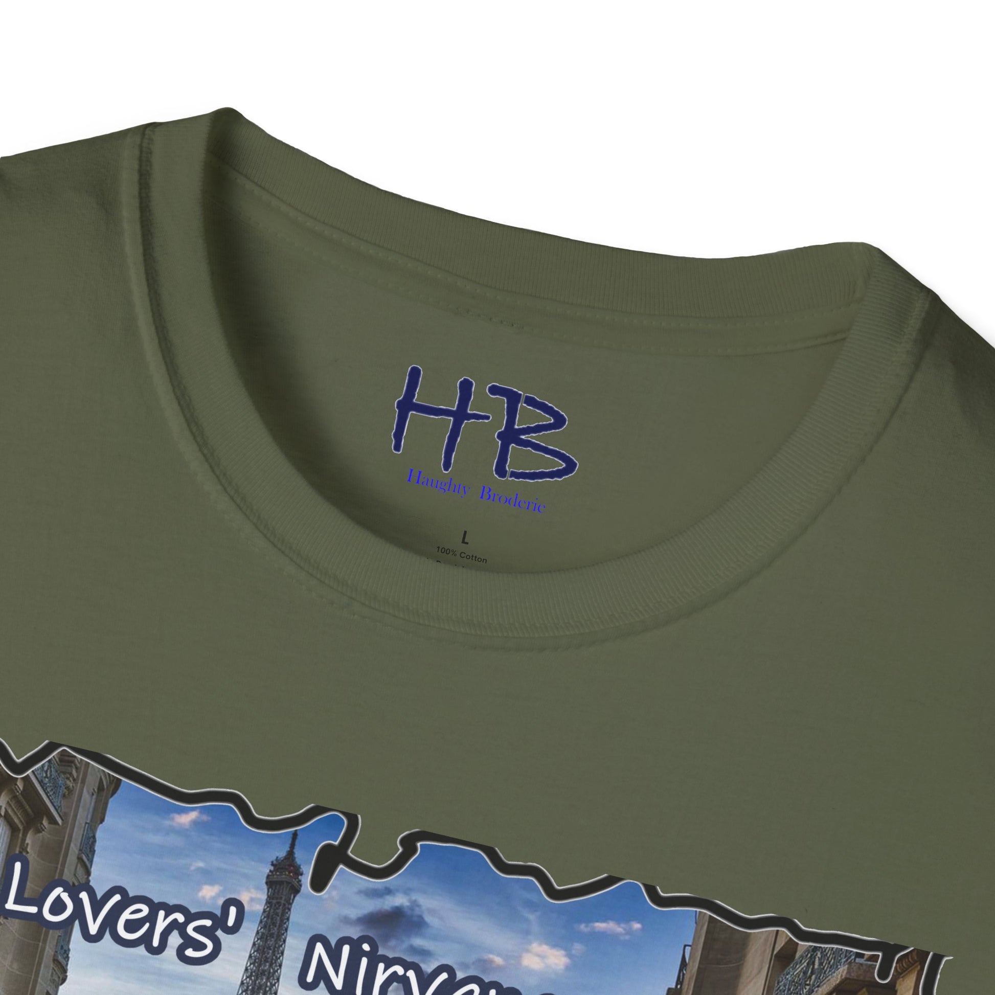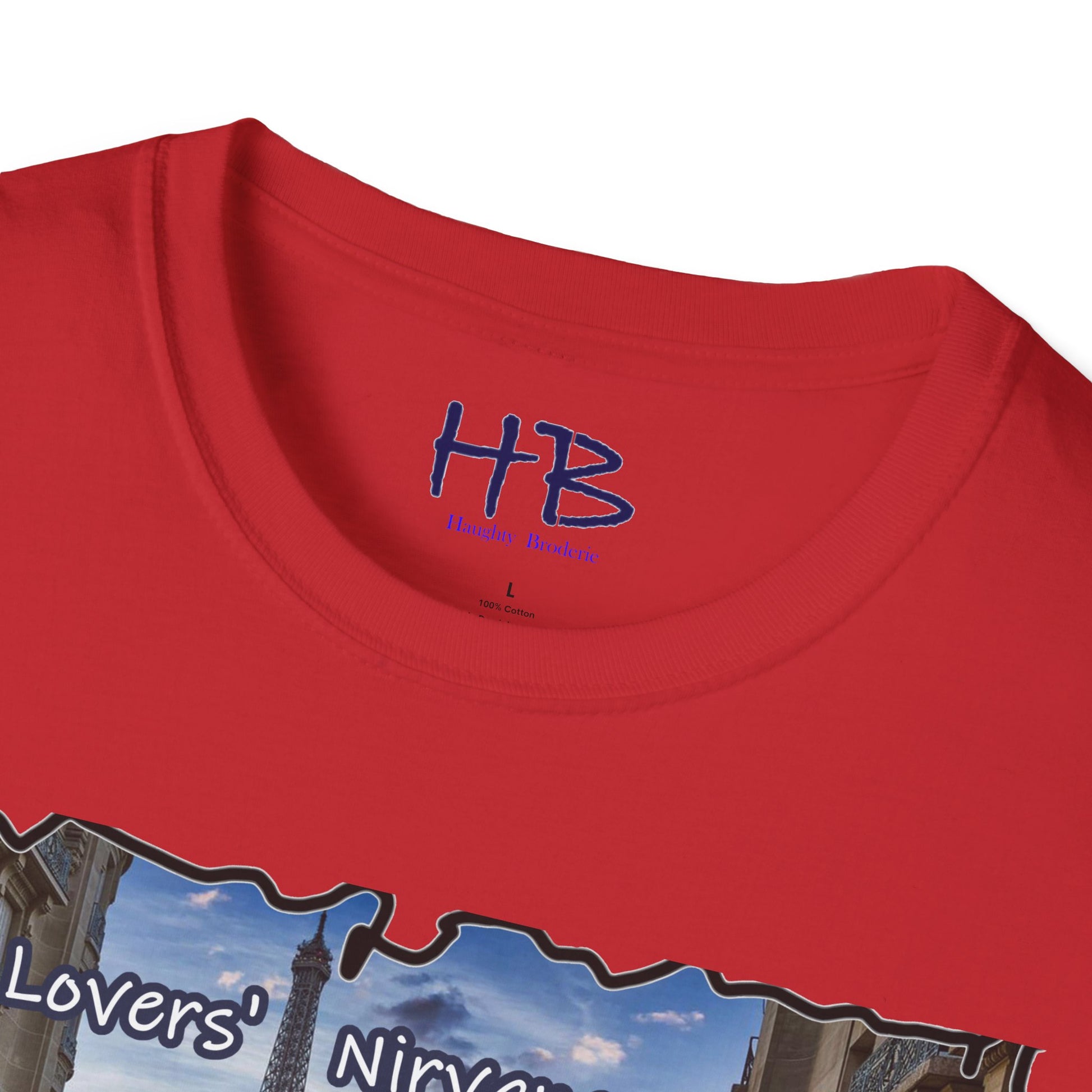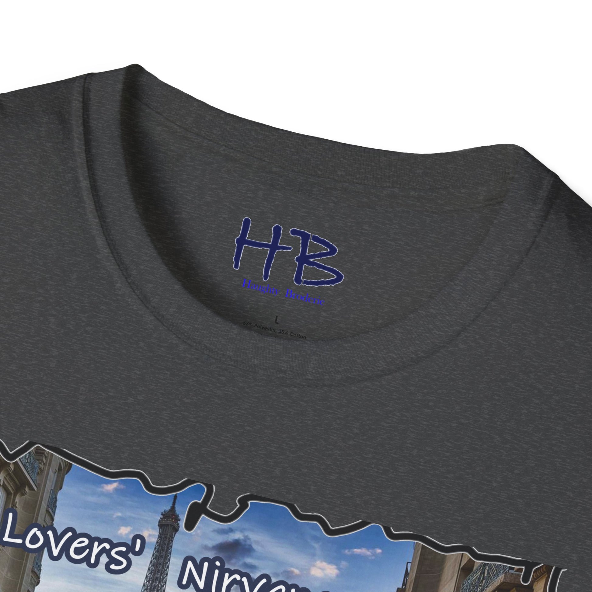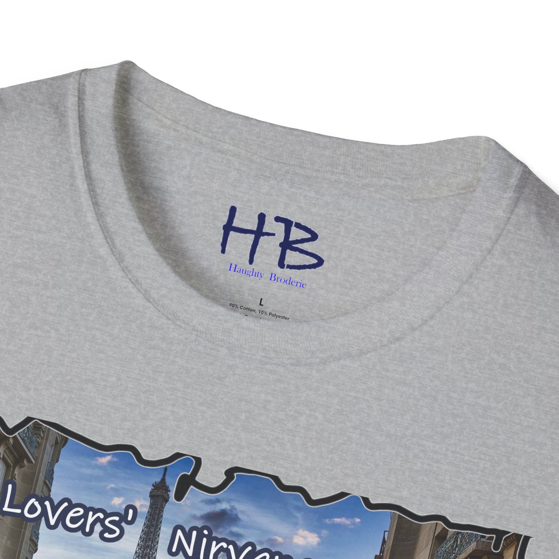The artful convergence of the bustling terrace, the iconic landmark, and the caption "Lovers' Nirvana" is more than a mere design; it's an invitation to embrace the spirit of amour. As you don this piece, you become a living canvas, radiating the enchantment of a cherished moment against the backdrop of one of the world's most sought-after destinations.