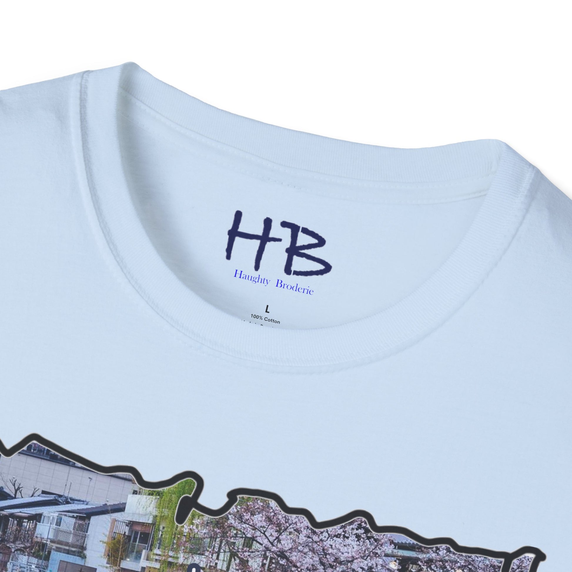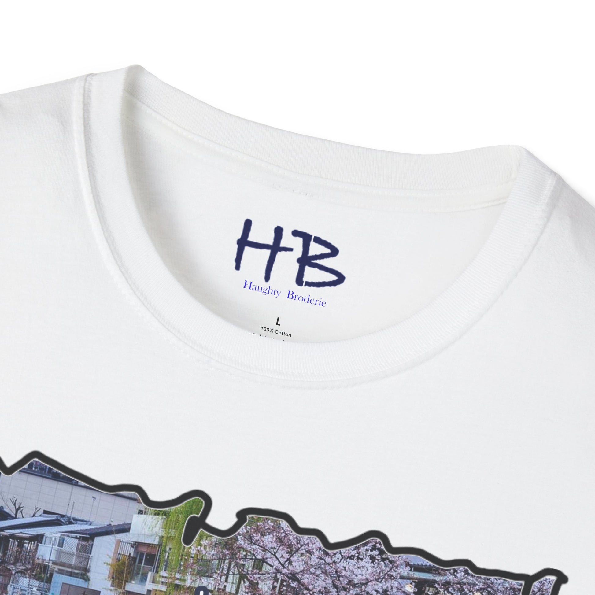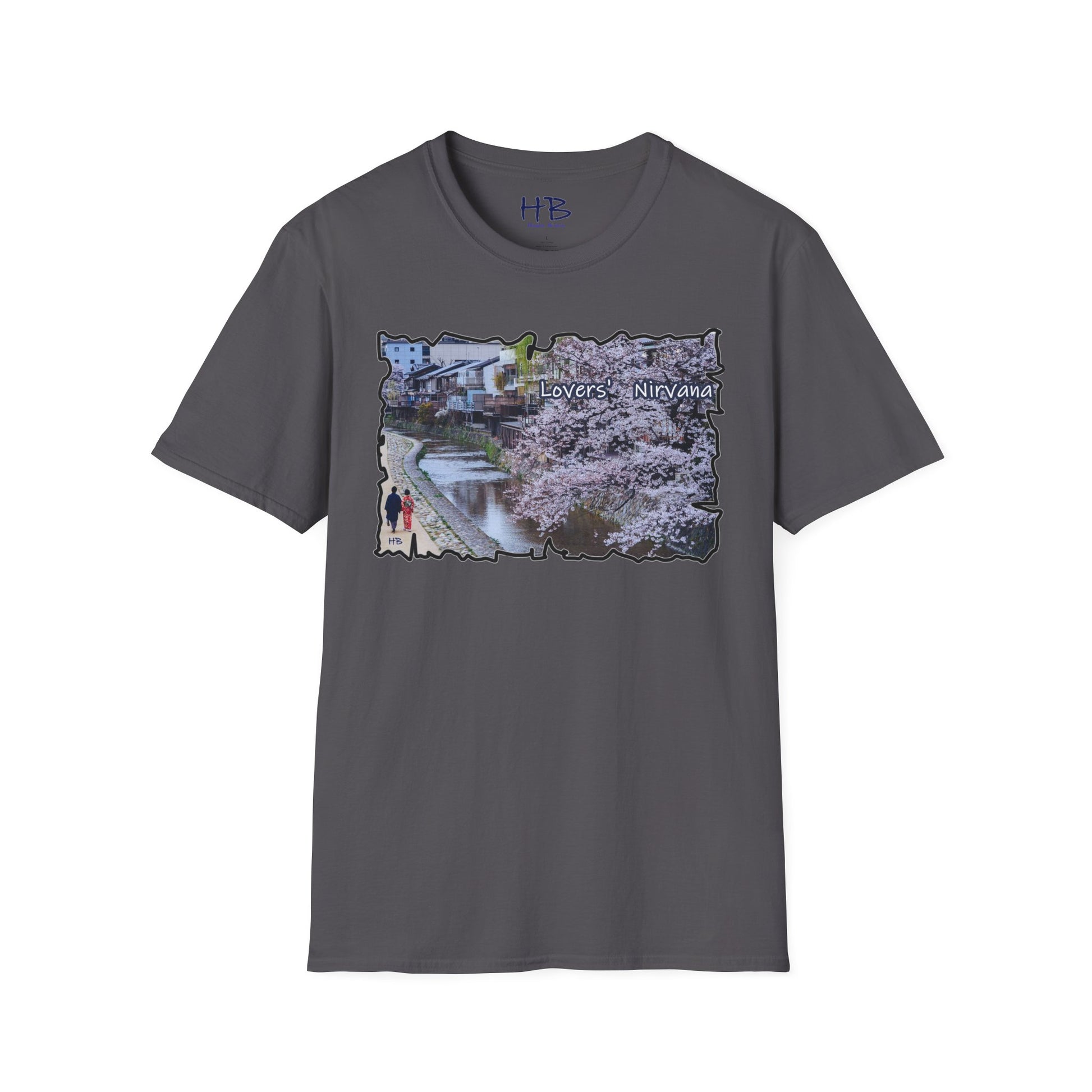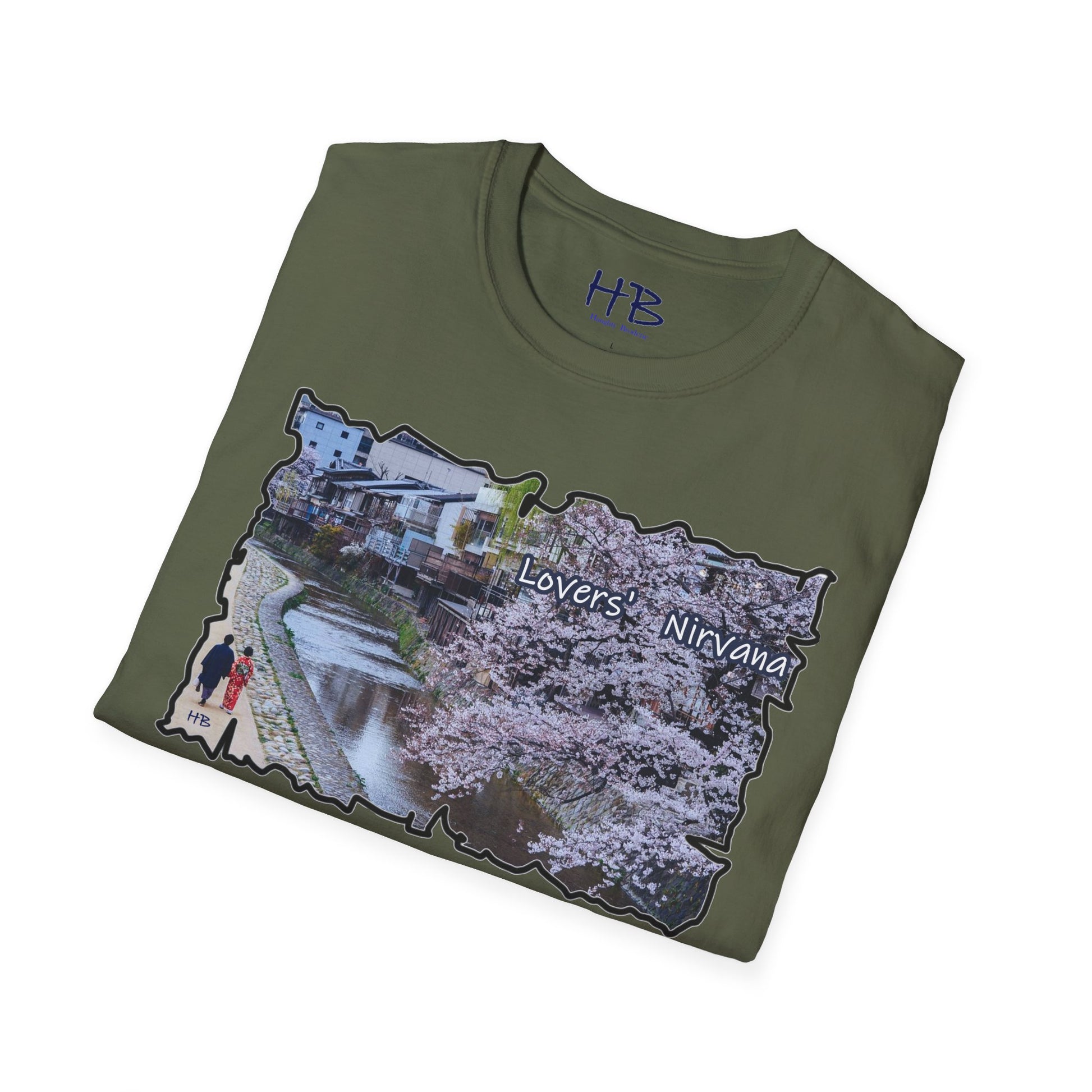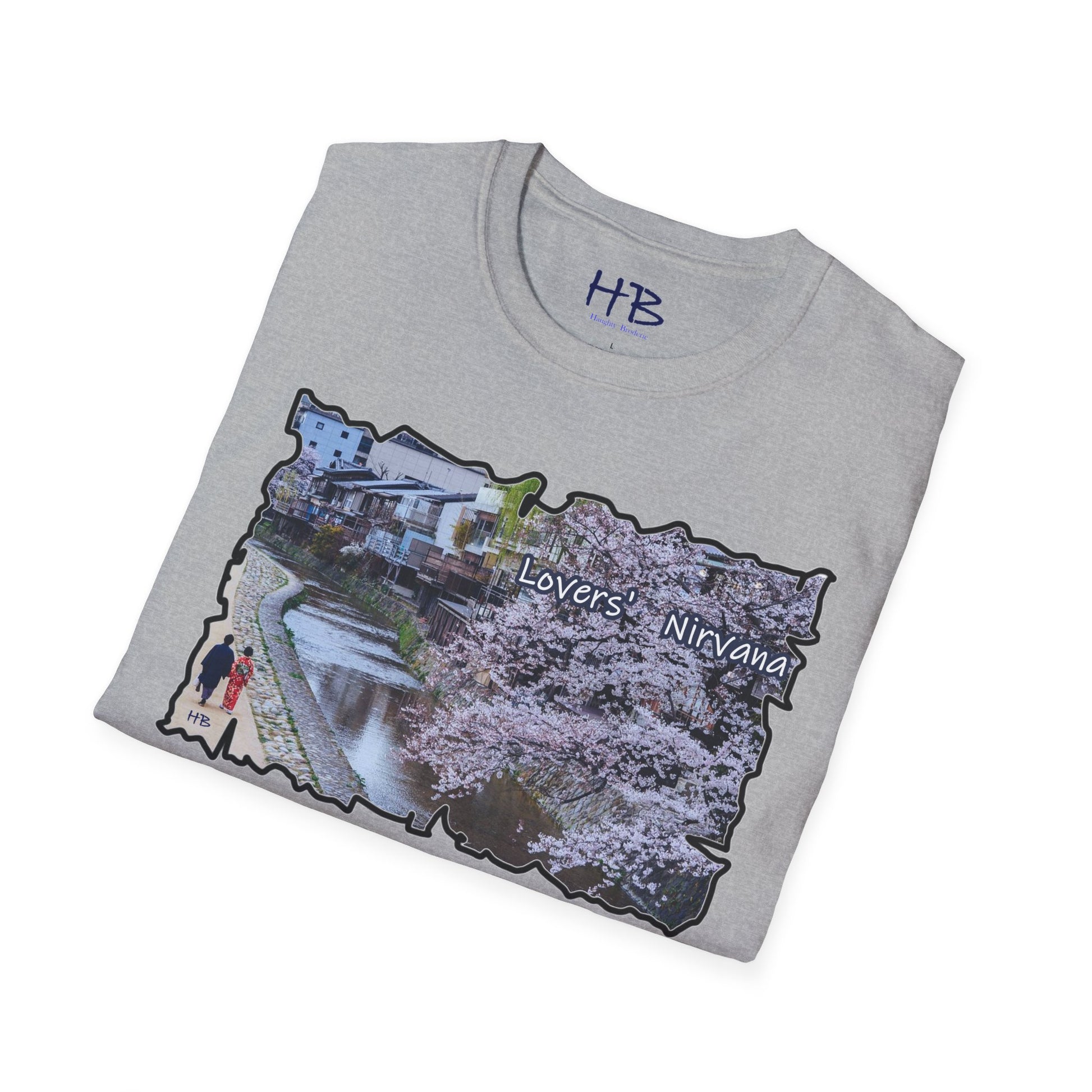 Step into the essence of timeless romance and cultural allure with our exquisite wearable masterpiece—the Lovers' Nirvana Commemorative T-shirt. This captivating garment unfolds a picturesque panorama, capturing the serenity of a sought-after tourist haven, the enchanting river crossing Kyoto. Behold the seamless fusion of Japanese architectural splendor and the delicate bloom of a Sakura tree, gracefully adorned with a cascade of pure white leaves.