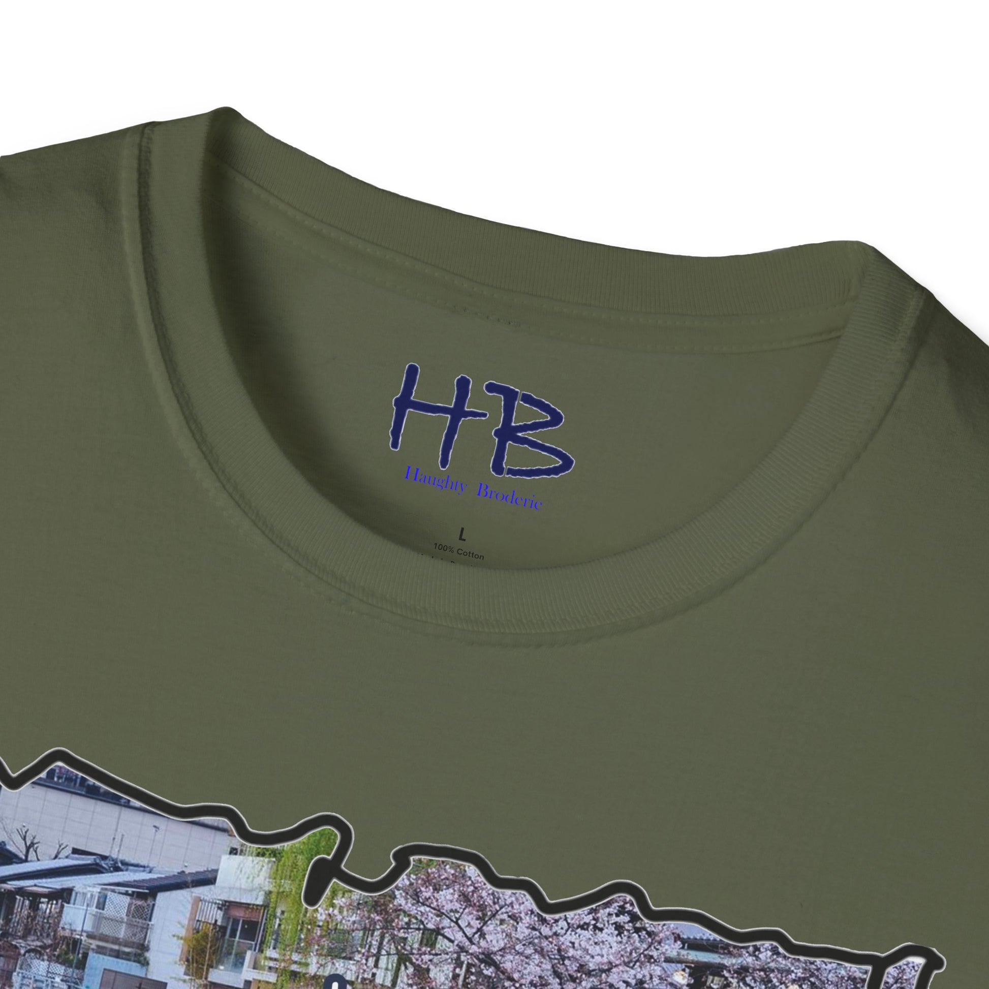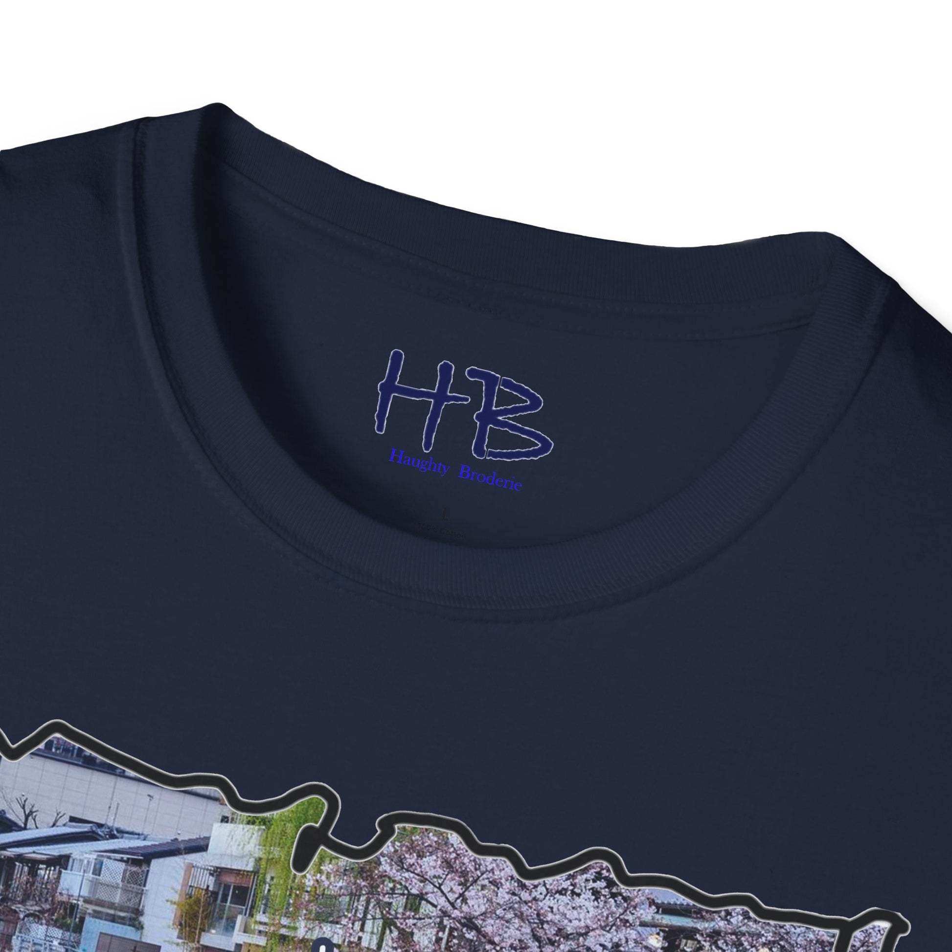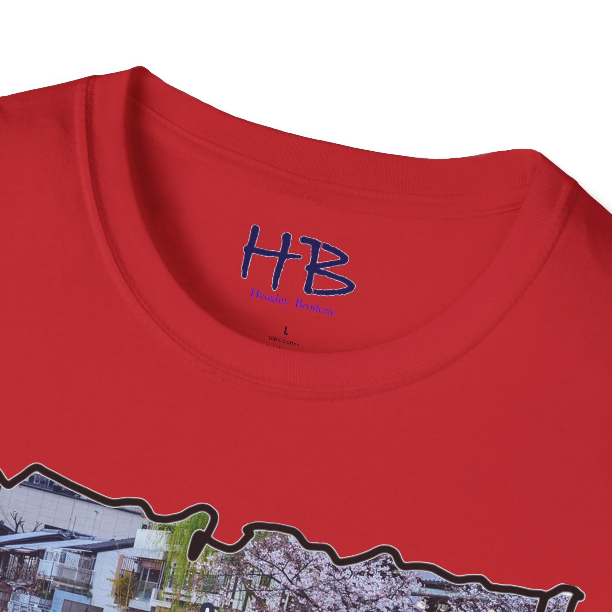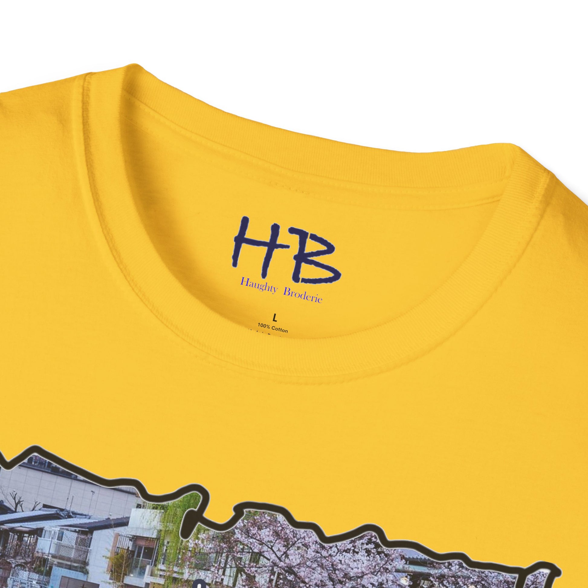 Step into the essence of timeless romance and cultural allure with our exquisite wearable masterpiece—the Lovers' Nirvana Commemorative T-shirt. This captivating garment unfolds a picturesque panorama, capturing the serenity of a sought-after tourist haven, the enchanting river crossing Kyoto. Behold the seamless fusion of Japanese architectural splendor and the delicate bloom of a Sakura tree, gracefully adorned with a cascade of pure white leaves.