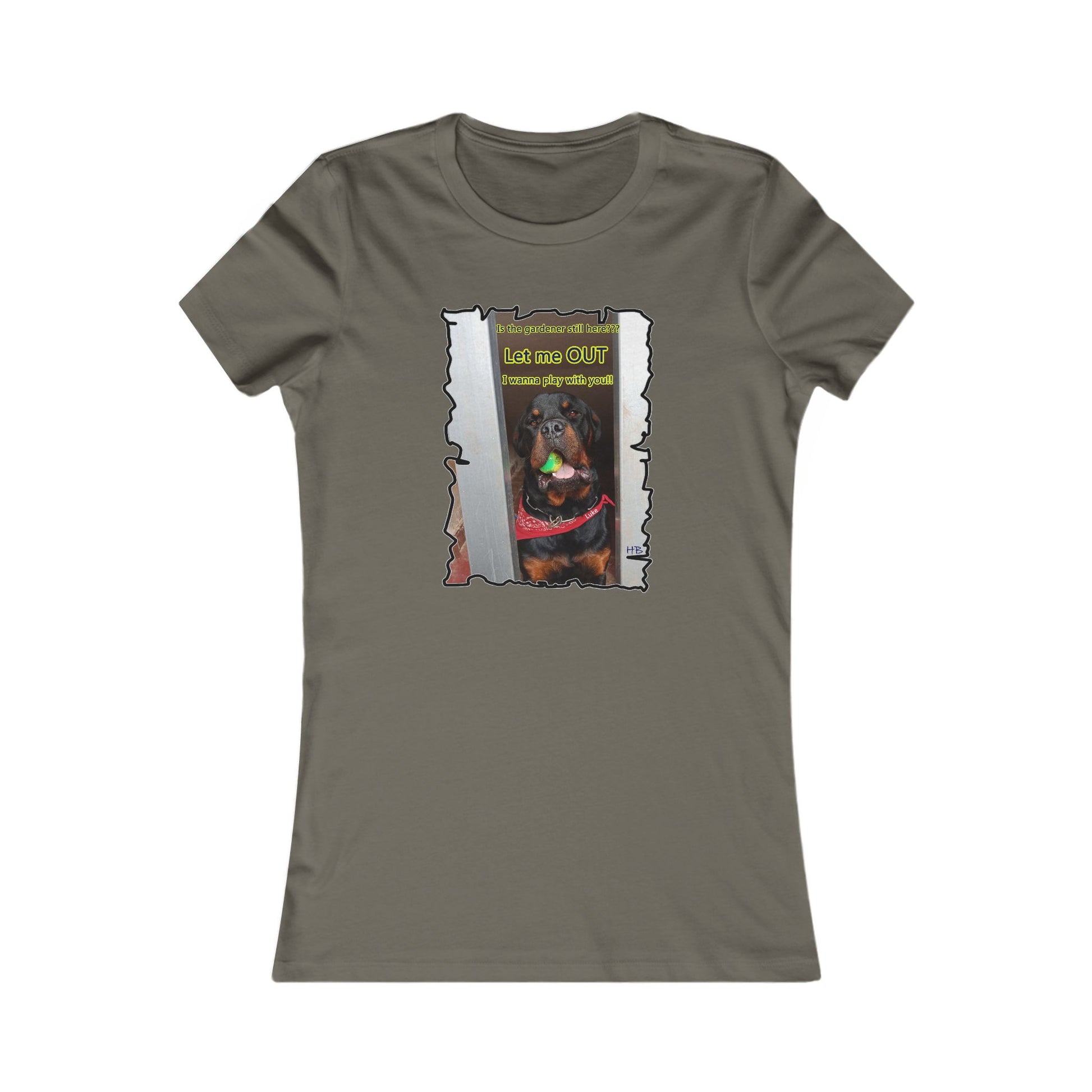 Looking for a tee featuring the majestic and honorable Rottweiler named Luke? You've come to the right place! Our exclusive design showcases Luke in all his glory, sitting proudly inside his cozy closed doghouse with a pitiful yet adorable expression on his face, clutching a ball in his mouth. His noble black skinrobe is adorned with a vibrant red handkerchief, adding sophistication to this magnificent pup. And as if Luke's charm weren't enough, the shirt also features the text "Is the gardener still here?? LET ME OUT, I wanna play with you!!" This tee is the perfect addition to any dog lover's wardrobe, so don't wait - order yours today!