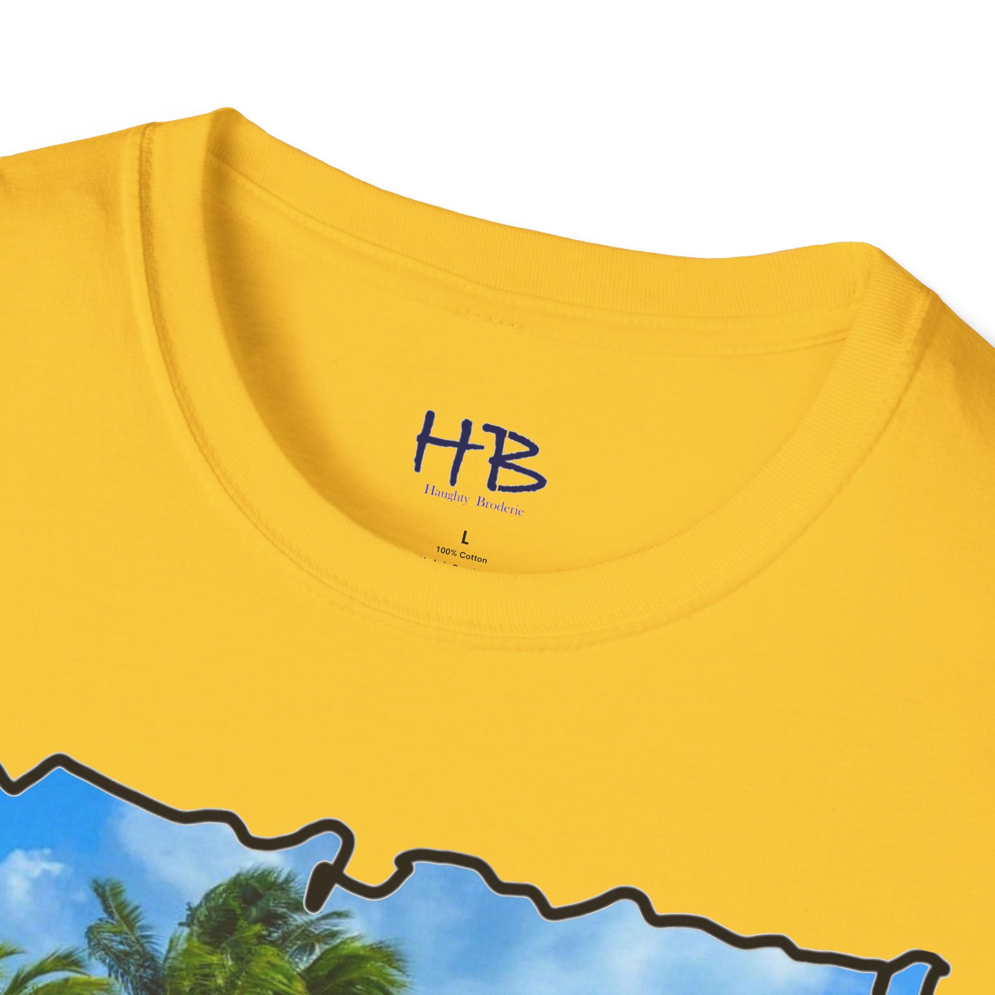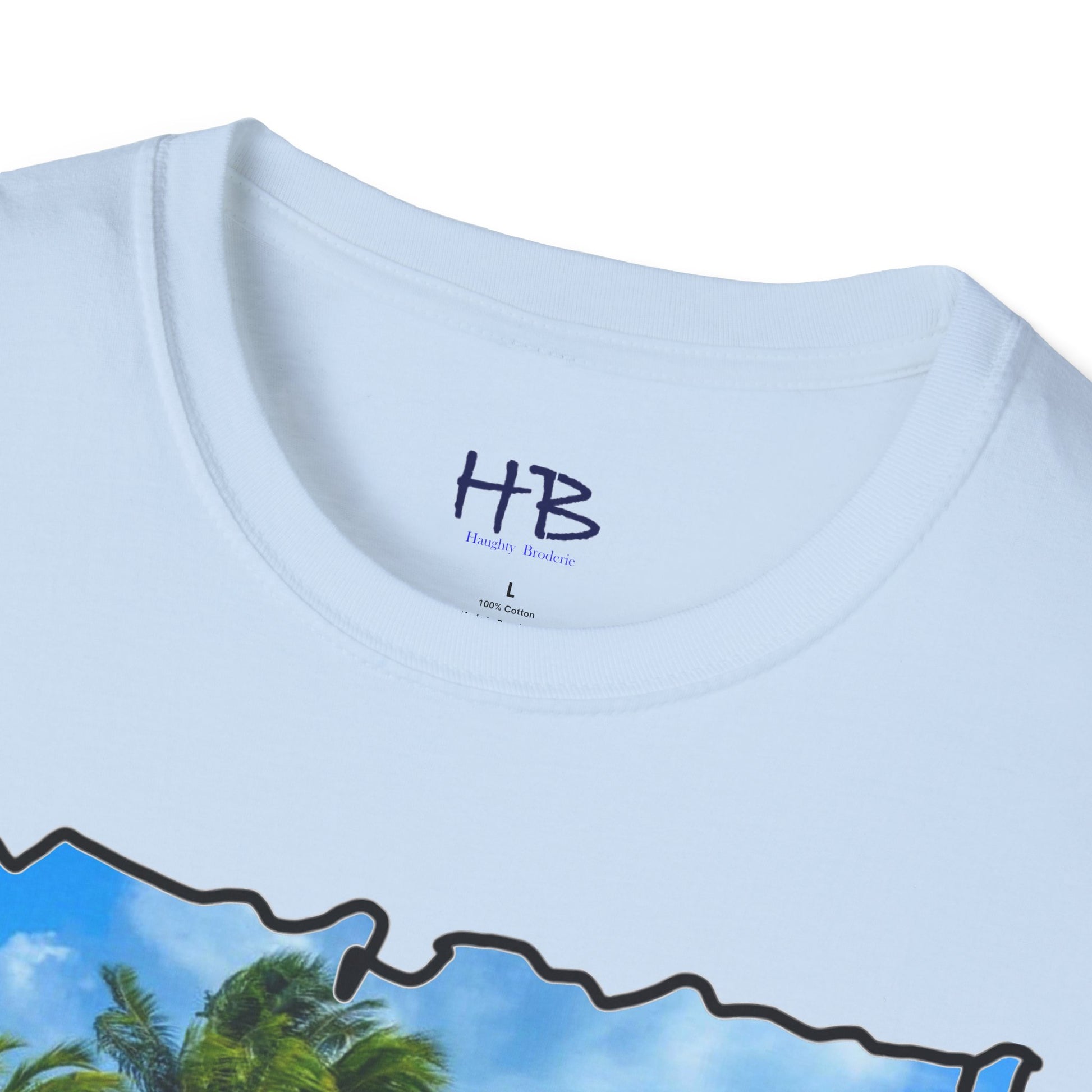 Introducing our "Azure Haven Retreat" wearable masterpiece, a harmonious convergence of comfort and exquisite imagery. Picture this: you, donned in a garment that transcends mere fabric and stitches, embracing the essence of a sought-after, touristic haven. The breathtaking spectacle unfolds as the baby blue hues of the Caribbean Island ocean merge seamlessly with crystal-clear waters, casting an ethereal spell on the beholder. White sands gently cradle the shoreline, a serene testament to the undisturbed beauty of this secluded paradise.