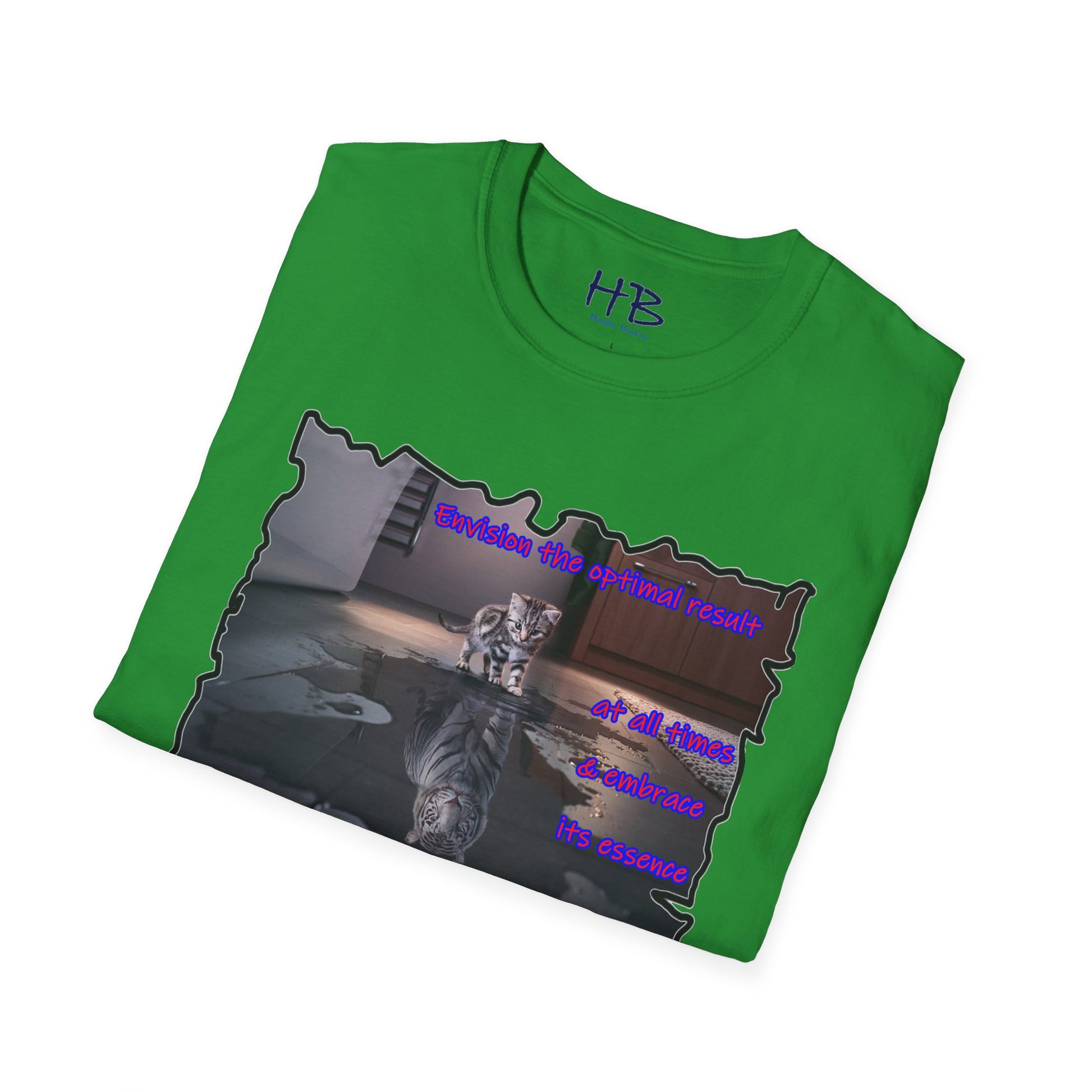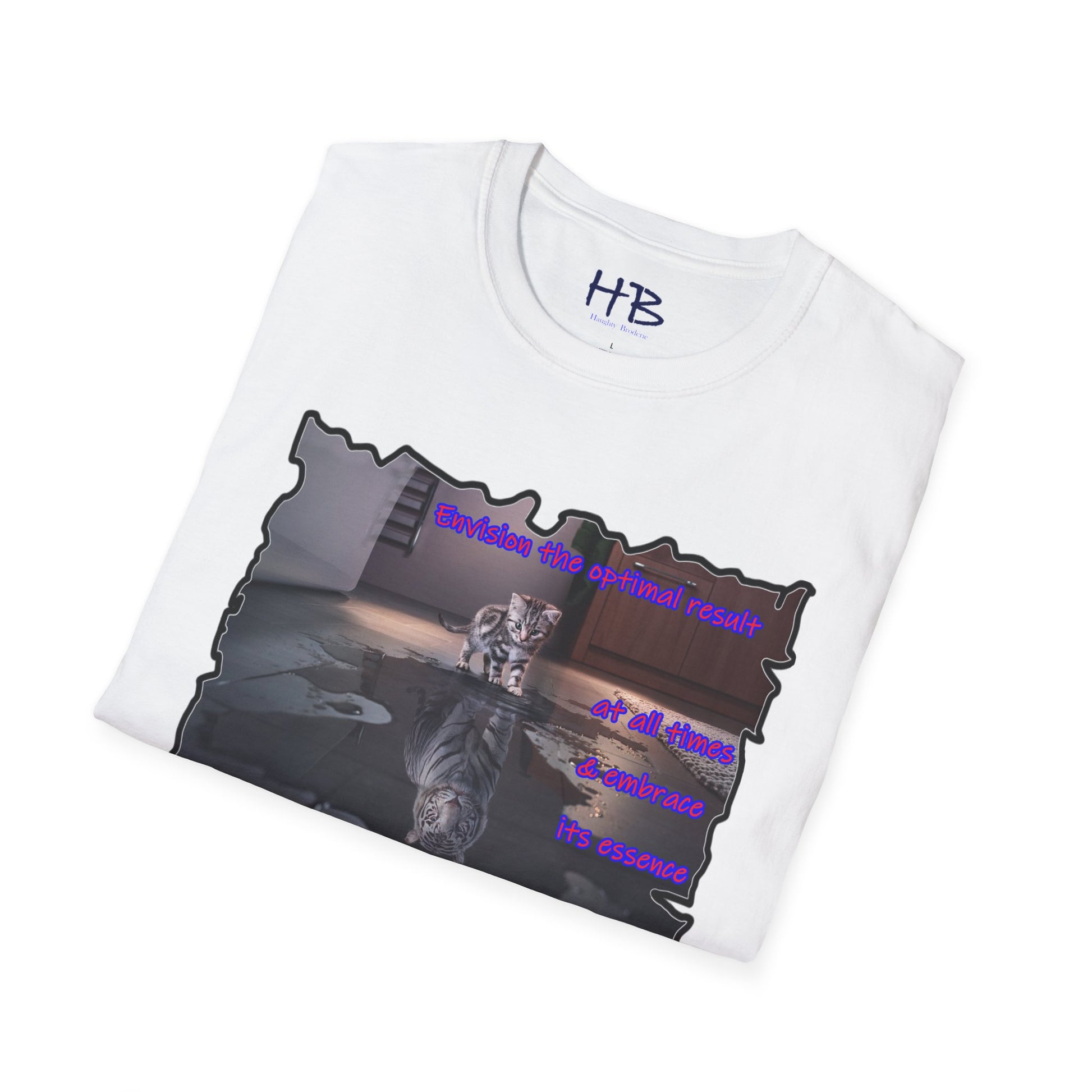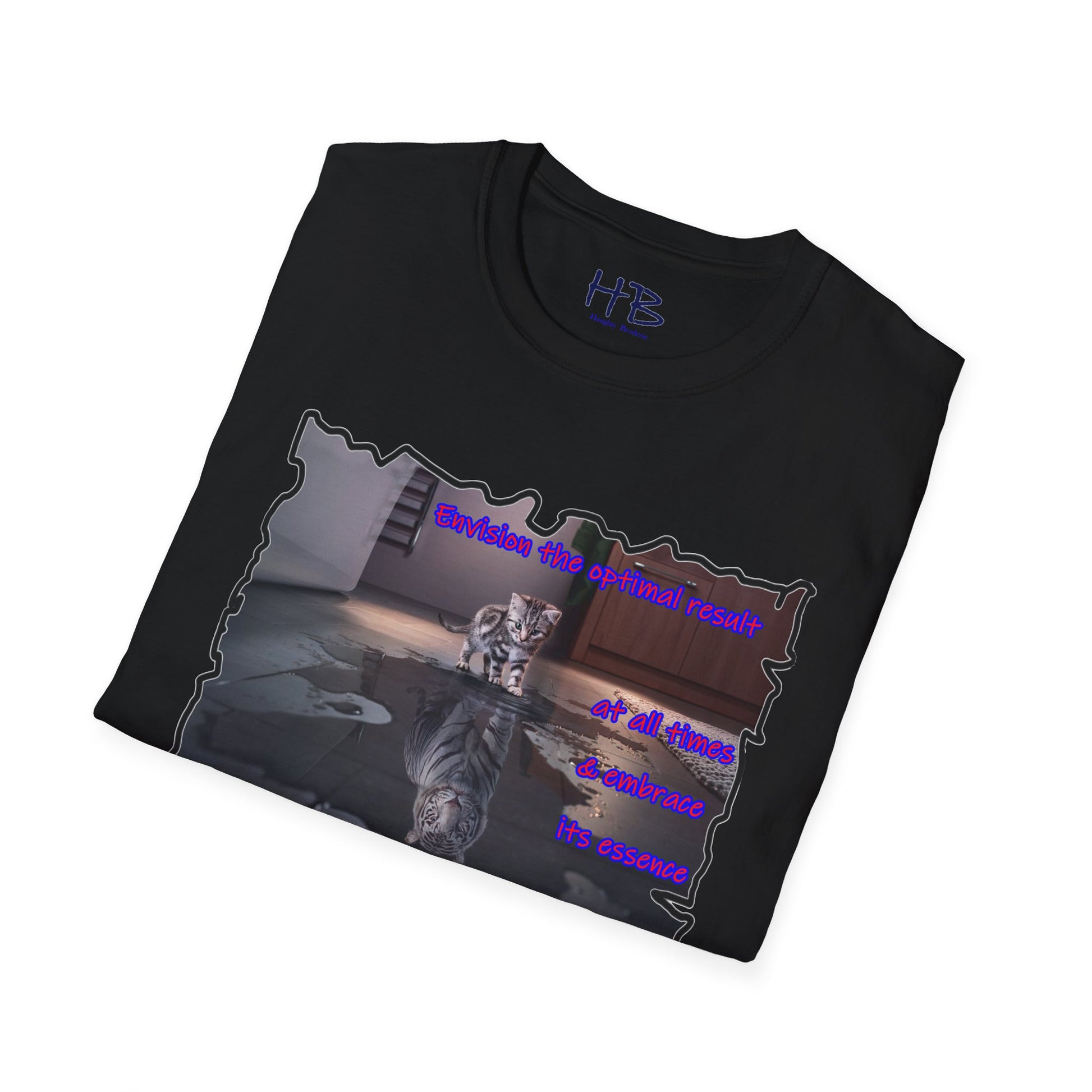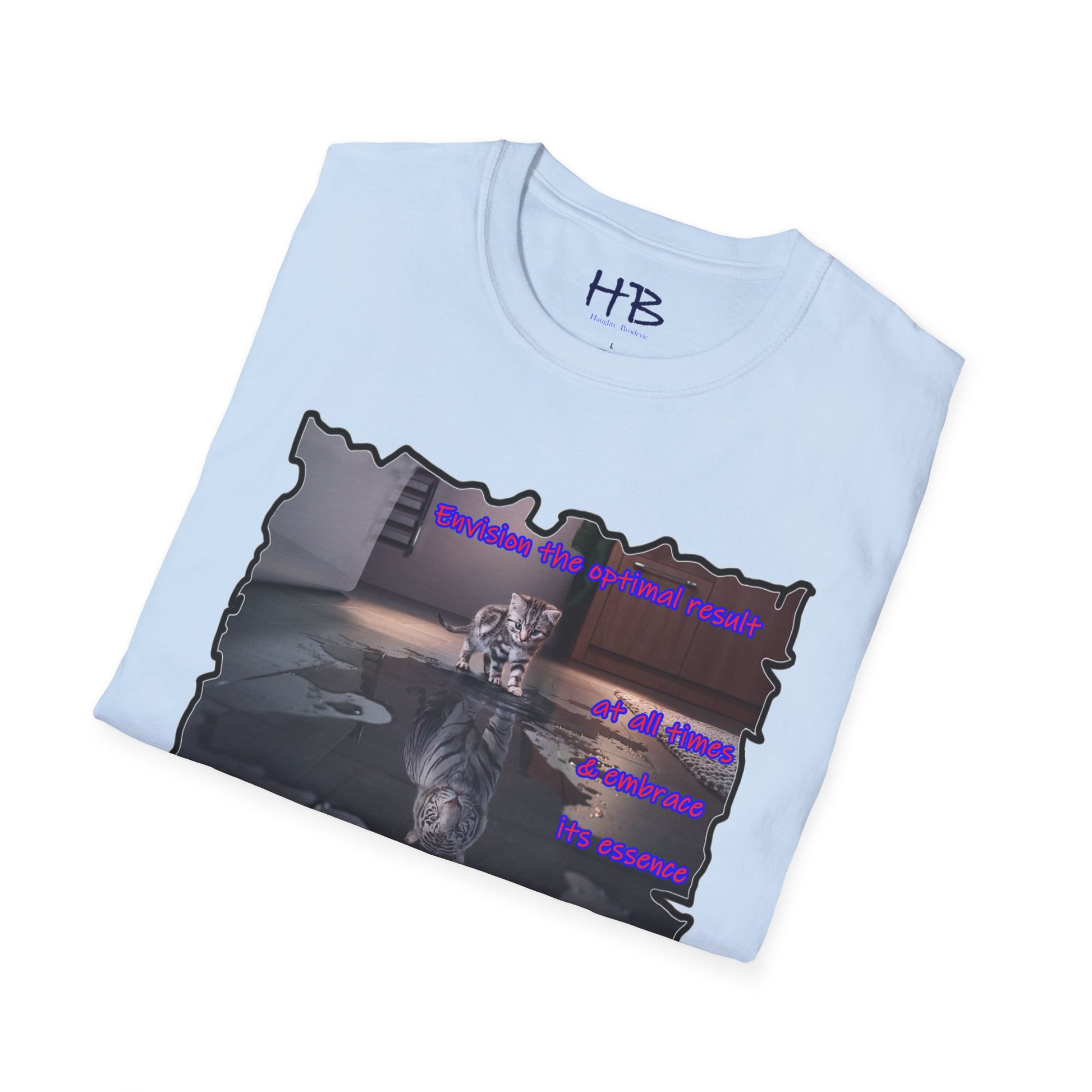 Wearing this tee shirt with the enchanting image of the kitten and its tiger reflection not only showcases your love for feline companions but also serves as a symbol of your unwavering belief in the power of visualization and embracing the essence of your goals.