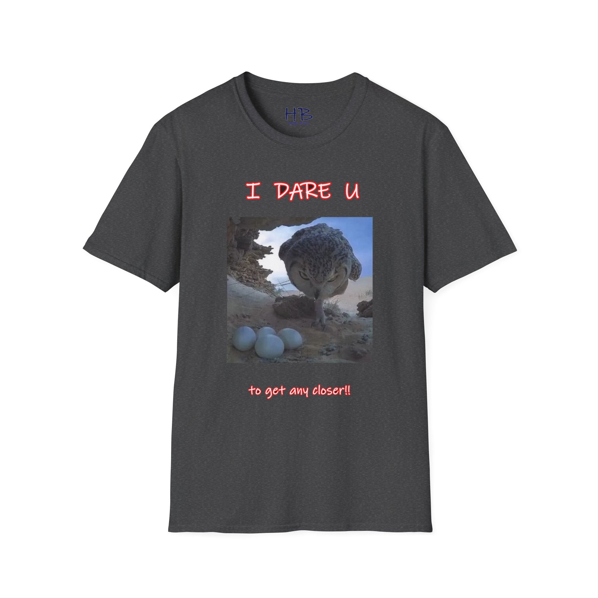 Introducing our remarkable garment featuring an awe-inspiring portrayal of maternal strength and instinct. This extraordinary tee shirt showcases a majestic mother owl, poised in attack mode, her piercing eyes fiercely focused on anyone daring to approach her precious clutch of four pristine white eggs. With a captivating display of protective prowess, this image symbolizes the unyielding devotion and unwavering courage of a mother safeguarding her unborn offspring.