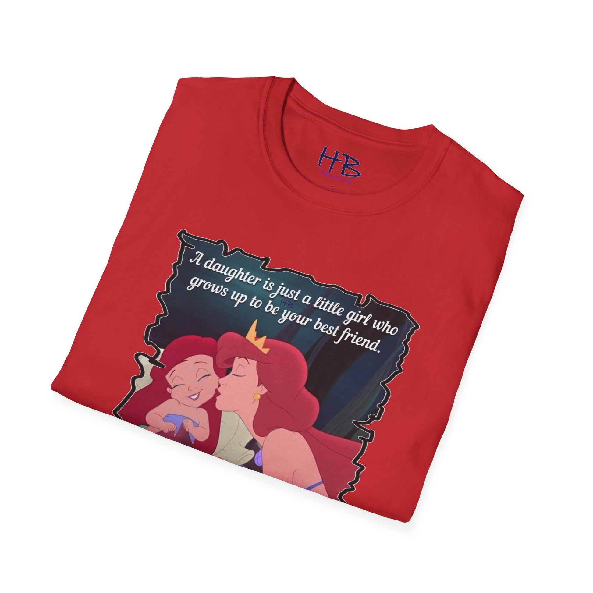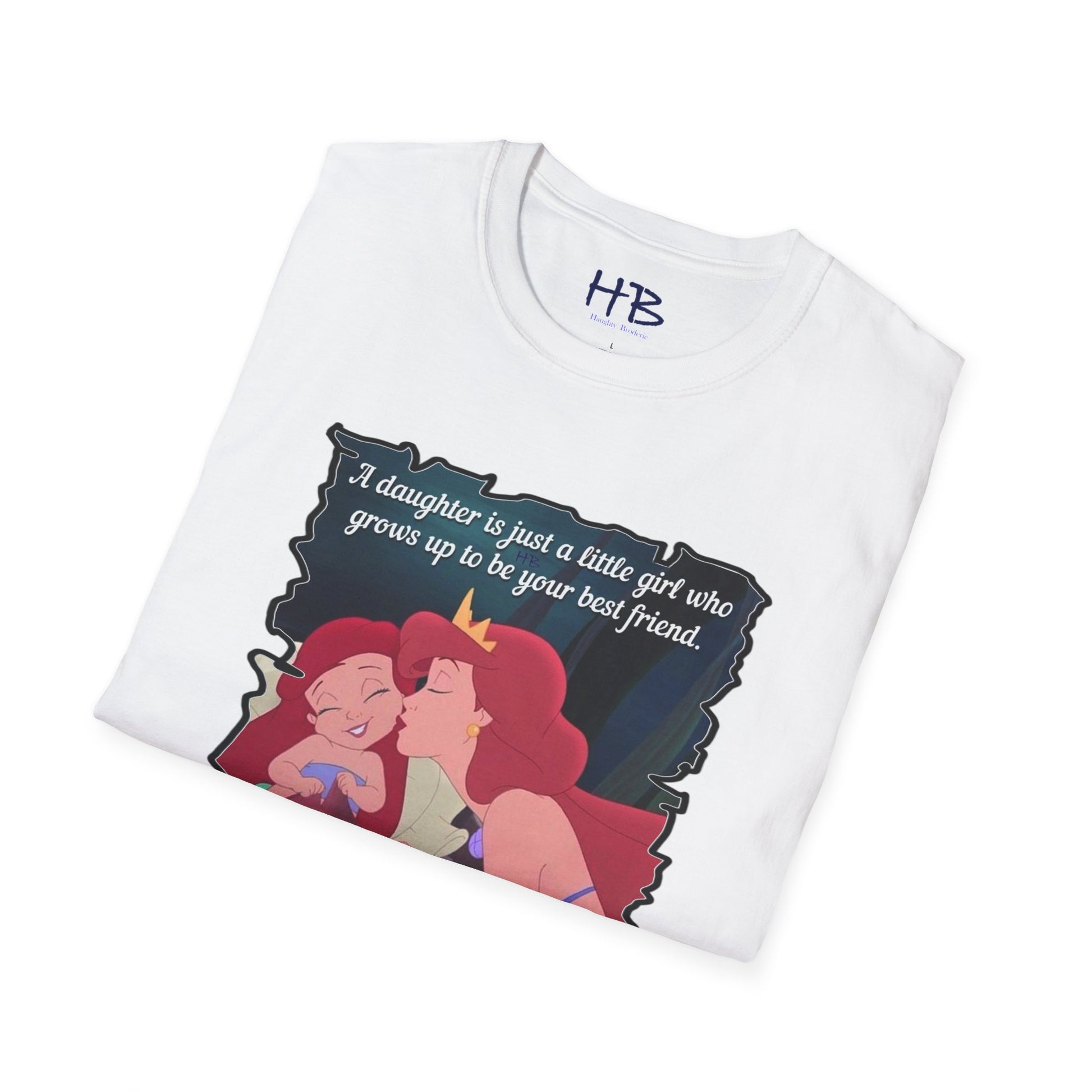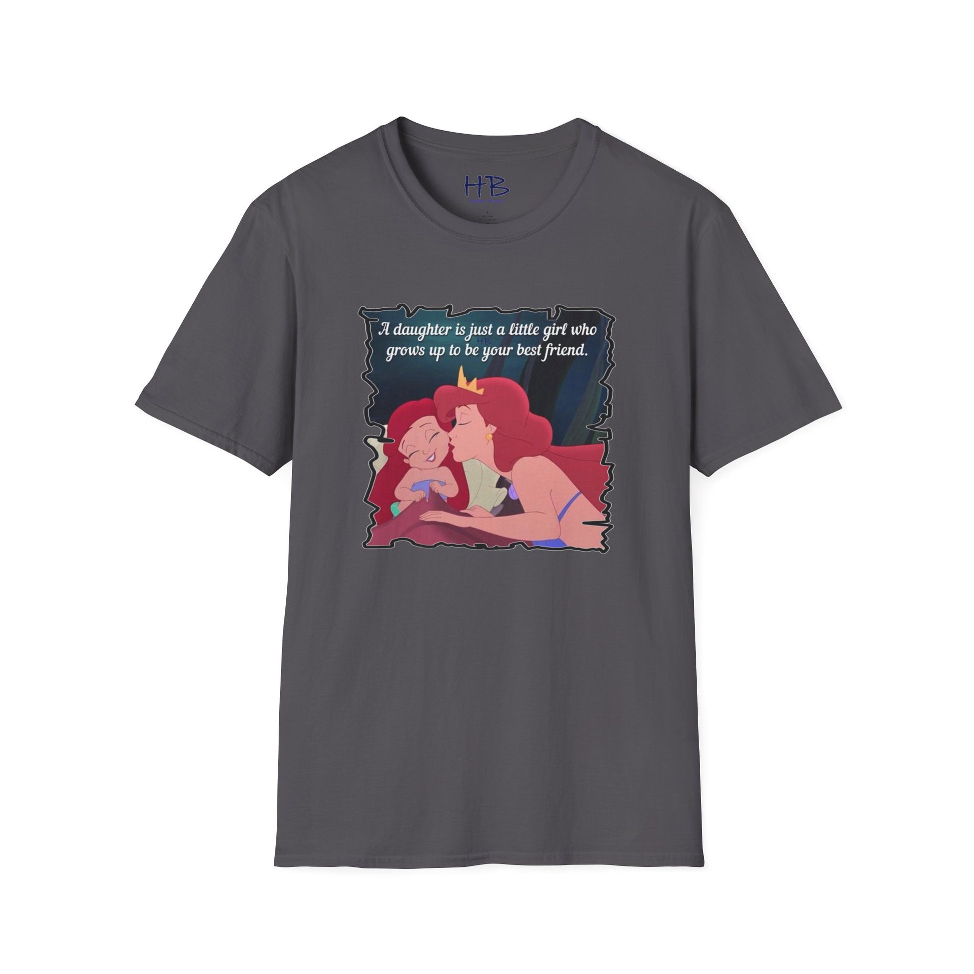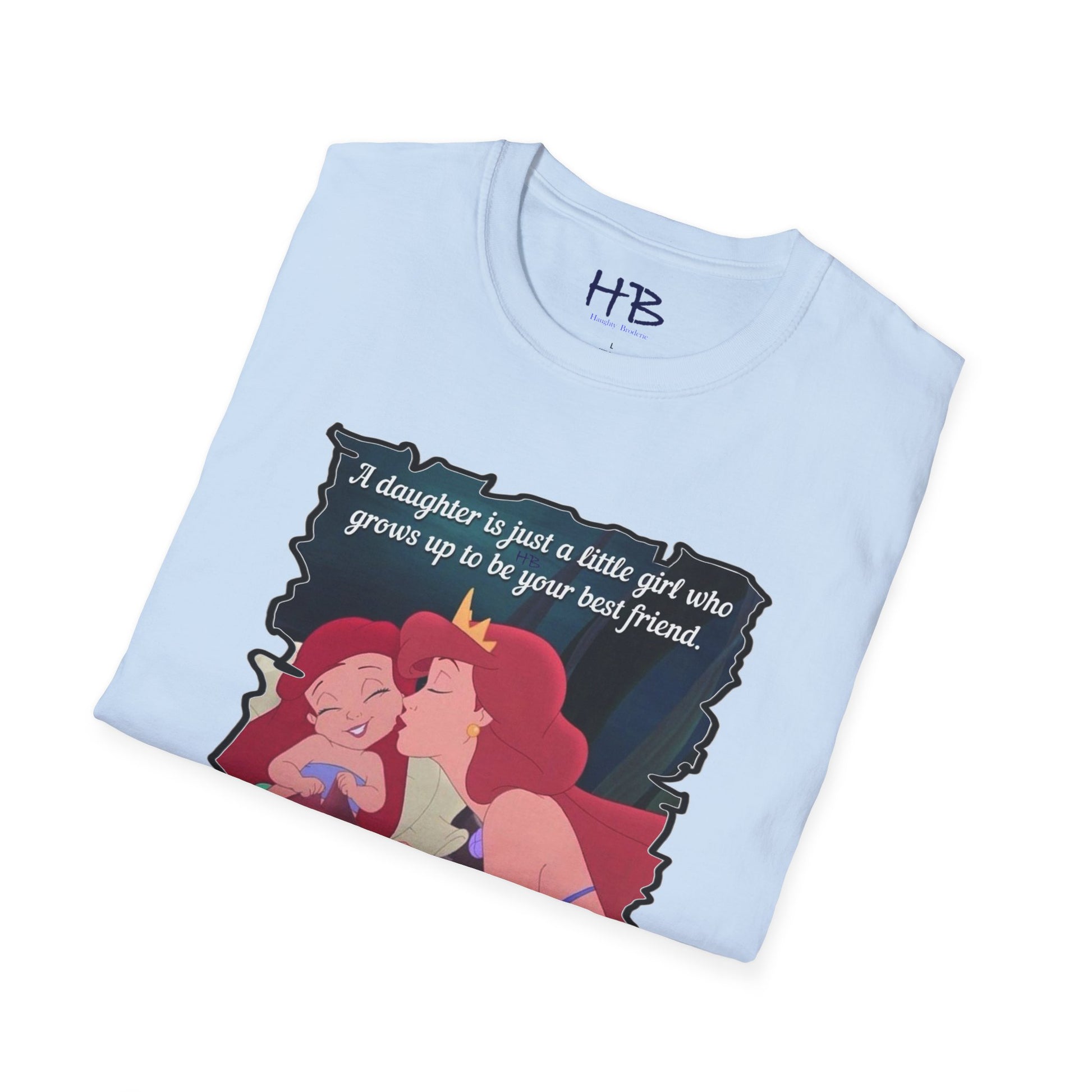 Introducing our fabulous tee shirt featuring an iconic image of a mother giving her baby daughter a loving kiss. This particular drawing is renowned worldwide and depicts the purest form of maternal love. The accompanying text beautifully captures the essence of this heartwarming image, stating that a daughter is simply a young girl who eventually becomes her mother's closest confidant and ally.