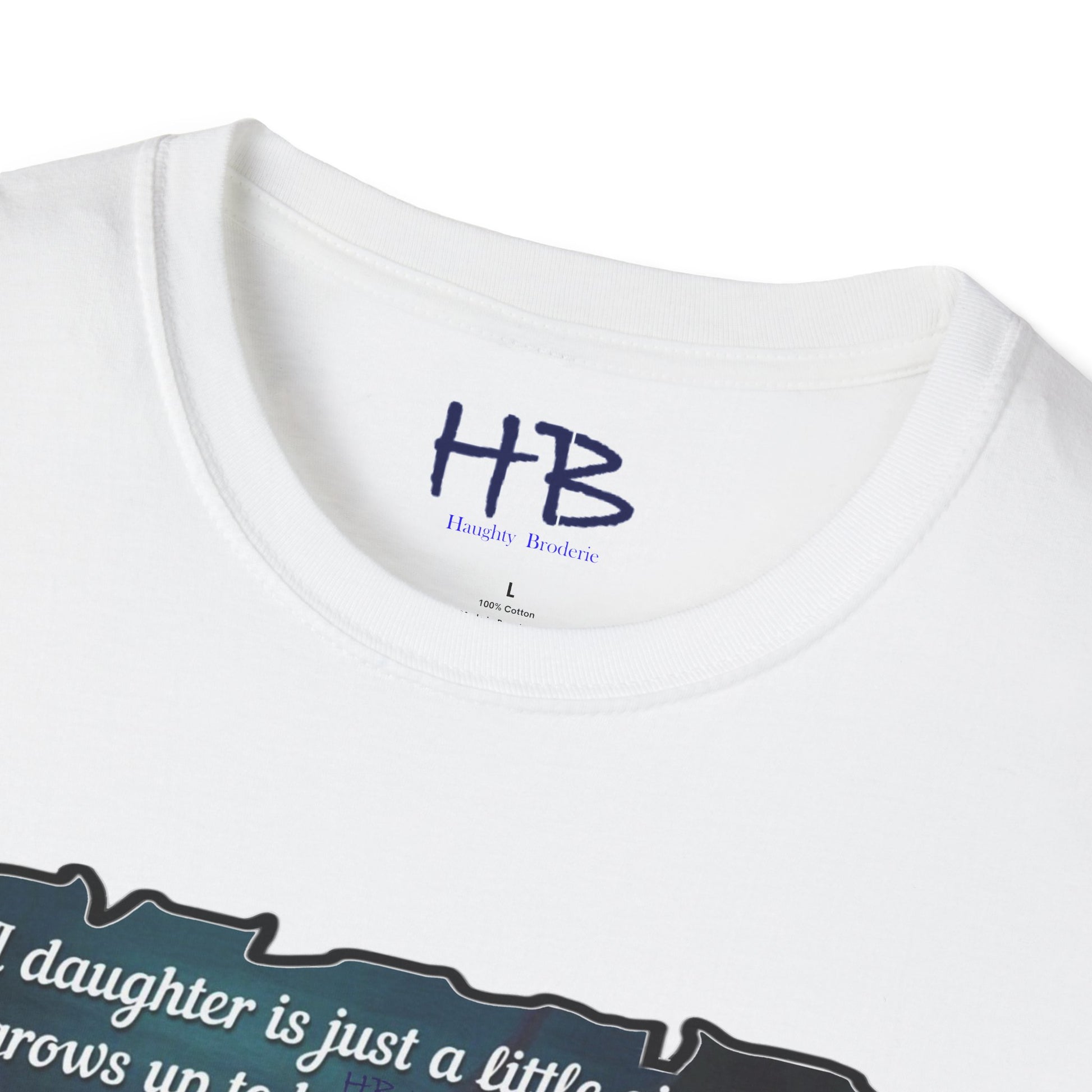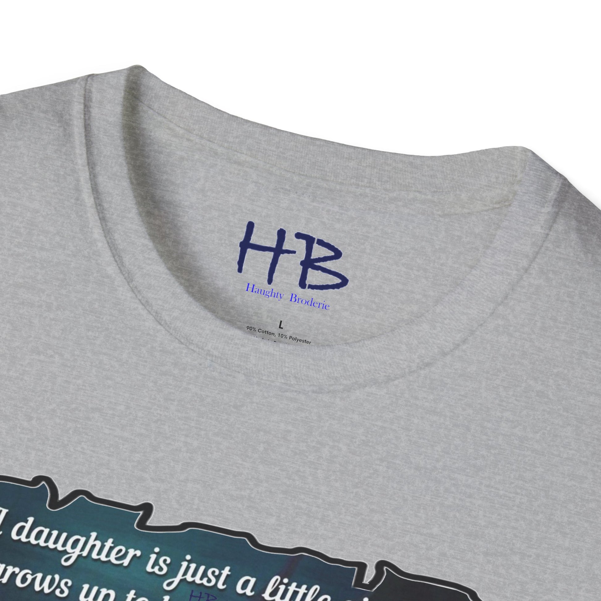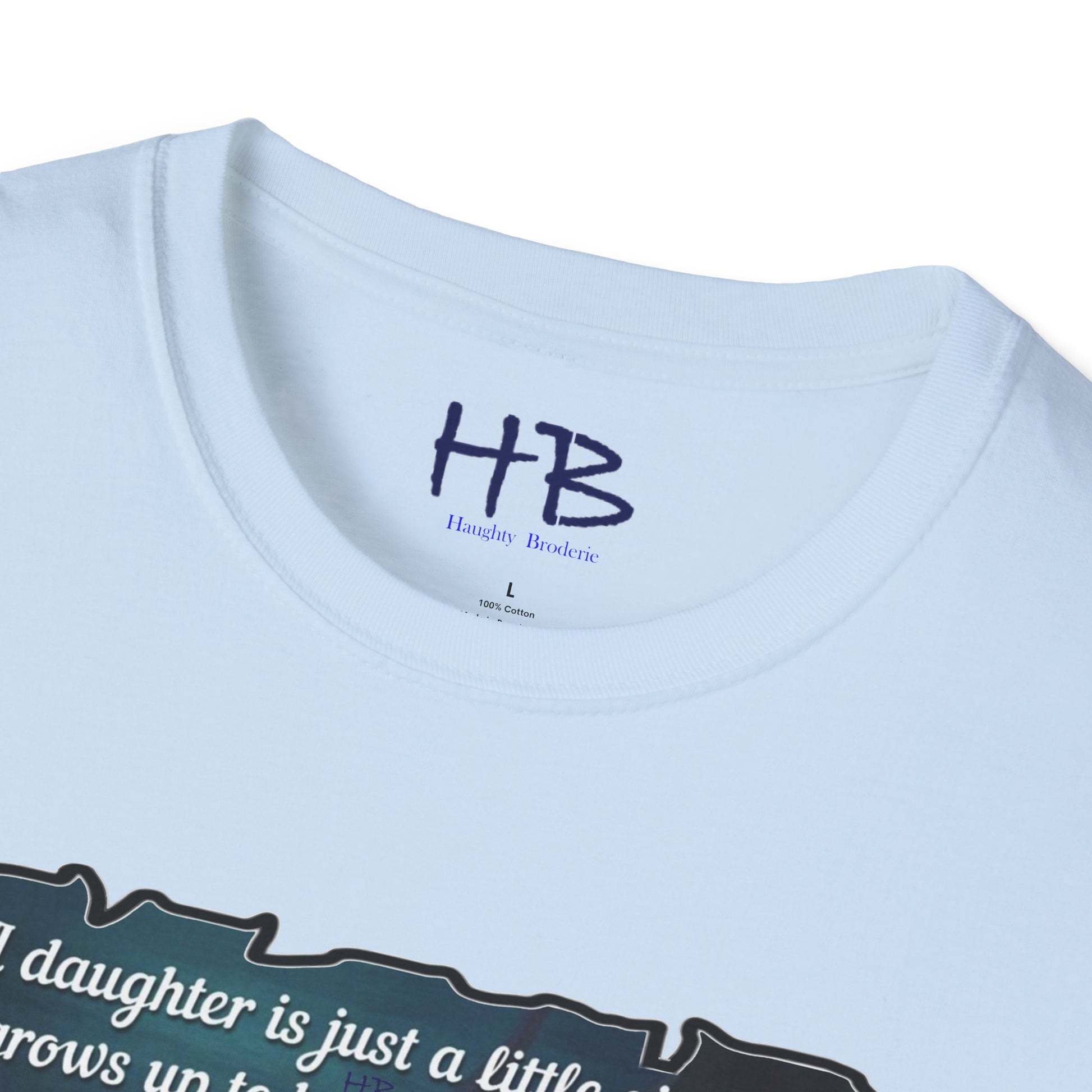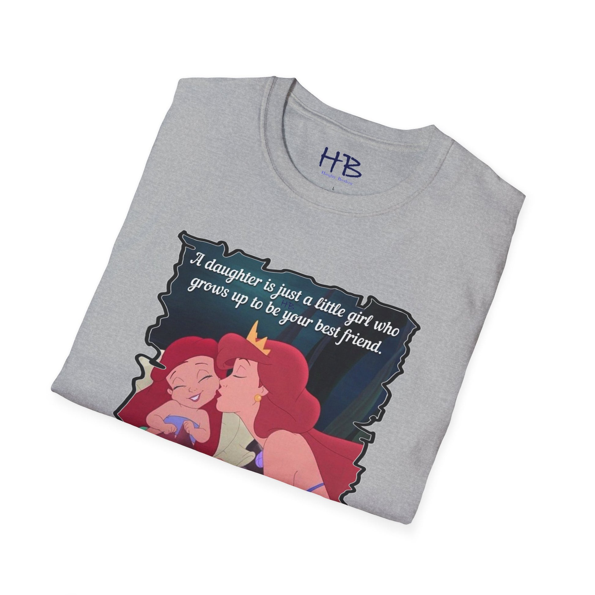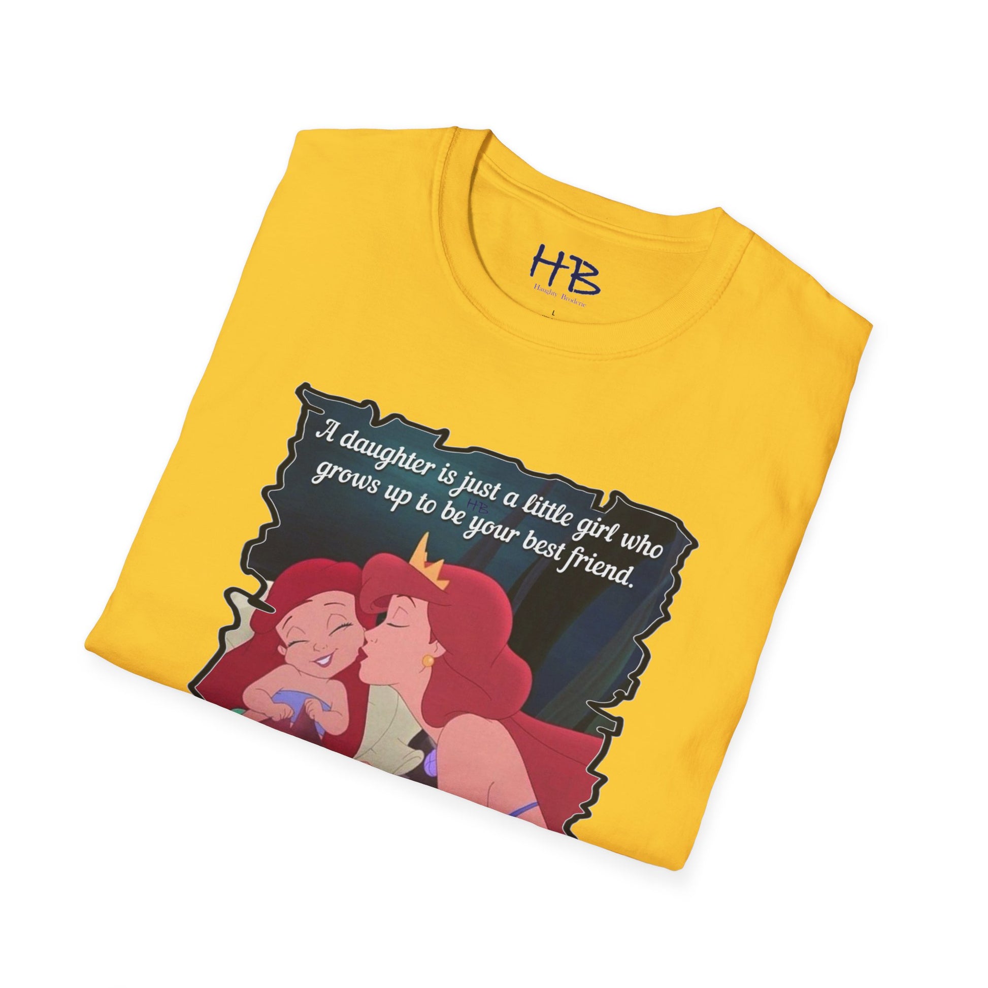 Introducing our fabulous tee shirt featuring an iconic image of a mother giving her baby daughter a loving kiss. This particular drawing is renowned worldwide and depicts the purest form of maternal love. The accompanying text beautifully captures the essence of this heartwarming image, stating that a daughter is simply a young girl who eventually becomes her mother's closest confidant and ally.