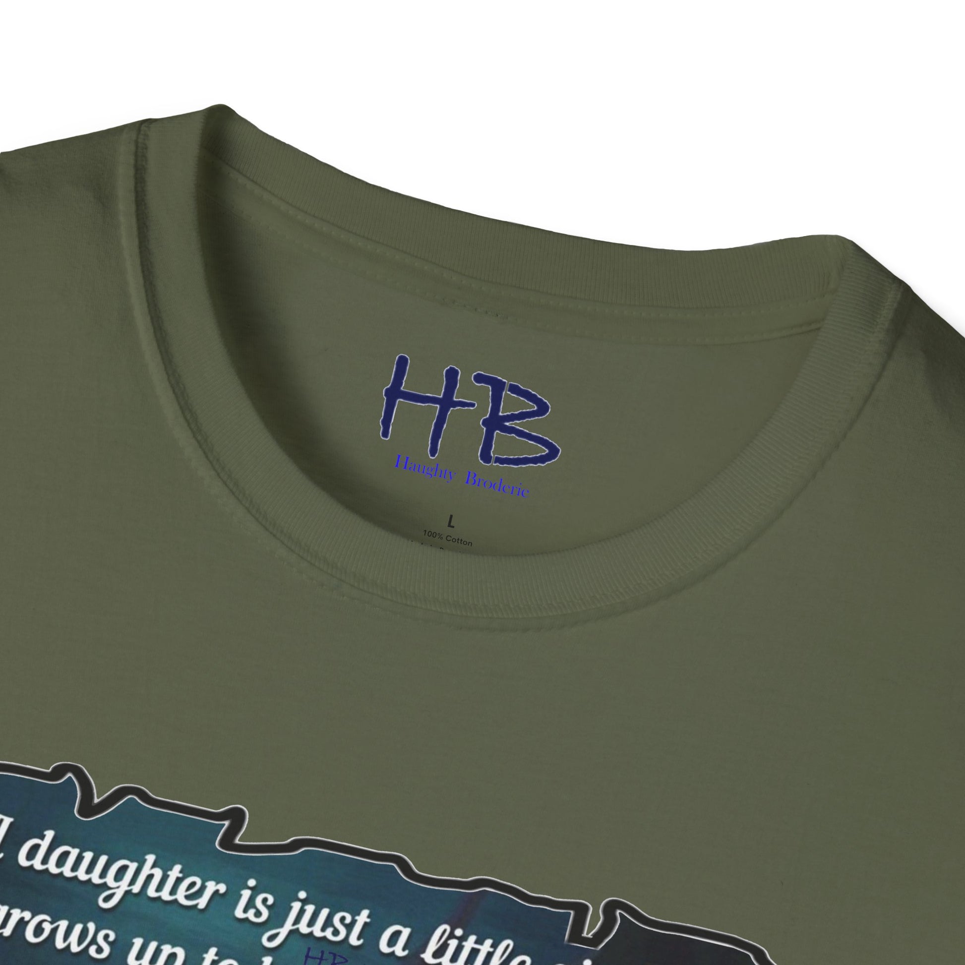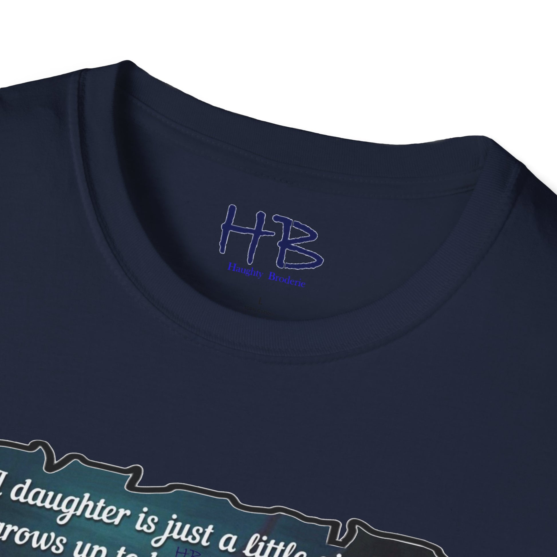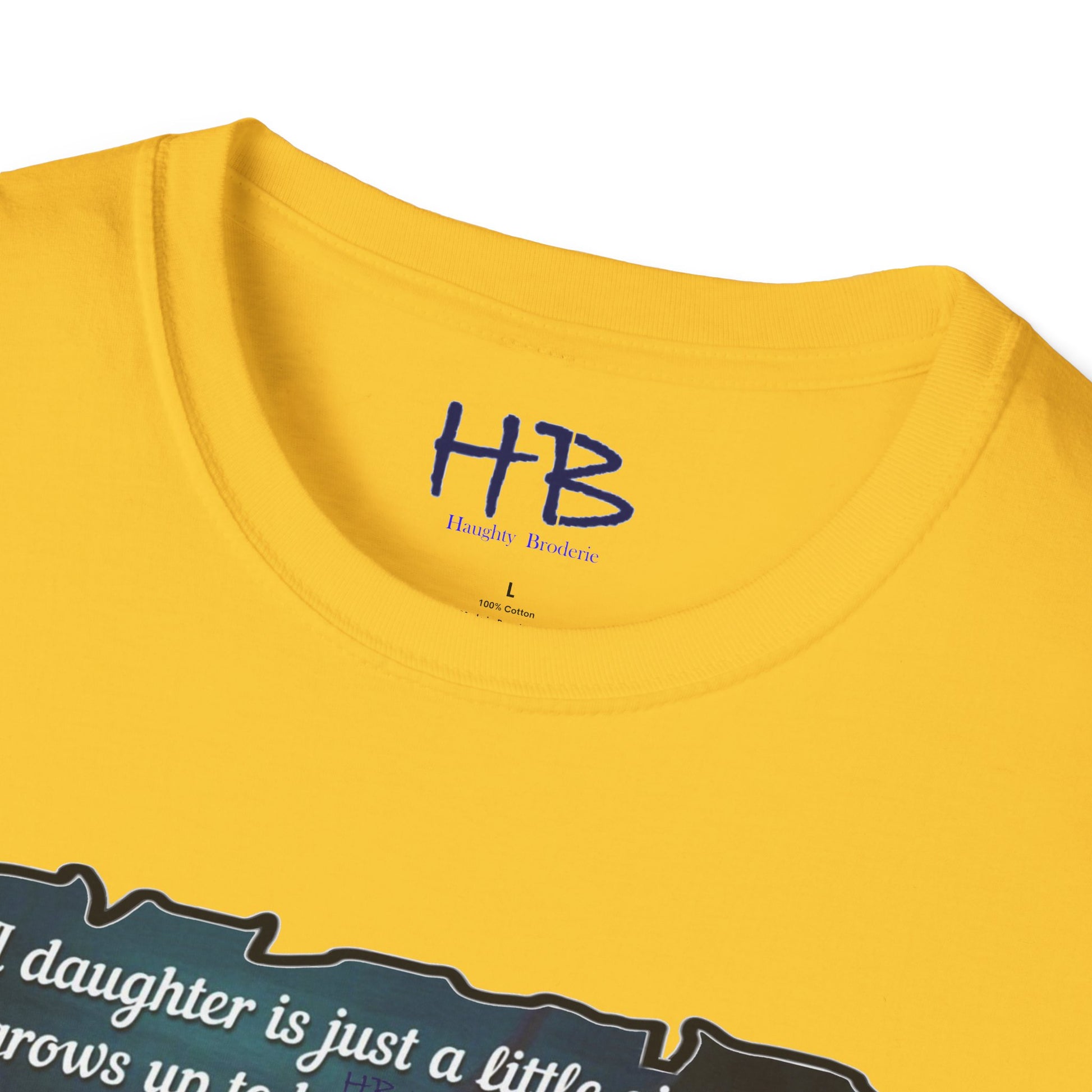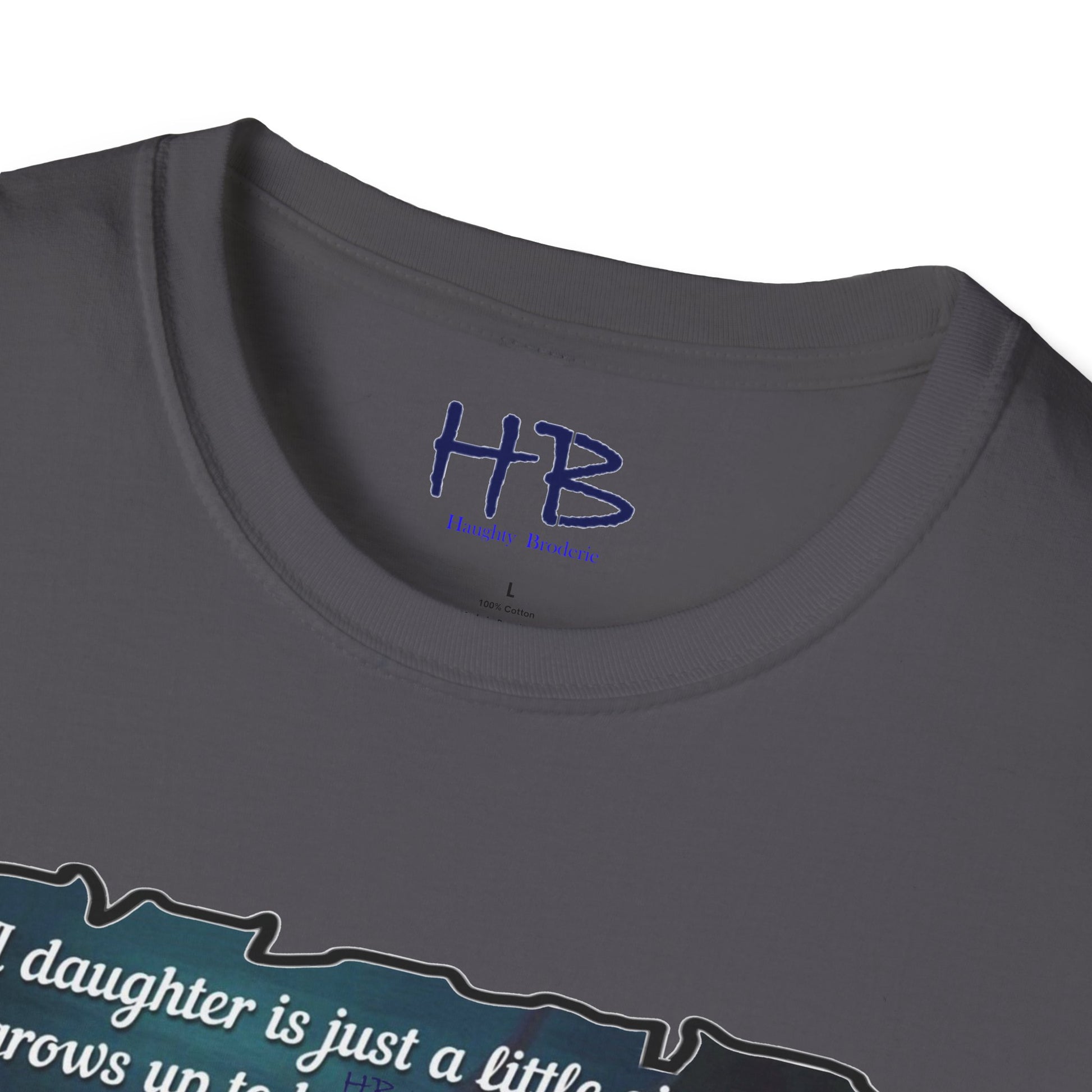 Introducing our fabulous tee shirt featuring an iconic image of a mother giving her baby daughter a loving kiss. This particular drawing is renowned worldwide and depicts the purest form of maternal love. The accompanying text beautifully captures the essence of this heartwarming image, stating that a daughter is simply a young girl who eventually becomes her mother's closest confidant and ally.
