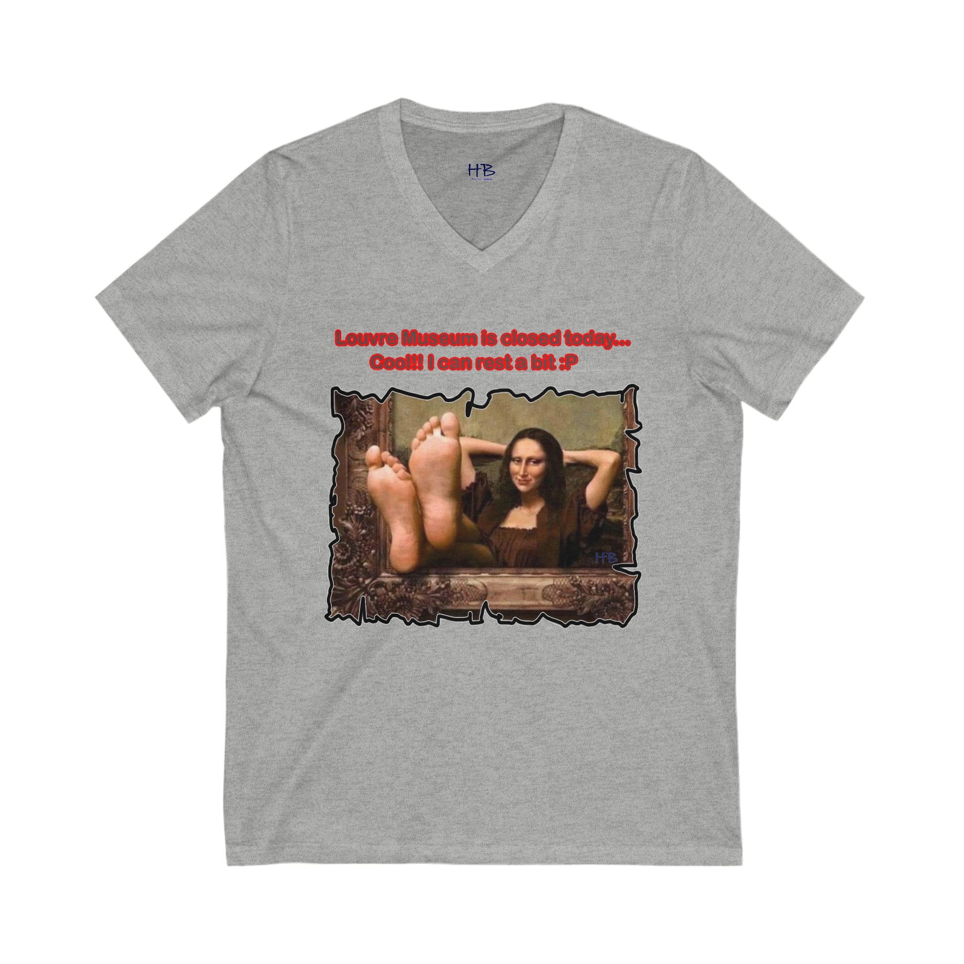Mischievous Playful Mona Lisa (Unisex Jersey Short Sleeve V-neck - Comfortable Everyday Wear)