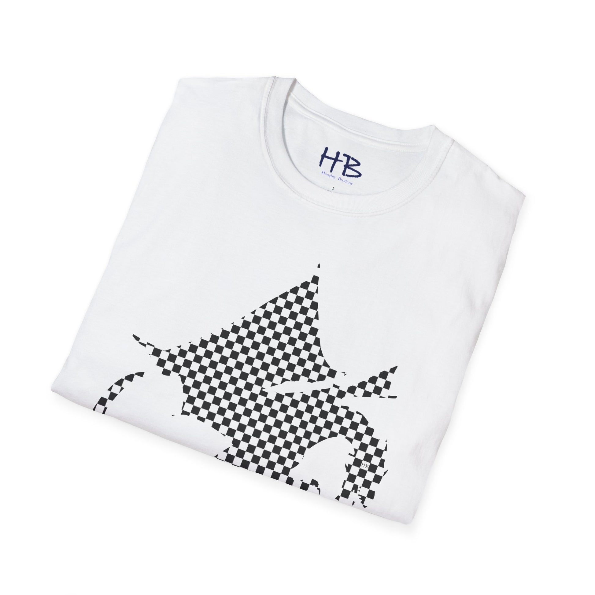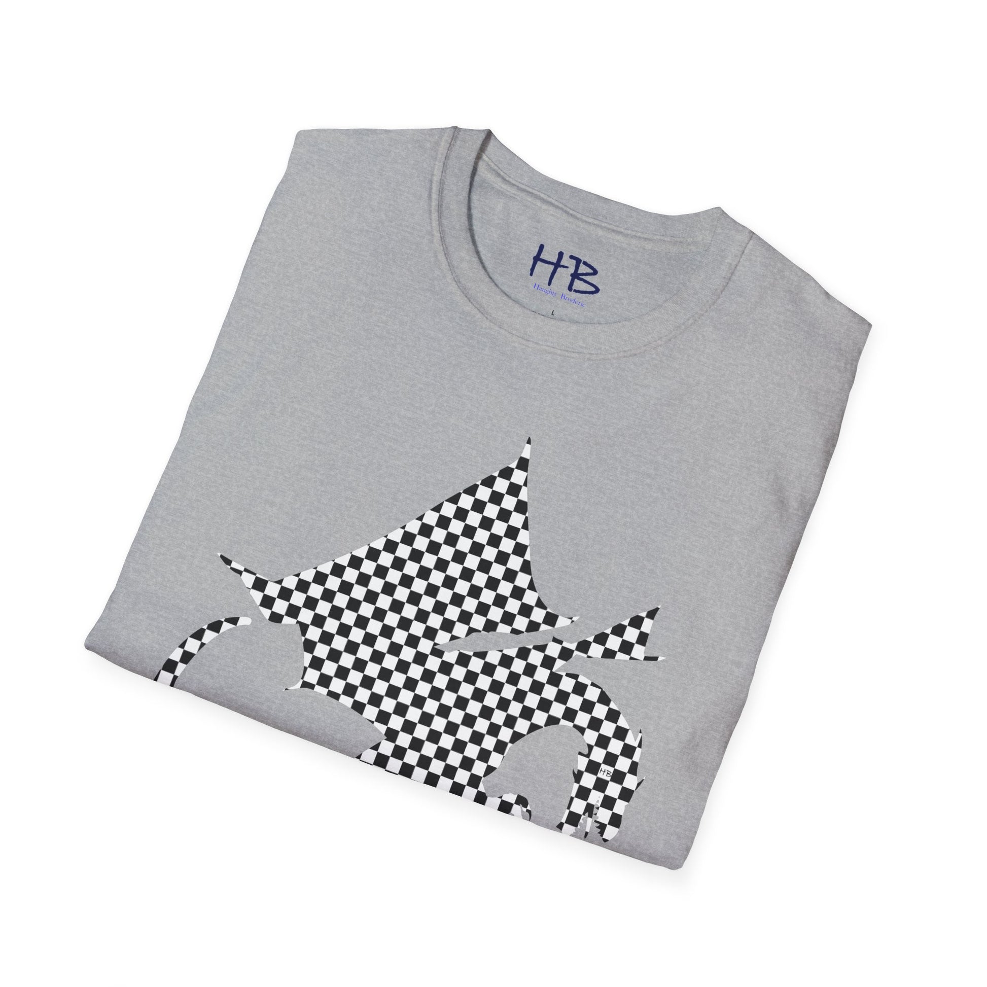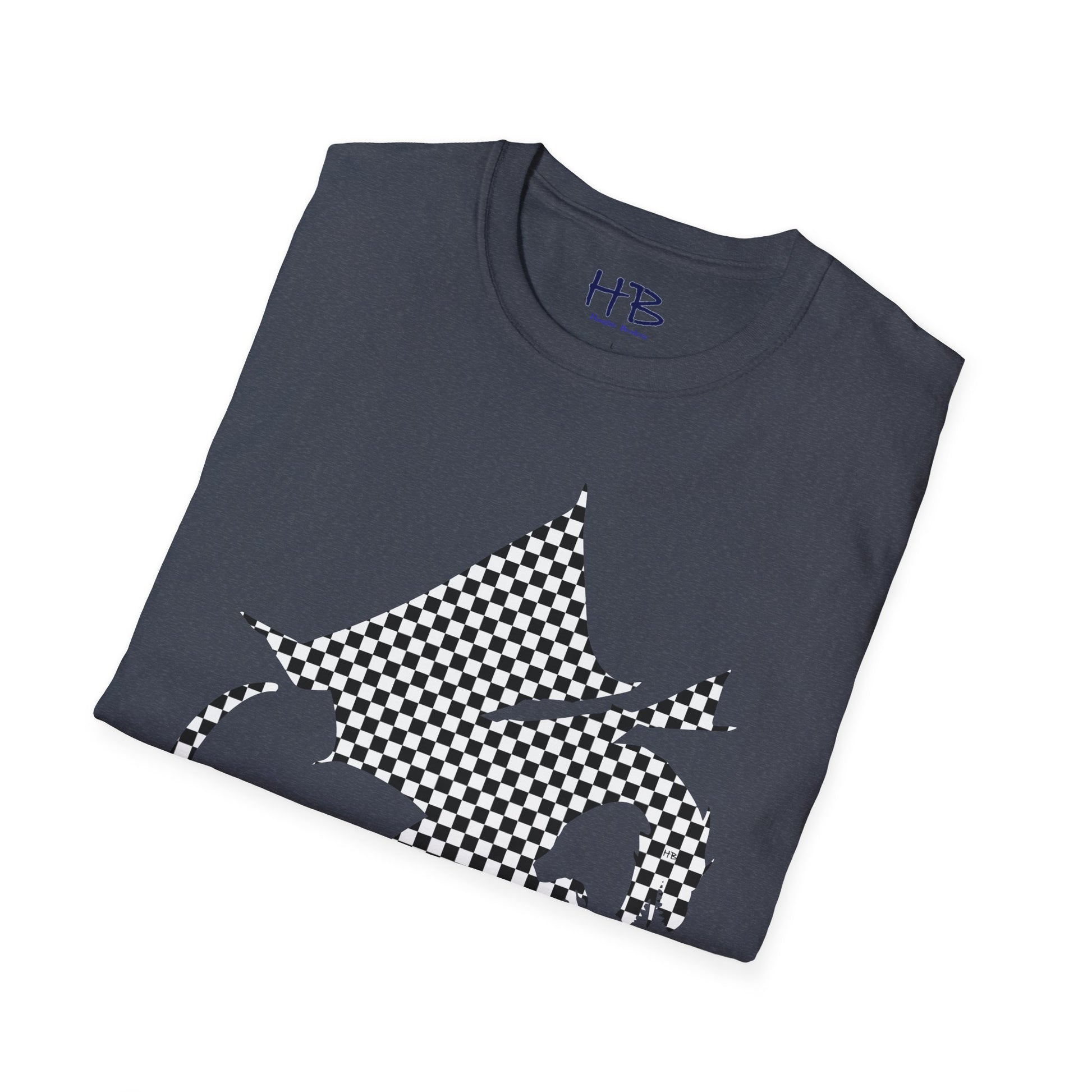Introducing our remarkable garment adorned with a captivating illustration that will surely ignite your imagination and captivate the hearts of those around you. Behold the embodiment of sheer elegance and distinctive sophistication - a magnificent tee shirt featuring a shaded sketch of a majestic dragon, suspended gracefully in mid-air. This ethereal creature is brought to life through meticulous strokes, forming a harmonious amalgamation of black and white checkered patterns that seamlessly fill its enchanting form.