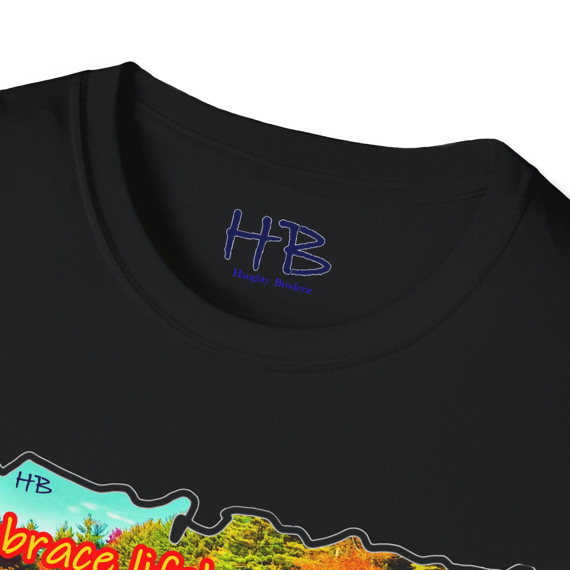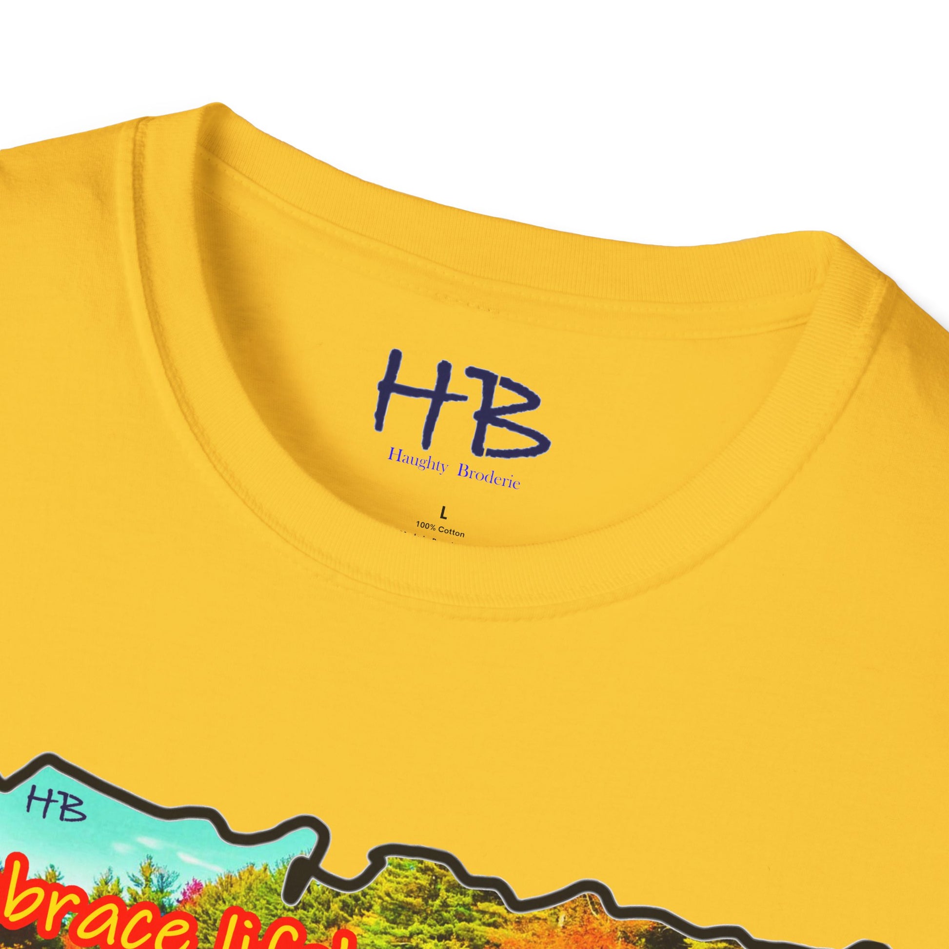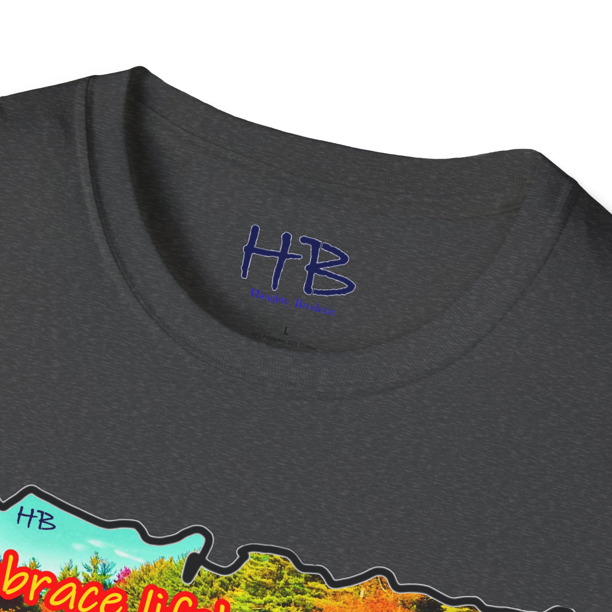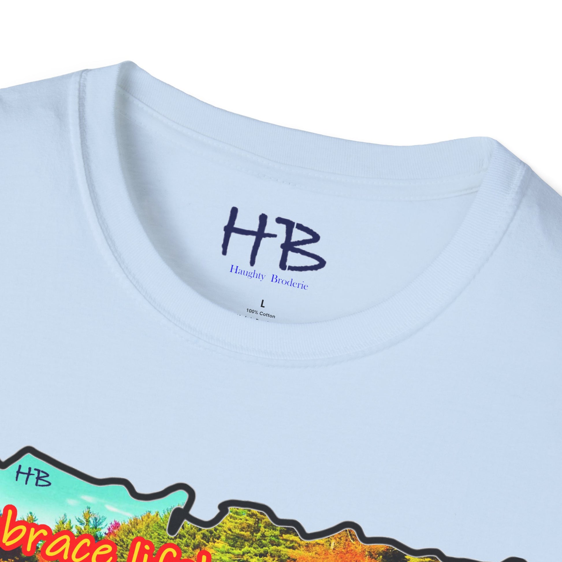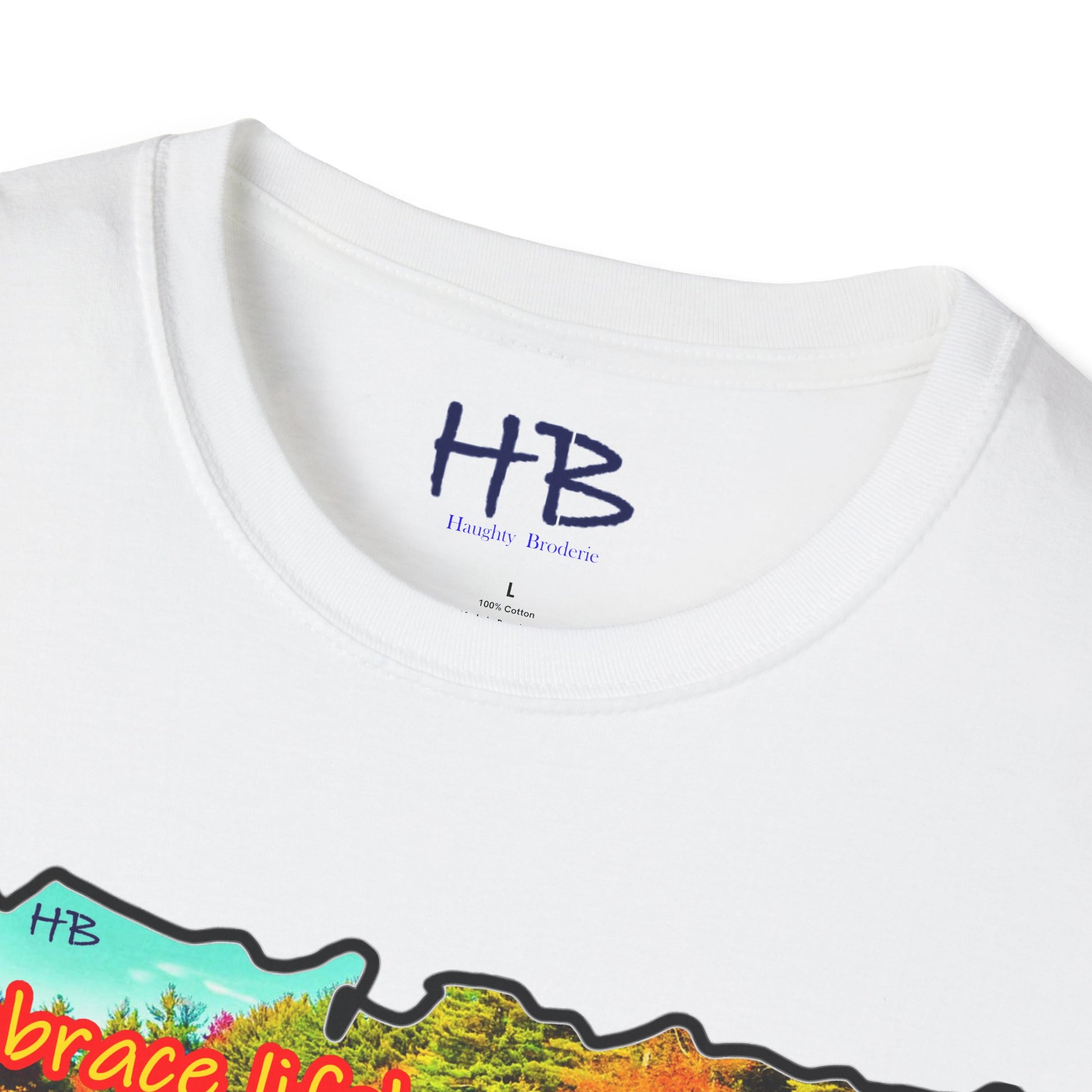 Next, focus on the carefully crafted phrase: "Embrace life's complexity, find joy now, time’s flowing." This isn't just a t-shirt; it’s a wearable reminder to live in the moment. A gentle prompt to embrace the journey of life, without waiting for an ideal future that might never materialize.