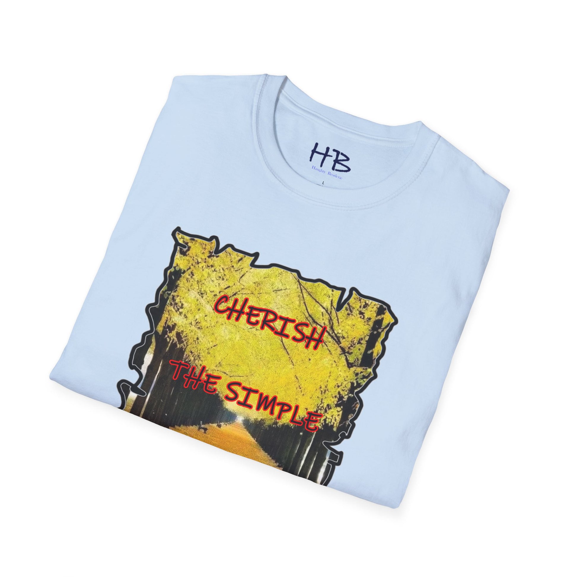This exquisite tee shirt bears the mantra "Cherish the simple things," a reminder of the profound significance of finding joy in life's uncomplicated pleasures. In a world filled with noise and distractions, it's crucial to take a moment, breathe, and savor the simple beauty that surrounds us every day.