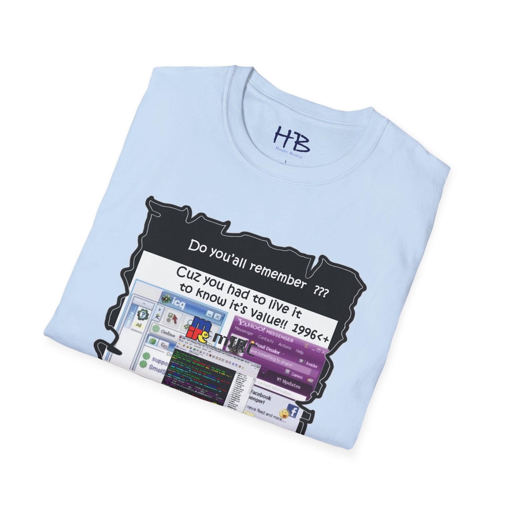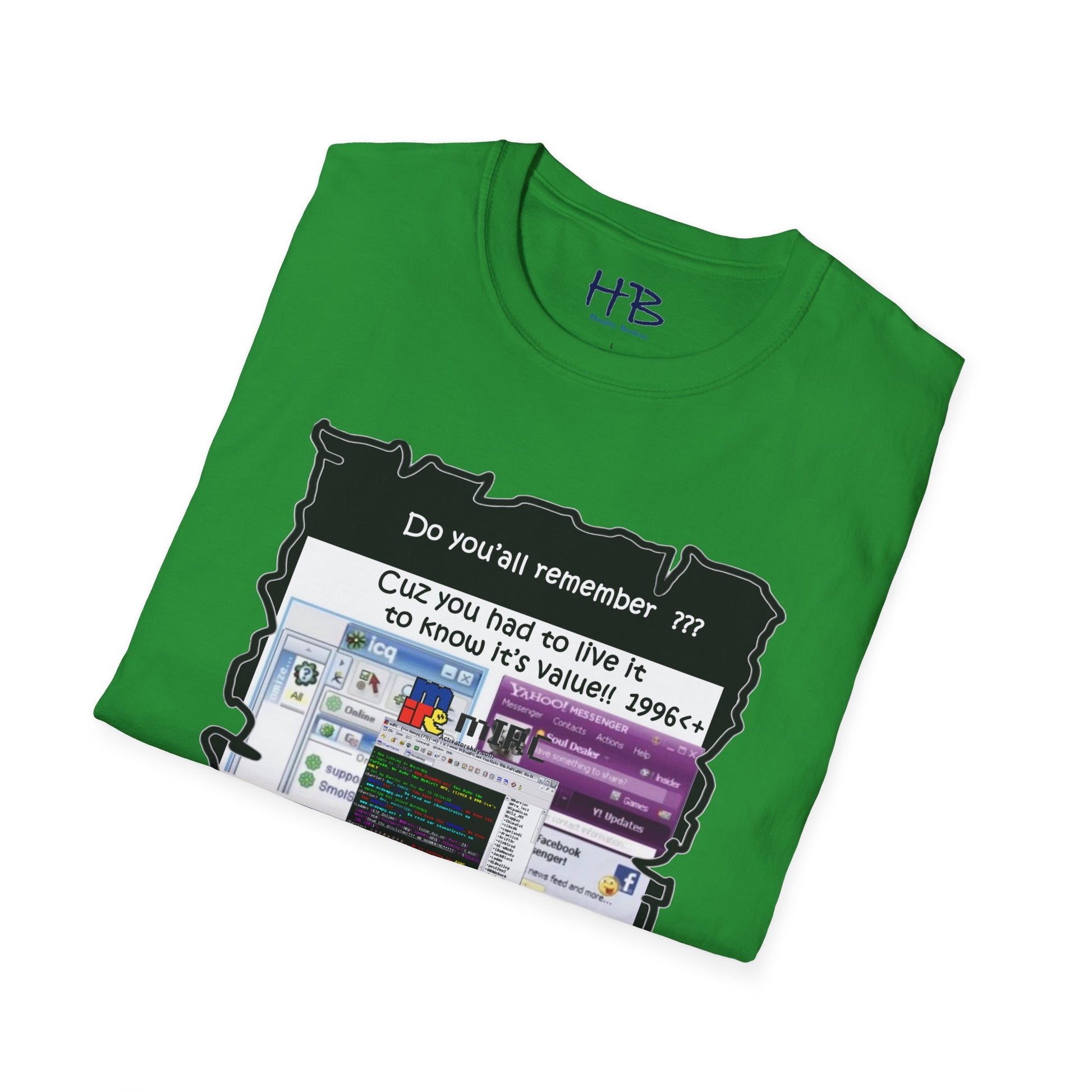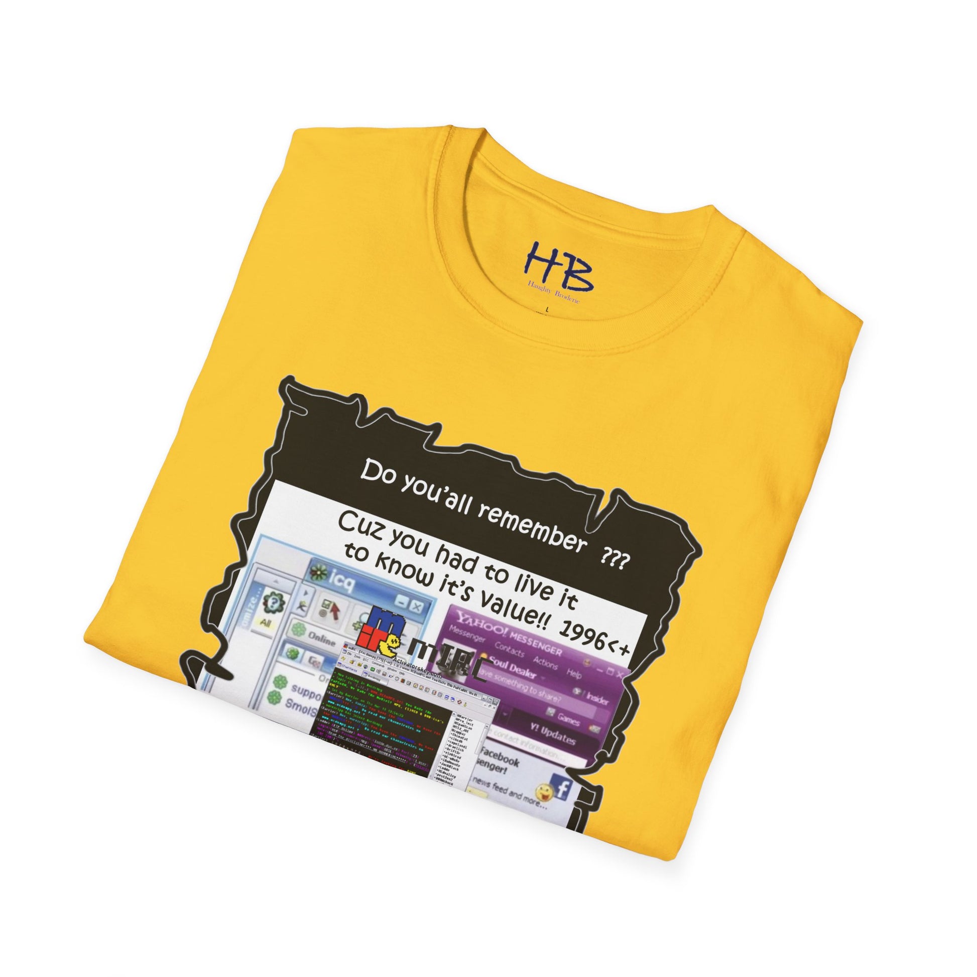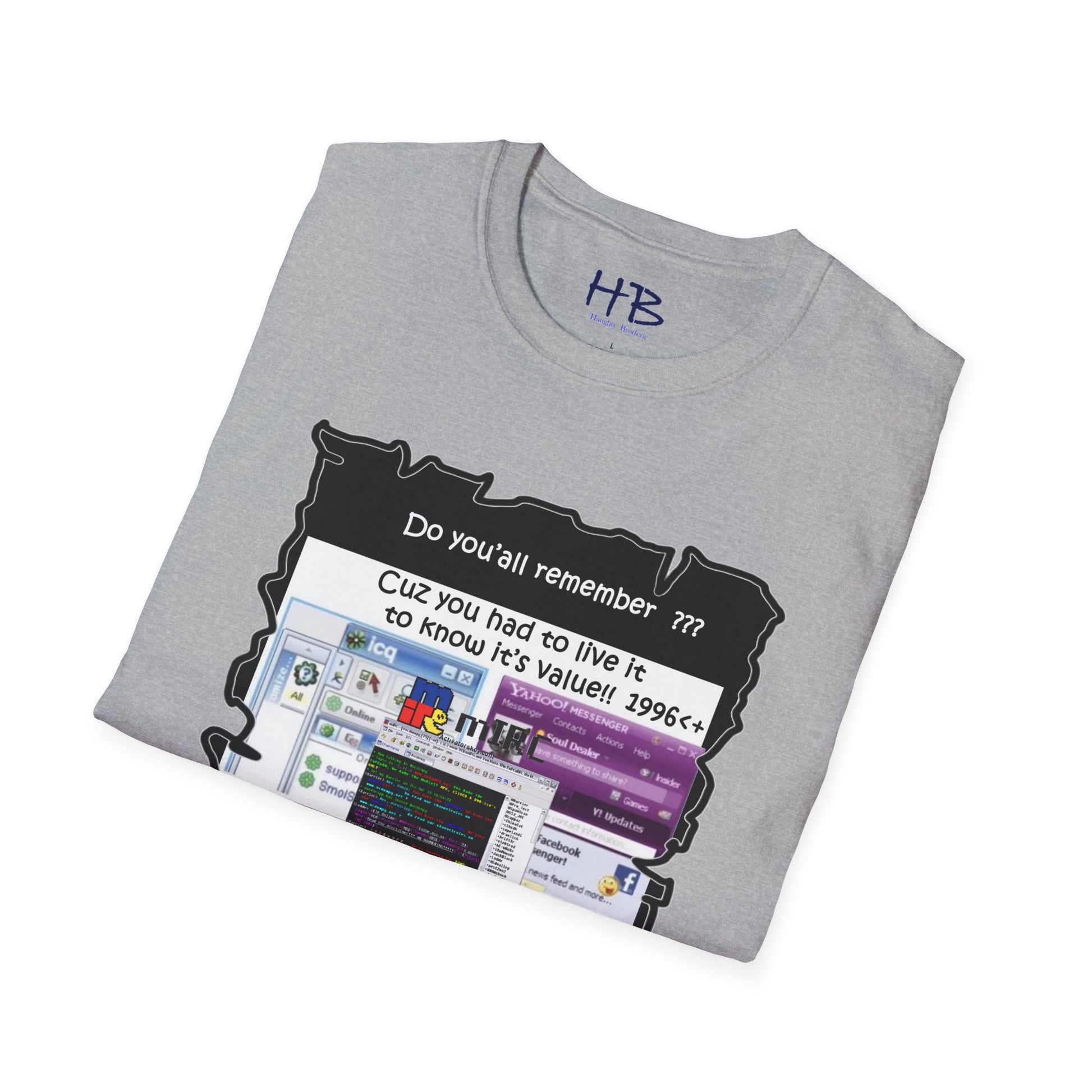 Our tee shirt captures the essence of that era, with the text "Do you'all remember??? Cuz you had to live it to know it's value!! 1996<+" reminding us of the precious memories and meaningful interactions that took place on these platforms. It celebrates the sense of community and camaraderie that flourished when the internet was still in its infancy.