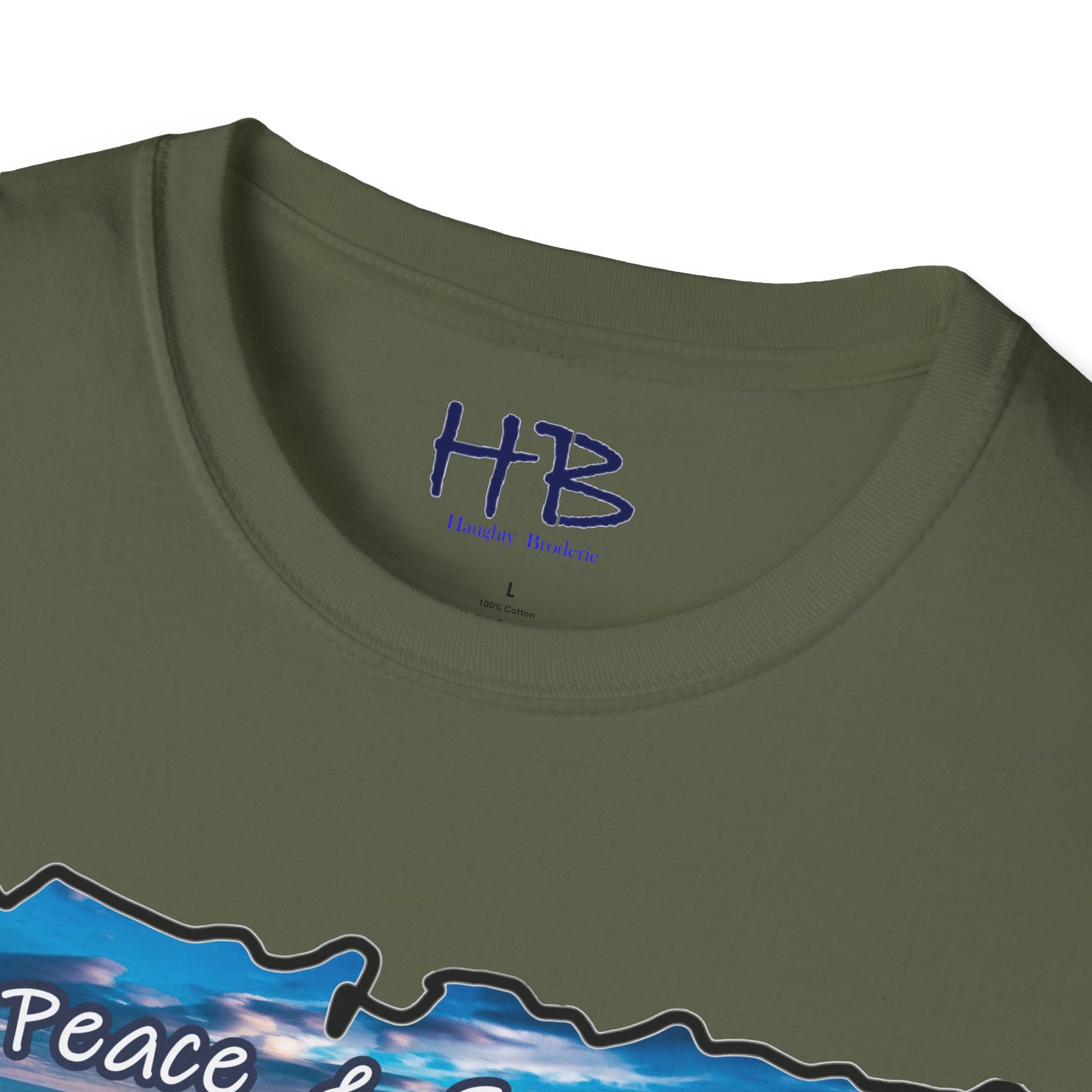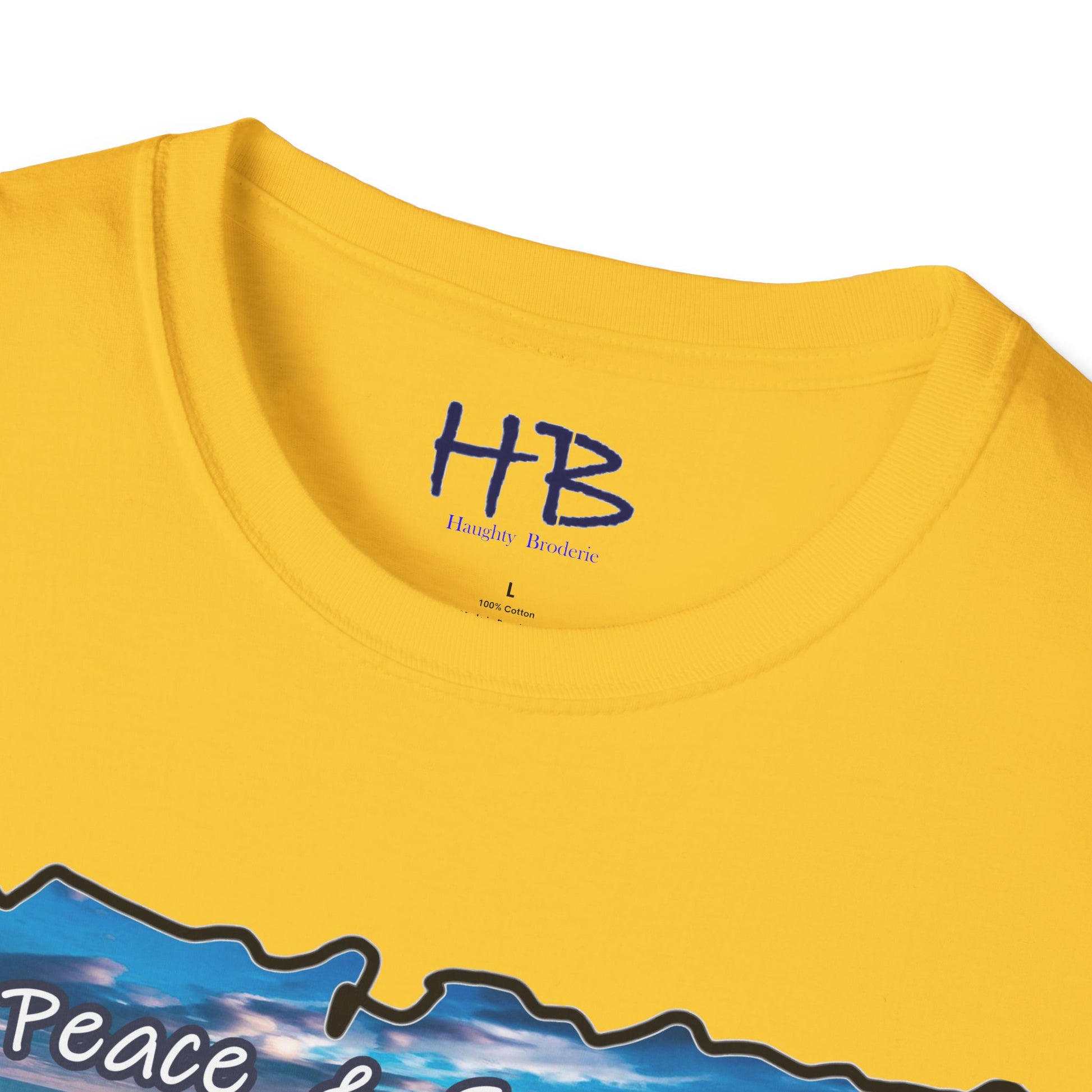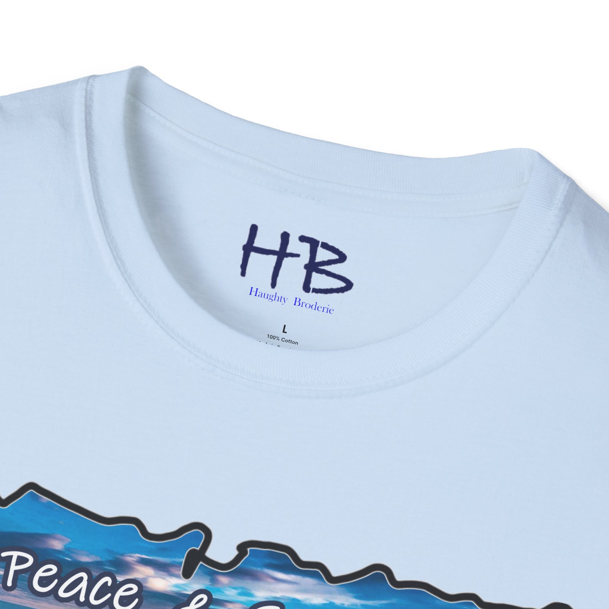 Imagine donning this shirt and carrying with you the embodiment of a peaceful retreat. The text, elegantly embroidered, spells out "Peace & Serenity," a succinct mantra inviting mindfulness, meditation, and a moment of respite. This wearable artwork resonates with those who seek solace, simplicity, and a touch of minimalistic beauty in their lives.