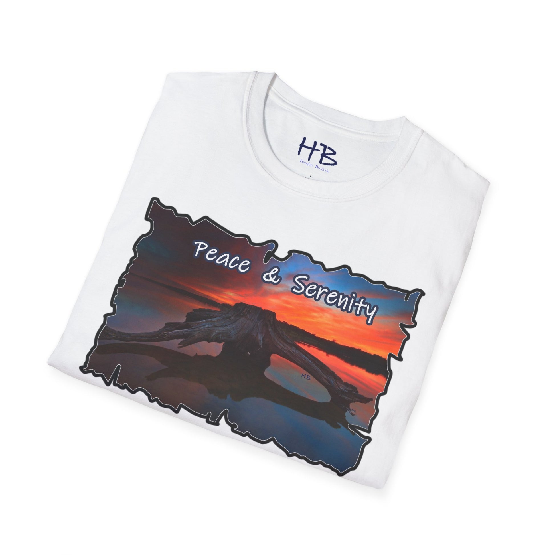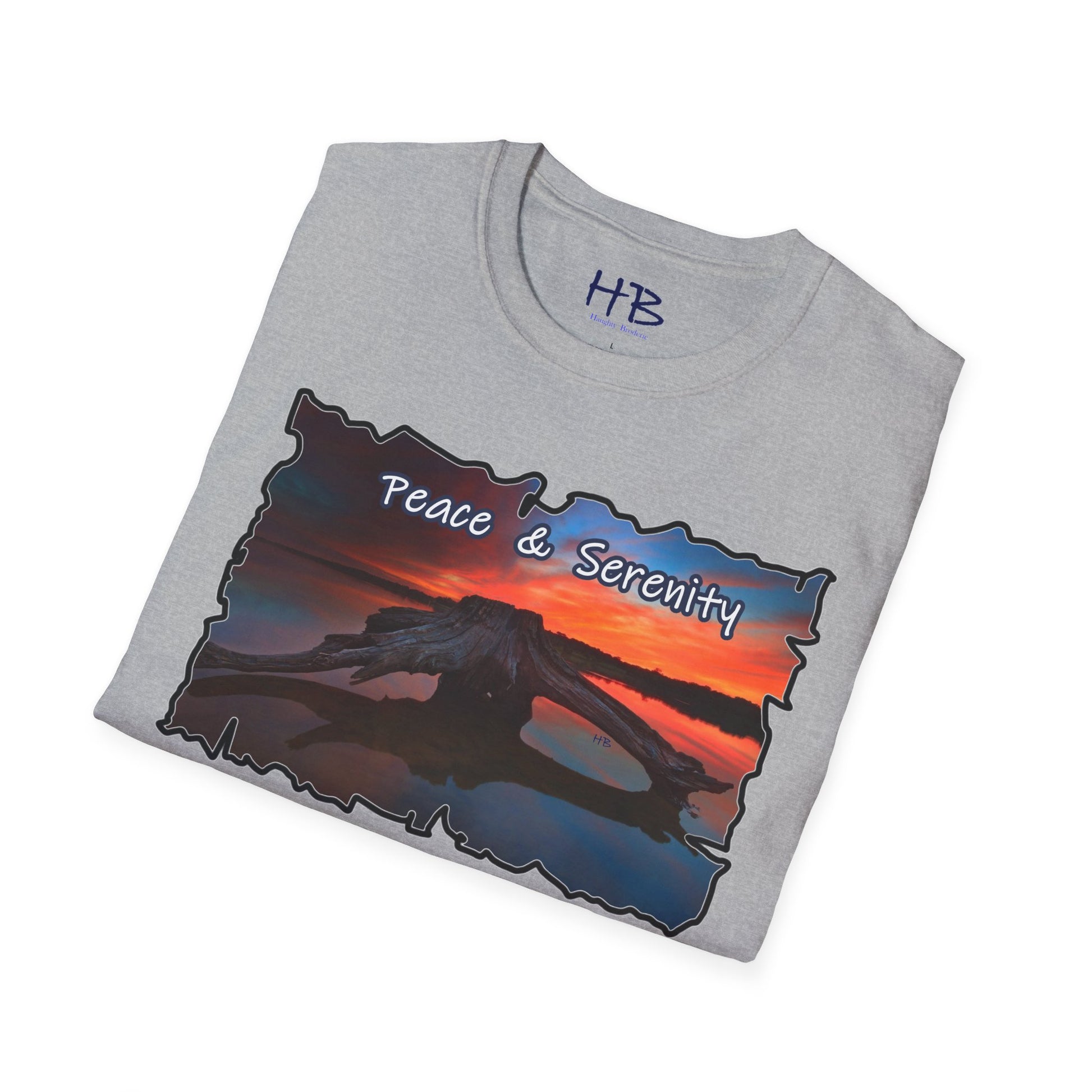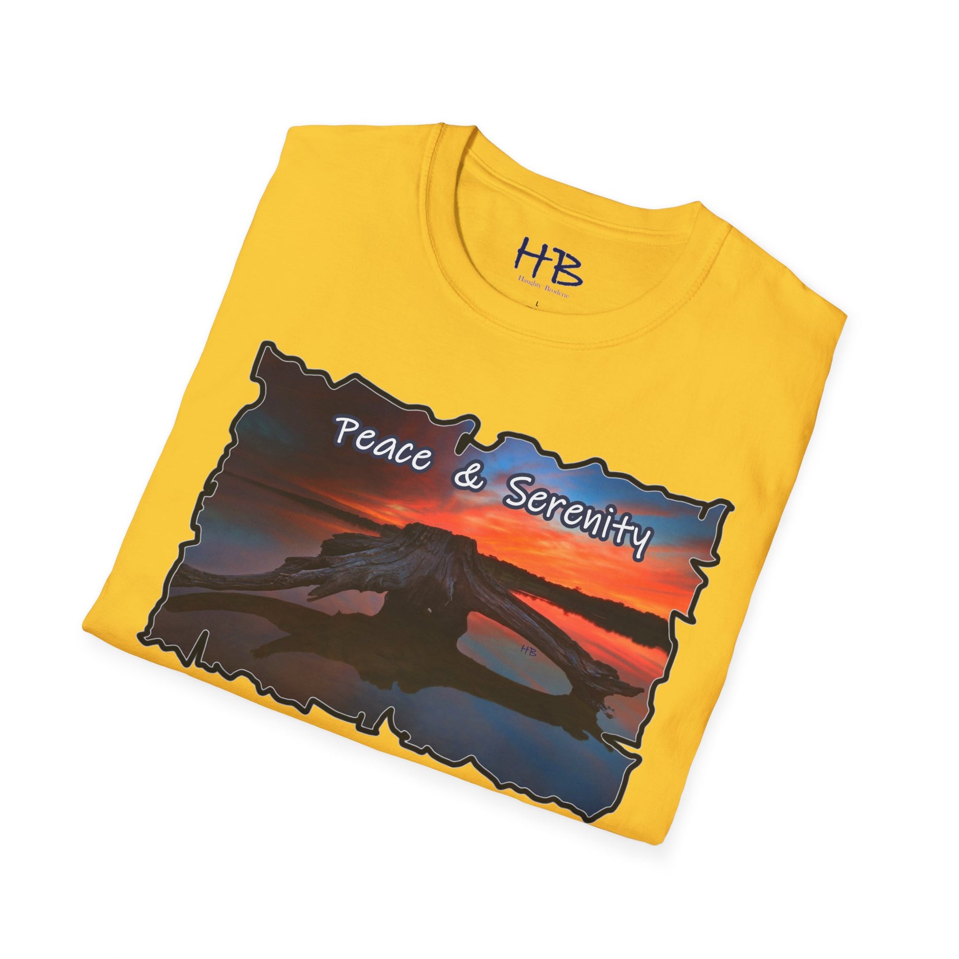 Introducing our Serene Horizon Escape T-Shirt, a wearable masterpiece that encapsulates the essence of tranquility and the yearning for a paradise getaway. Picture this: a breathtaking scene unfolds on the fabric, capturing the very soul of a destination coveted by all. In the heart of a magnificent lake, a sizable tree-laden raft gently floats, creating an oasis of calm amidst crystal-clear waters. Above, the sky transforms into a canvas of sunset hues, casting a warm and soothing glow over the entire panorama.
