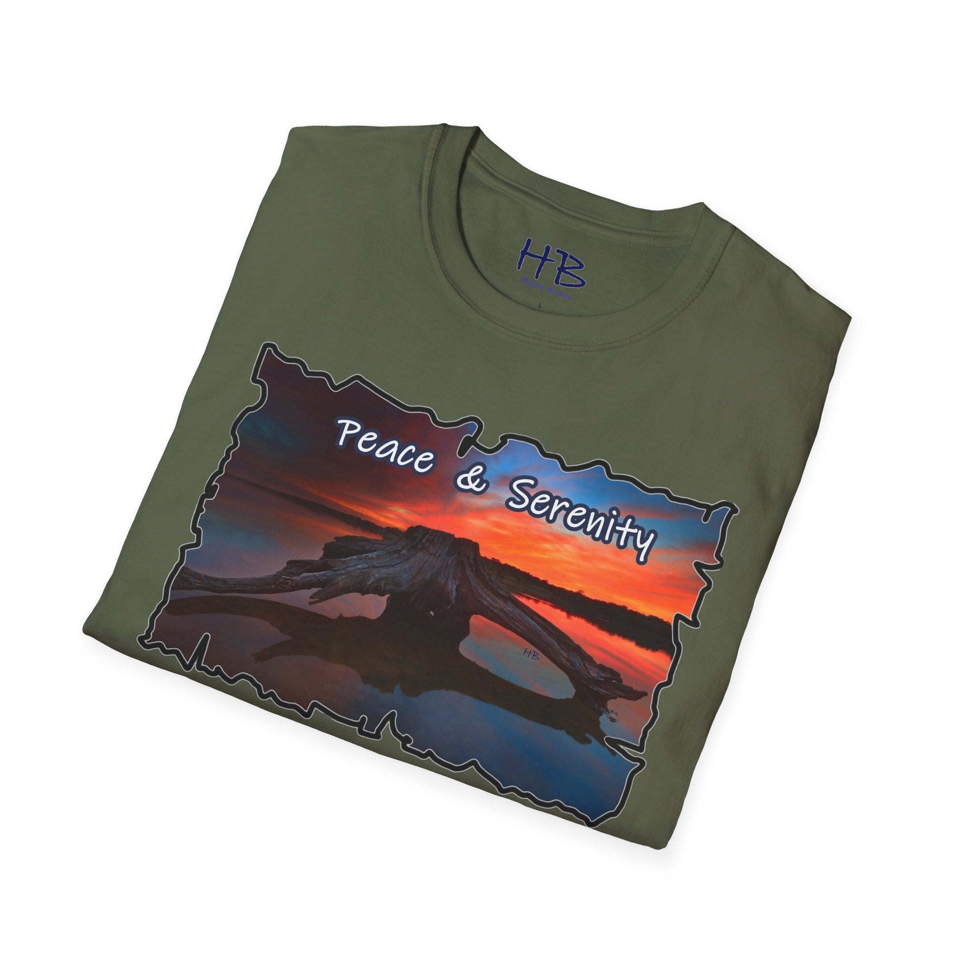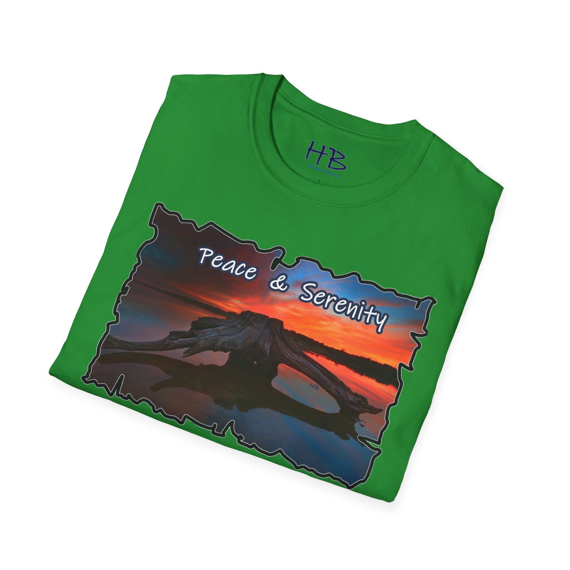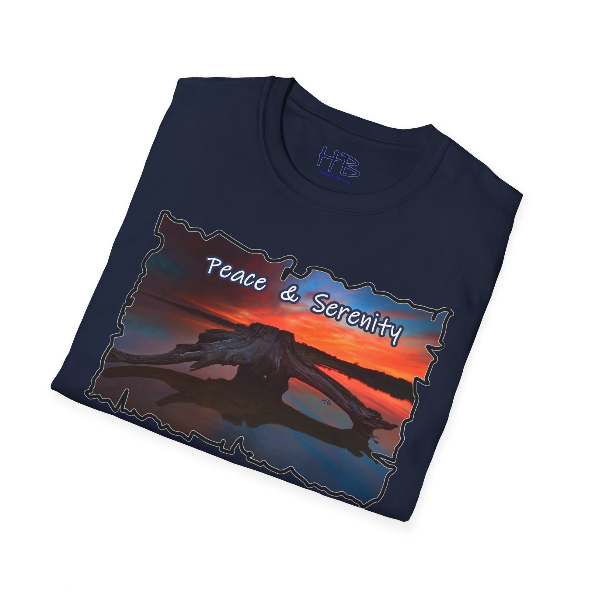 Introducing our Serene Horizon Escape T-Shirt, a wearable masterpiece that encapsulates the essence of tranquility and the yearning for a paradise getaway. Picture this: a breathtaking scene unfolds on the fabric, capturing the very soul of a destination coveted by all. In the heart of a magnificent lake, a sizable tree-laden raft gently floats, creating an oasis of calm amidst crystal-clear waters. Above, the sky transforms into a canvas of sunset hues, casting a warm and soothing glow over the entire panorama.