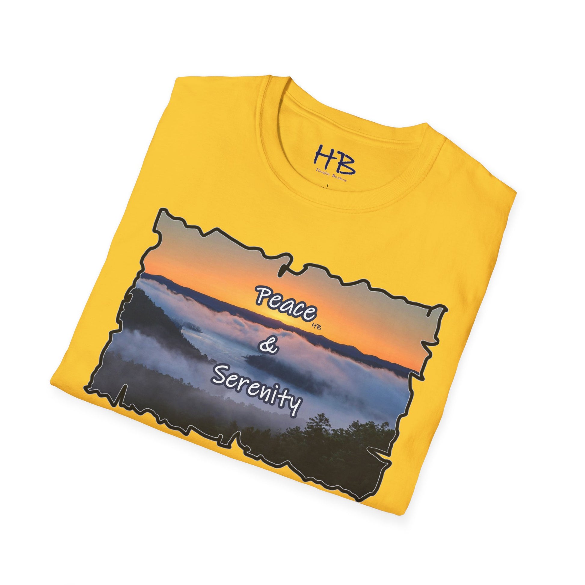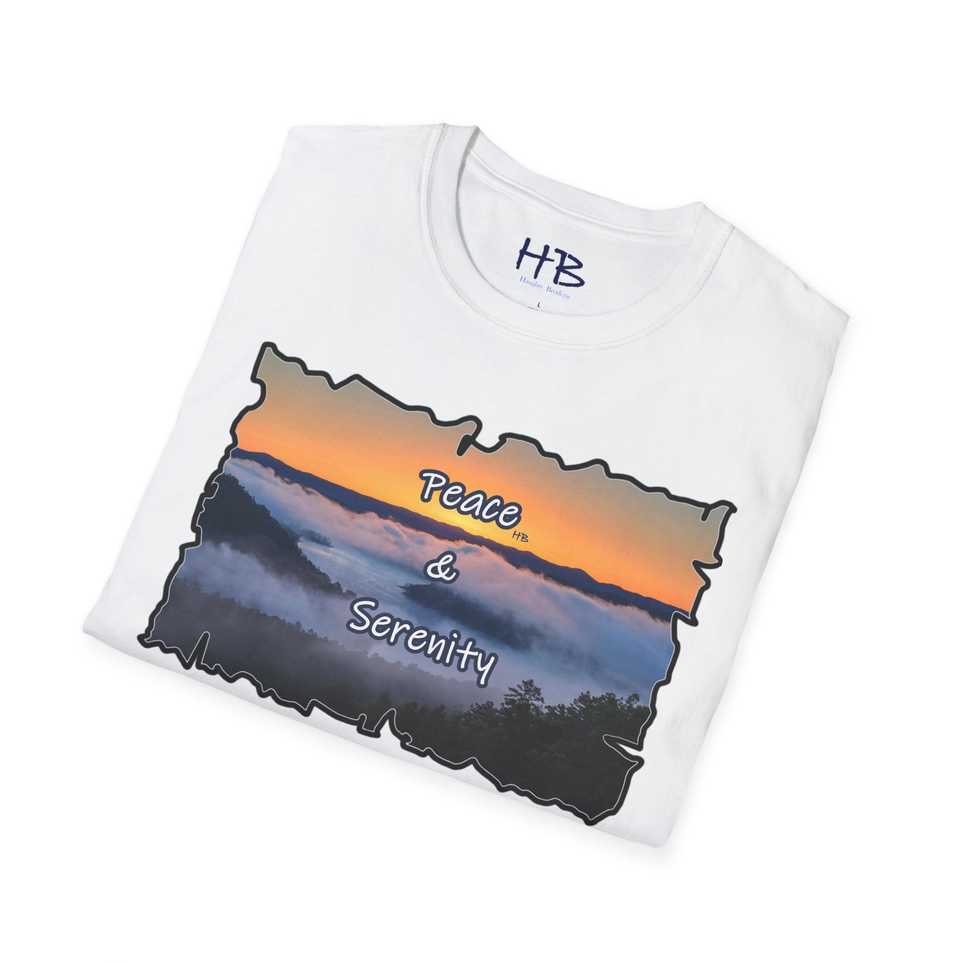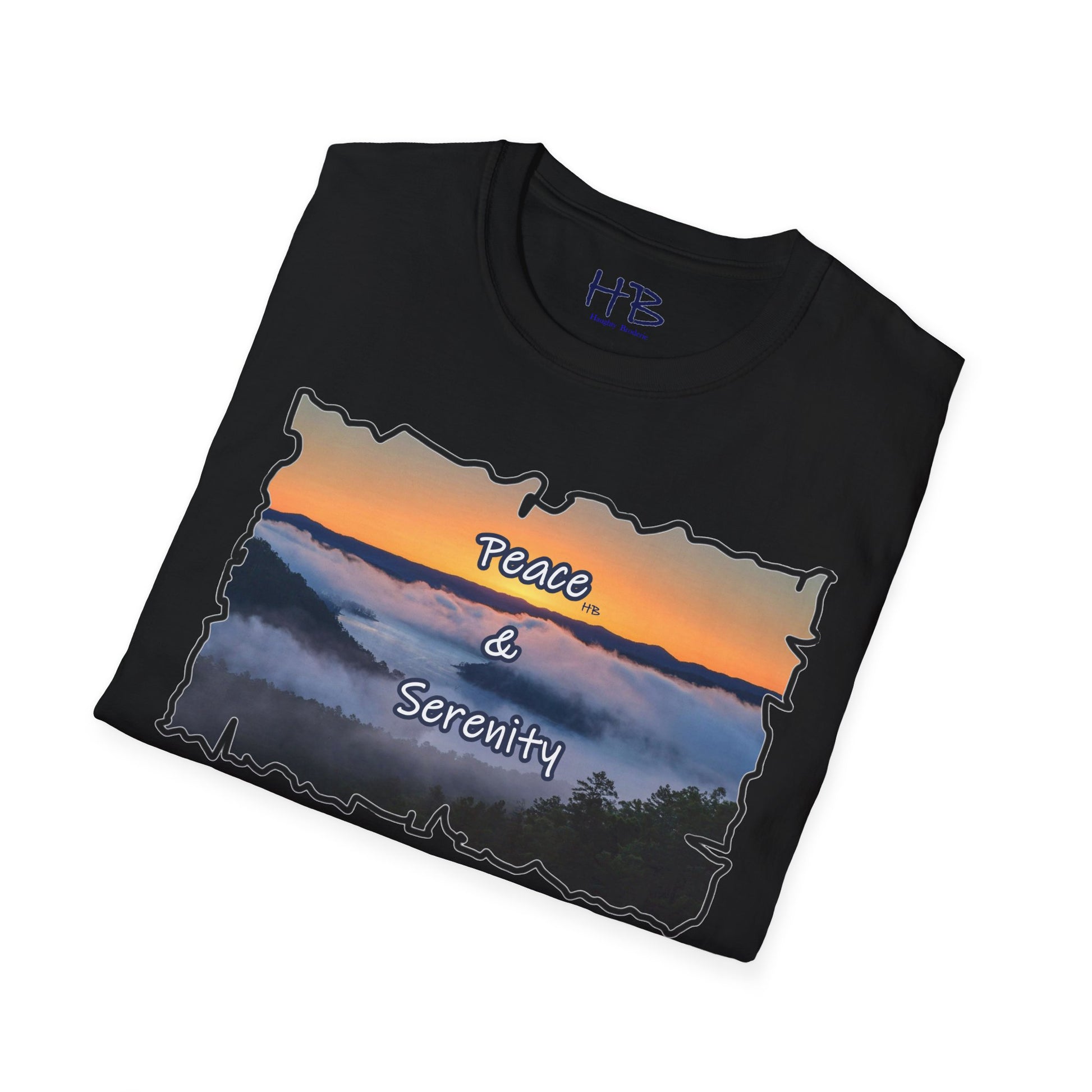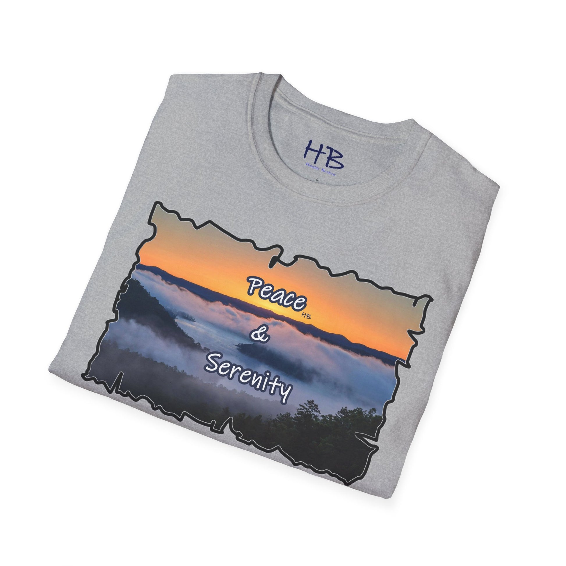 Step into a realm of envy-inducing tranquility with our exquisite "Peace & Serenity" t-shirt. Crafted for those who yearn for a celestial escape from the relentless hustle, this wearable masterpiece encapsulates a paradise scenario that resonates with the profound desires of modern life. Picture yourself atop a majestic hill, rising above the ethereal sea of clouds. Trees gracefully breach the clouds, their tops pointing skyward, creating an awe-inspiring tableau against a canvas of a warm orange sunset sky.