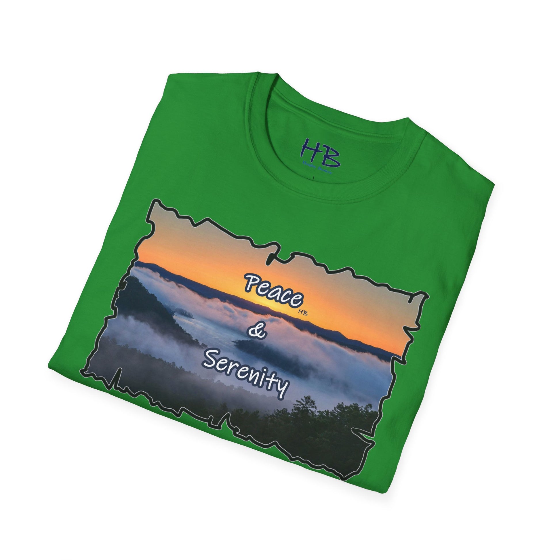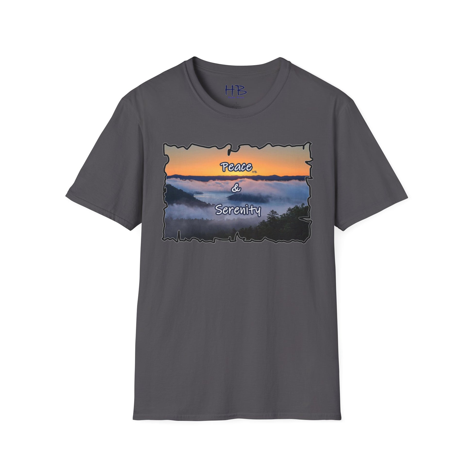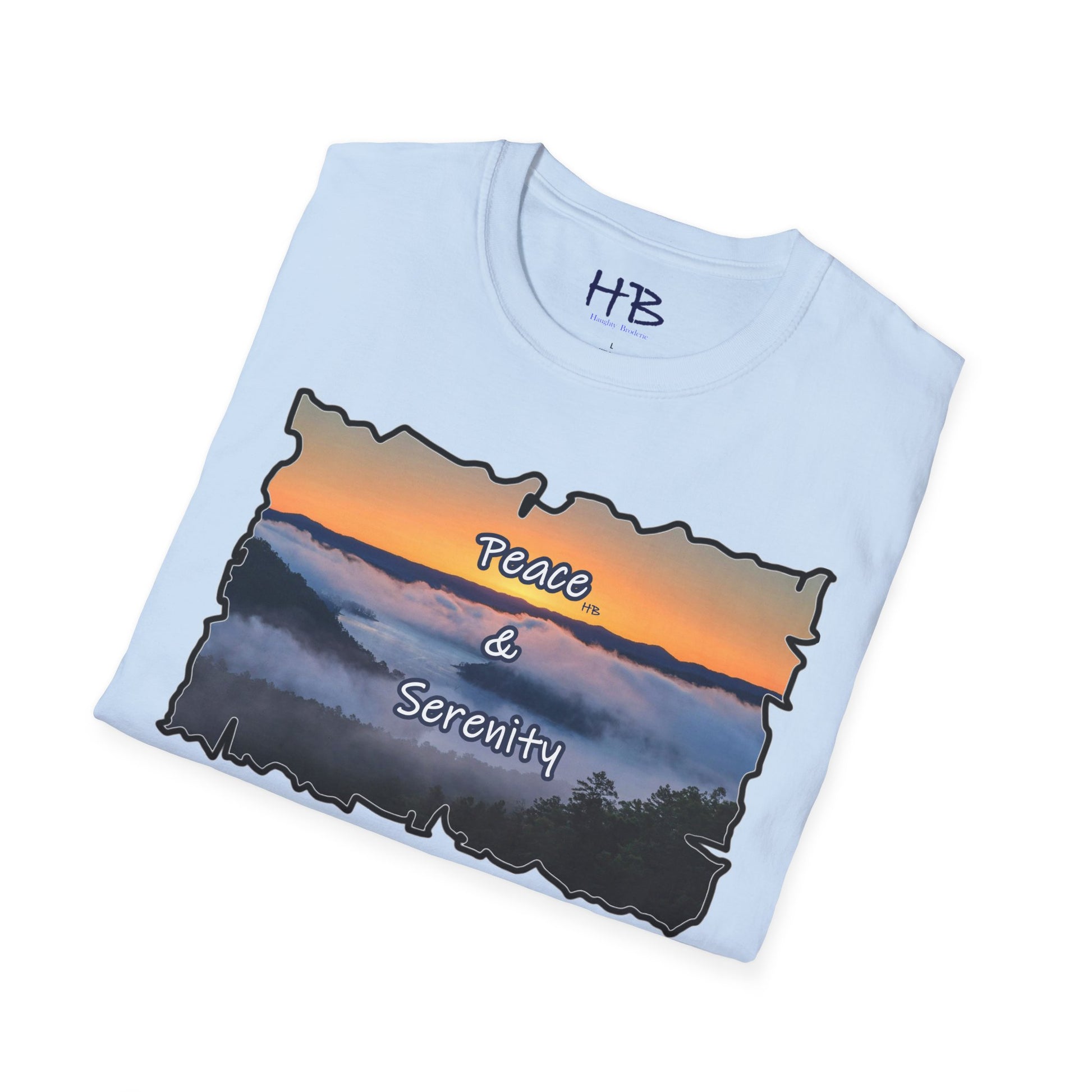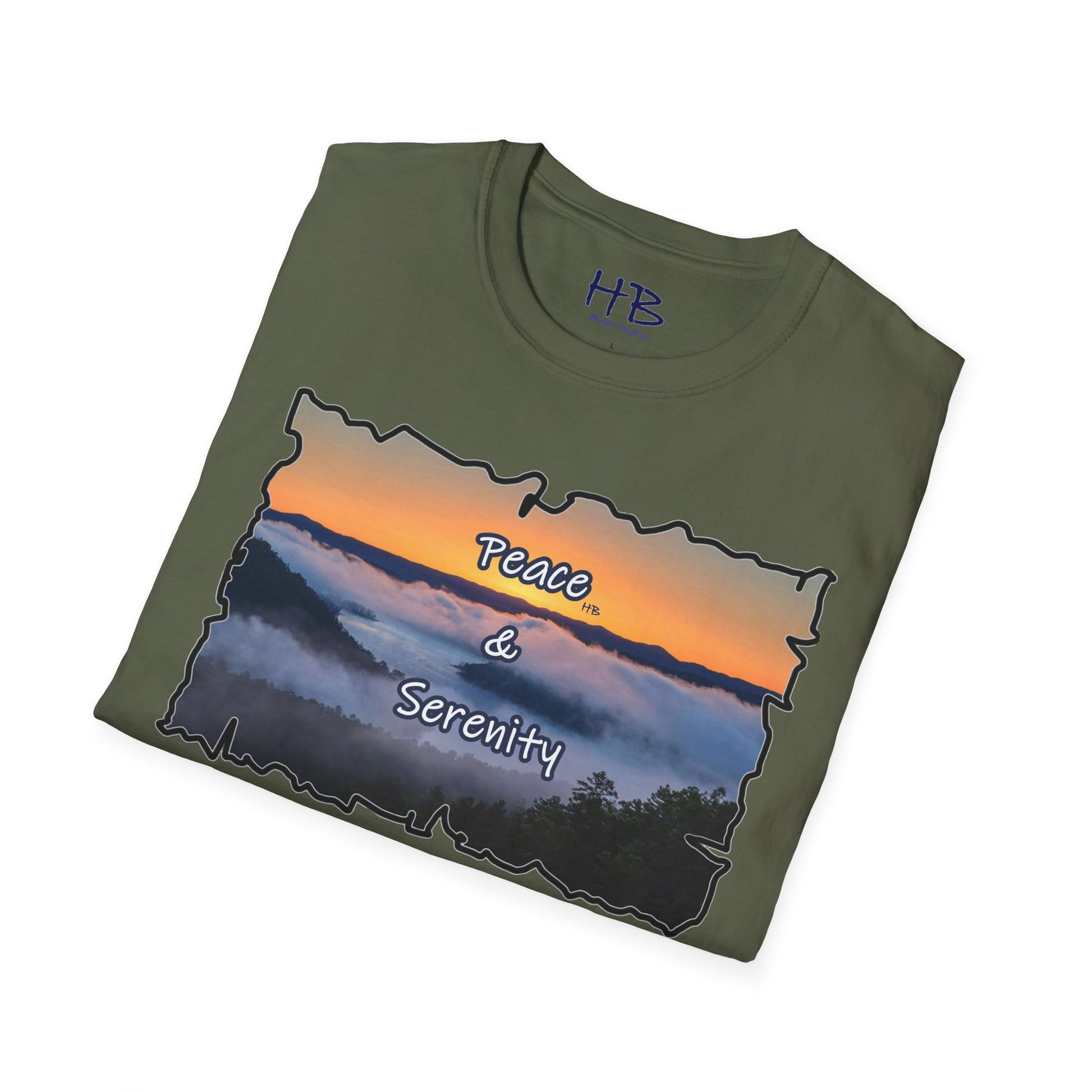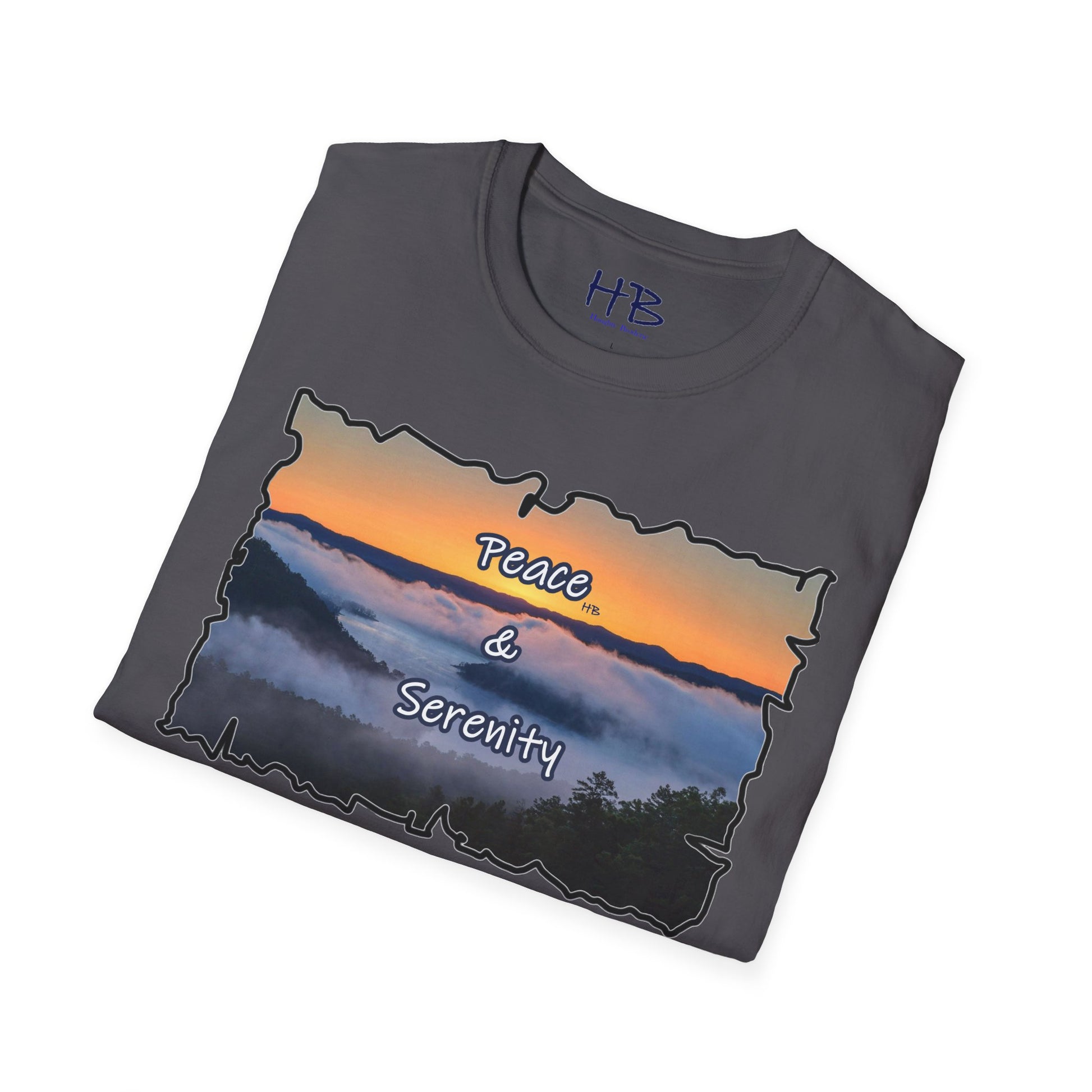 Step into a realm of envy-inducing tranquility with our exquisite "Peace & Serenity" t-shirt. Crafted for those who yearn for a celestial escape from the relentless hustle, this wearable masterpiece encapsulates a paradise scenario that resonates with the profound desires of modern life. Picture yourself atop a majestic hill, rising above the ethereal sea of clouds. Trees gracefully breach the clouds, their tops pointing skyward, creating an awe-inspiring tableau against a canvas of a warm orange sunset sky.