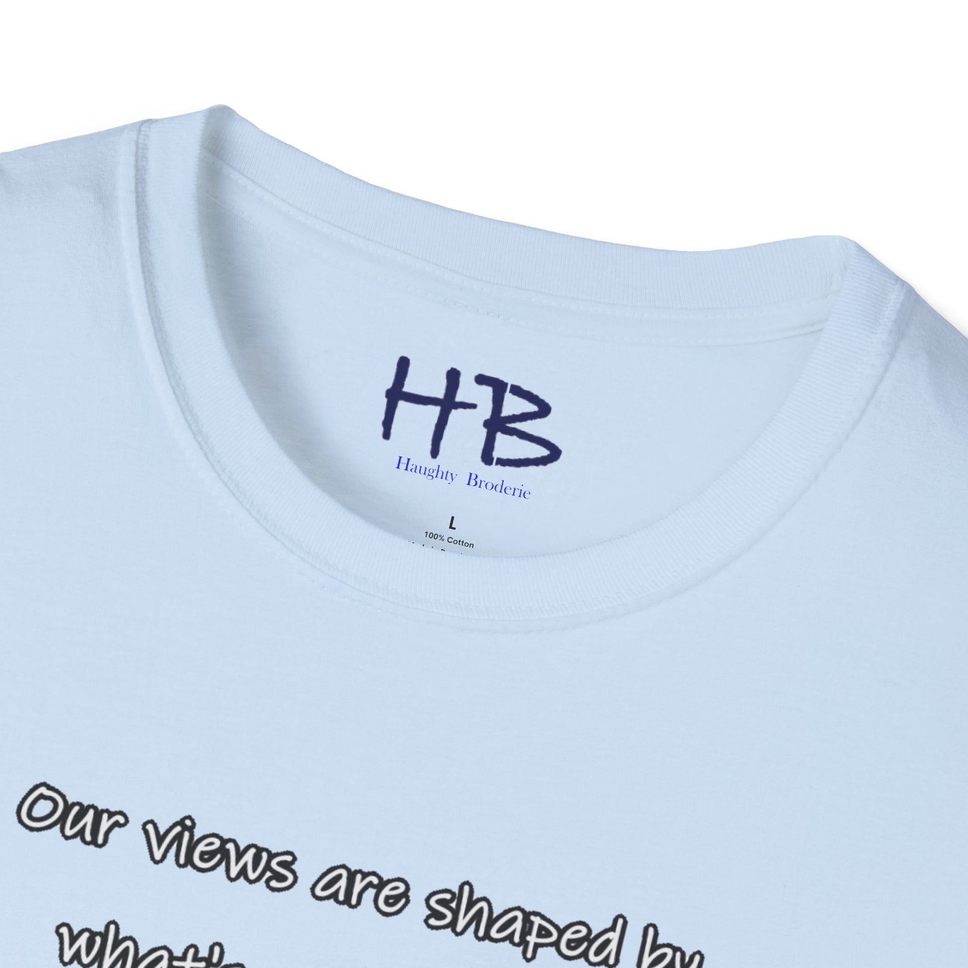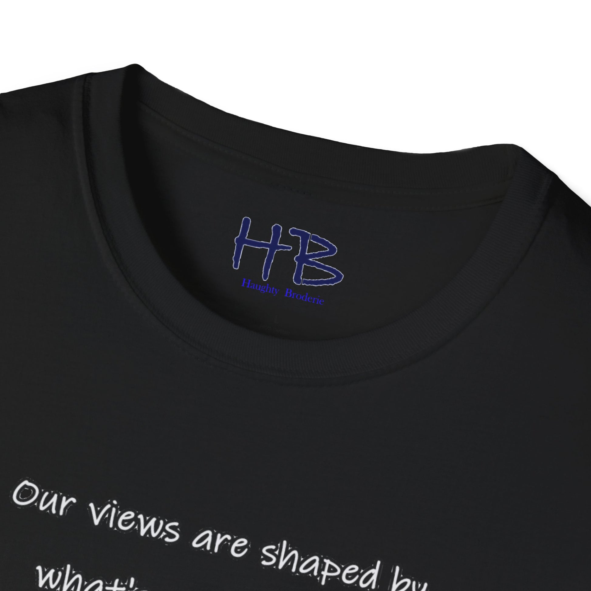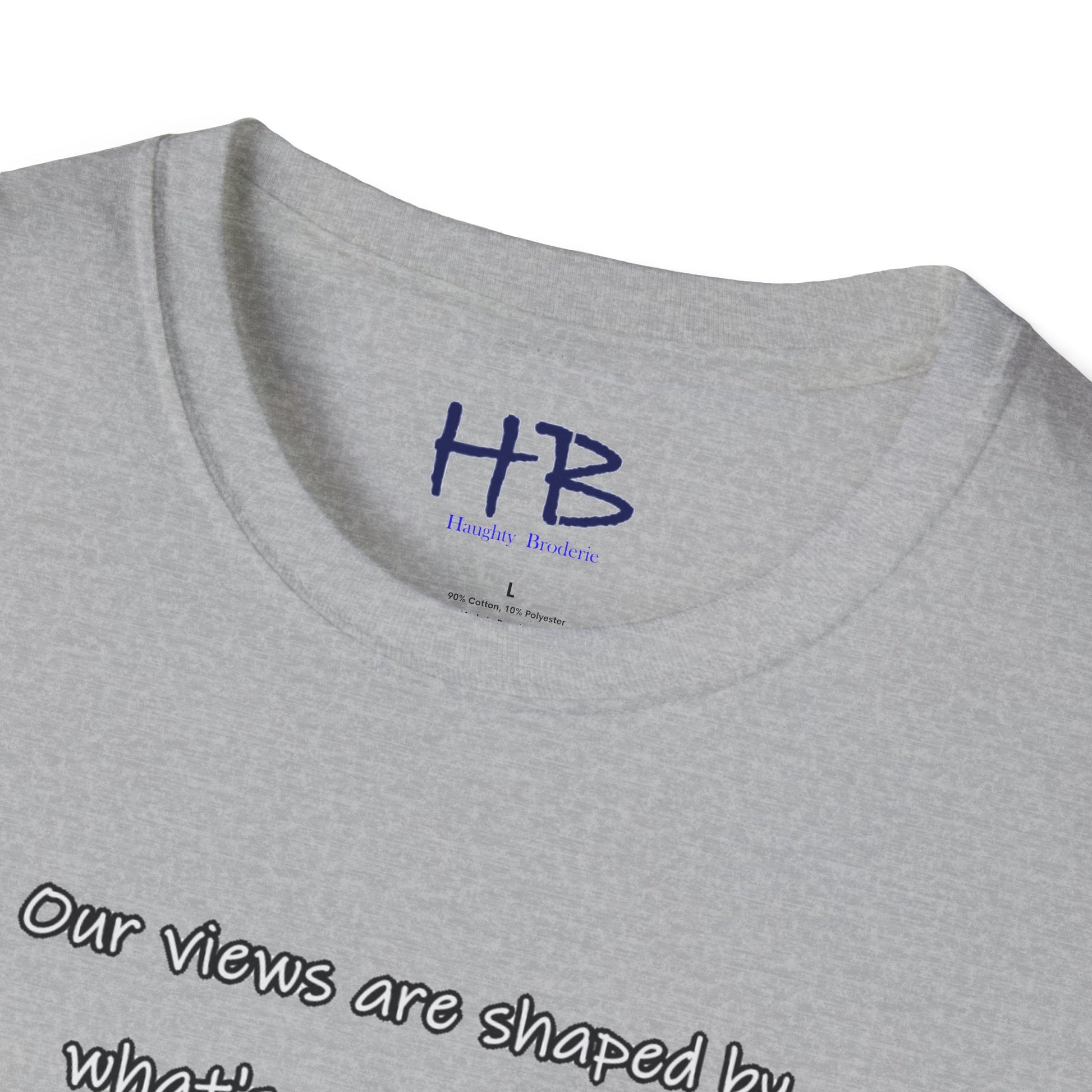 As you proudly wear this tee, you become a walking testament to the idea that our perspectives are shaped by what we encounter, what's within our grasp. It's a subtle reminder that we should strive to broaden our horizons, seek diverse experiences, and challenge our own viewpoints. In a world that often craves conformity, this tee shirt stands as a beacon of individuality and intellectual curiosity.