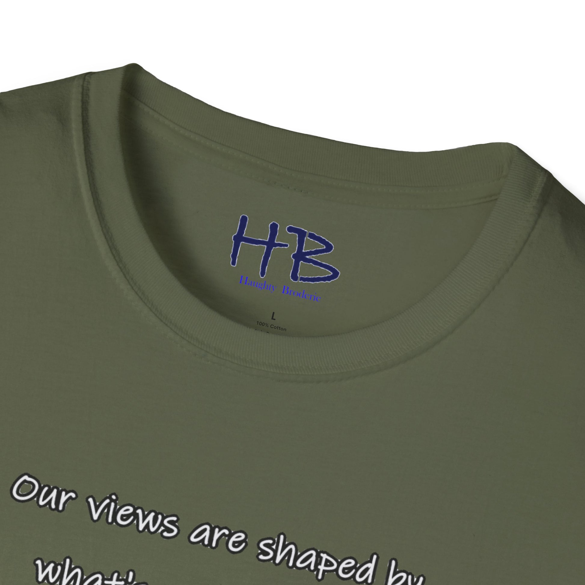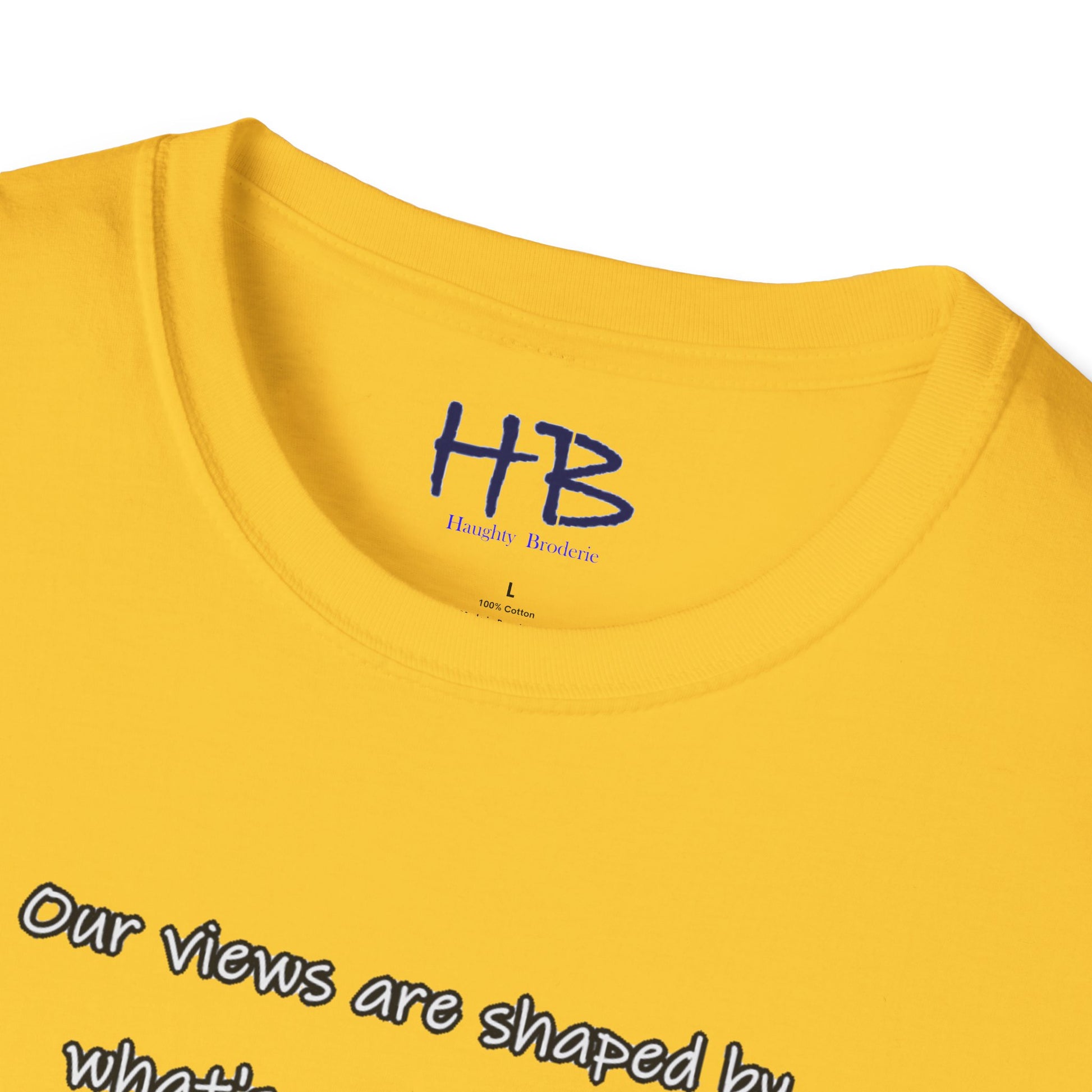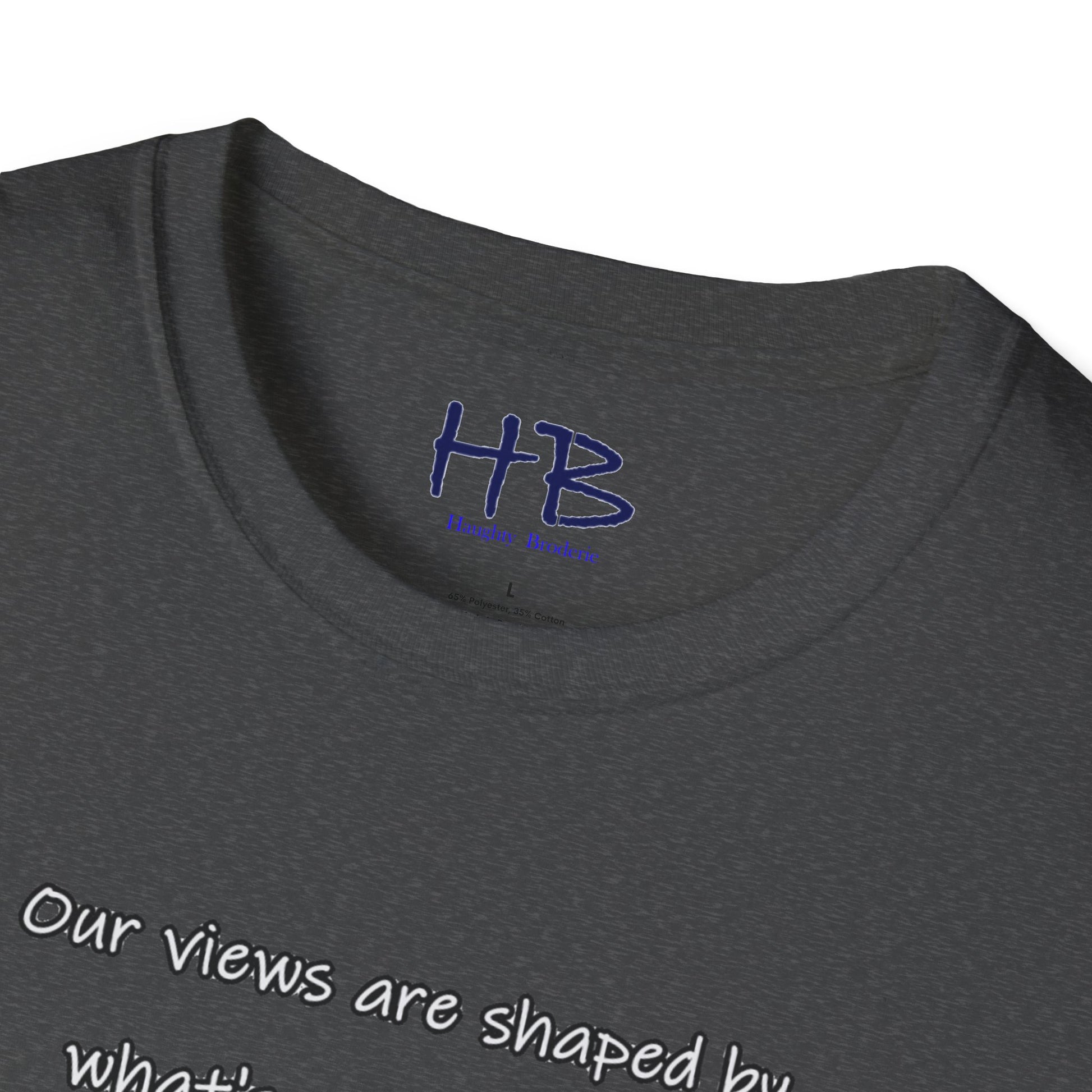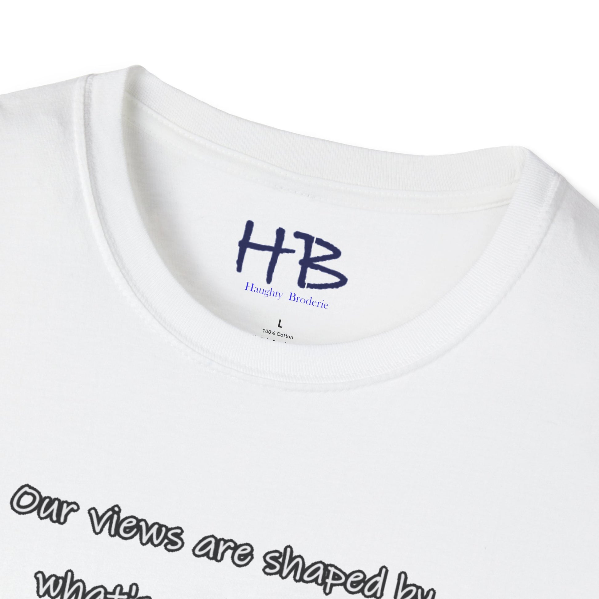 As you proudly wear this tee, you become a walking testament to the idea that our perspectives are shaped by what we encounter, what's within our grasp. It's a subtle reminder that we should strive to broaden our horizons, seek diverse experiences, and challenge our own viewpoints. In a world that often craves conformity, this tee shirt stands as a beacon of individuality and intellectual curiosity.