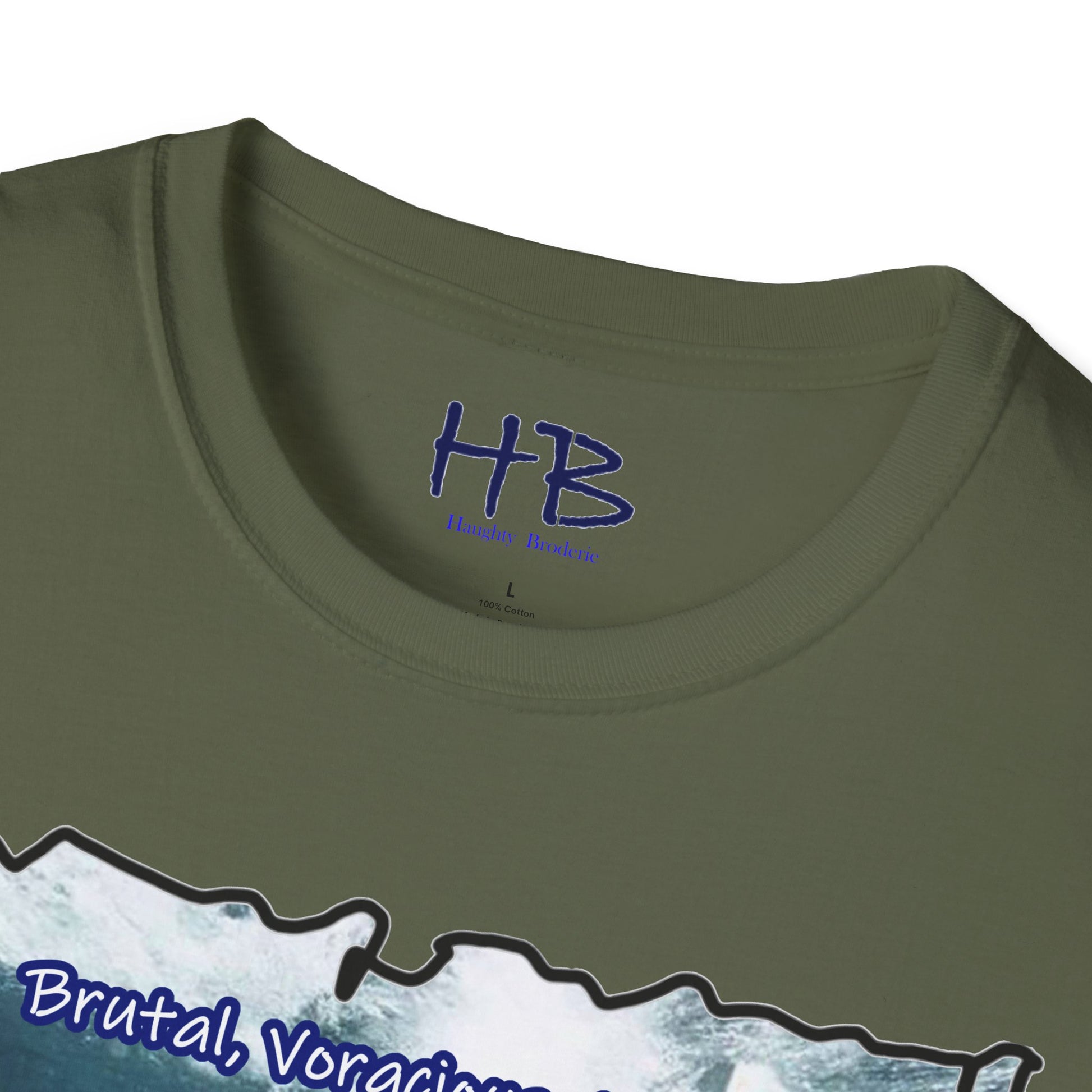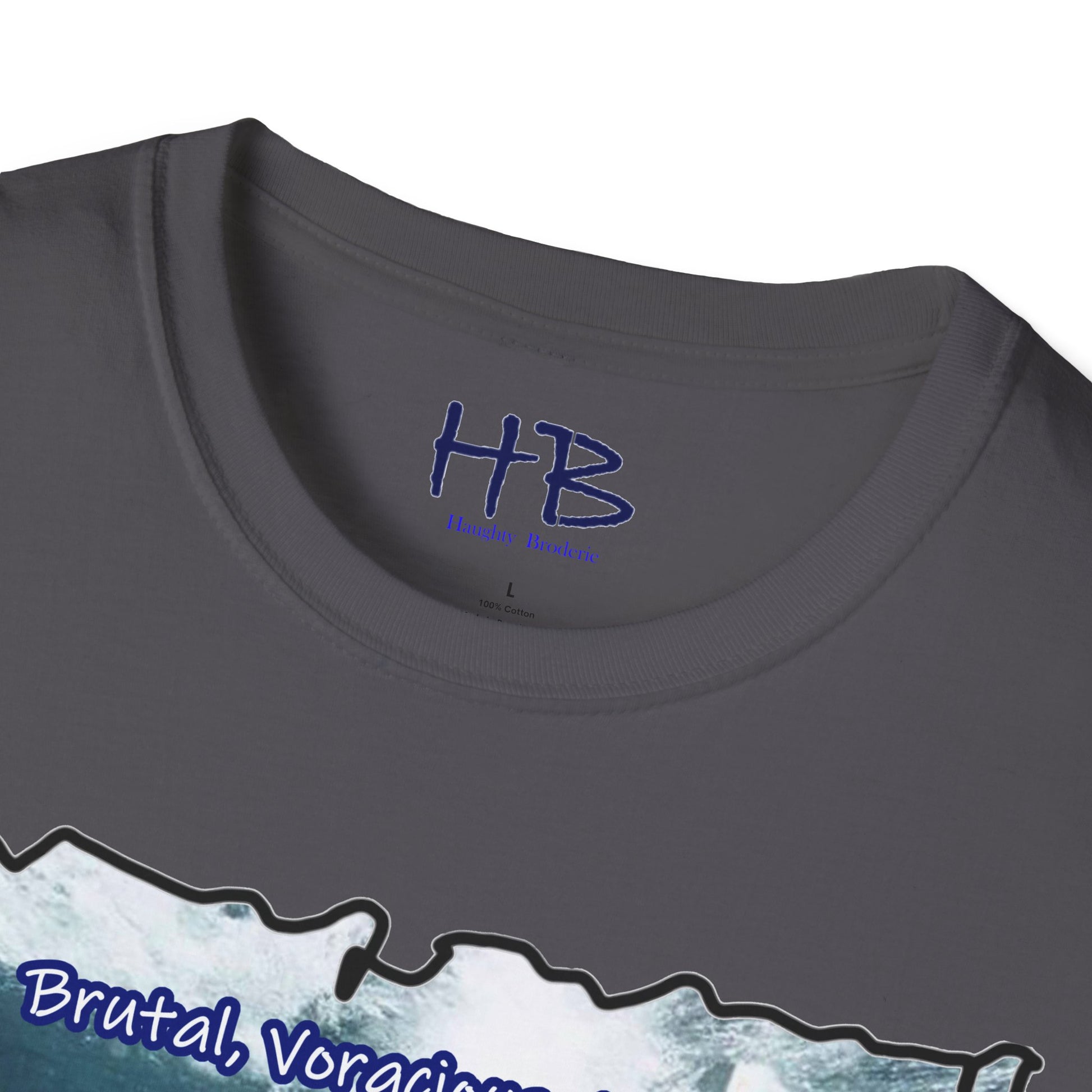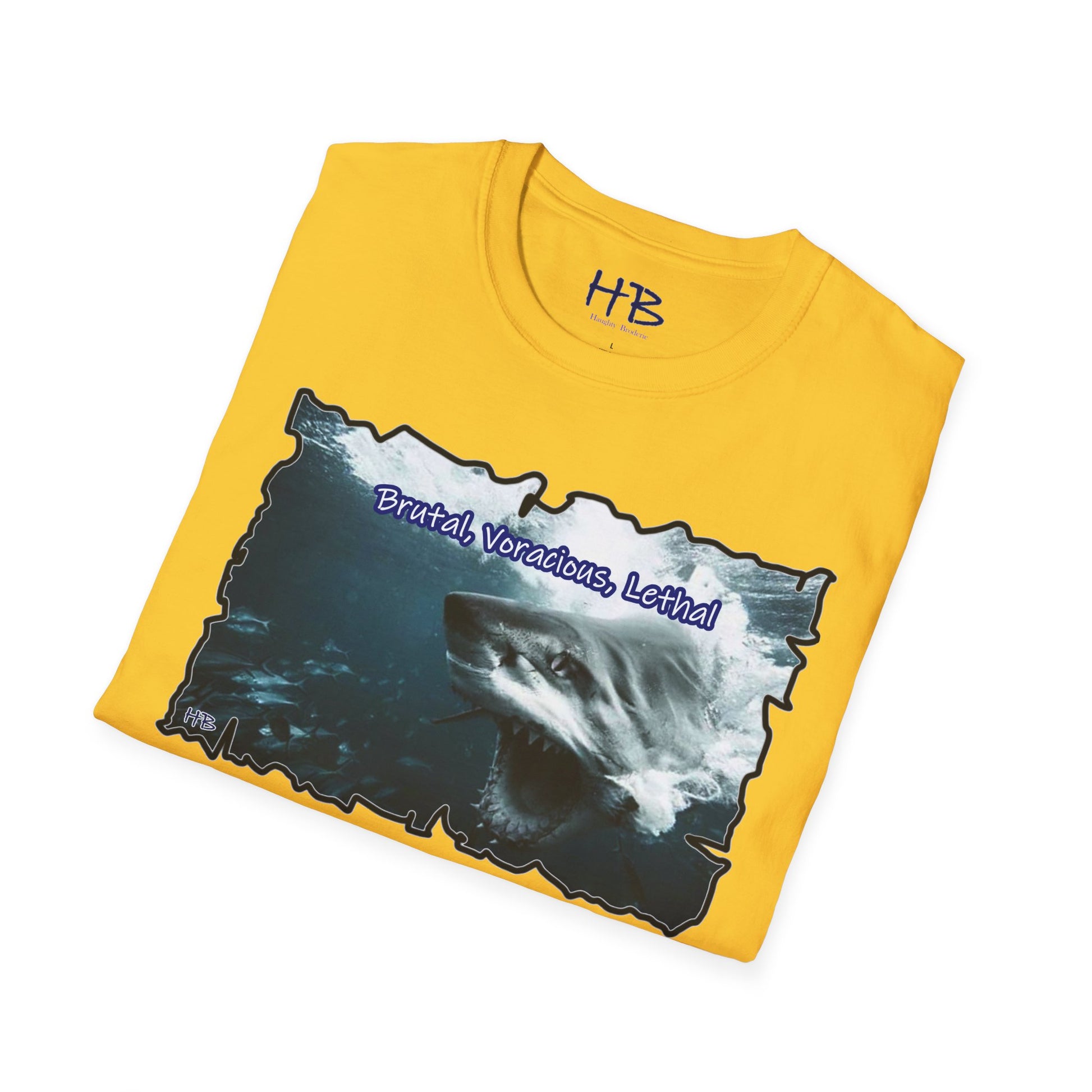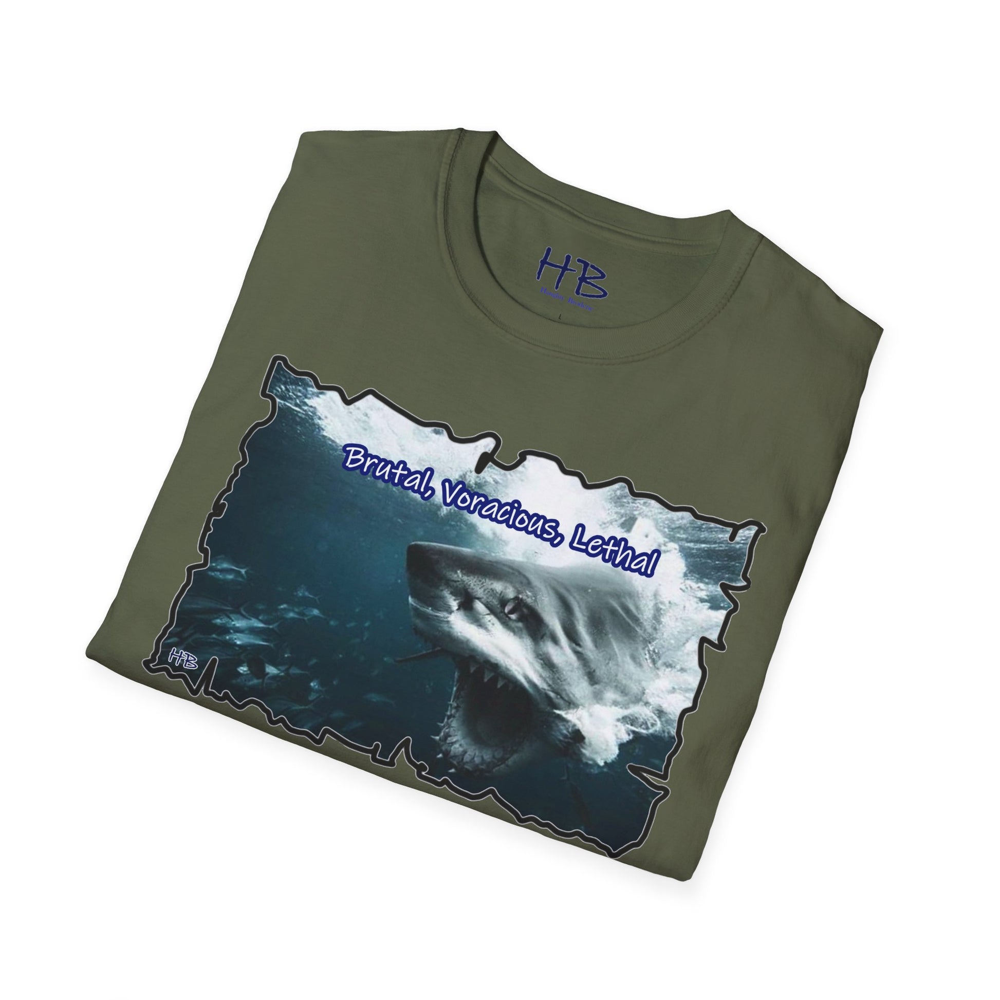 The text boldly declares, "Brutal, Voracious, Lethal," amplifying the narrative etched onto the fabric. Those who catch a glimpse of this wearable masterpiece won't merely see a graphic; they'll witness a declaration of intent. The wearer becomes a force of nature, commanding attention and respect in any setting.