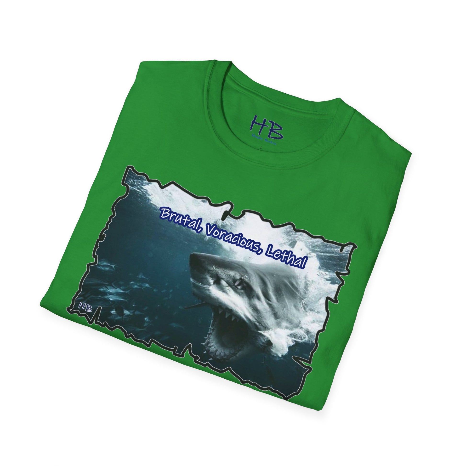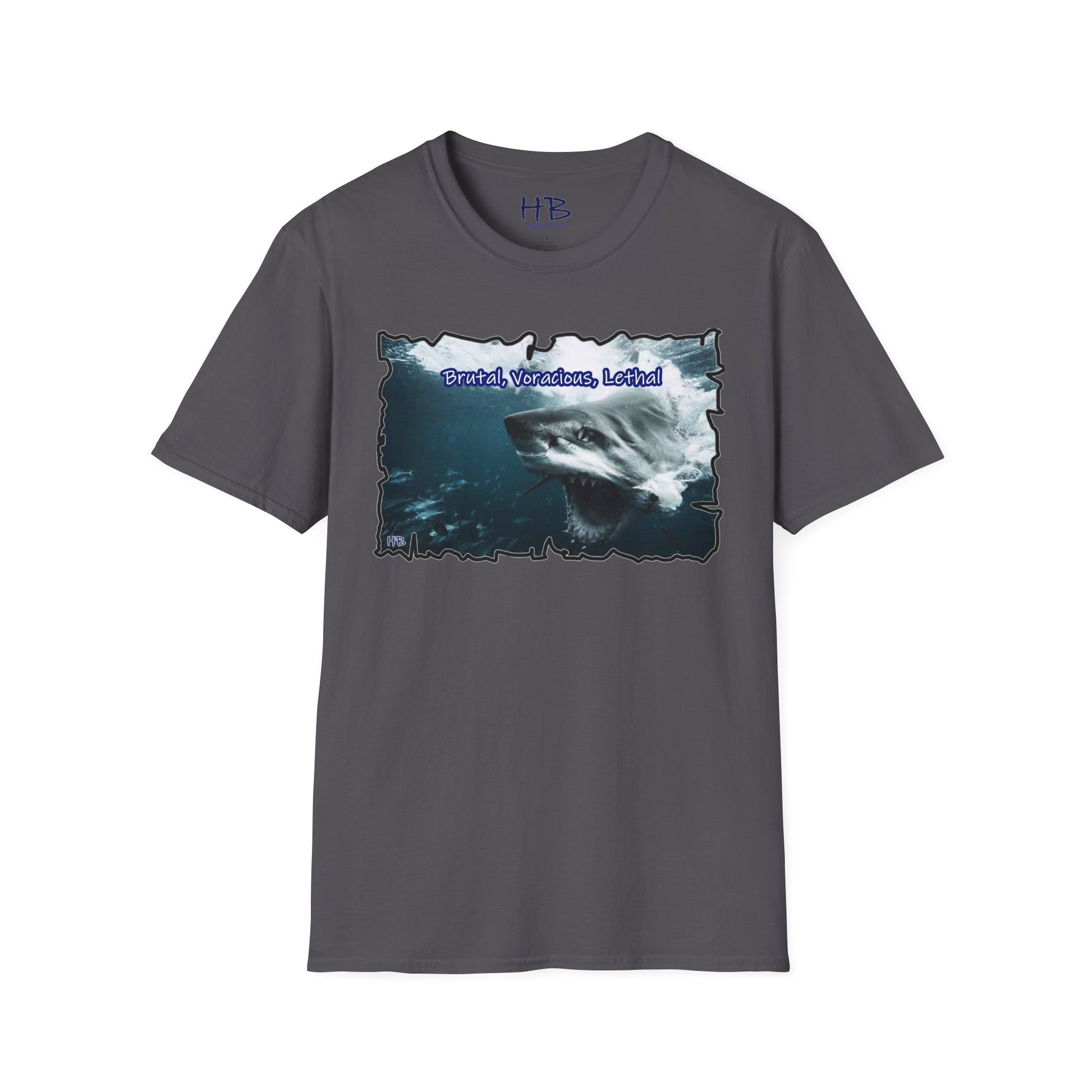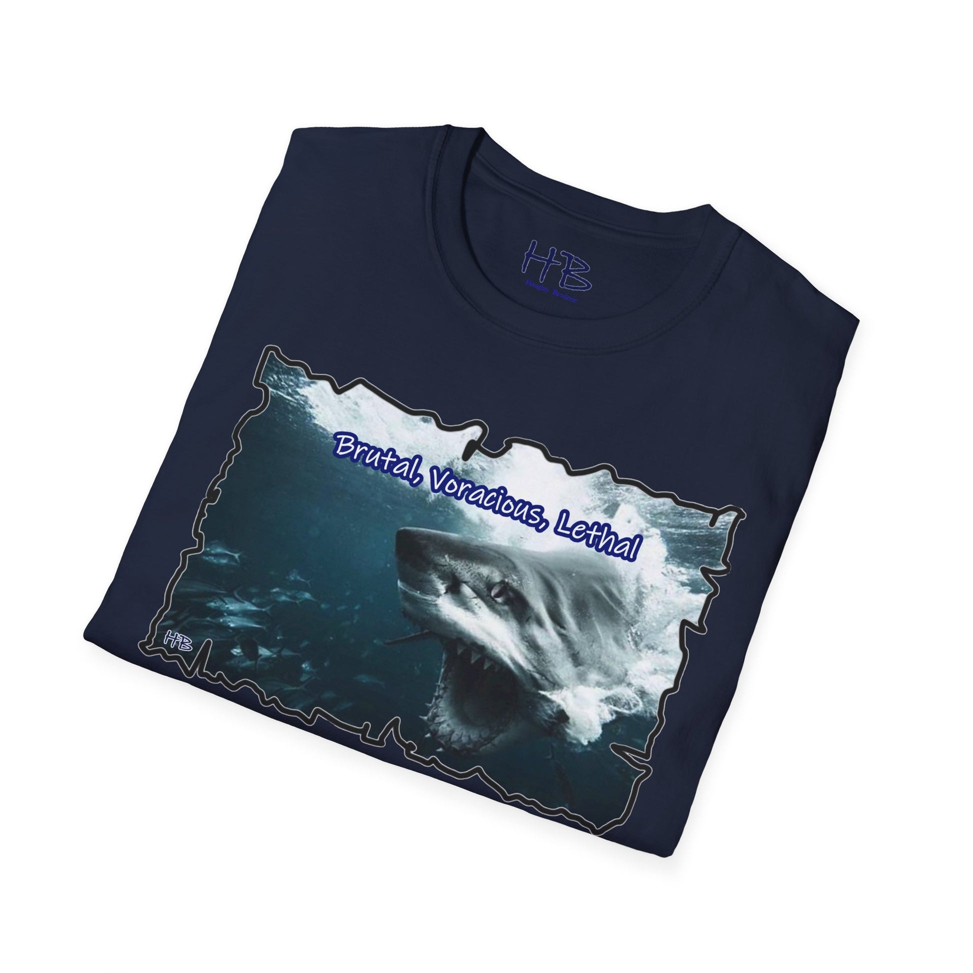 Introducing our dynamic and empowering creation – a wearable masterpiece that transcends mere fabric and stitching. Behold the apex of visual prowess, where the ferocity of nature converges with the indomitable spirit of human ambition. The front face of this garment showcases a visceral depiction of a vicious shark, its mouth agape, revealing a mesmerizing alignment of razor-sharp teeth that gleam with predatory precision. The intensity in its eyes communicates a singular purpose – to seize victory, to conquer the challenges that lie ahead.
