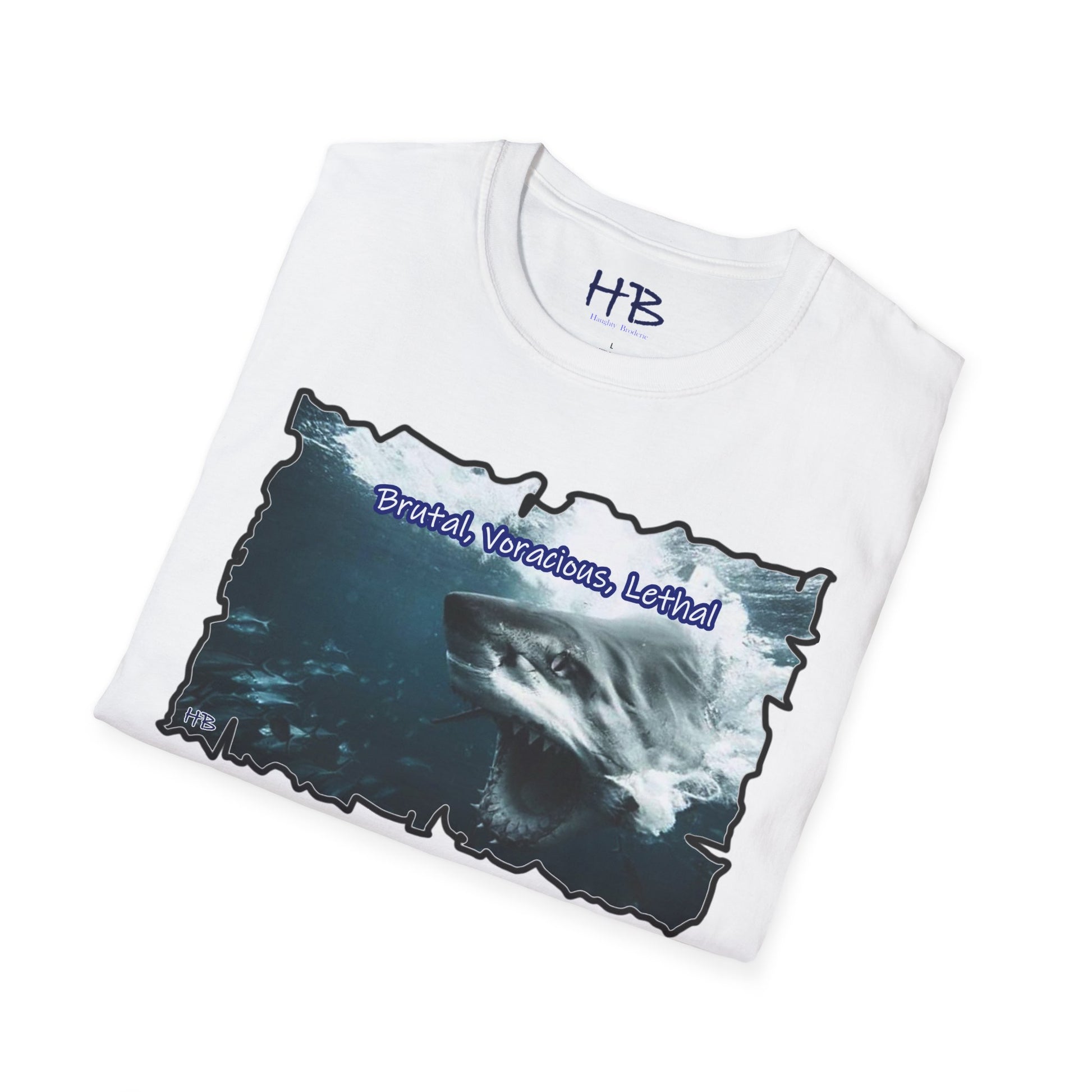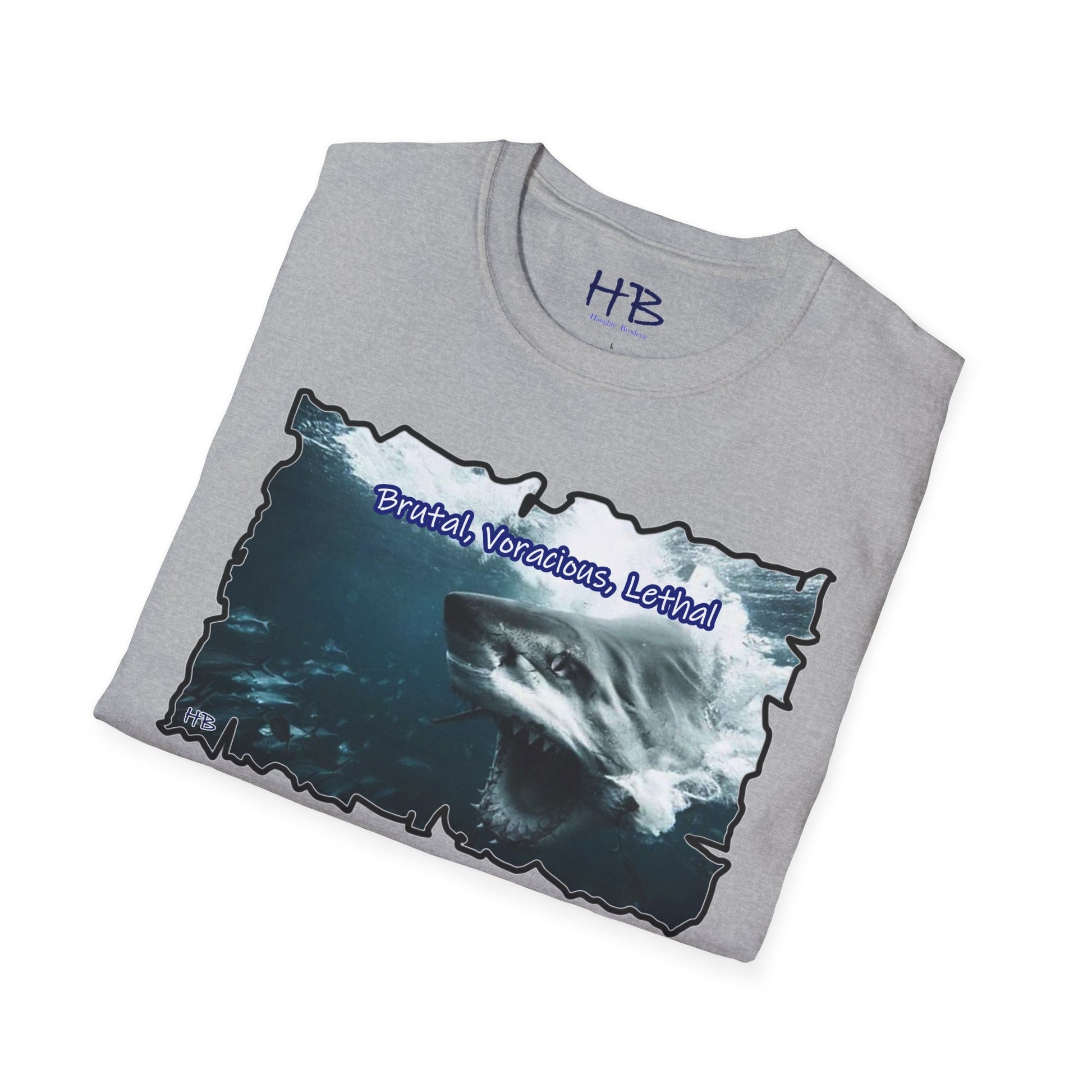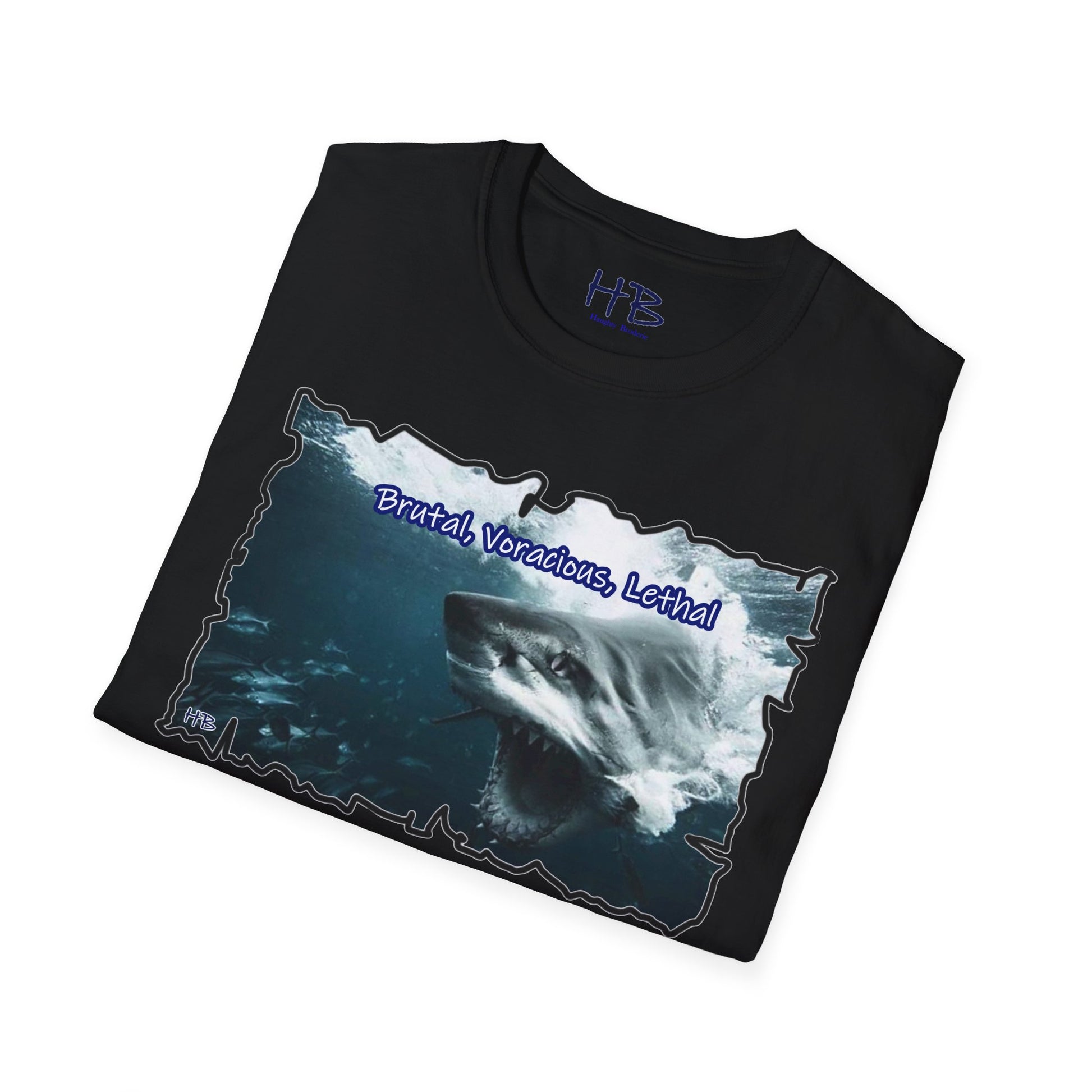 Introducing our dynamic and empowering creation – a wearable masterpiece that transcends mere fabric and stitching. Behold the apex of visual prowess, where the ferocity of nature converges with the indomitable spirit of human ambition. The front face of this garment showcases a visceral depiction of a vicious shark, its mouth agape, revealing a mesmerizing alignment of razor-sharp teeth that gleam with predatory precision. The intensity in its eyes communicates a singular purpose – to seize victory, to conquer the challenges that lie ahead.