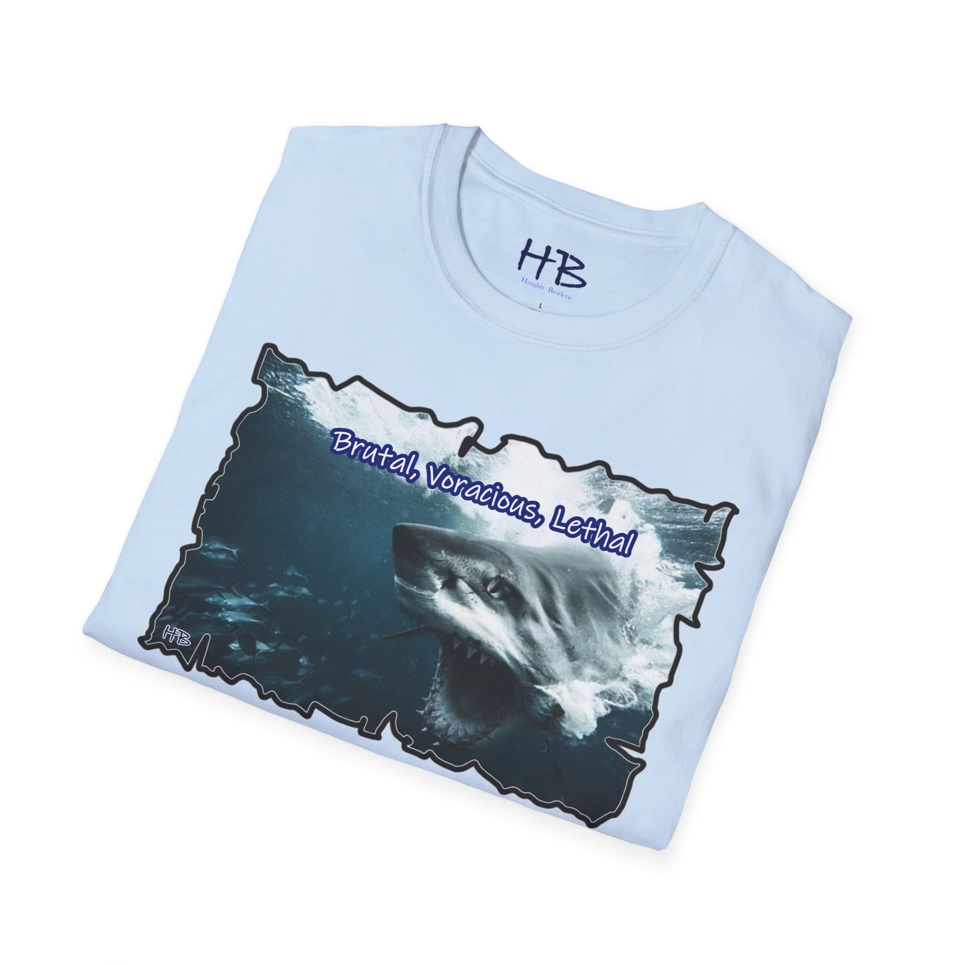 Imagine donning this shirt and feeling the surge of confidence as you become a walking embodiment of ambition. The school of fish swimming nearby symbolizes the challenges that surround us, yet the wearer, like the shark, is undeterred, focused on conquering every obstacle in their path.