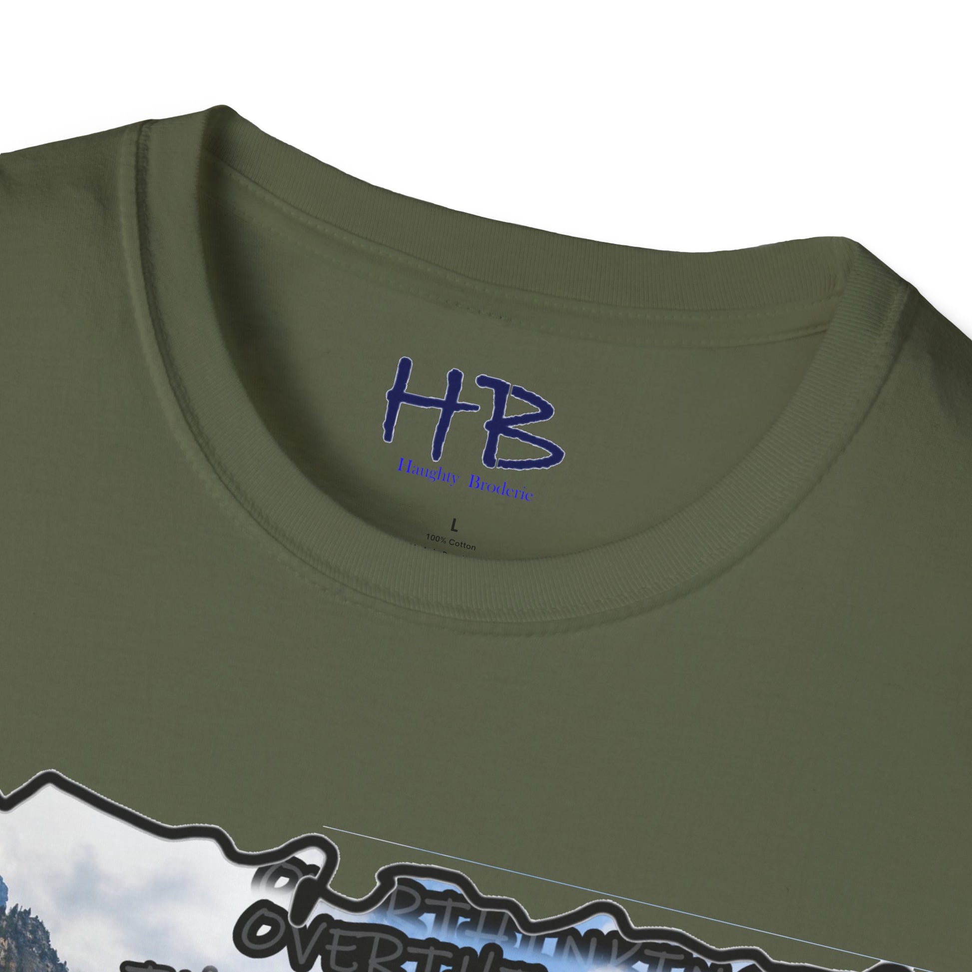 Introducing our extraordinary tee shirt that combines stunning visuals with a powerful message. Behold, a captivating image of a distant mountain, adorned with a tranquil lake and surrounded by an enchanting forest. But there's more to this tee shirt than meets the eye.