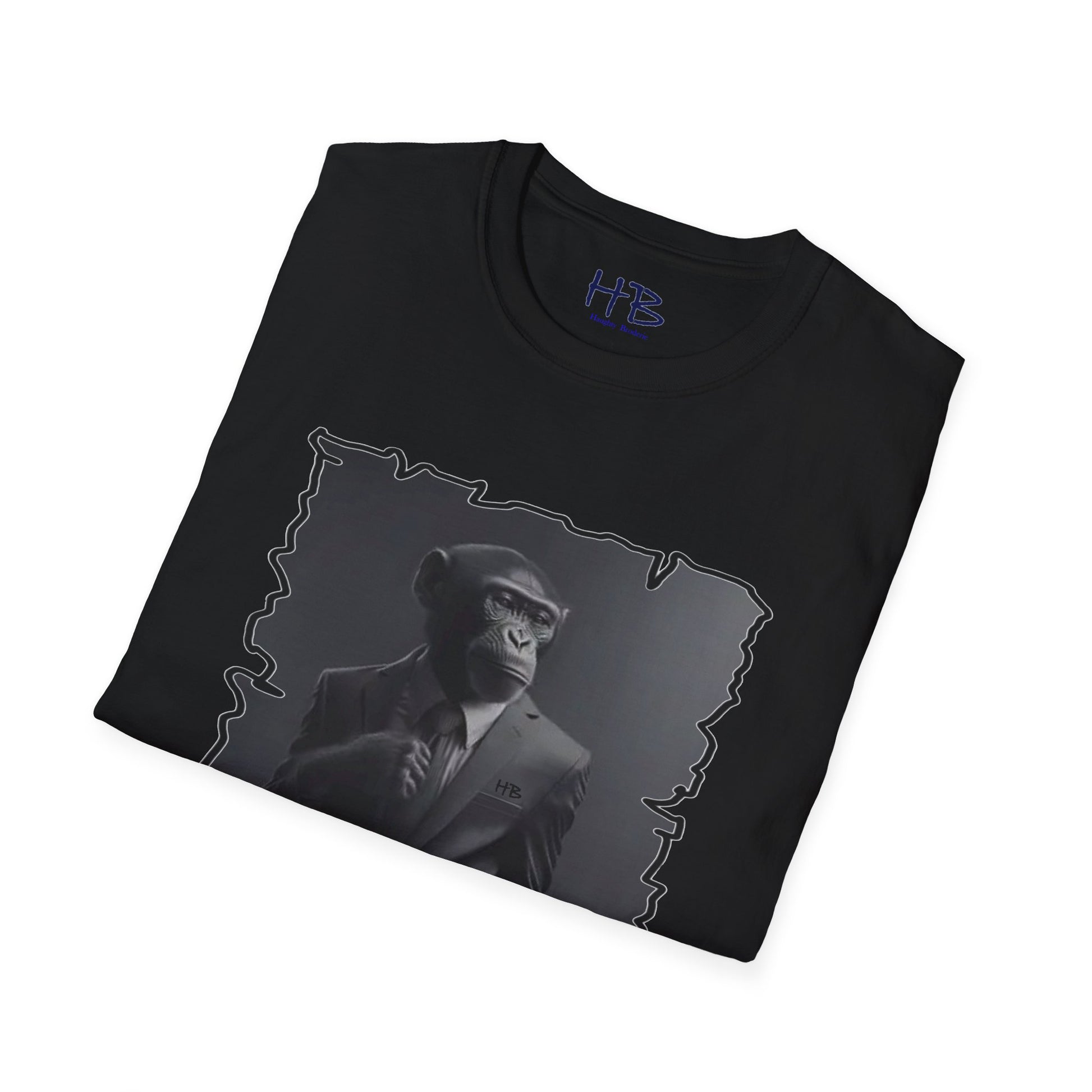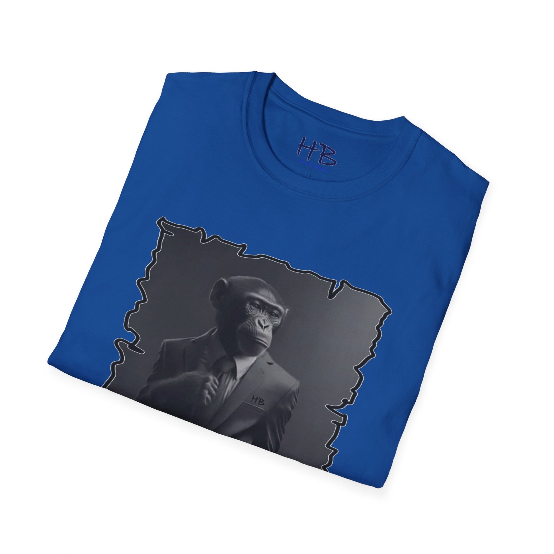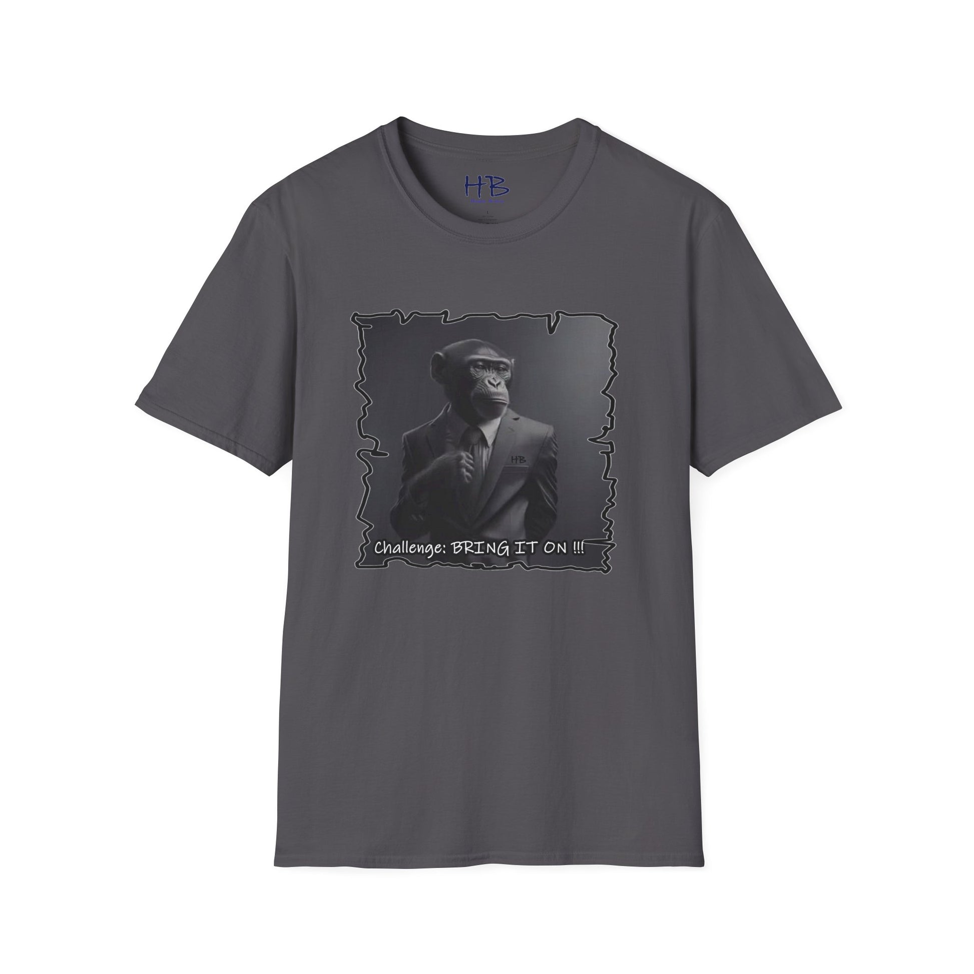 Introducing our remarkable garment featuring a distinguished primate donning a sophisticated gray ensemble paired with an elegant necktie. This splendid creation bears the inspiring declaration "Challenge: Bring it on!!!" The narrative woven into this t-shirt transcends the boundaries of ordinary attire, inviting you to embrace a symbol of resilience and determination.