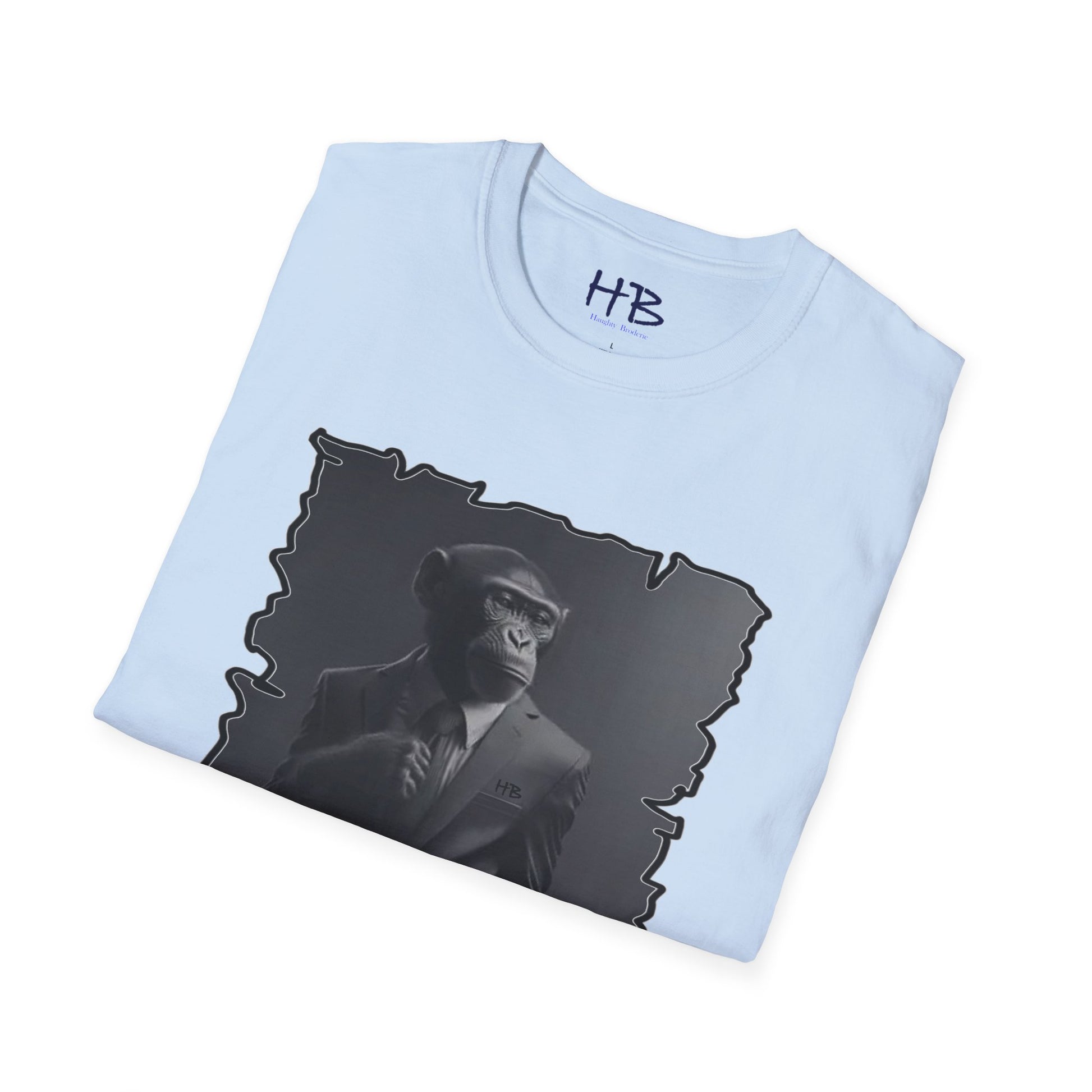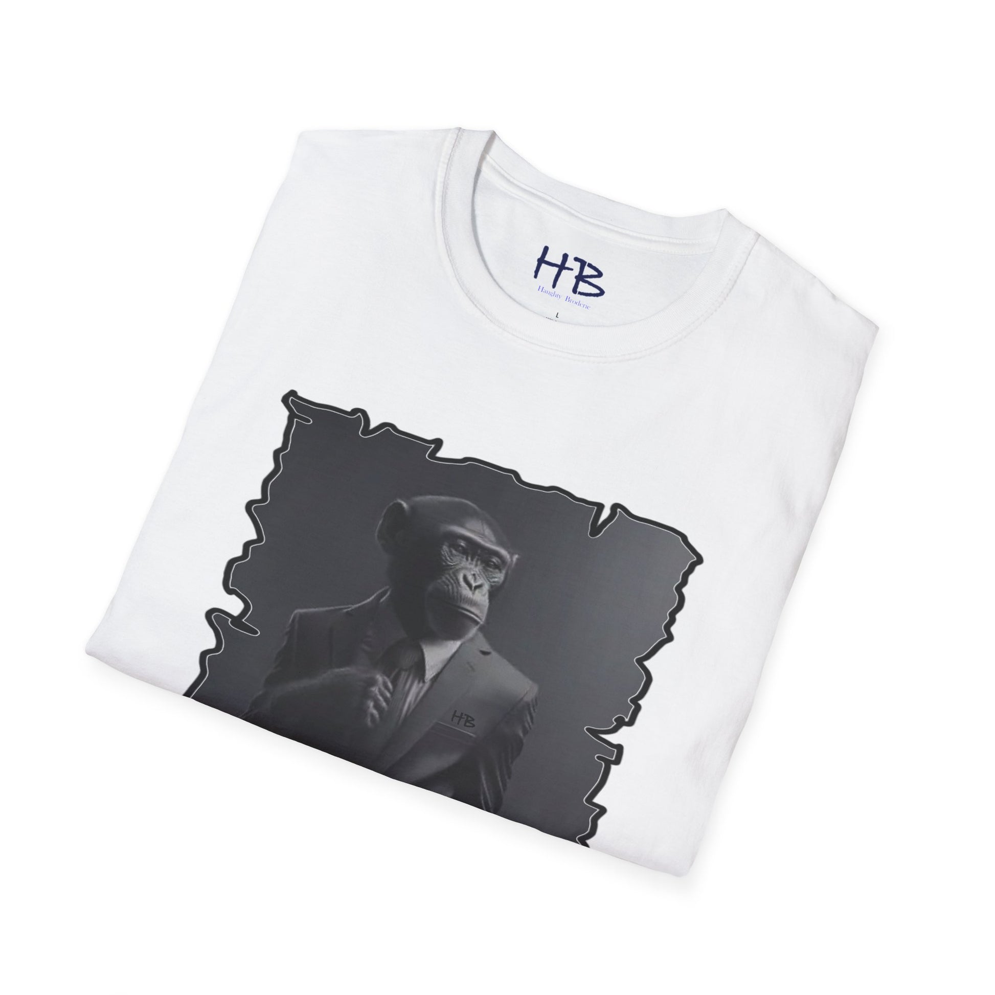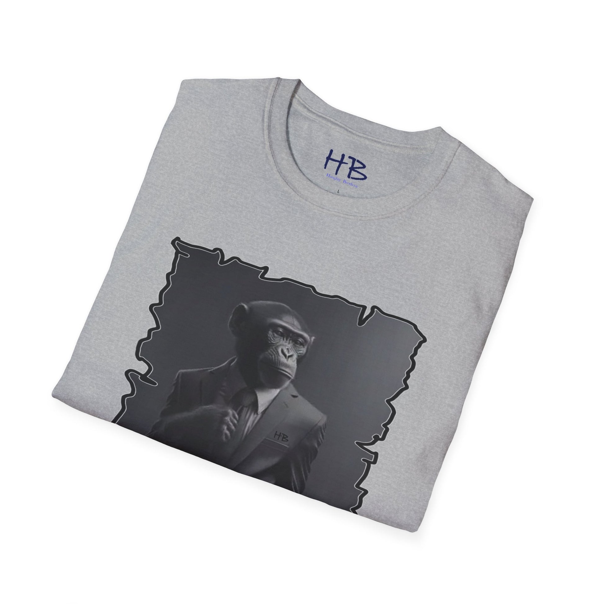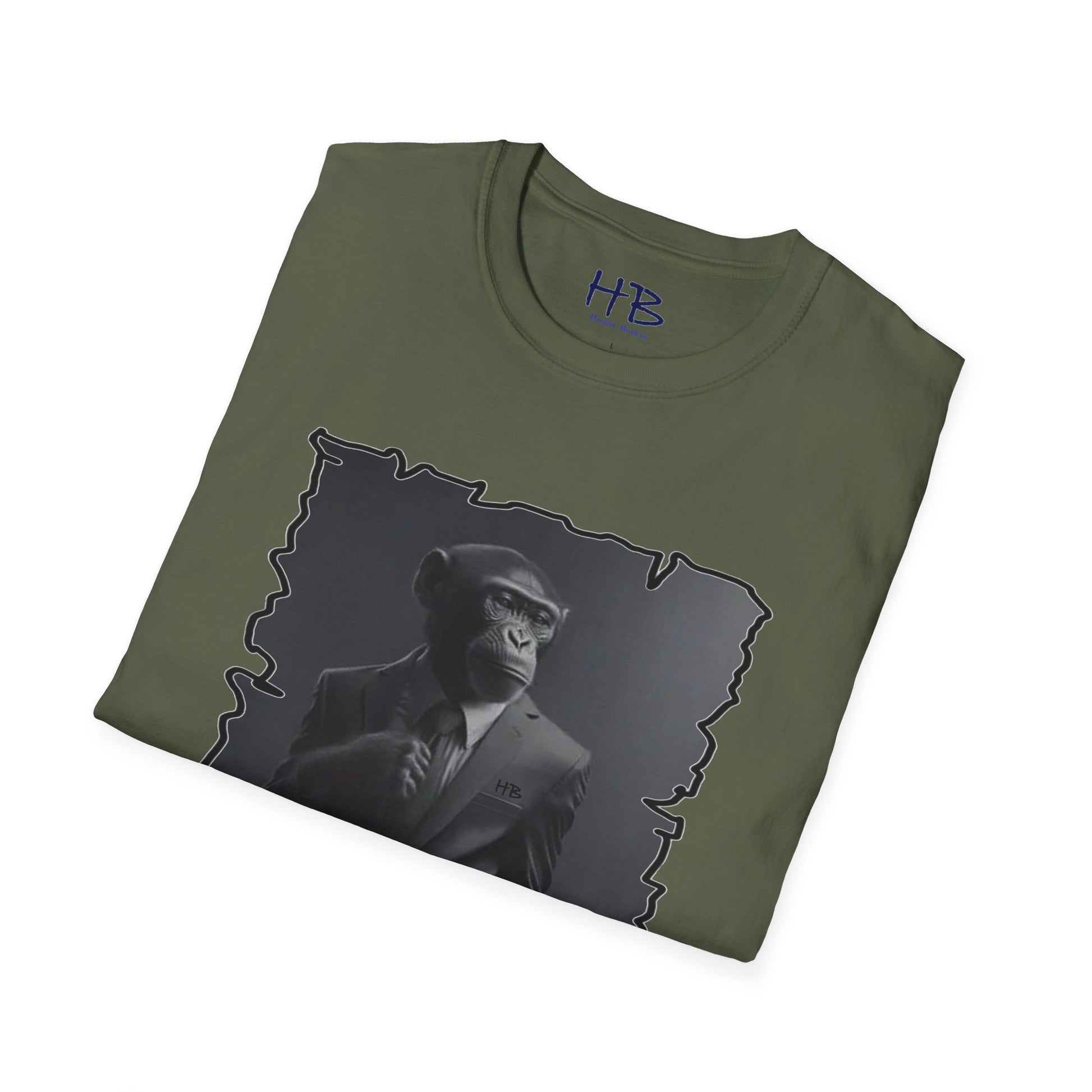 Introducing our remarkable garment featuring a distinguished primate donning a sophisticated gray ensemble paired with an elegant necktie. This splendid creation bears the inspiring declaration "Challenge: Bring it on!!!" The narrative woven into this t-shirt transcends the boundaries of ordinary attire, inviting you to embrace a symbol of resilience and determination.