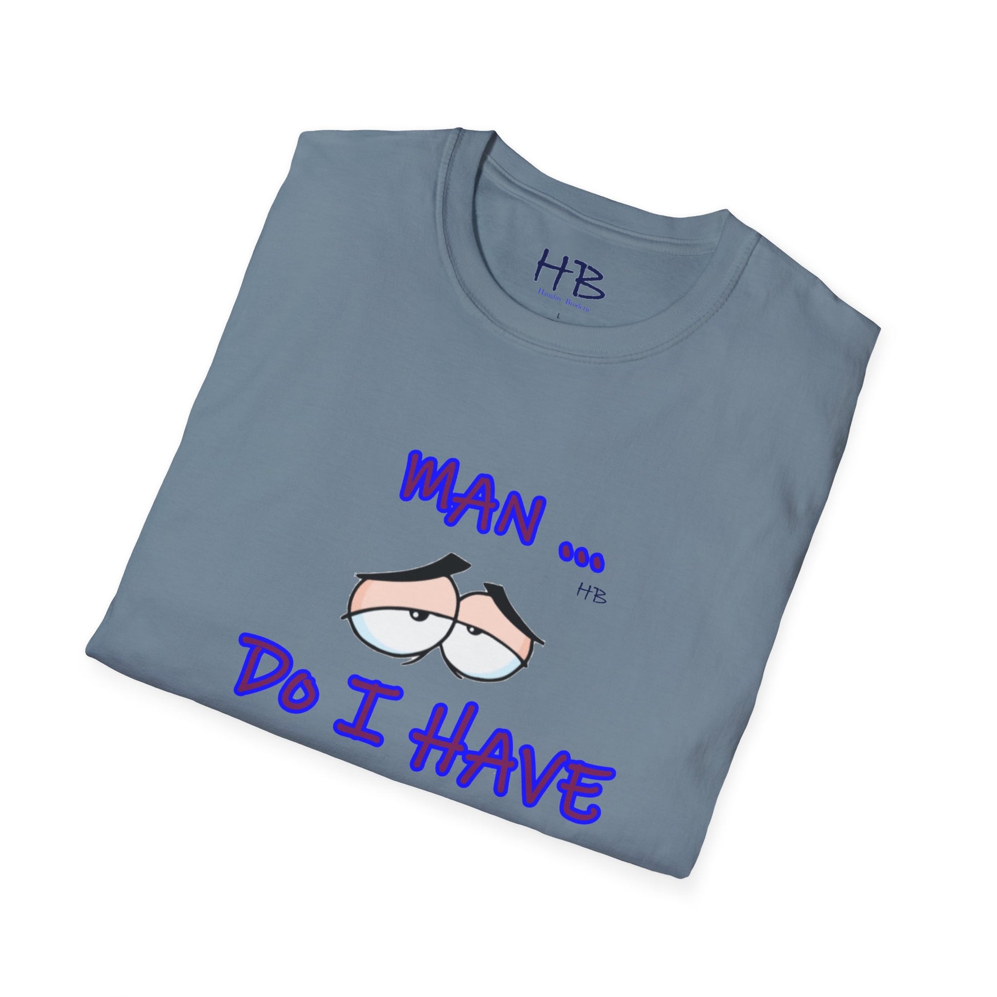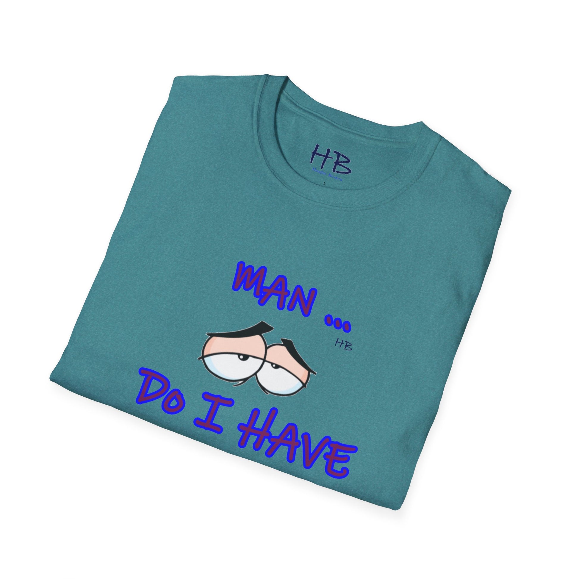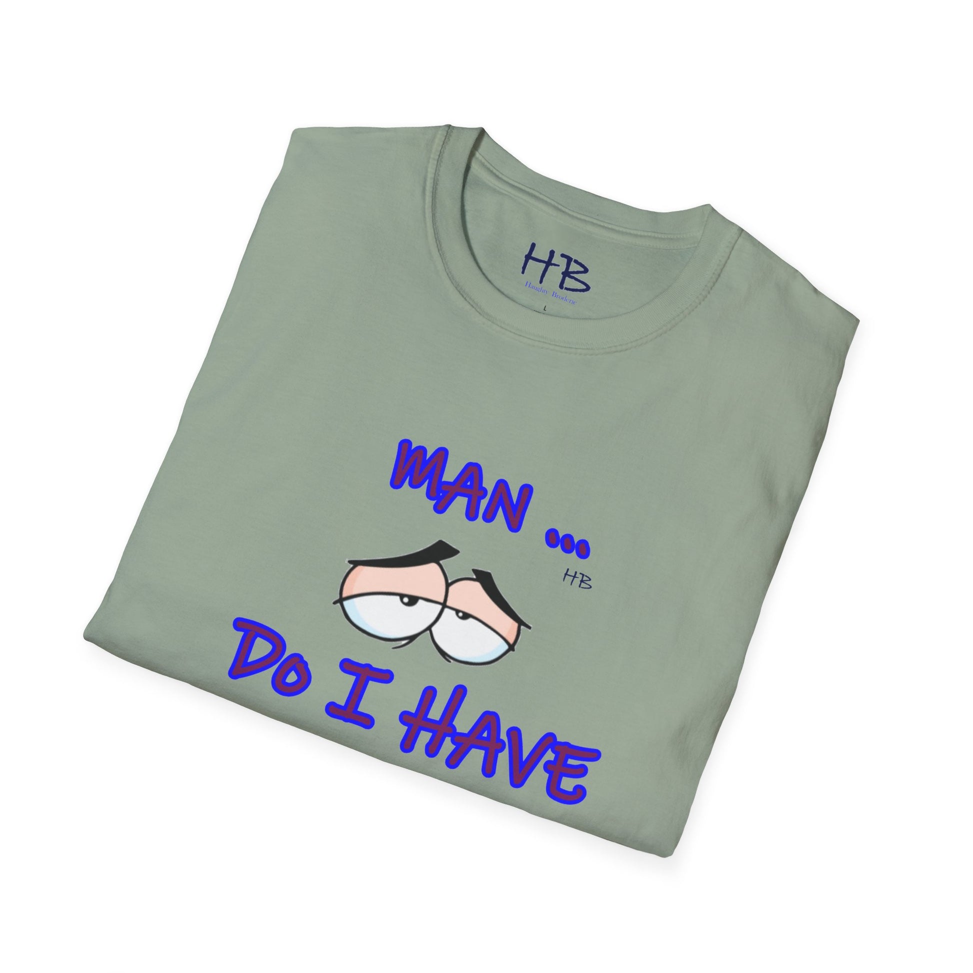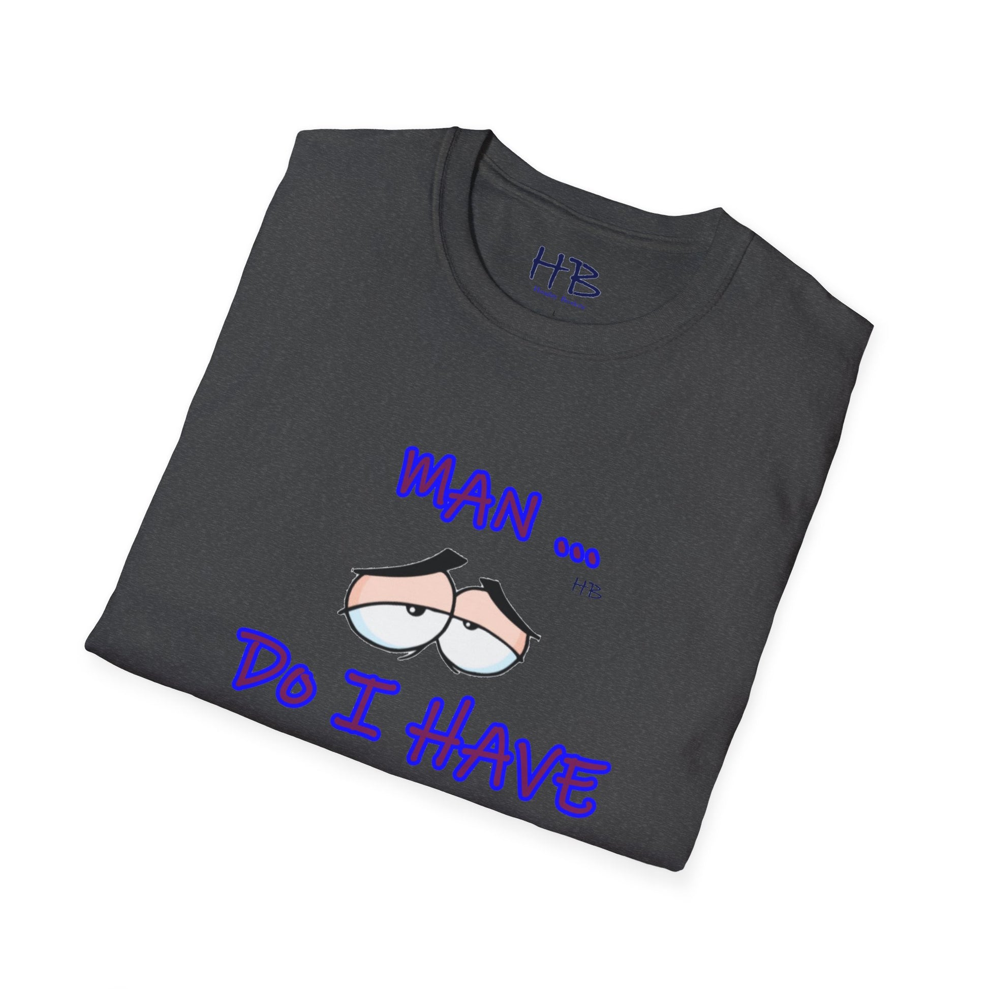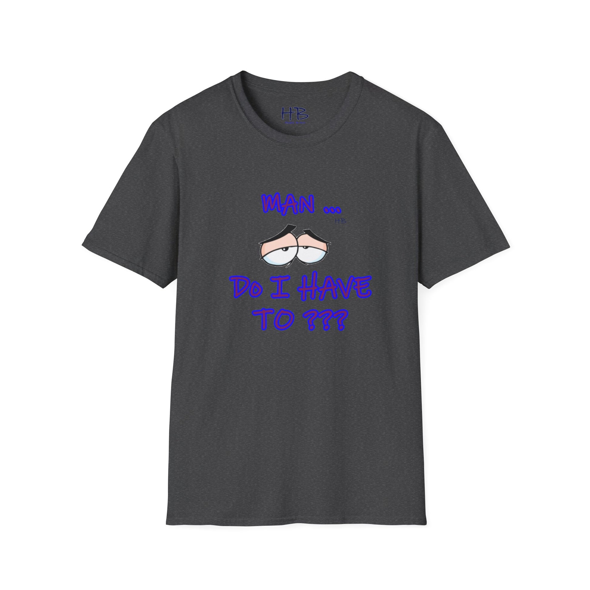 Introducing a captivating and thought-provoking apparel piece that will undoubtedly captivate and engage anyone who encounters it. This exceptional garment showcases a skillfully crafted illustration featuring a pair of eyes, their expression exuding a sense of utter languor and indifference towards life's demands. Beneath this evocative image, the text boldly declares, "MAN ... Do I Have to???," resonating with the universal sentiment of reluctance and hesitation.