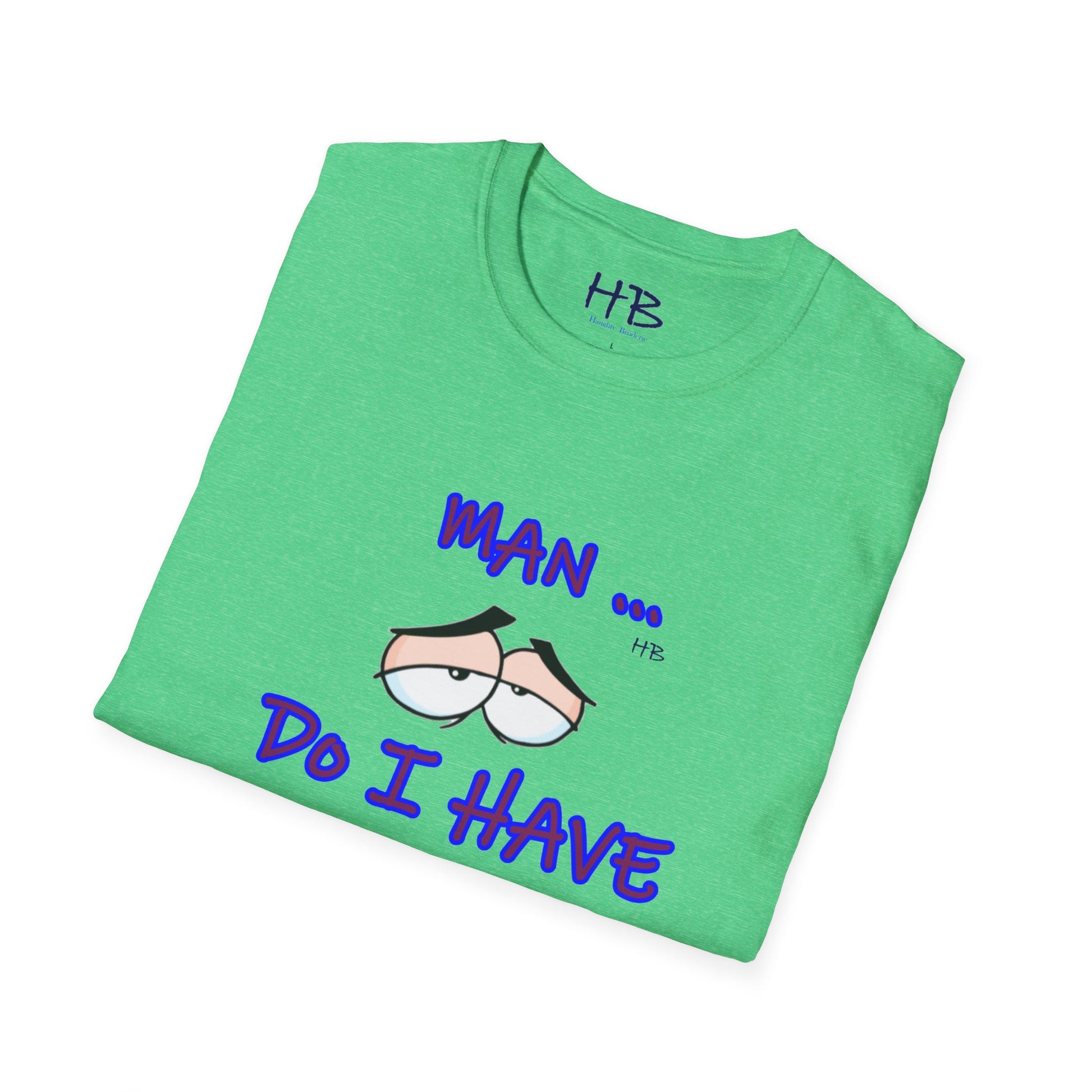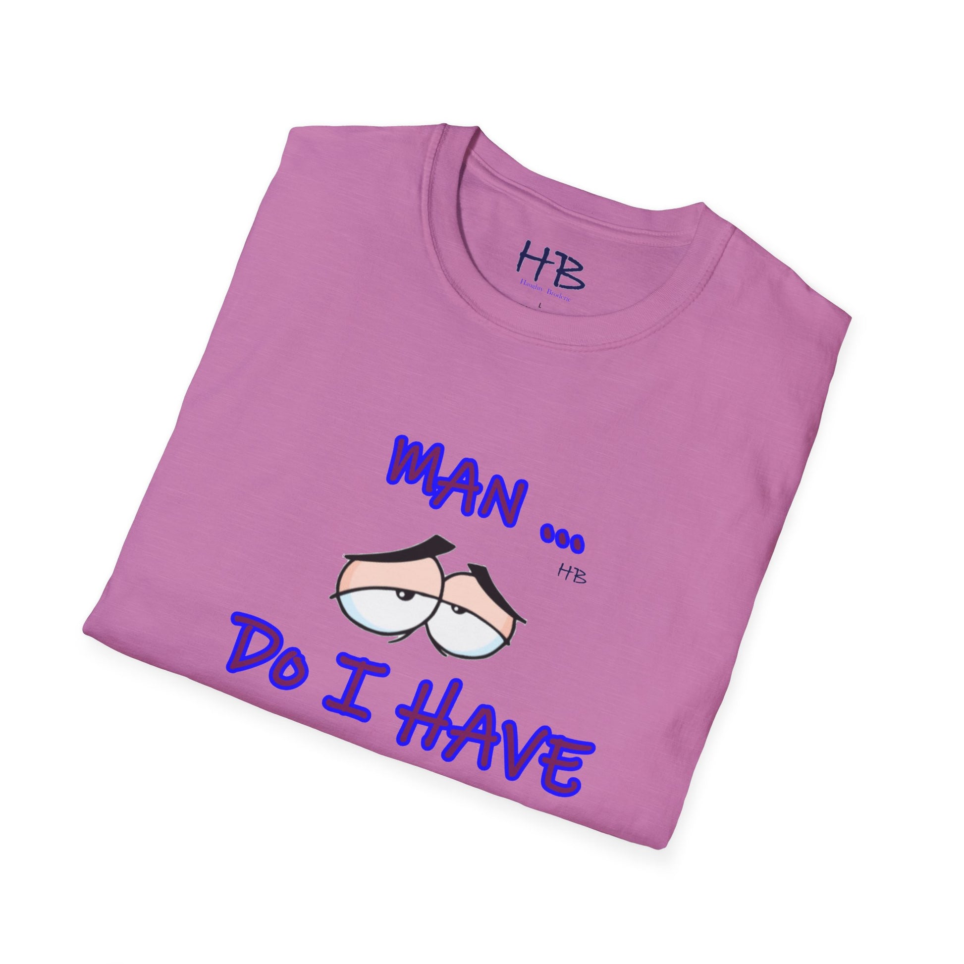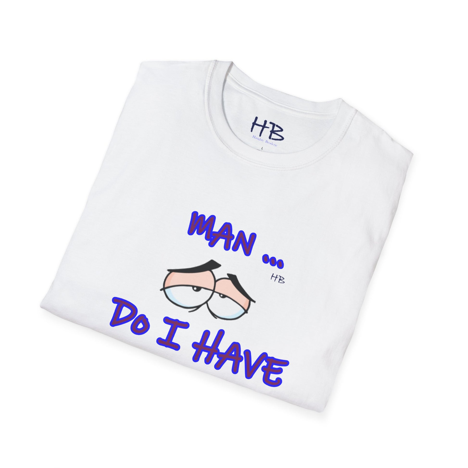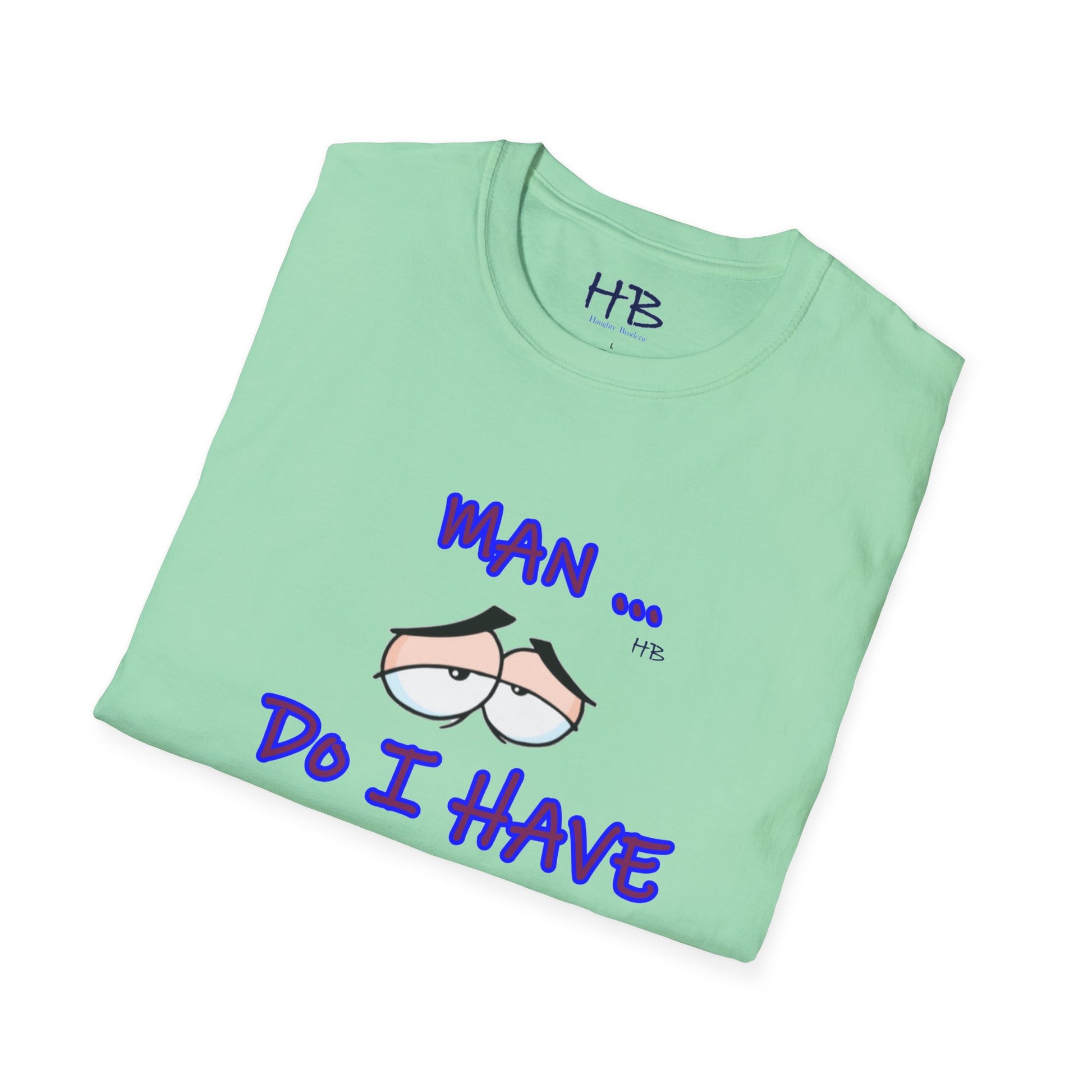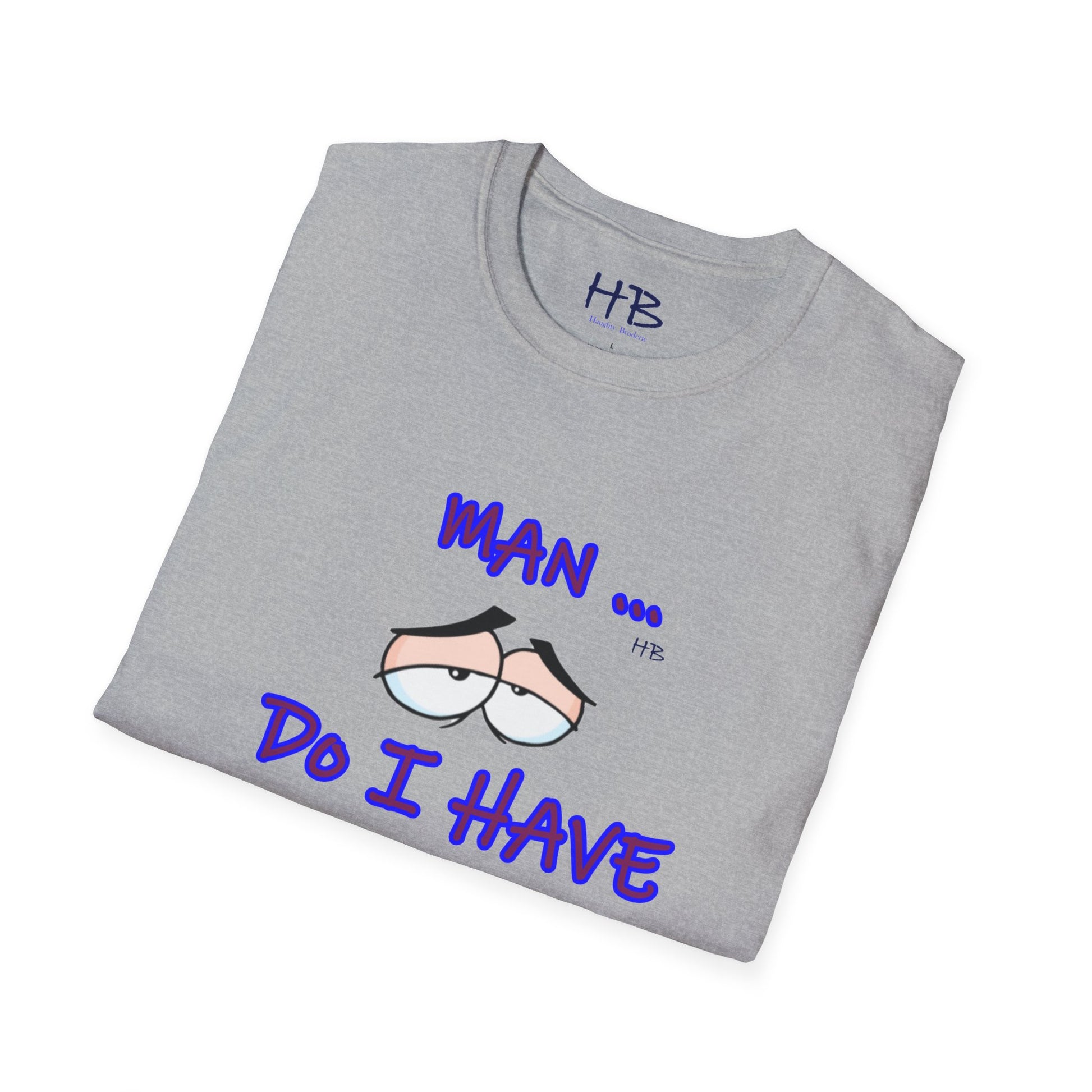 Introducing a captivating and thought-provoking apparel piece that will undoubtedly captivate and engage anyone who encounters it. This exceptional garment showcases a skillfully crafted illustration featuring a pair of eyes, their expression exuding a sense of utter languor and indifference towards life's demands. Beneath this evocative image, the text boldly declares, "MAN ... Do I Have to???," resonating with the universal sentiment of reluctance and hesitation.