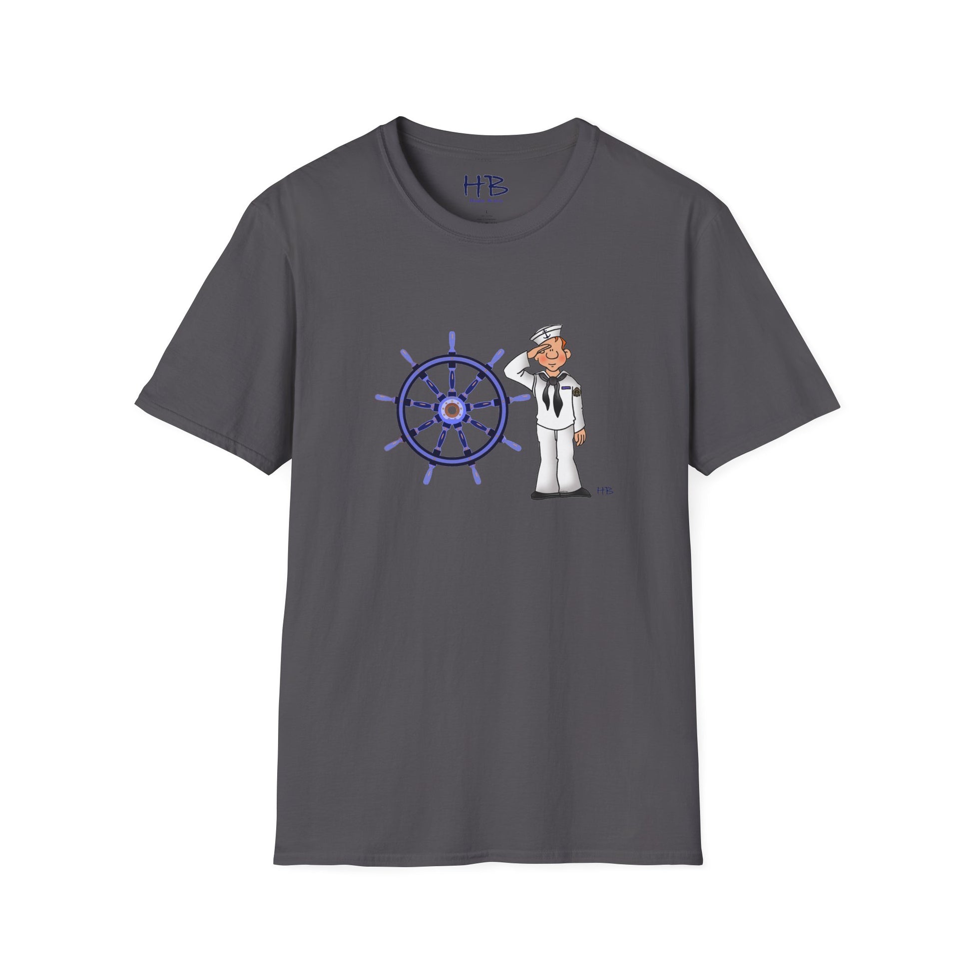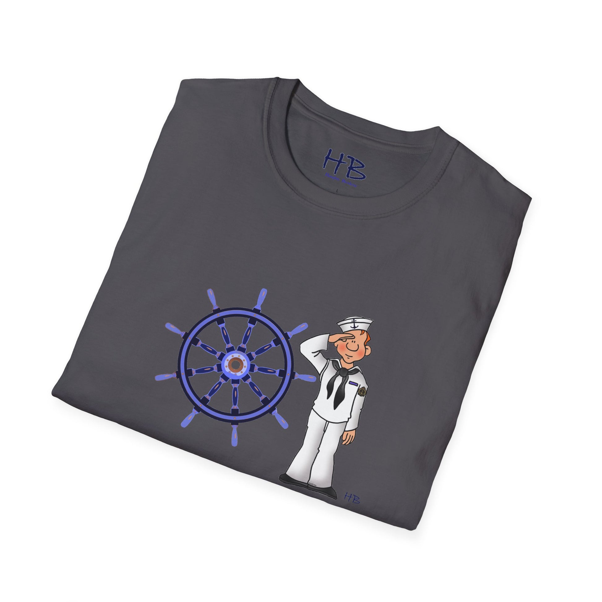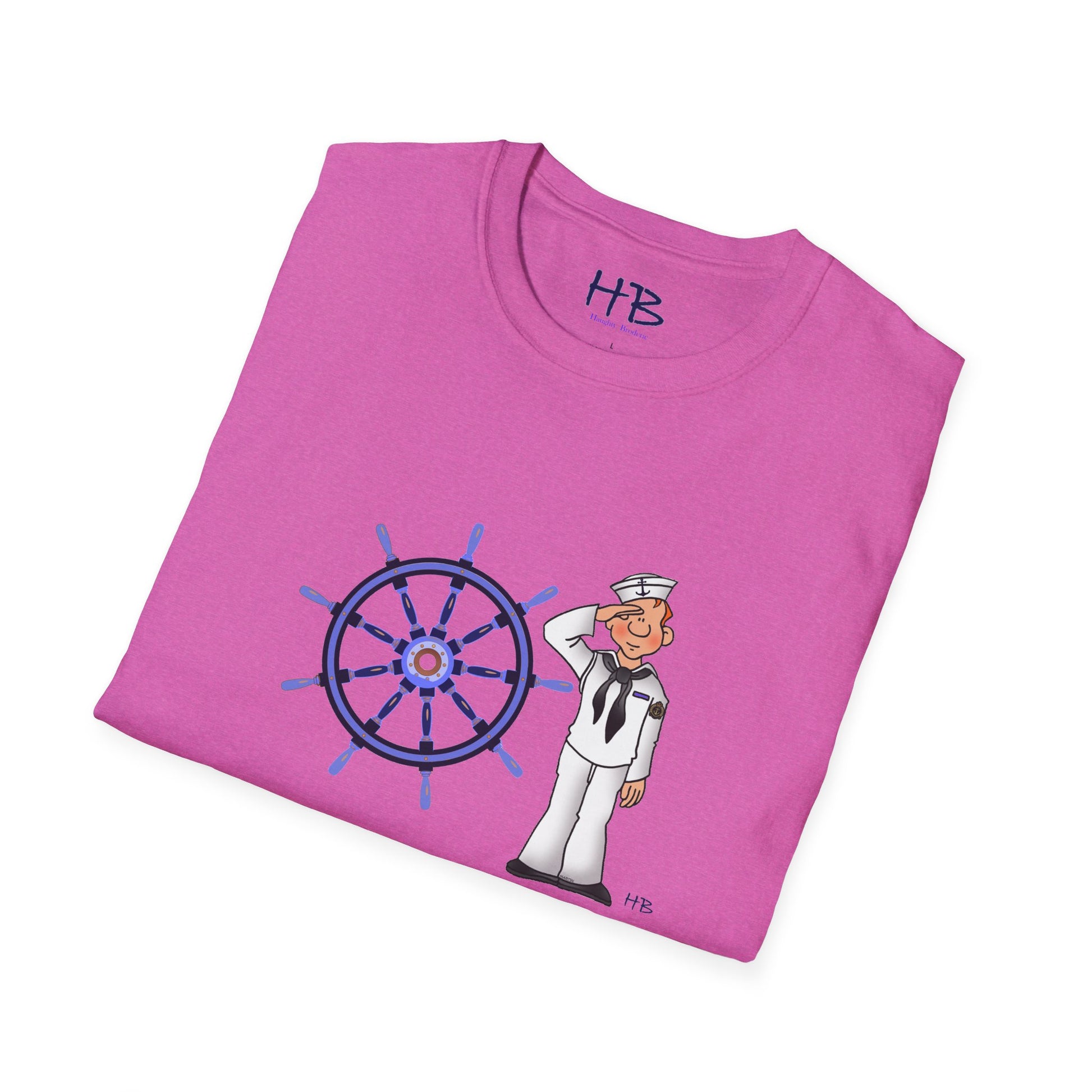 "Adventure Beckons: Sailorman Salute with Boat Wheel"