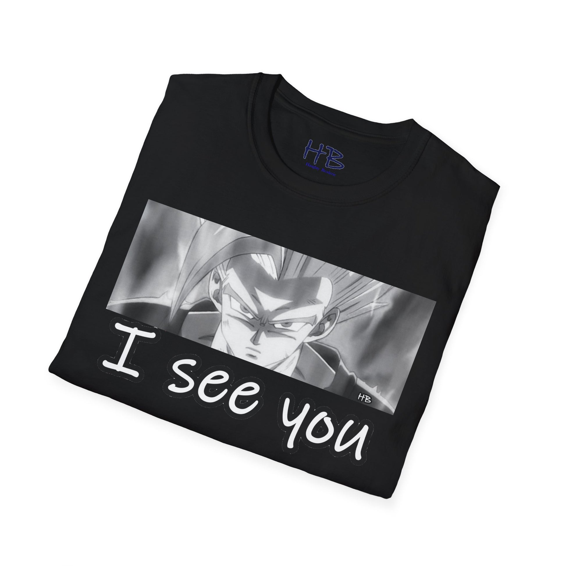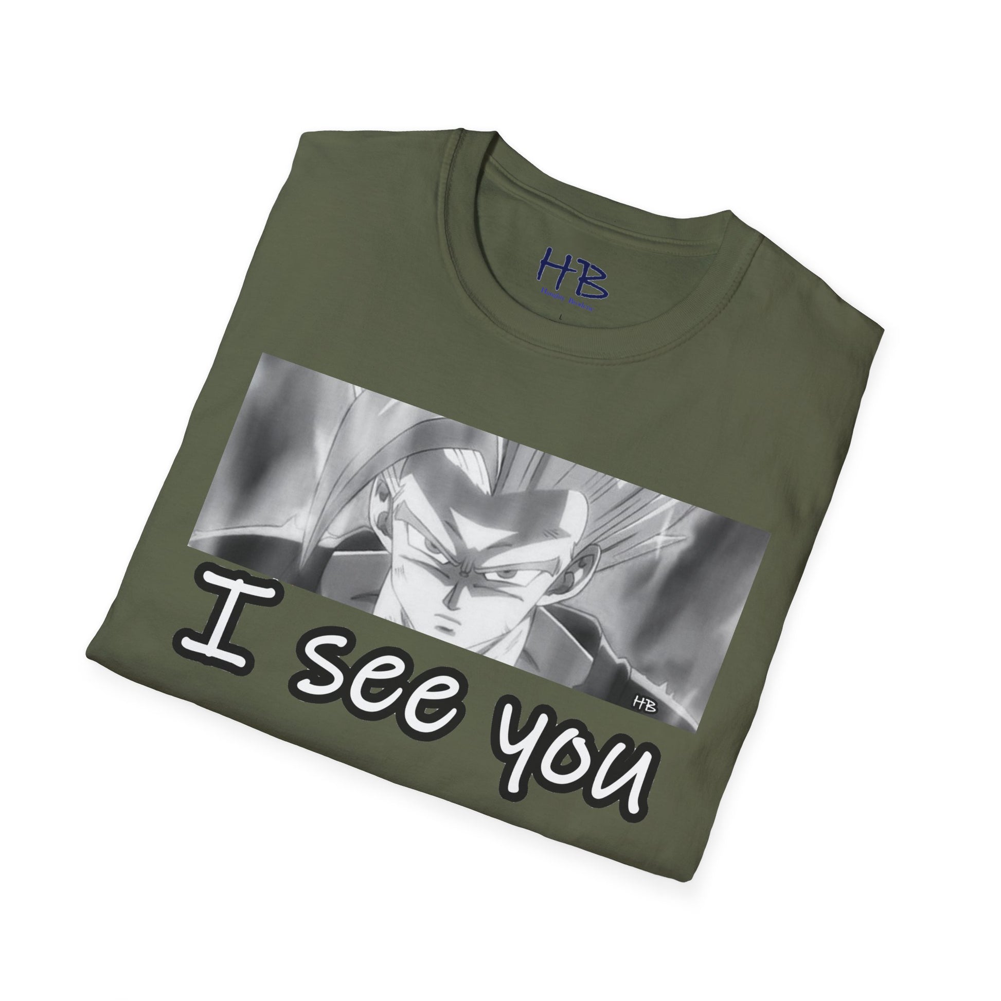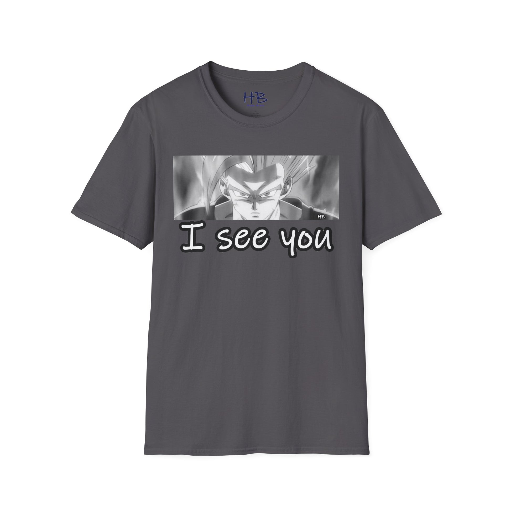 The central focus of this design, the anime character's gaze, is nothing short of an artistic revelation. With an almost predatory stare, those eyes speak volumes, silently declaring, "I See You." This cheeky phrase takes on a whole new meaning, a playful reminder that despite your outward glance, your anime superhero is vigilantly observing every move, every nuance of the world around you.