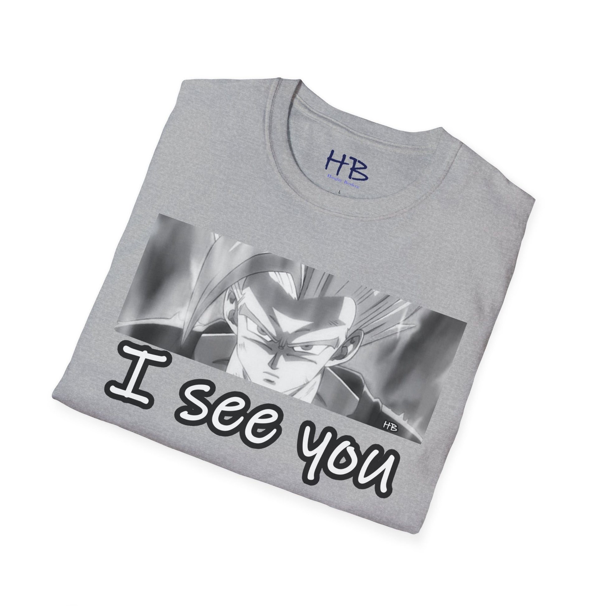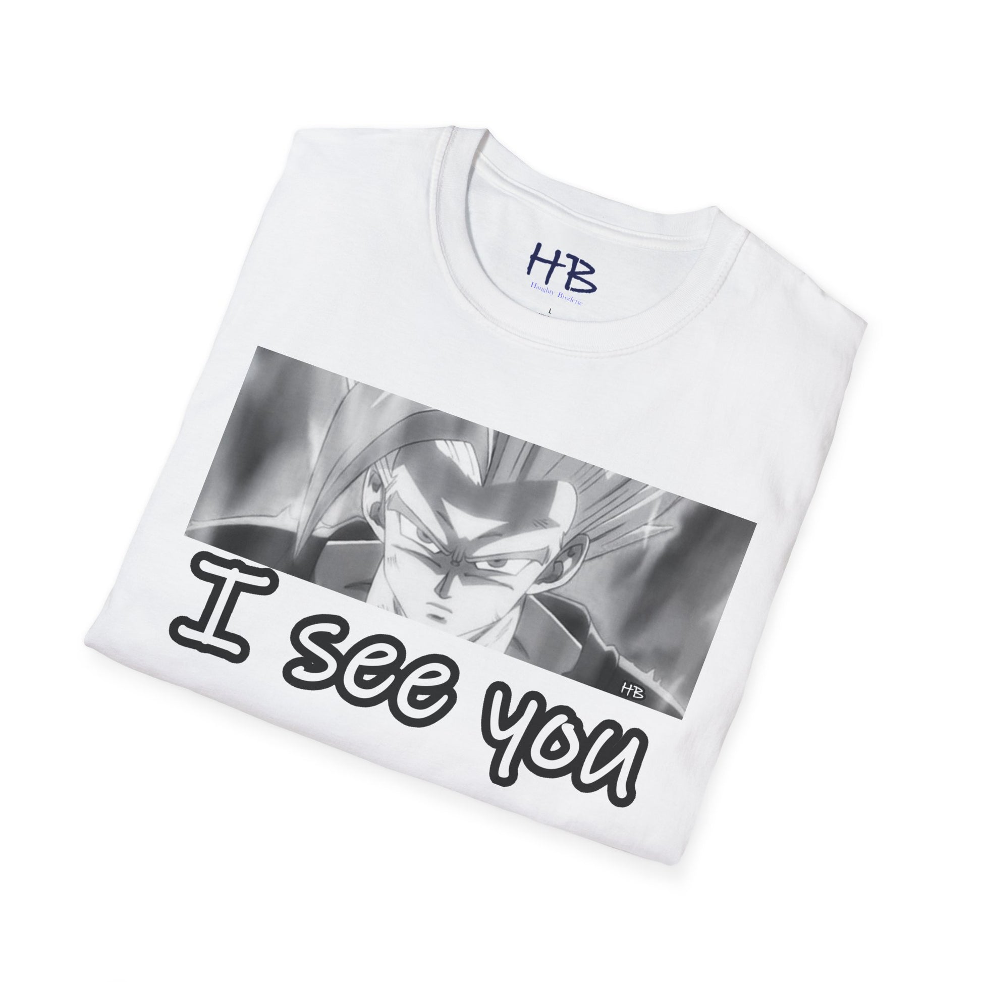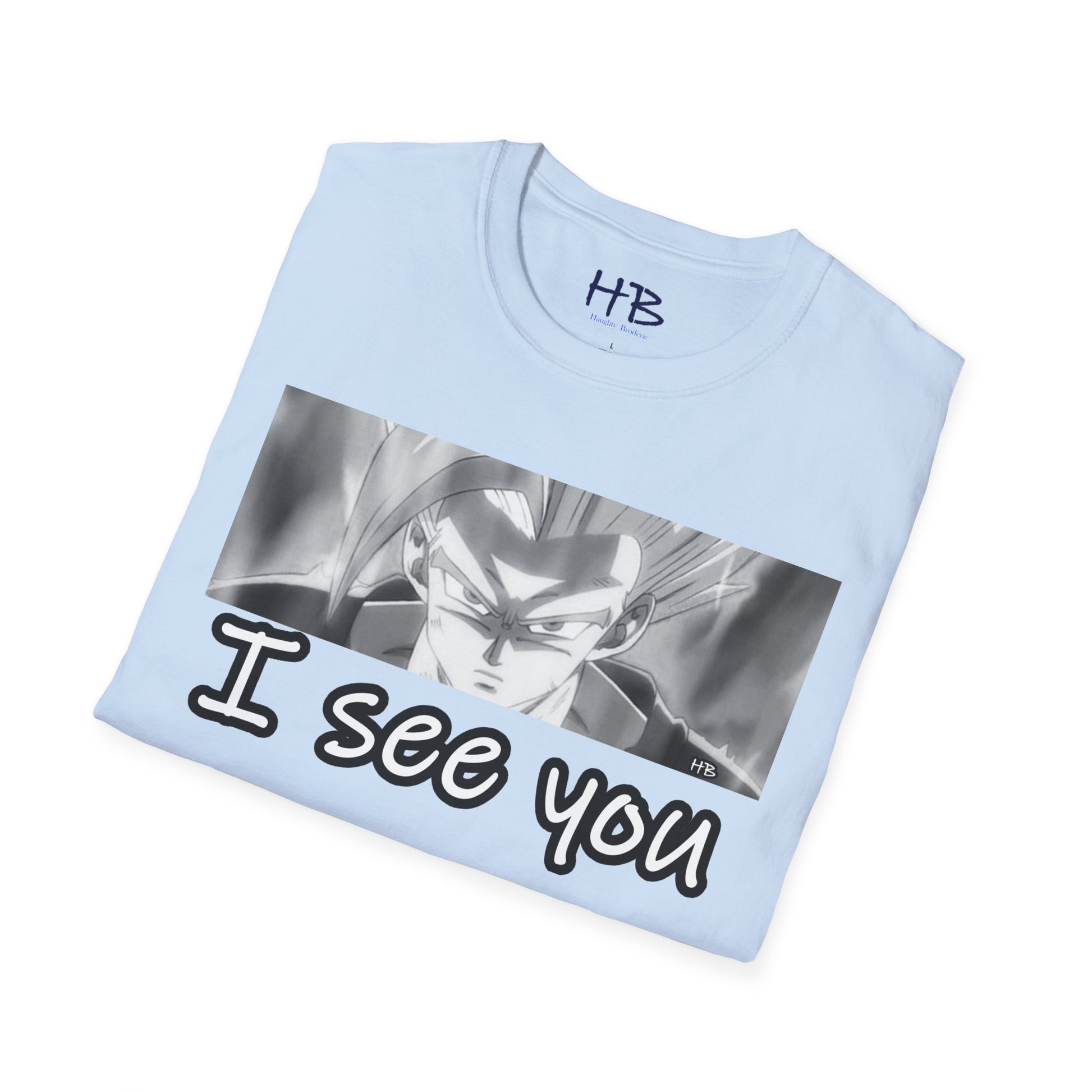The central focus of this design, the anime character's gaze, is nothing short of an artistic revelation. With an almost predatory stare, those eyes speak volumes, silently declaring, "I See You." This cheeky phrase takes on a whole new meaning, a playful reminder that despite your outward glance, your anime superhero is vigilantly observing every move, every nuance of the world around you.