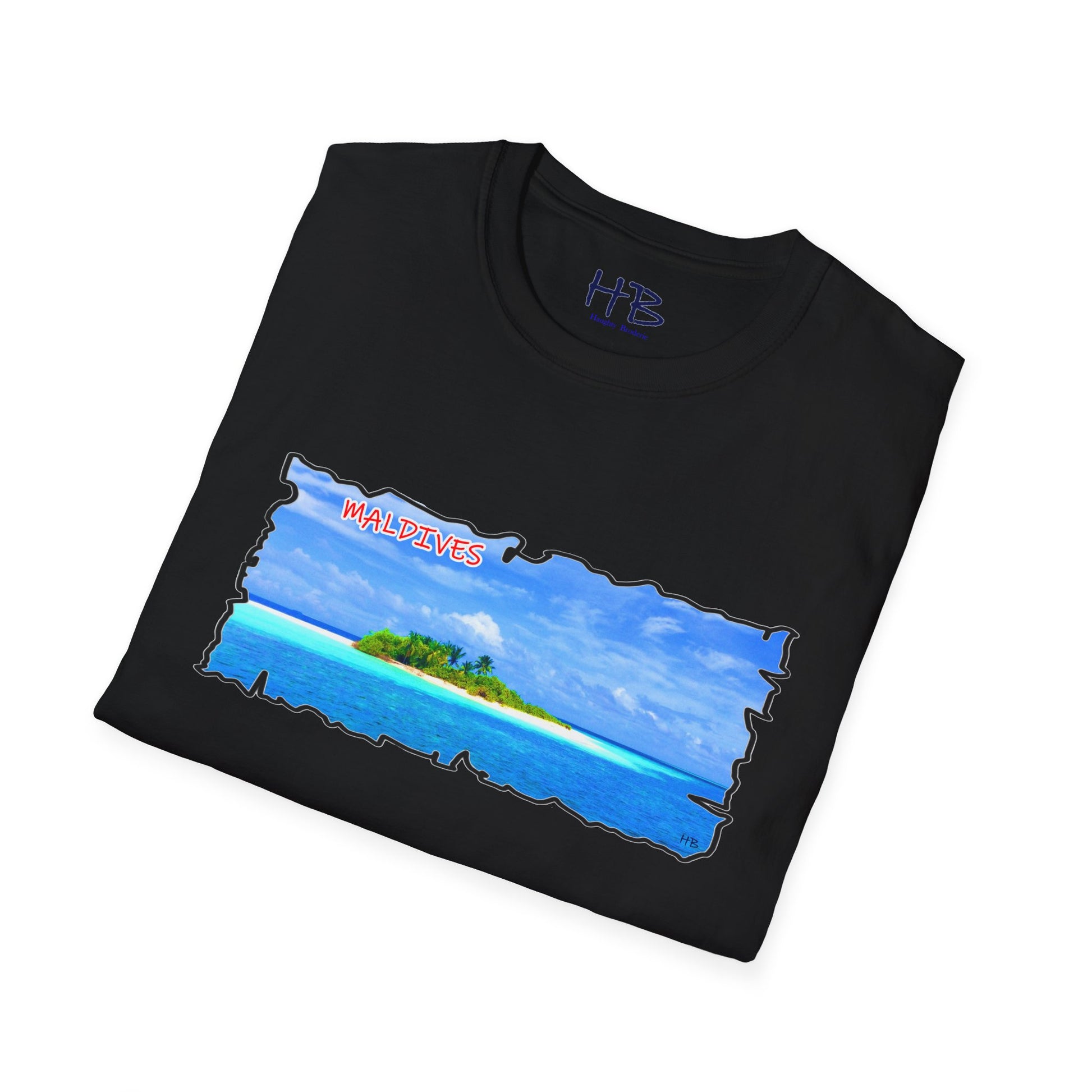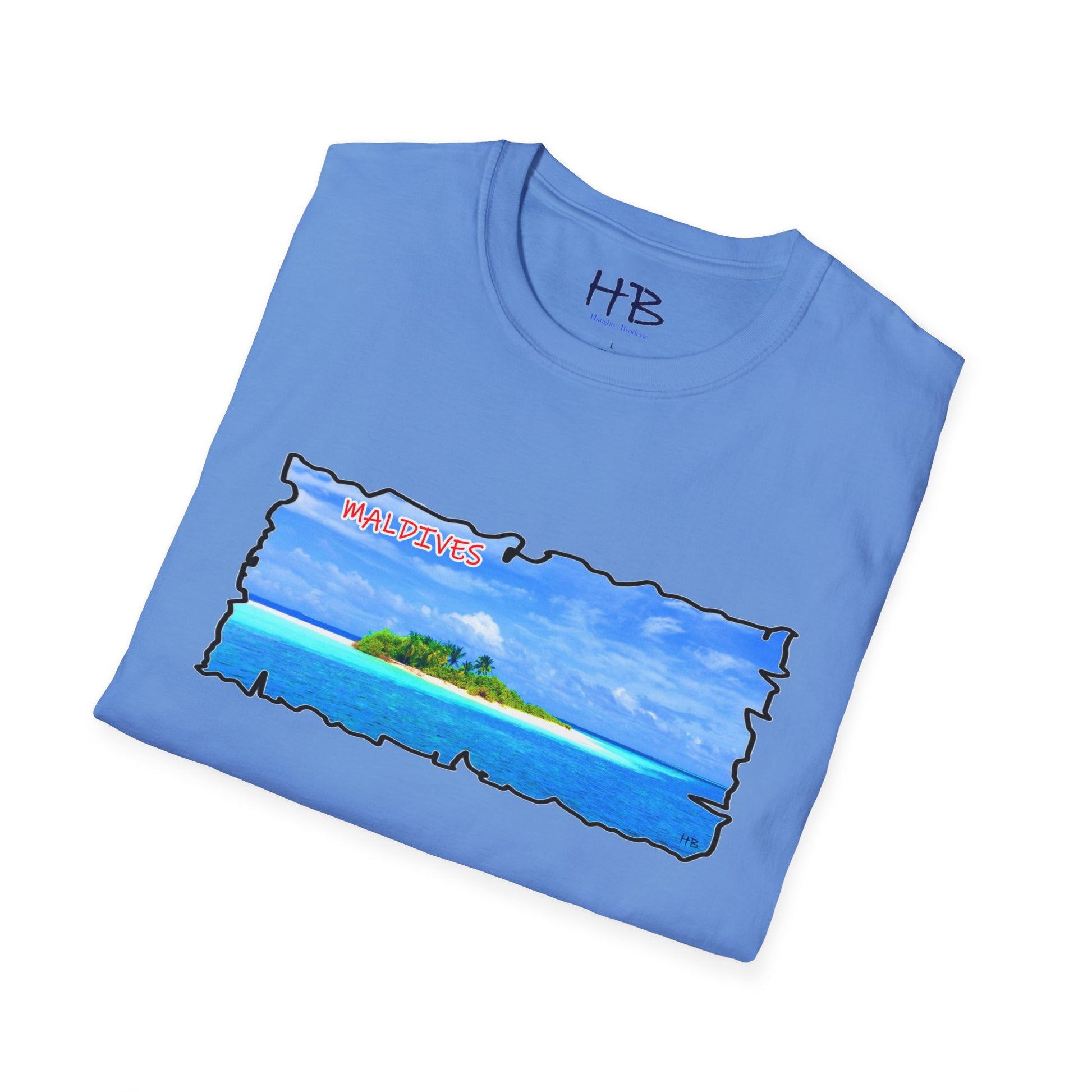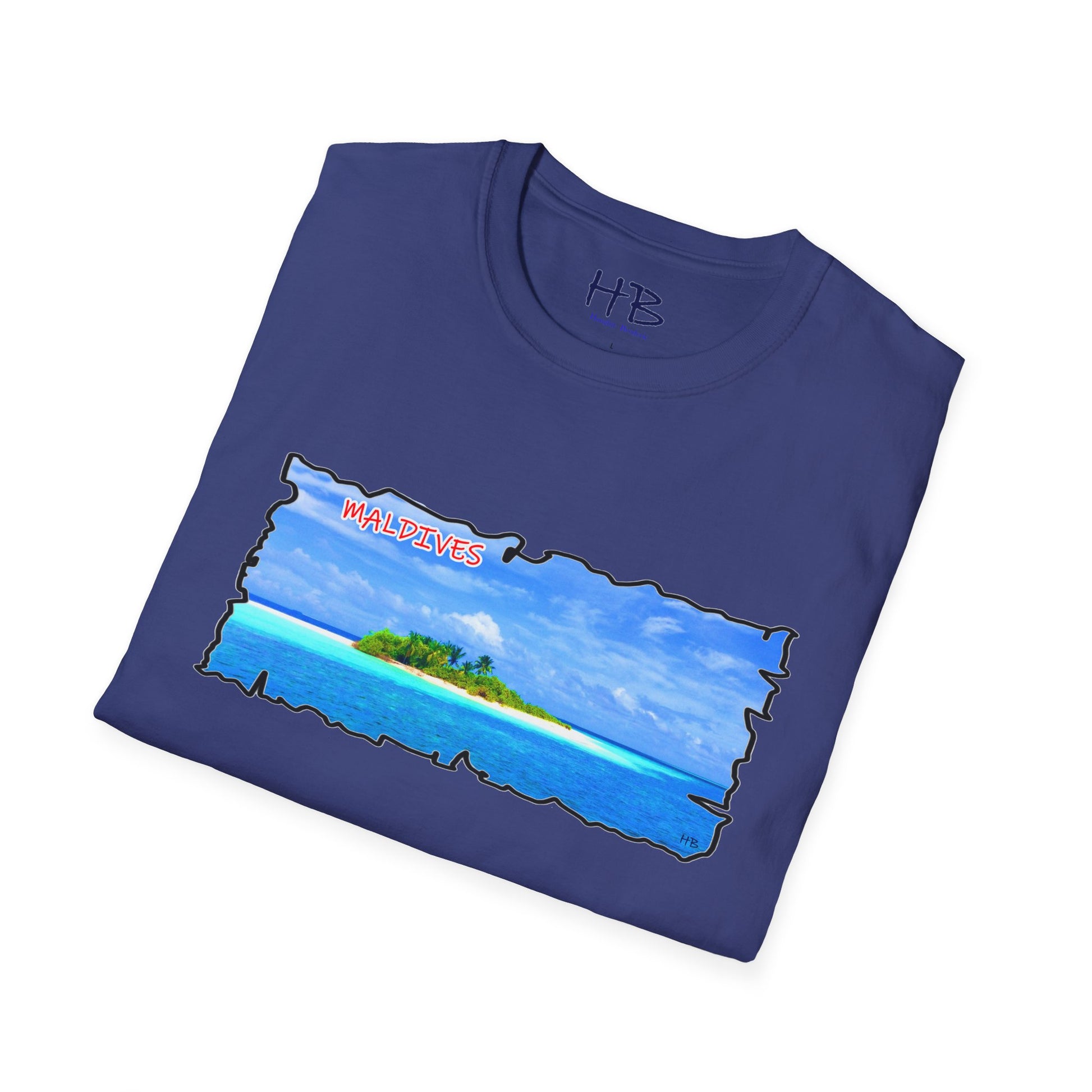 Introducing our captivating and meaningful creation, the 'Serene Haven' T-Shirt! Immerse yourself in the breathtaking beauty of a picturesque paradise captured on this remarkable tee. Behold the resplendent image of a magnificent, tiny paradisiacal island nestled in the Maldives. Gaze at the enchanting baby blue waters that gracefully encircle the slender landmass, adorned with three majestic palm trees.